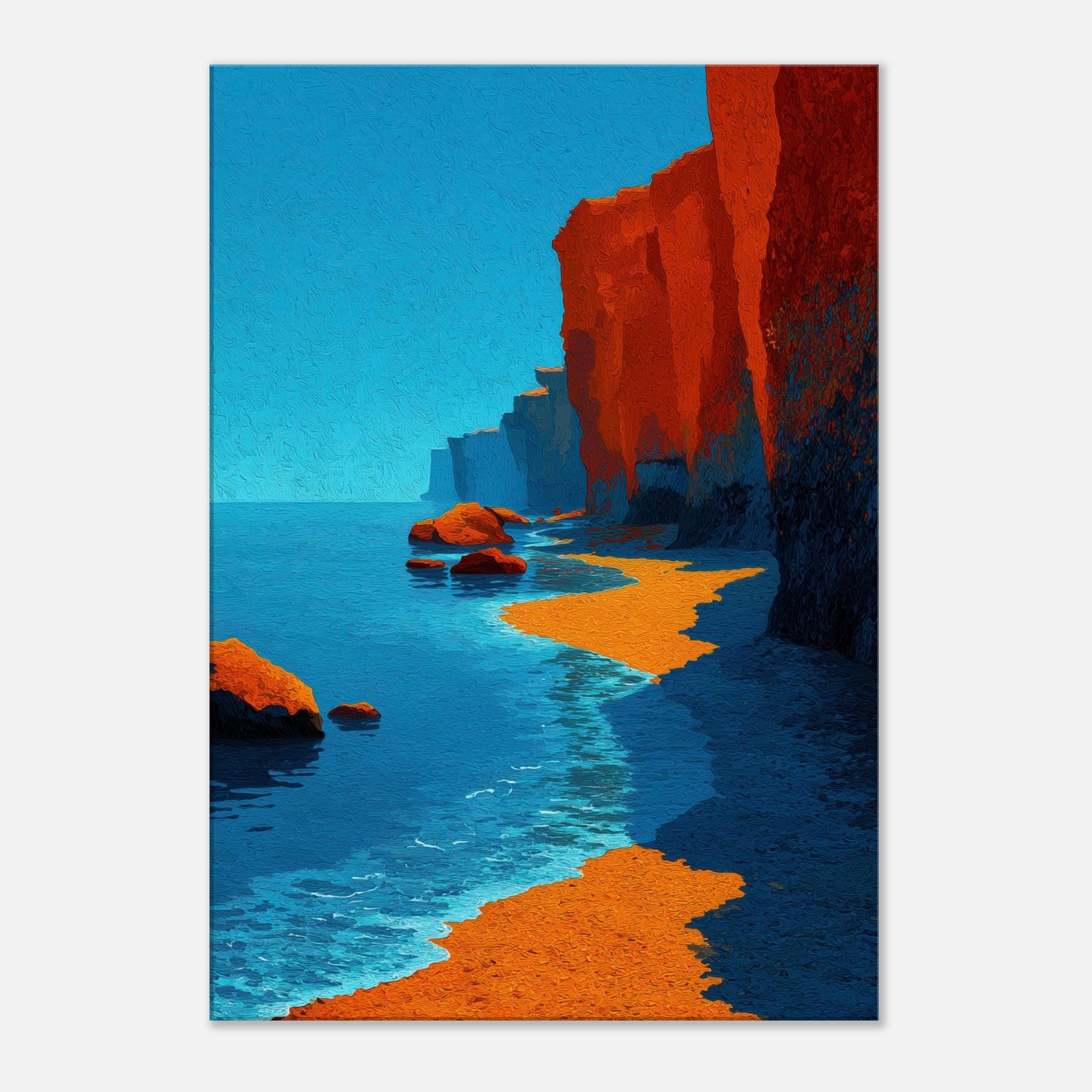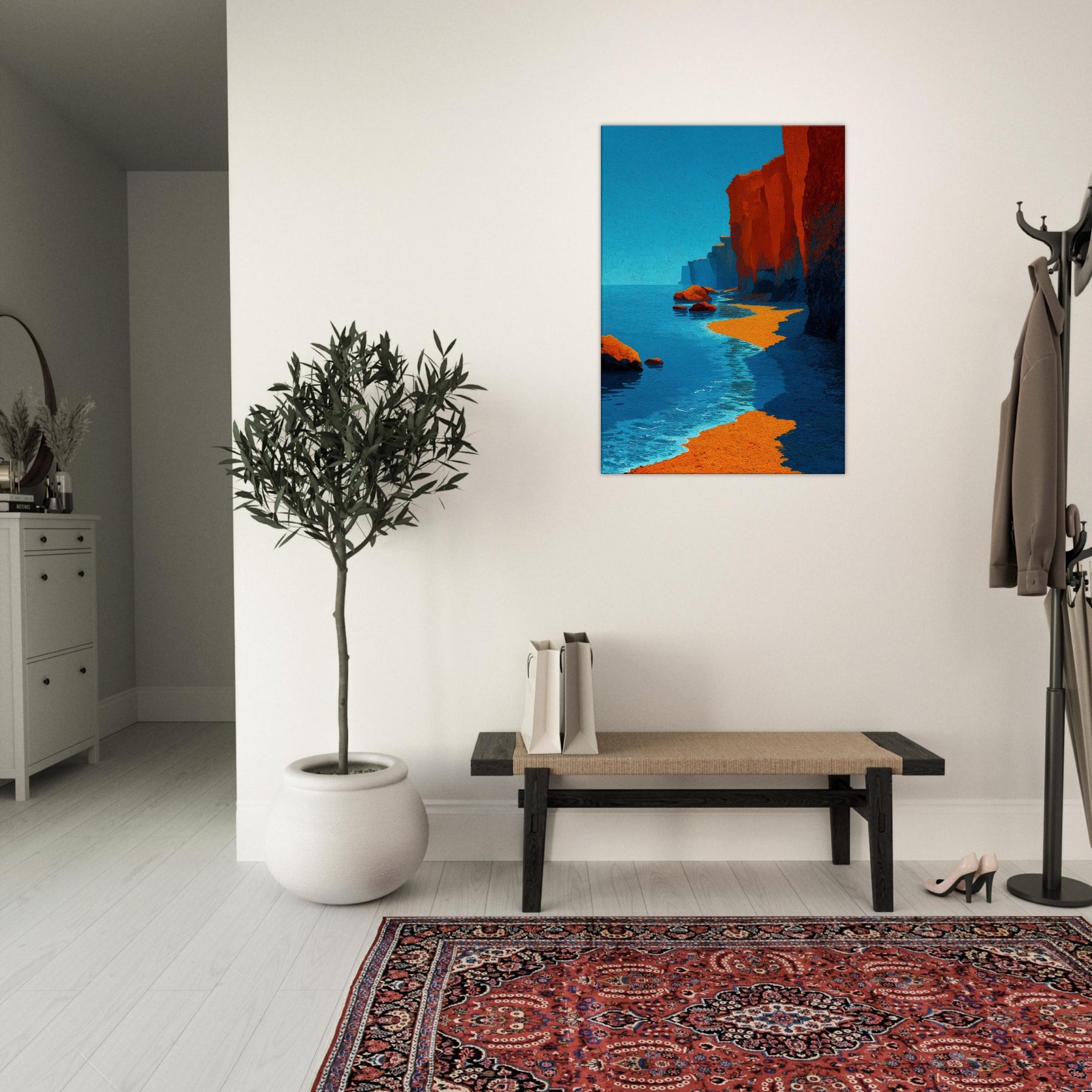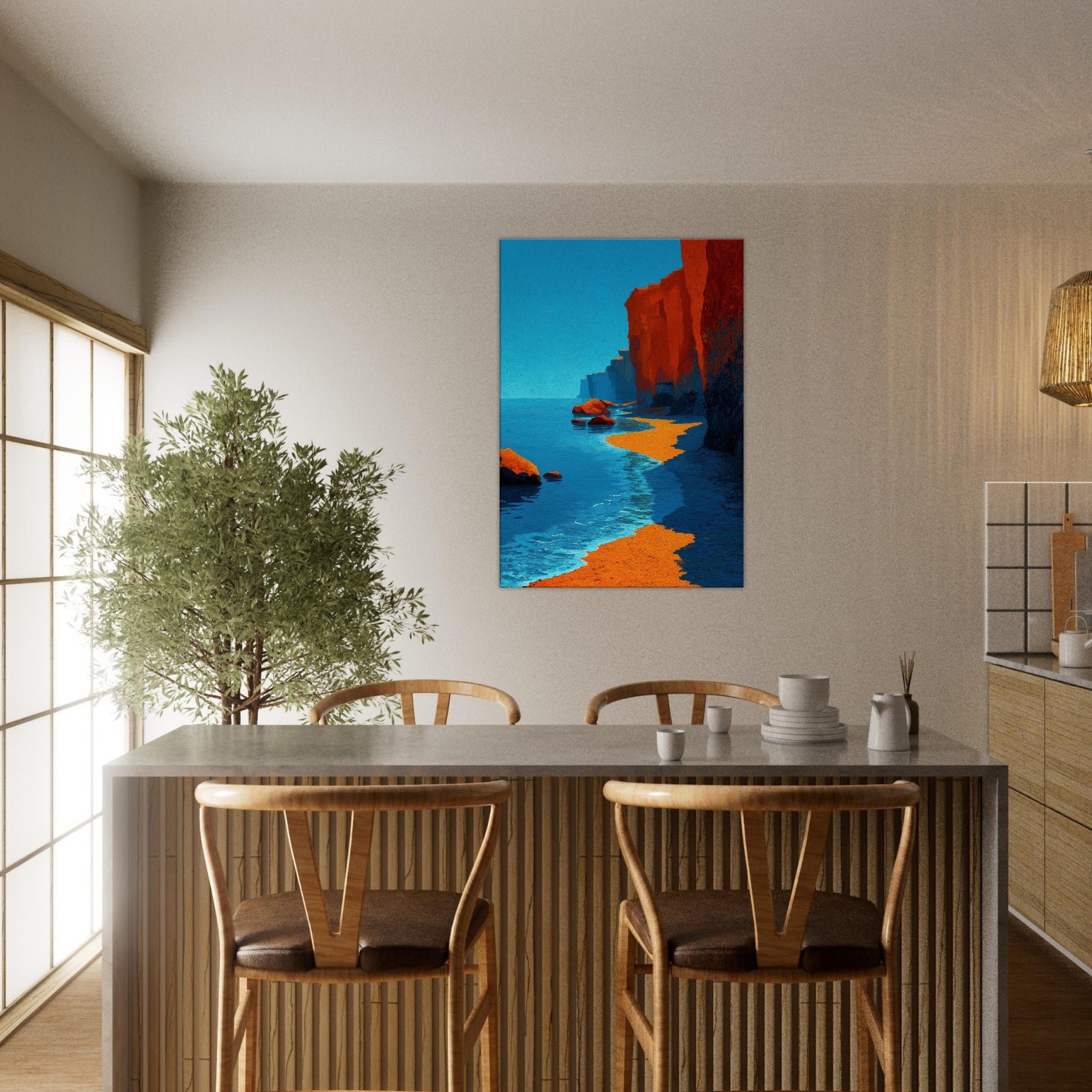 Coastal Cliffs rise in a hypnotic arc of color, turning the sea into a glassy expanse and the horizon into a whisper of heat. This abstract nature study hums with life, where warm ochre rocks meet cool blues in a radiant dialogue of light and shadow. Perfect for a living room or bedroom, it deepens space with mood and movement, inviting quiet contemplation and a sense of boundary less coastline. A refined, gallery worthy accent that elevates everyday moments.