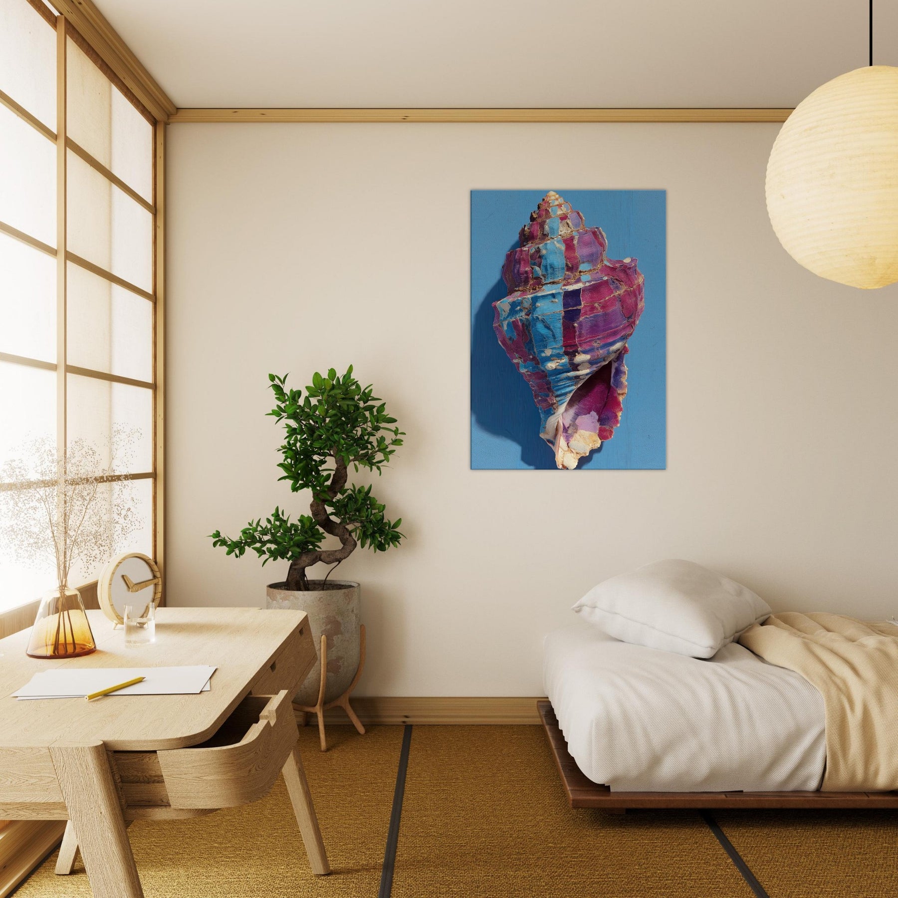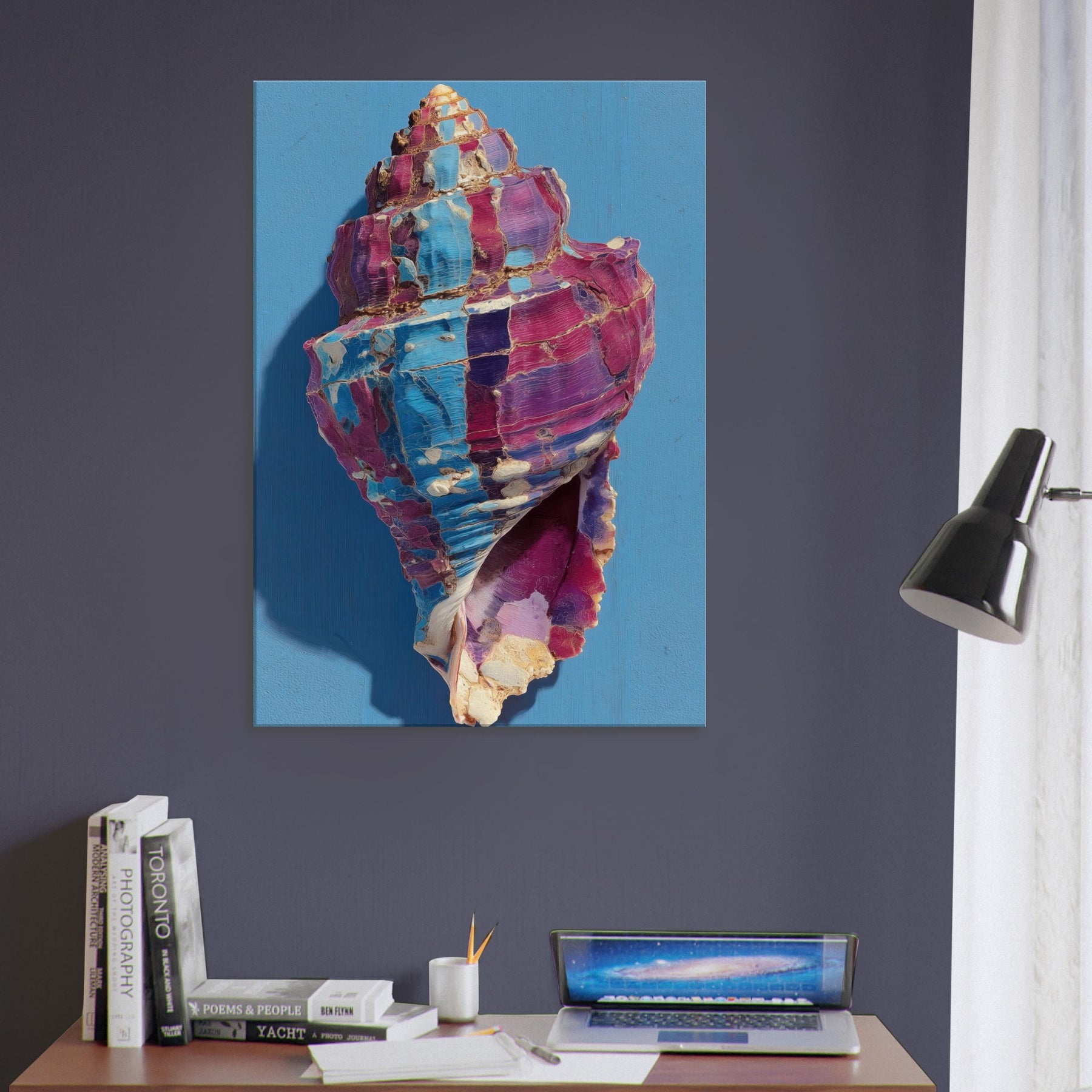Muse on the tide with this seashell inspired abstract wall art, a nature centered study in color and motion. The vessel’s curves ripple in a luminous spectrum turquoise, fuchsia, lavender as if light itself were poured across the surface. It imbues a room with a coastal hush: a soft breeze, sun warmed textures, and the glow of late afternoon water. Perfect for a living room or hallway, it creates depth and calm without competing with other pieces, inviting quiet reflection and a refined, contemporary atmosphere.