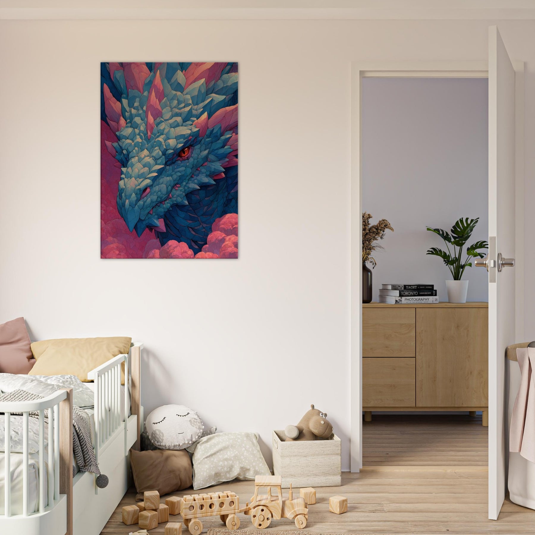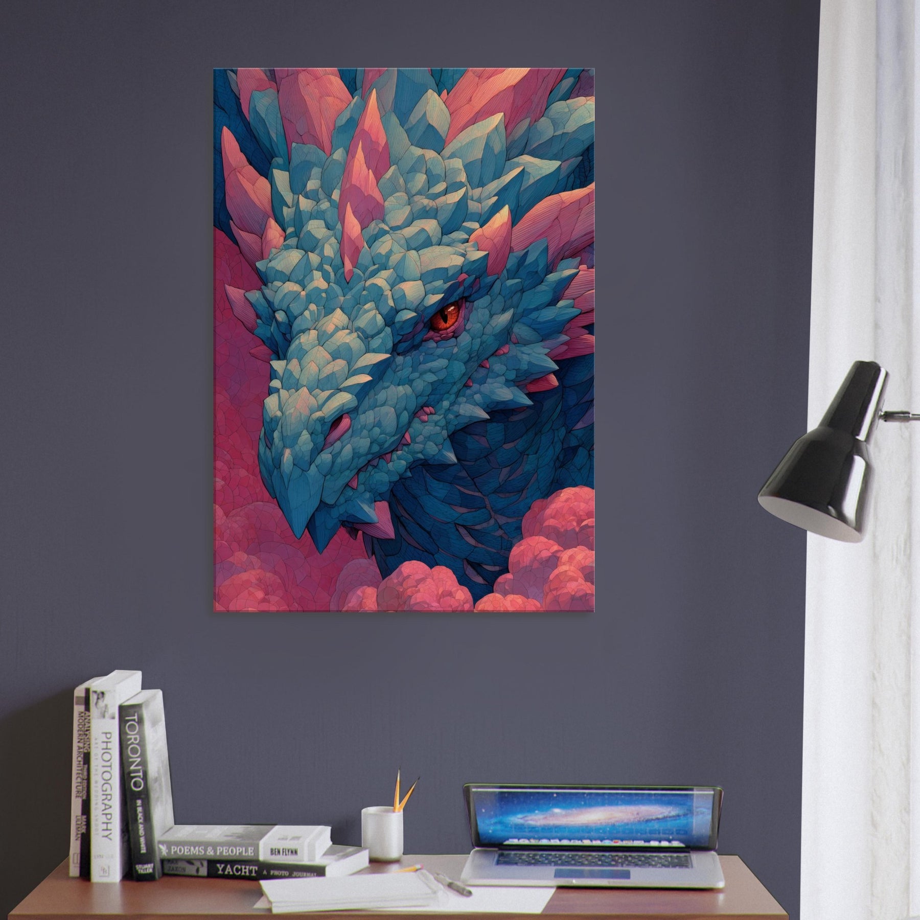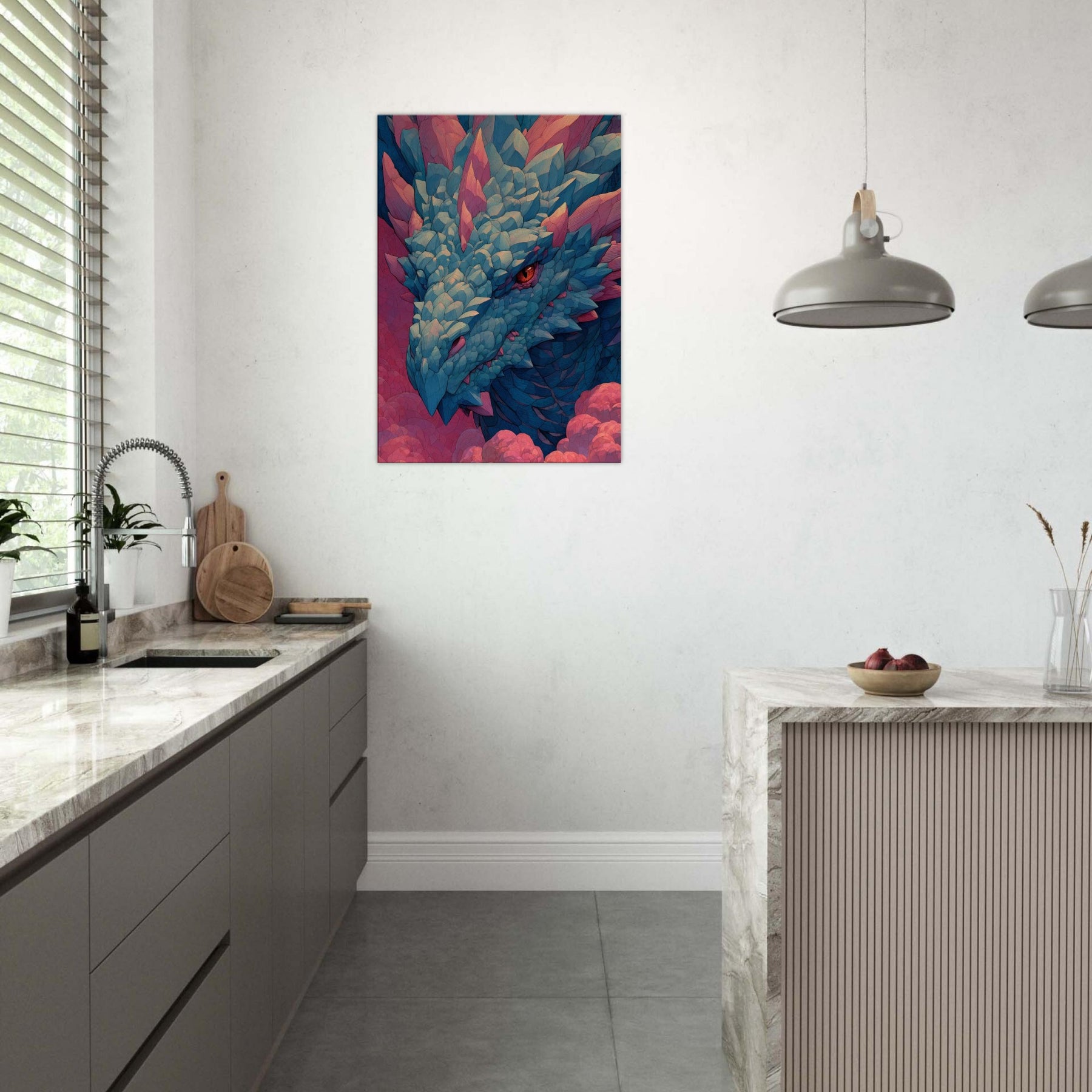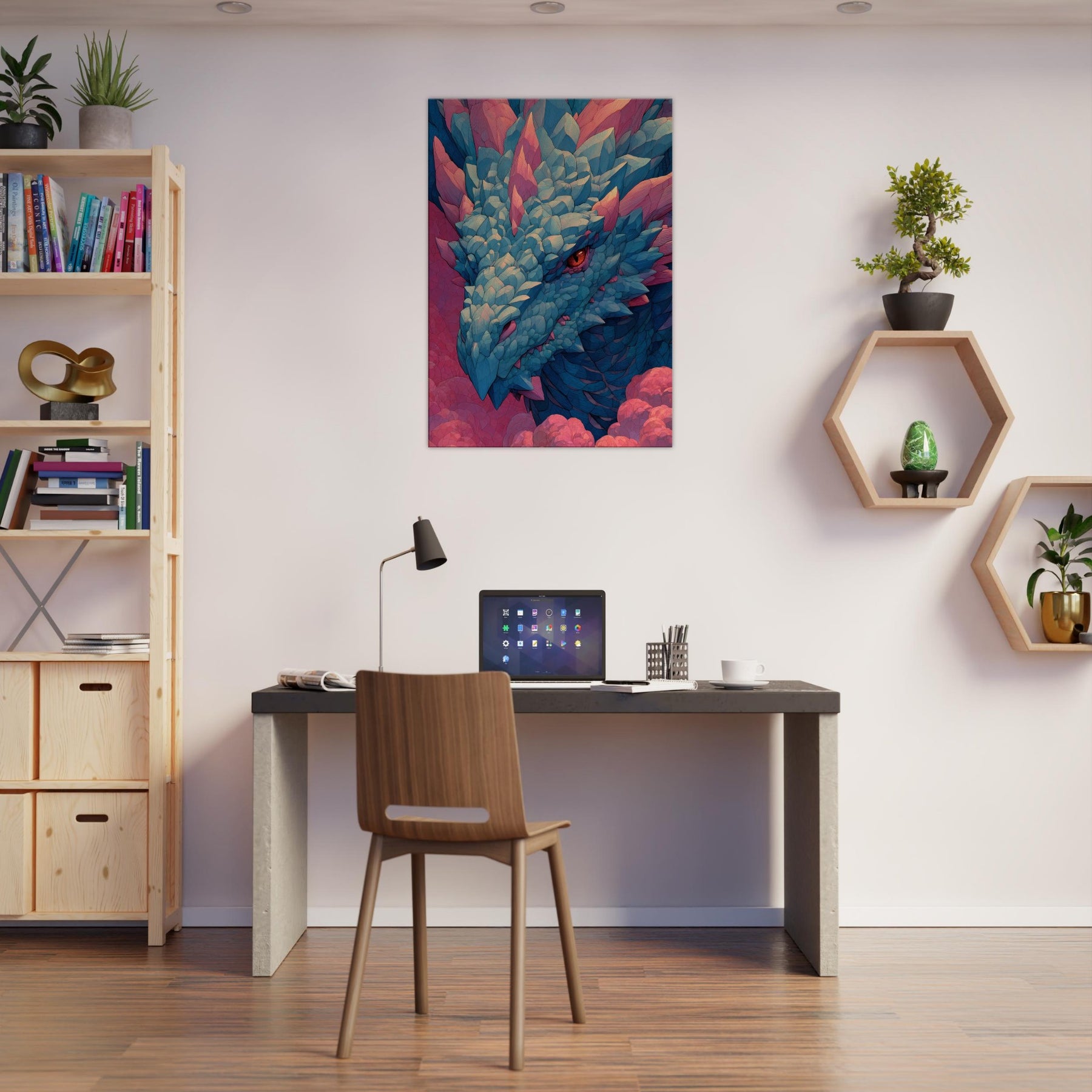 Azure Dragon of the East Flying Through Thunderous Skies glides across a storm lit horizon, inviting a living space into legend. Its azure scales shimmer with electric blues and pink rose highlights, while jagged shapes suggest wind and lightning. The composition hums with motion, balancing calm with seismic energy. Hang this piece in a sunlit living room or a moody study to spark imagination, invite conversation, and elevate your space with a bold, mythical aura.