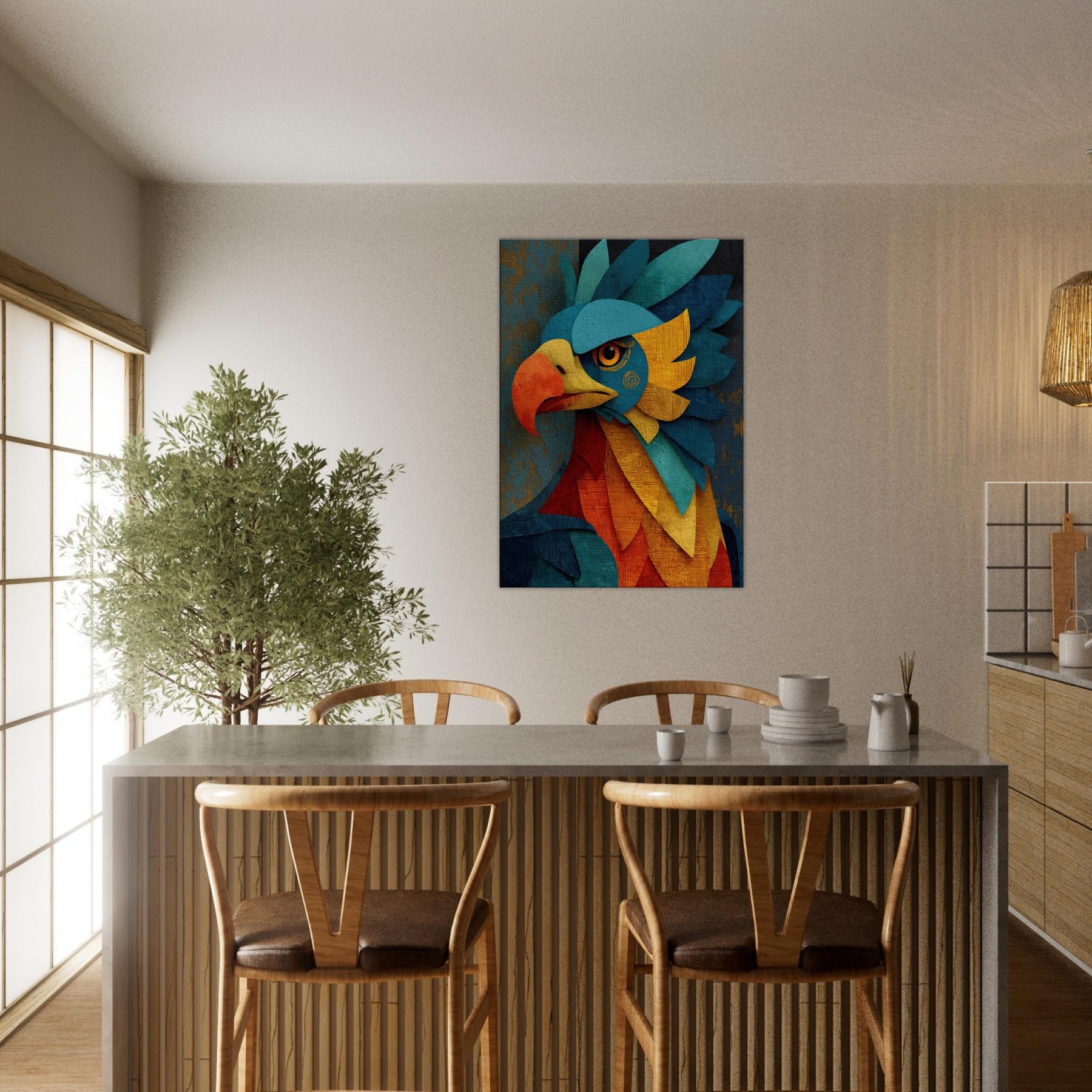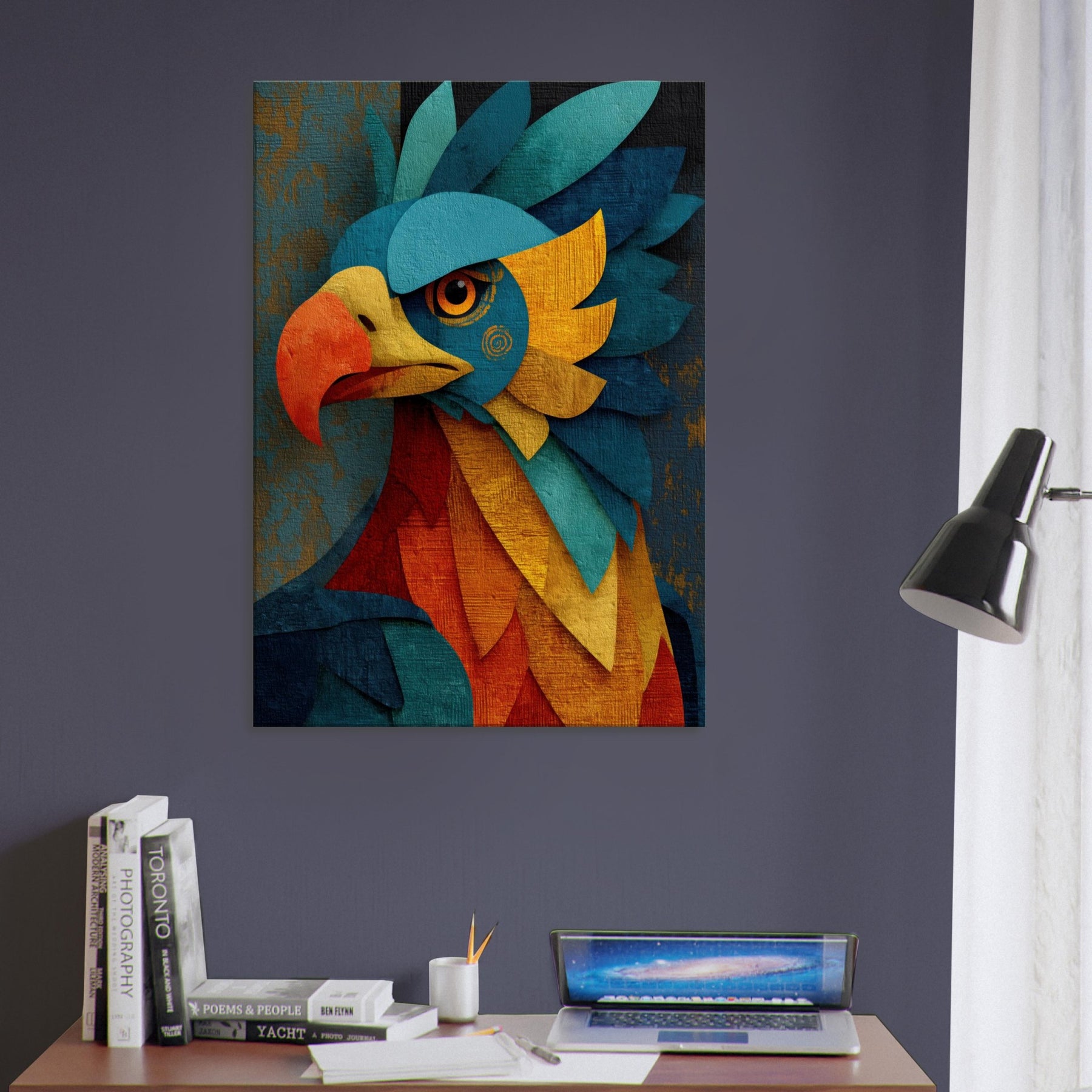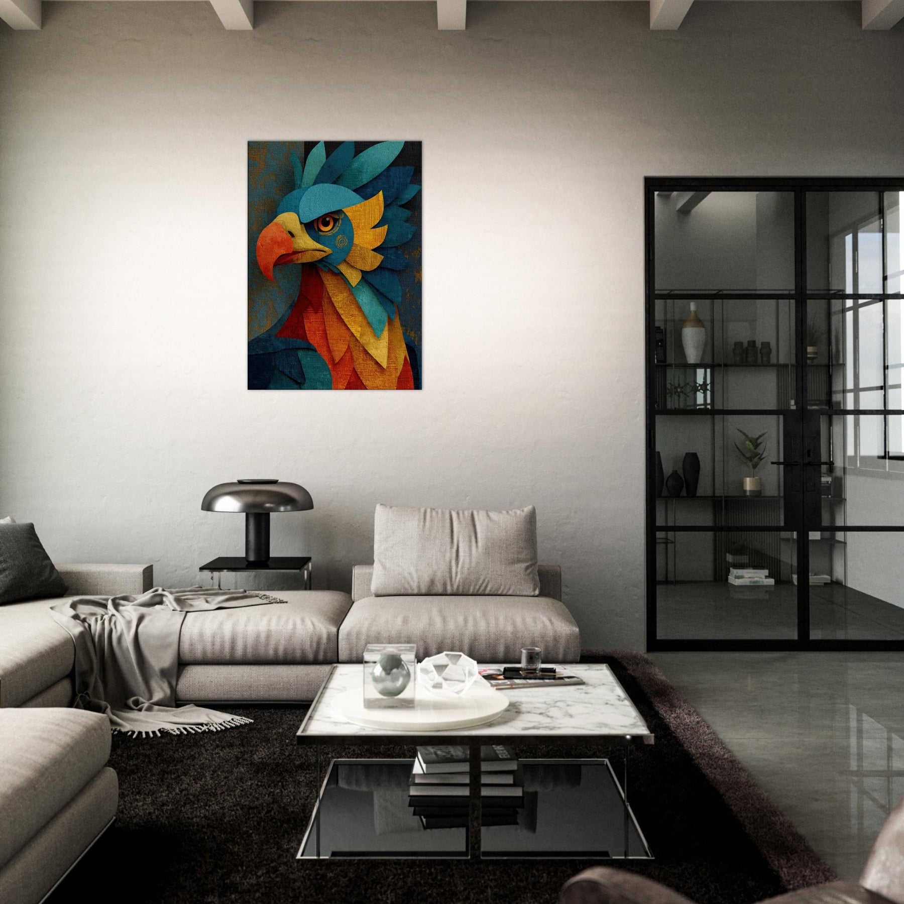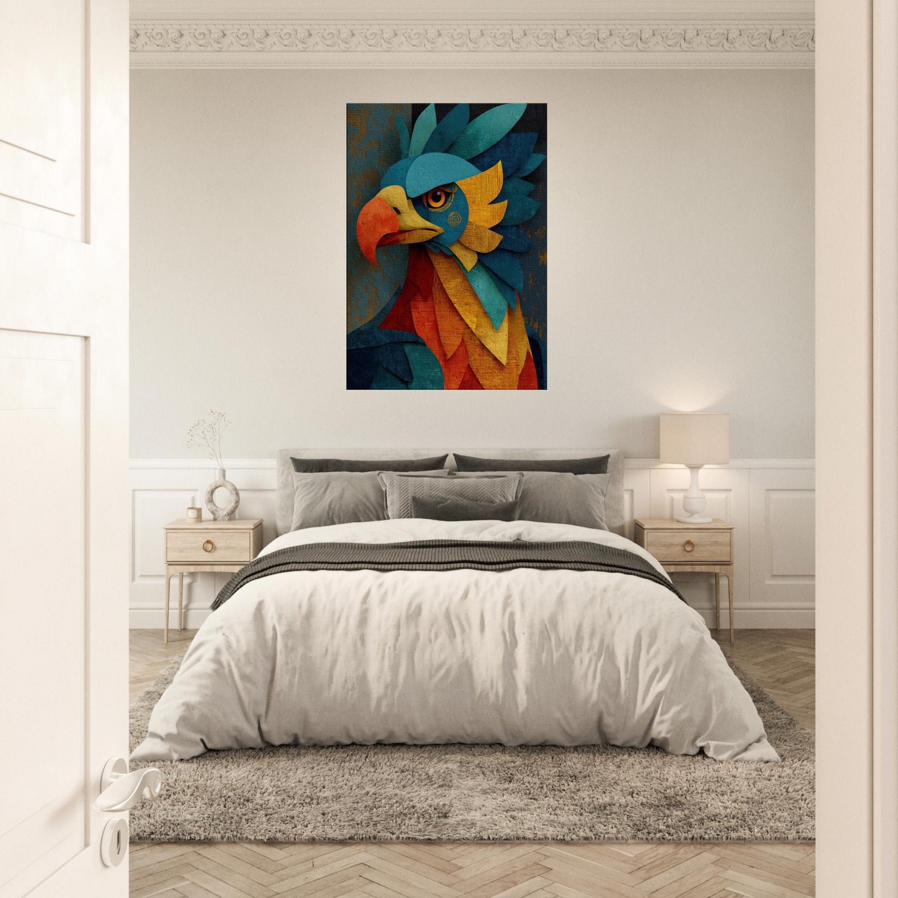 Emerging from a cascade of jewel toned shapes, this Griffin conjures a dreamlike dawn for any room. Layers of teal, cyan, gold, and fiery orange glide across the canvas, inviting the eye to wander and the mind to relax. The abstract composition hums with mythic power, blending ancient legend with contemporary texture to create a living space that feels both adventurous and serene. Hang it where light softens the edges of daily life, and let the Griffin guard your quiet moments.