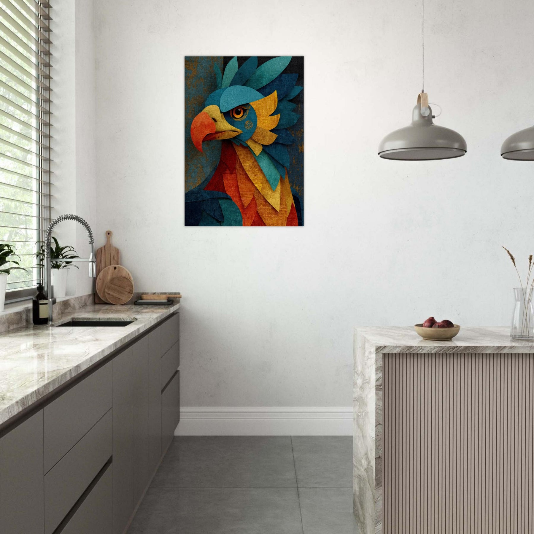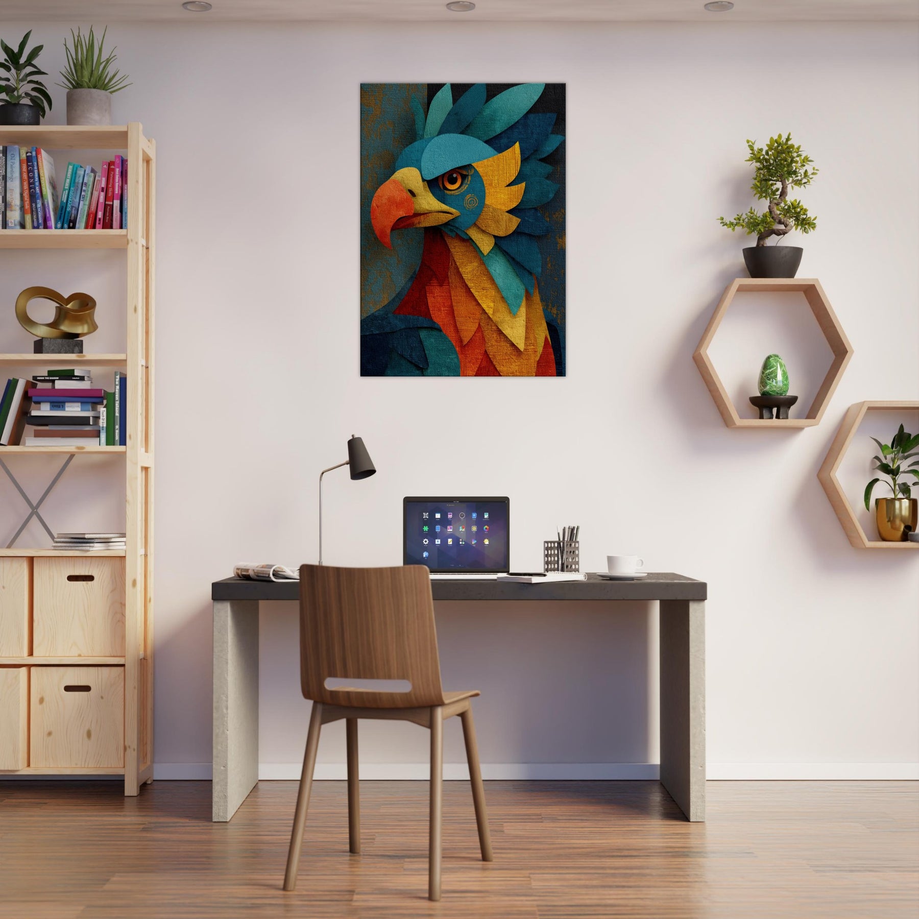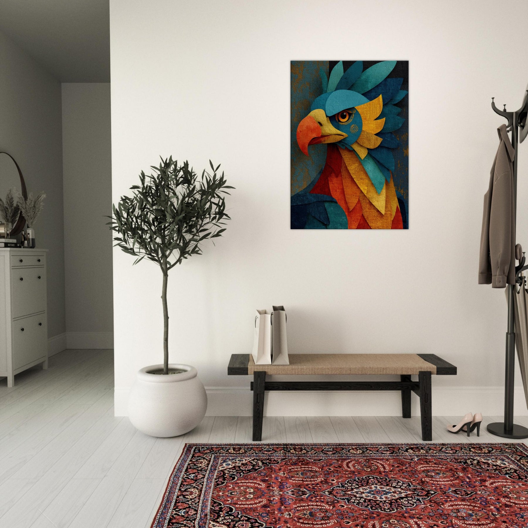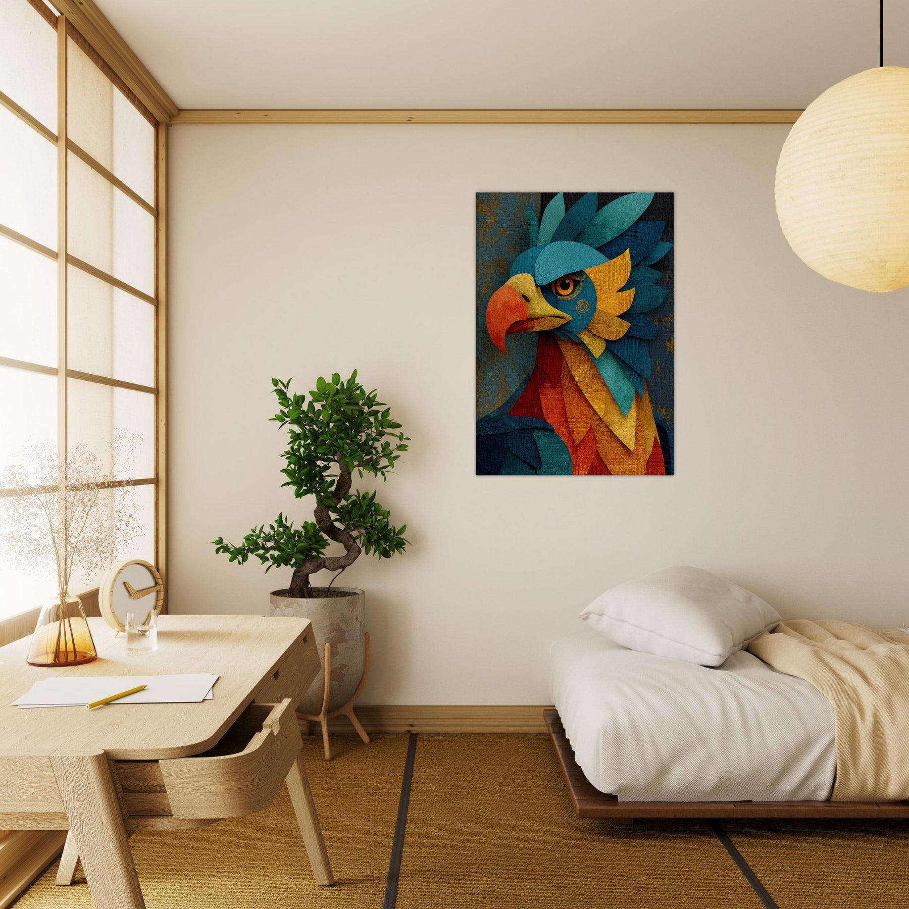Emerging from a cascade of jewel toned shapes, this Griffin conjures a dreamlike dawn for any room. Layers of teal, cyan, gold, and fiery orange glide across the canvas, inviting the eye to wander and the mind to relax. The abstract composition hums with mythic power, blending ancient legend with contemporary texture to create a living space that feels both adventurous and serene. Hang it where light softens the edges of daily life, and let the Griffin guard your quiet moments.