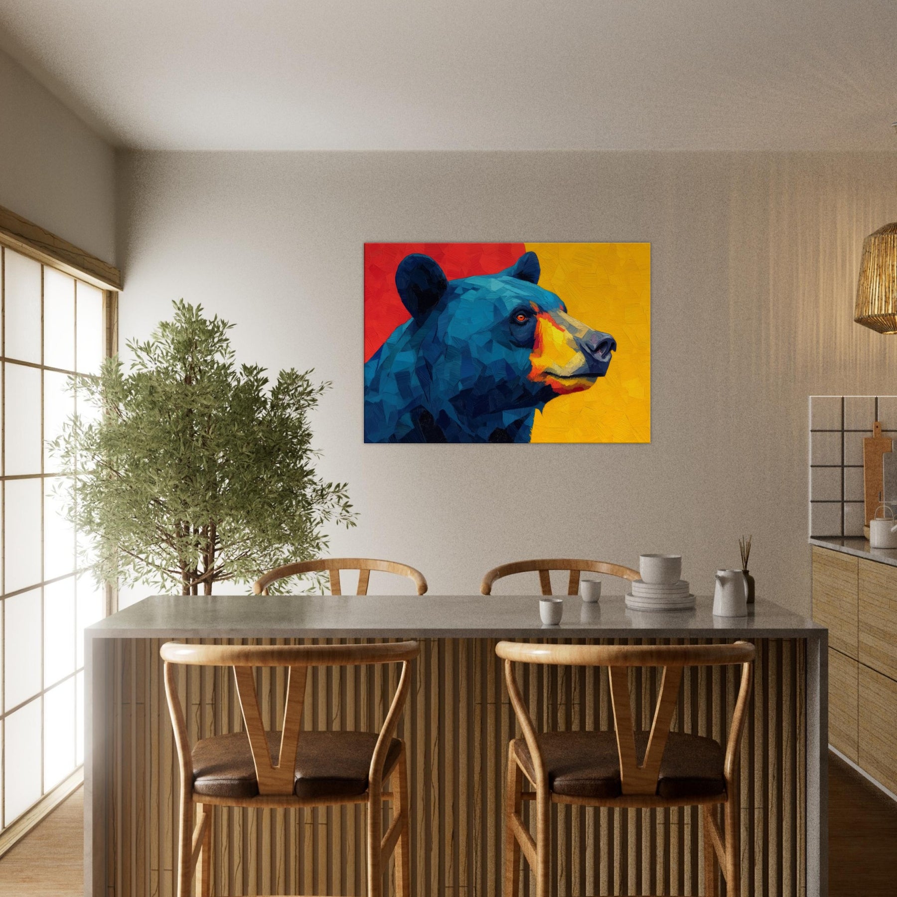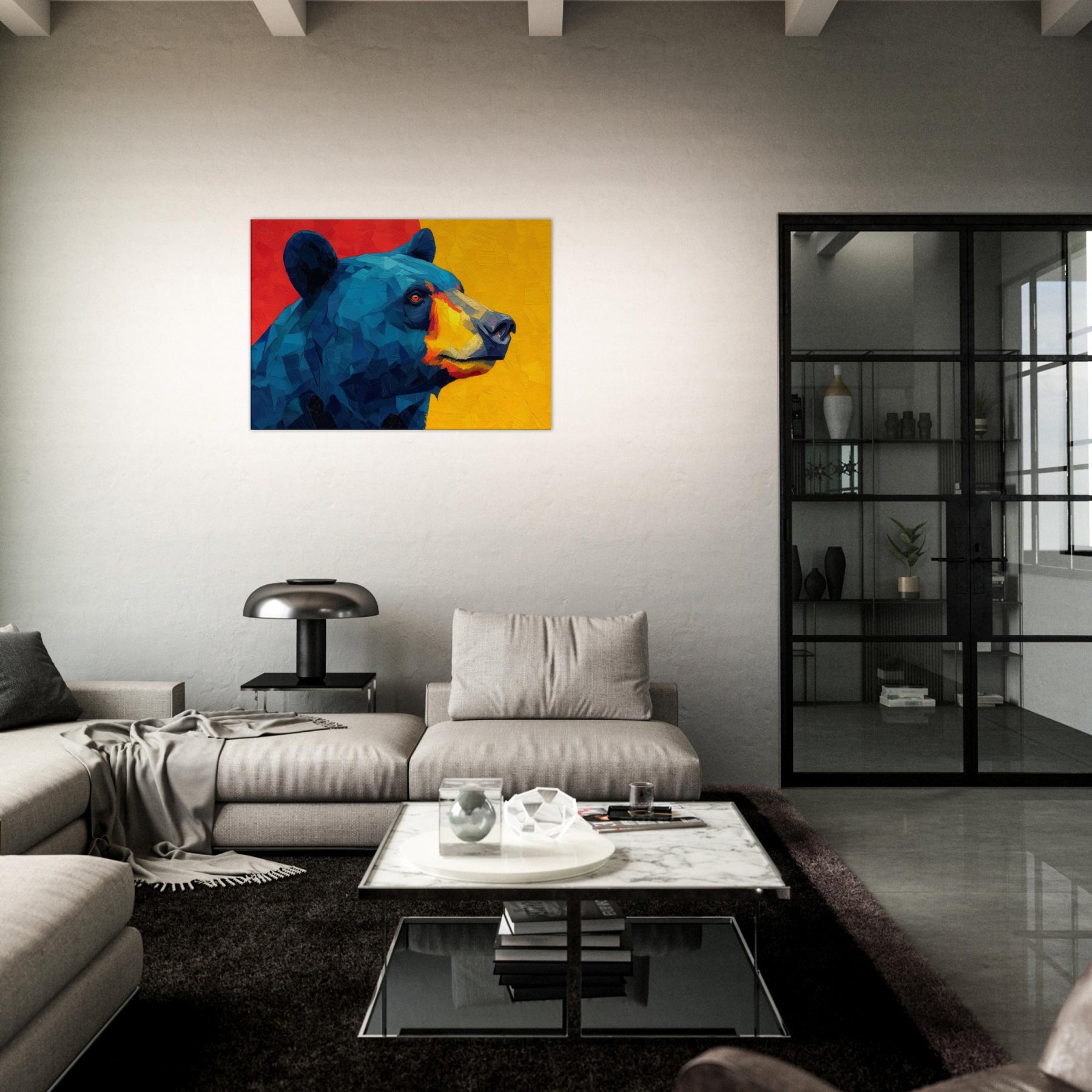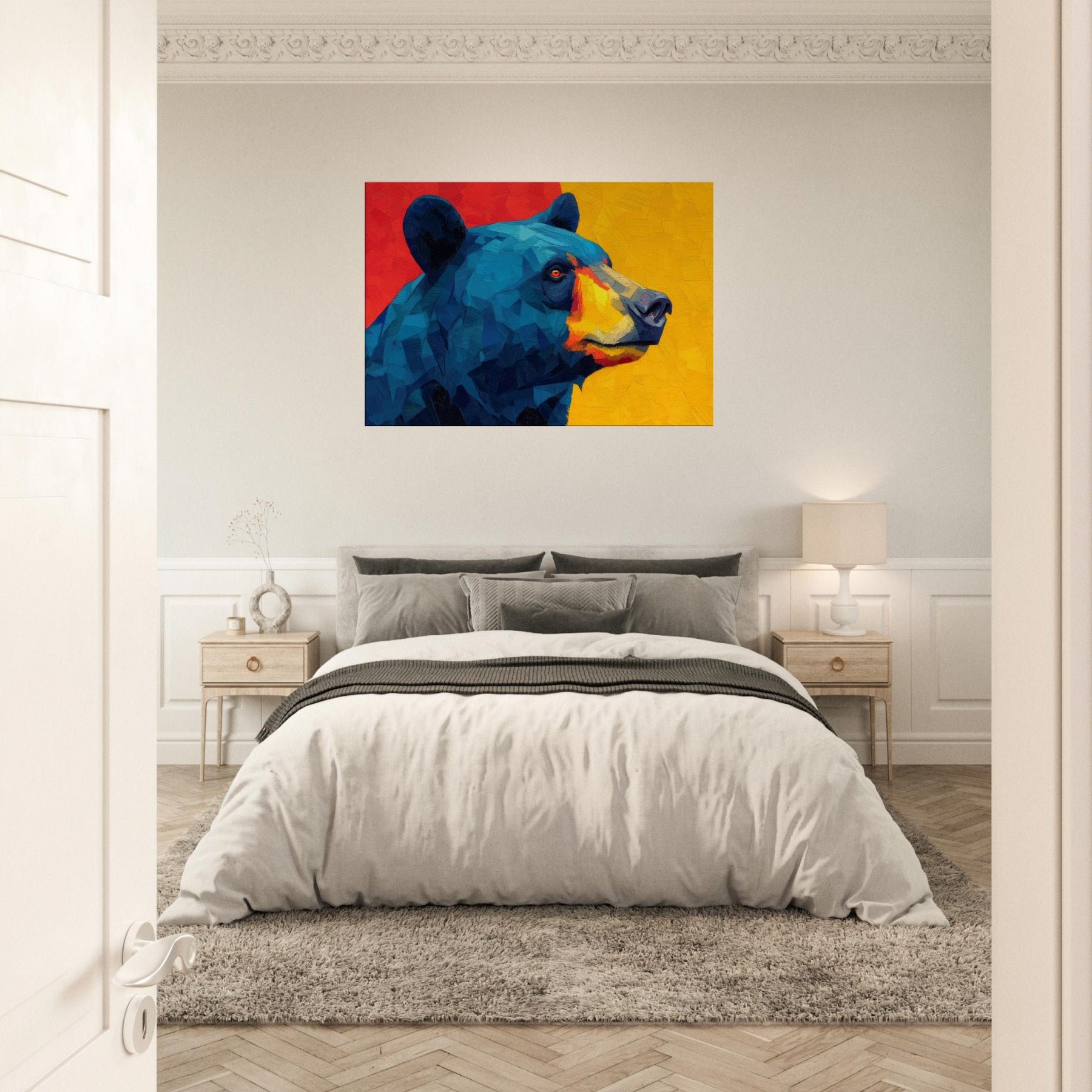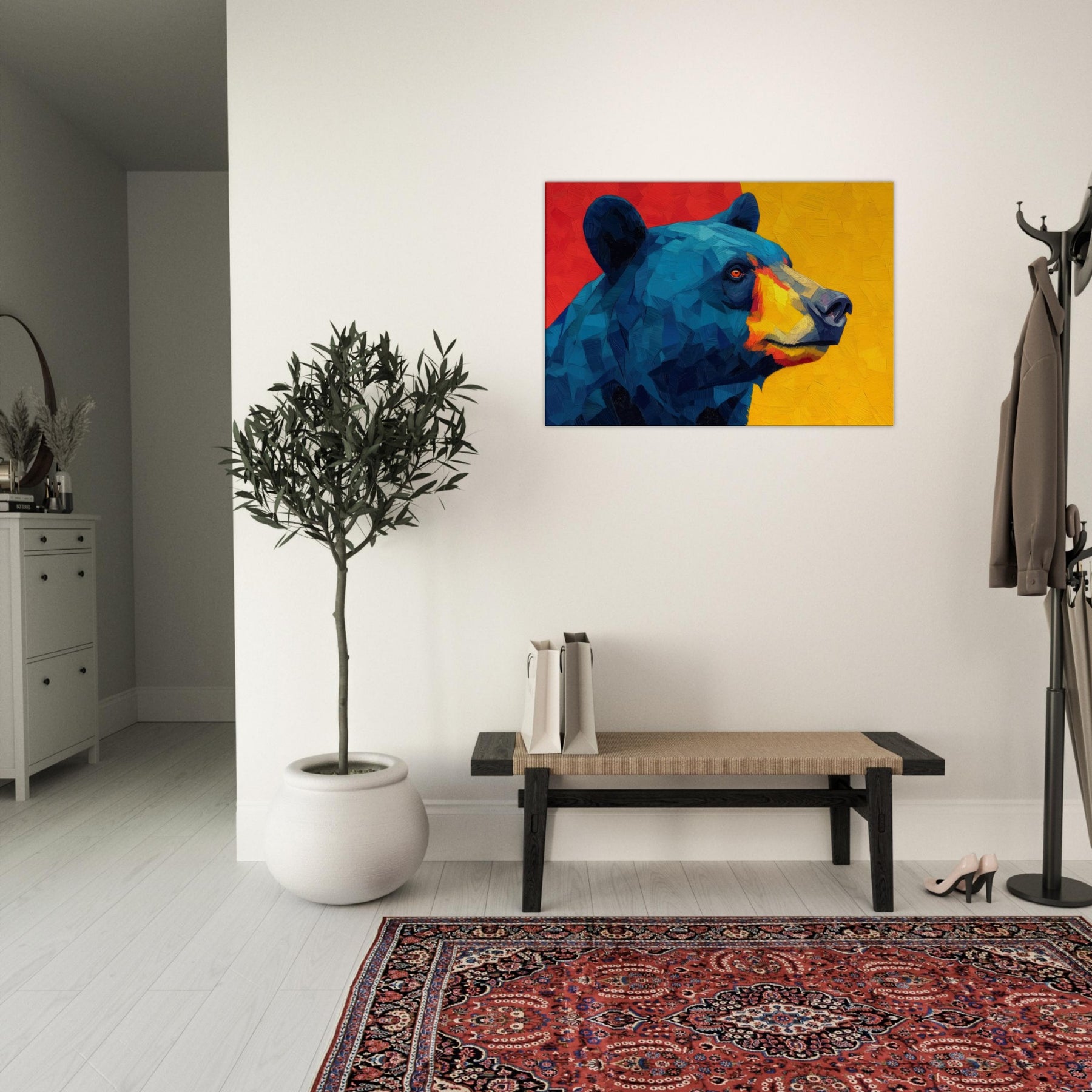 An abstract study of presence and motion, this Bear baths a room in electric contrast and quiet strength. The cool blues pull the eye inward while warm yellows and fiery accents ripple across the bear’s muzzle, tinting the air with dawn like energy. It invites meditative focus one moment and a spark of conversation the next, turning living spaces into intimate galleries. Perfect above a sofa or in a hallway niche, it anchors color, texture, and mood a living, breathing piece that transforms how you feel in the room.