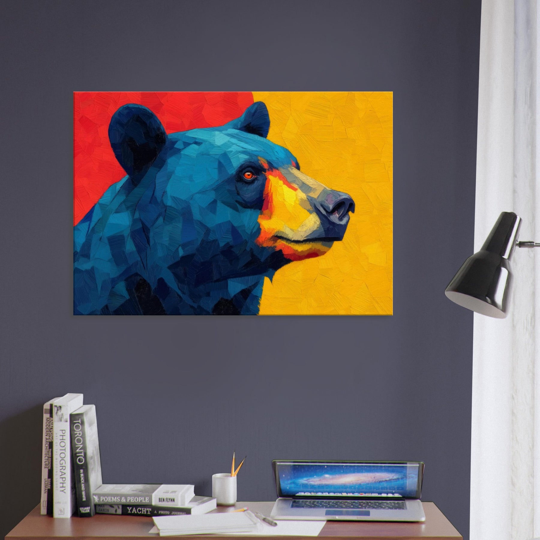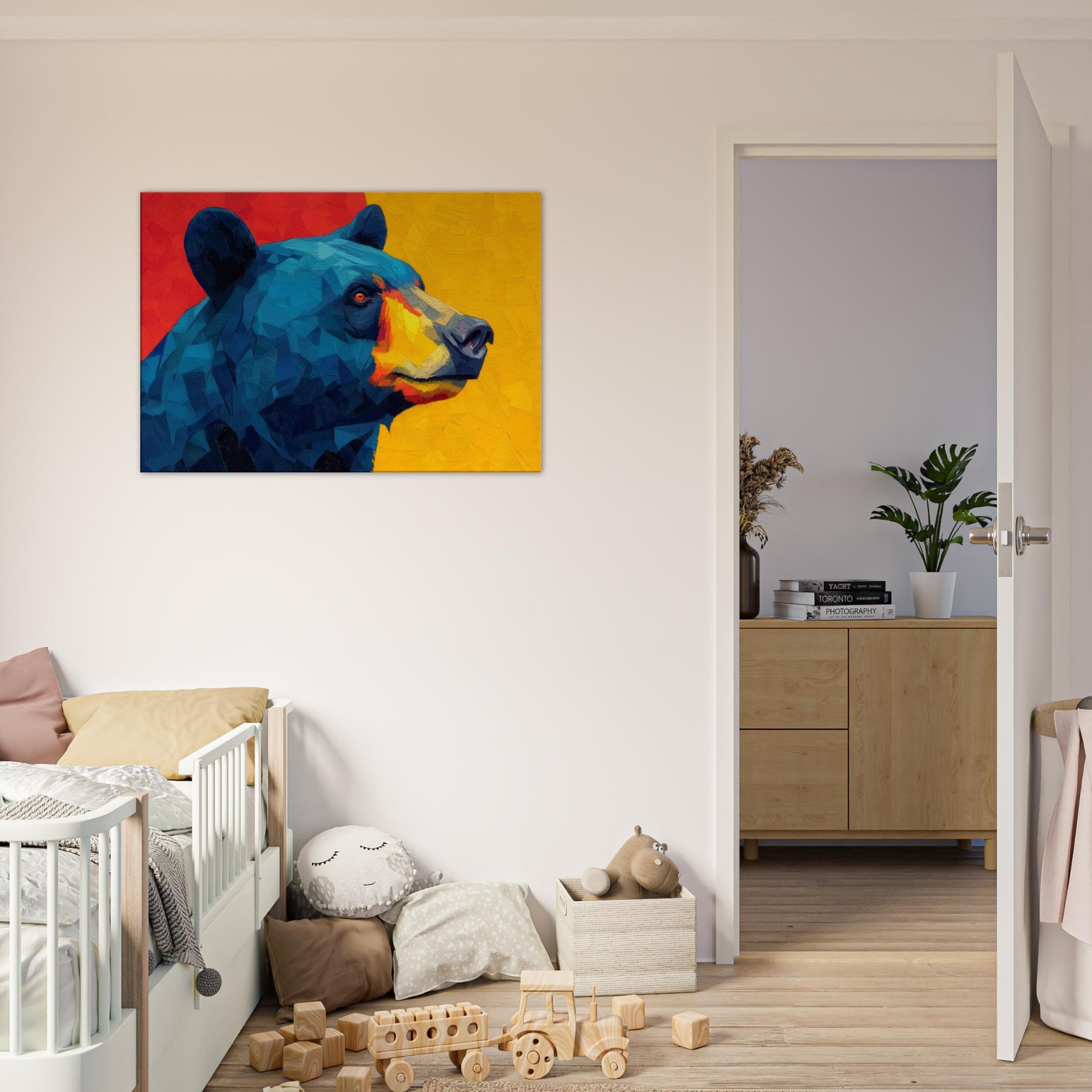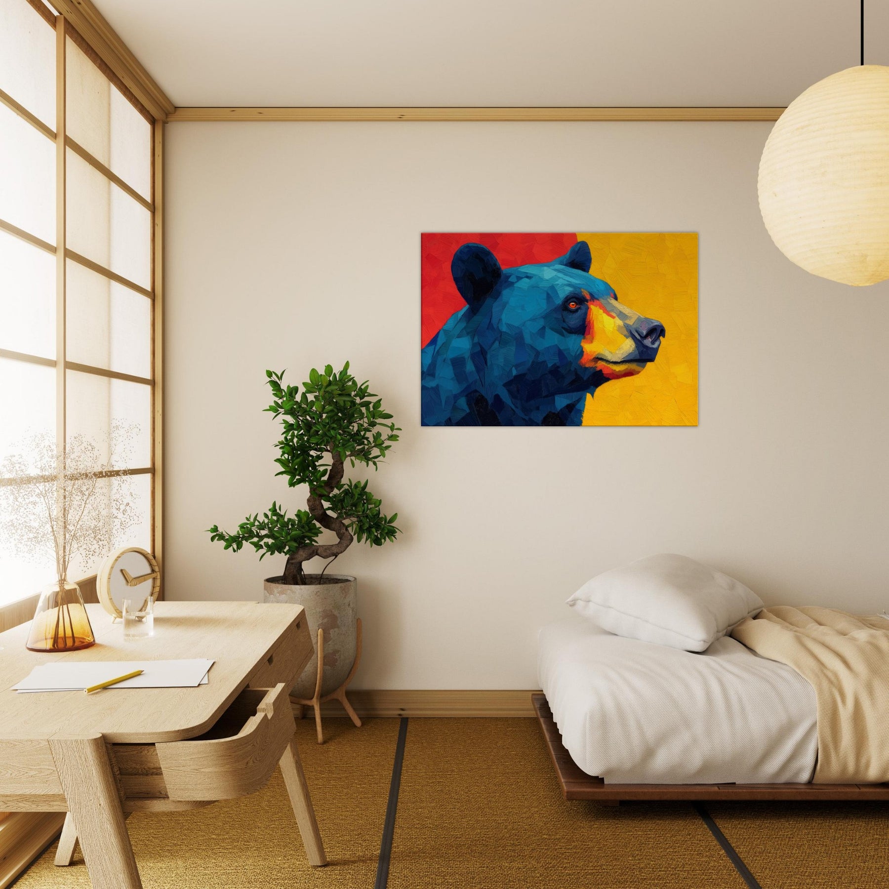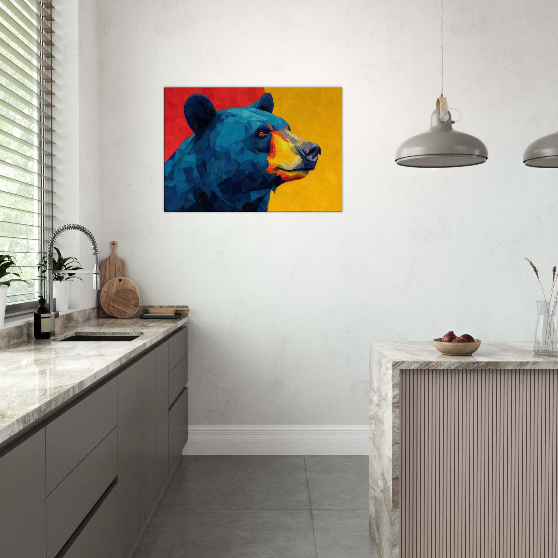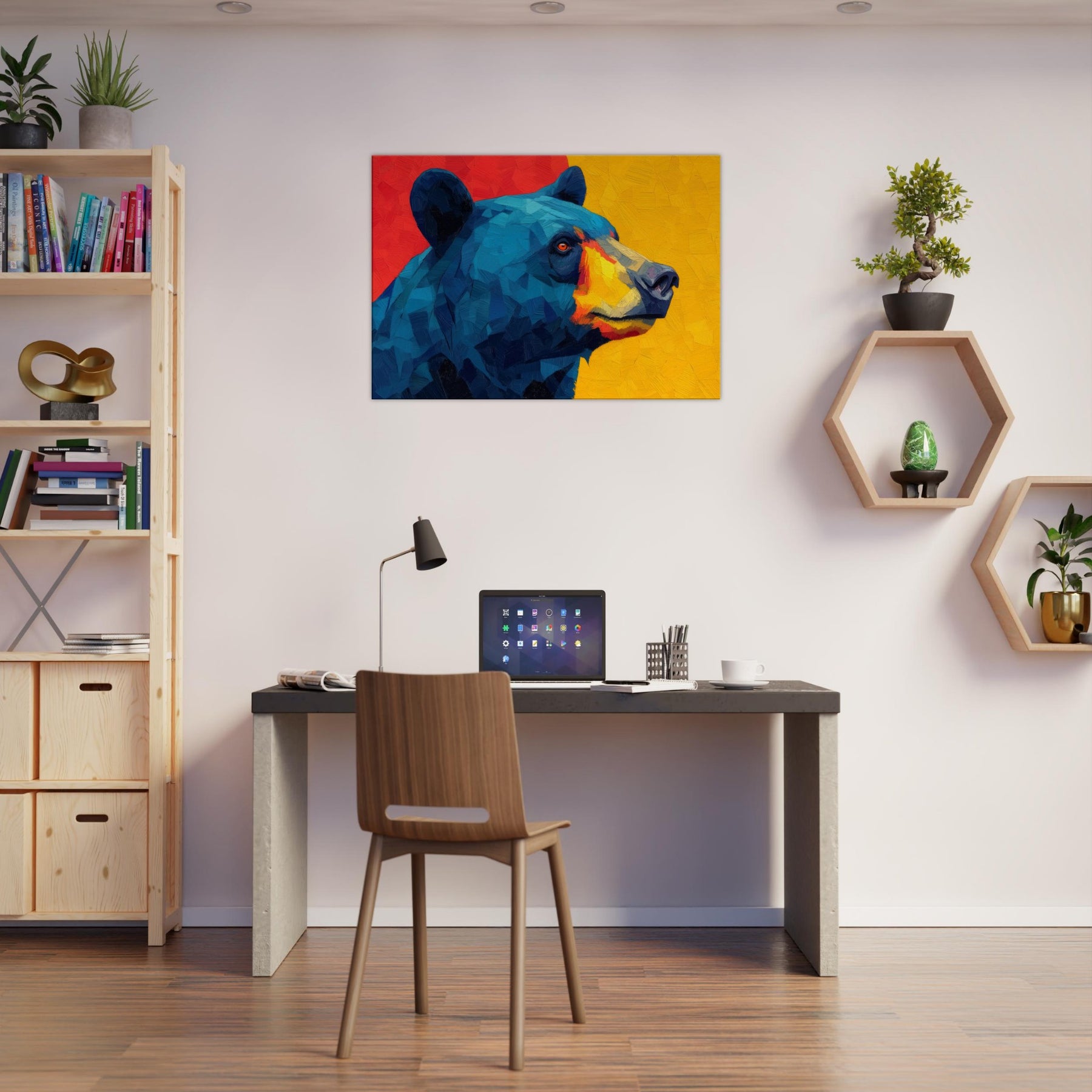 An abstract study of presence and motion, this Bear baths a room in electric contrast and quiet strength. The cool blues pull the eye inward while warm yellows and fiery accents ripple across the bear’s muzzle, tinting the air with dawn like energy. It invites meditative focus one moment and a spark of conversation the next, turning living spaces into intimate galleries. Perfect above a sofa or in a hallway niche, it anchors color, texture, and mood a living, breathing piece that transforms how you feel in the room.