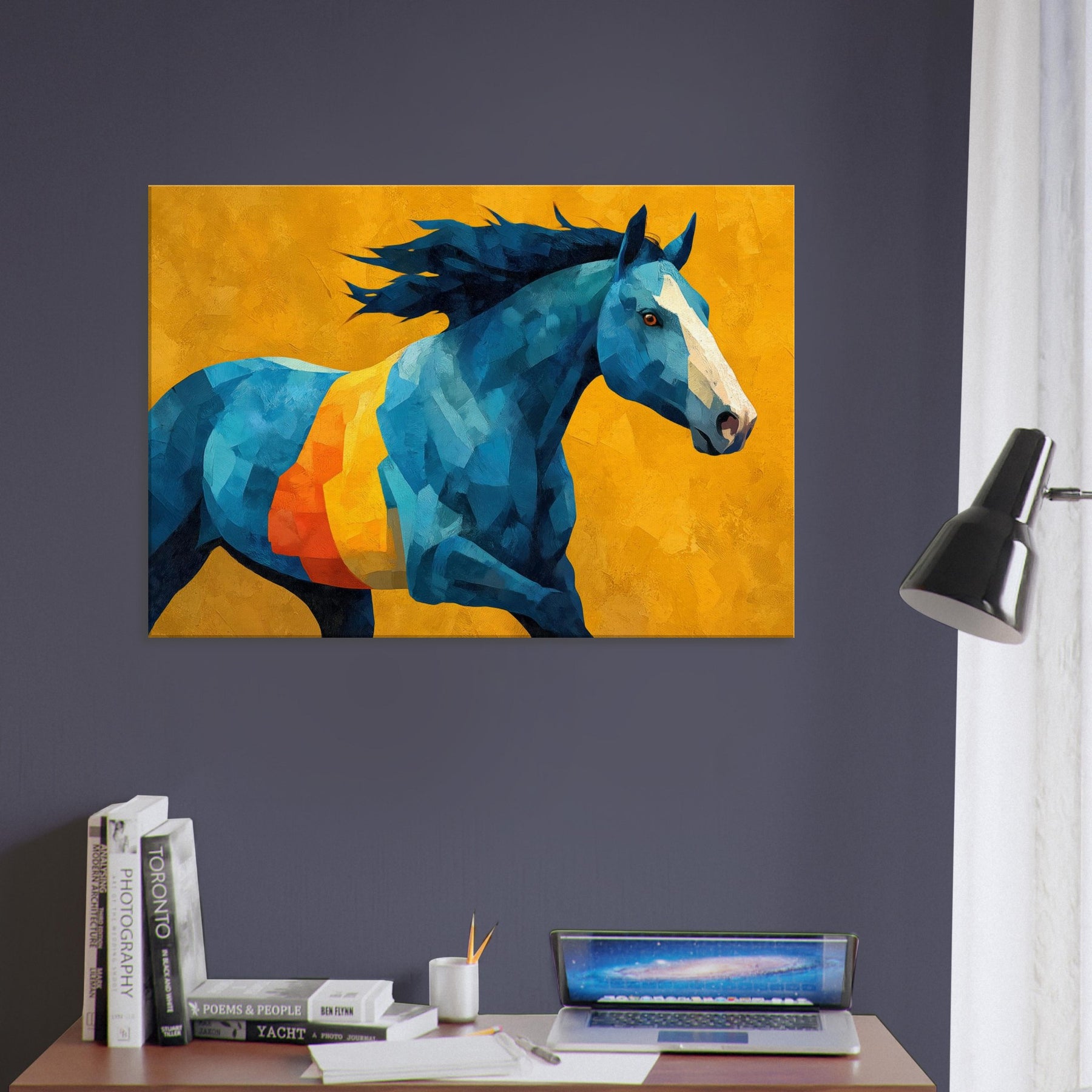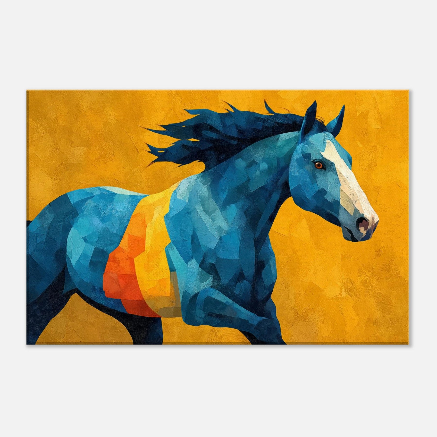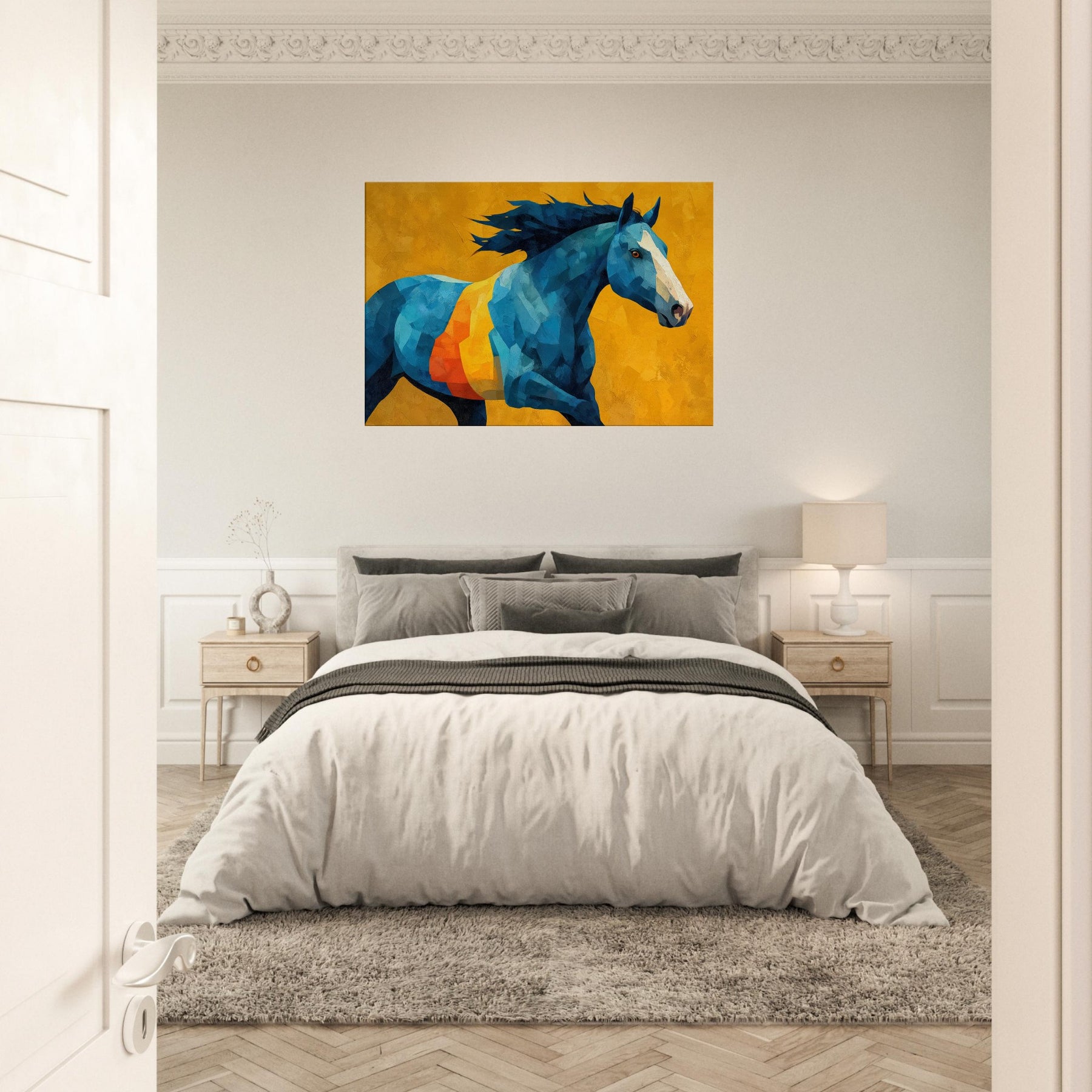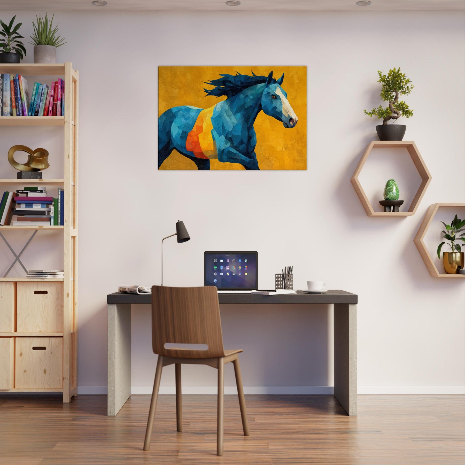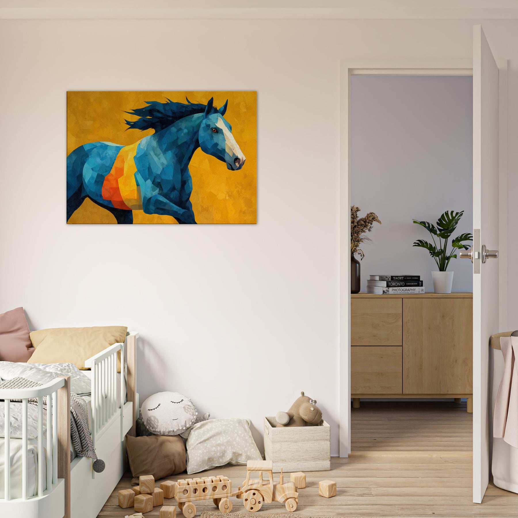 This Horse becomes a lyric of motion, its blue facets catching light and breaking into warm orange shards. Against a sunlit backdrop, it radiates energy and grace, inviting your room to breathe with every glance. The abstract form suggests speed, patience, and a wild heart, turning walls into a gallery of courage and color. Place it where daylight or lamps trace its contours, and let the space feel alive, modern, and endlessly evocative.