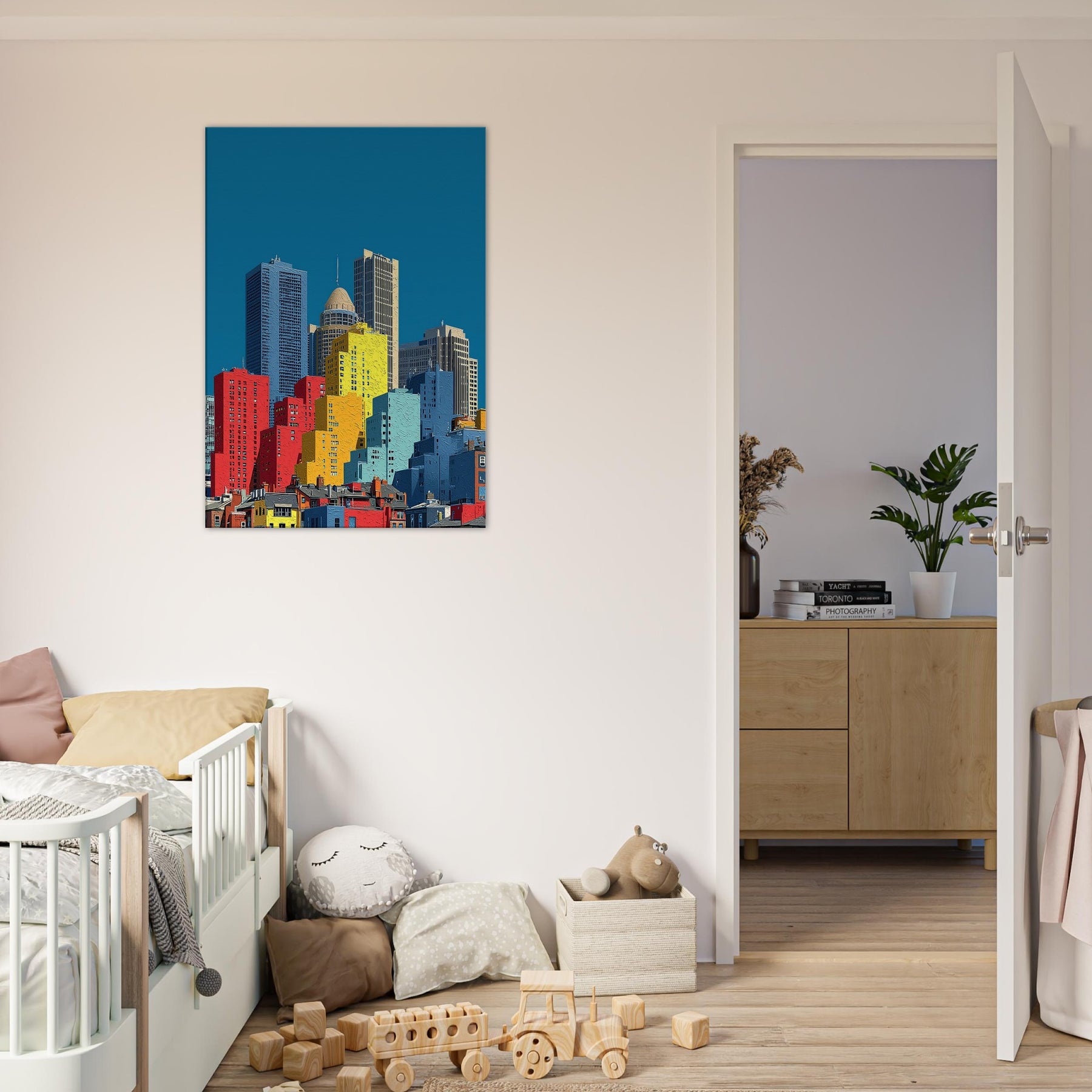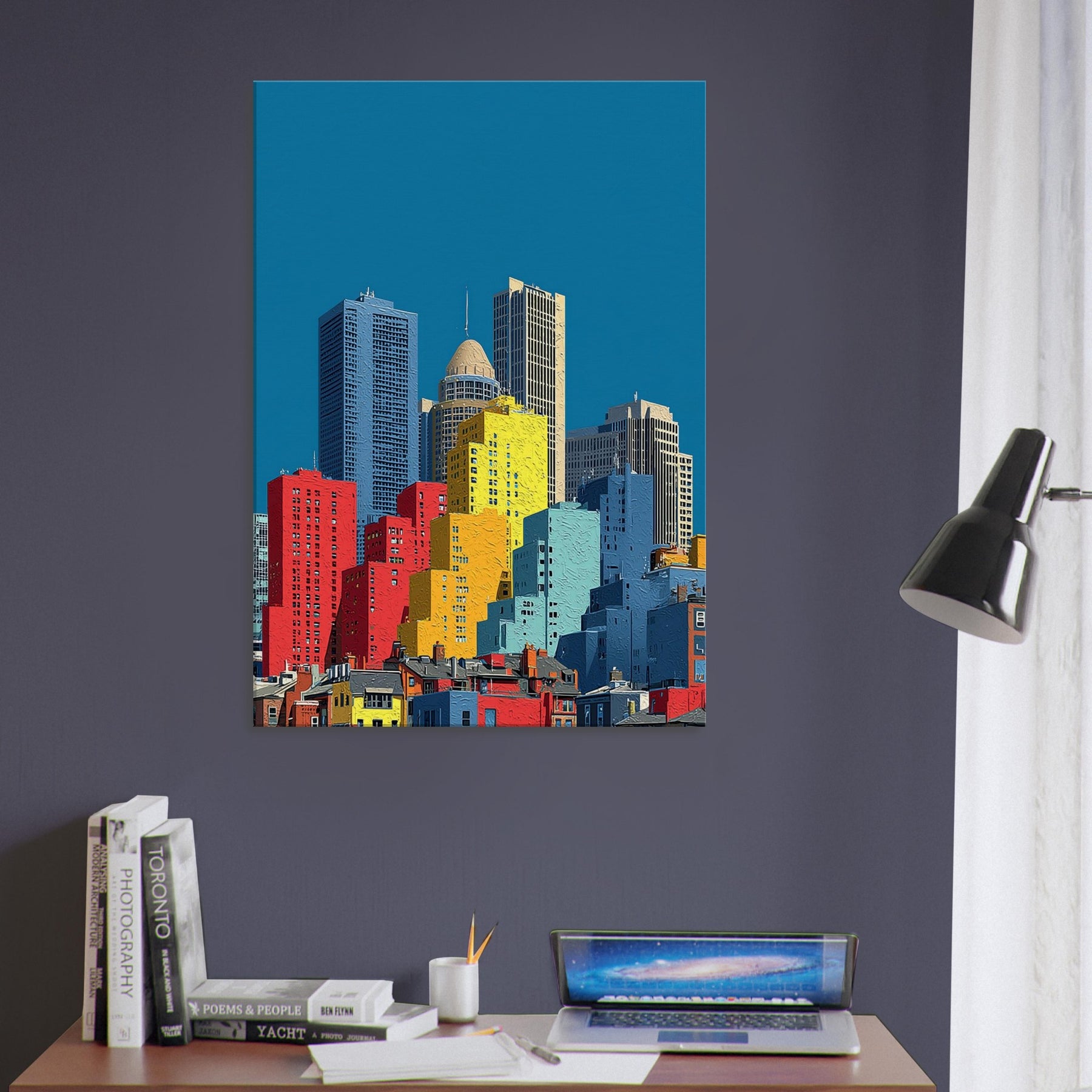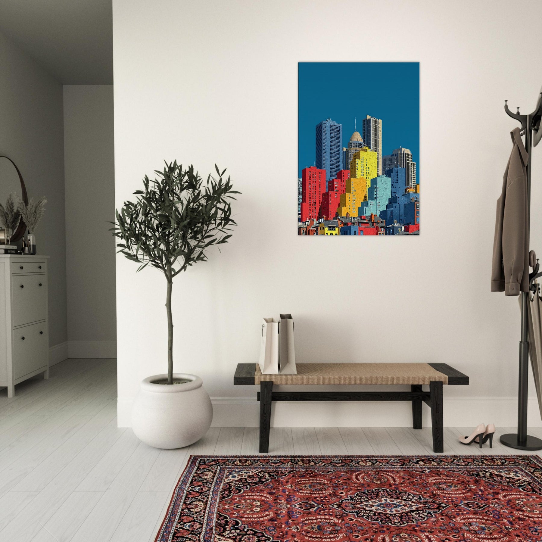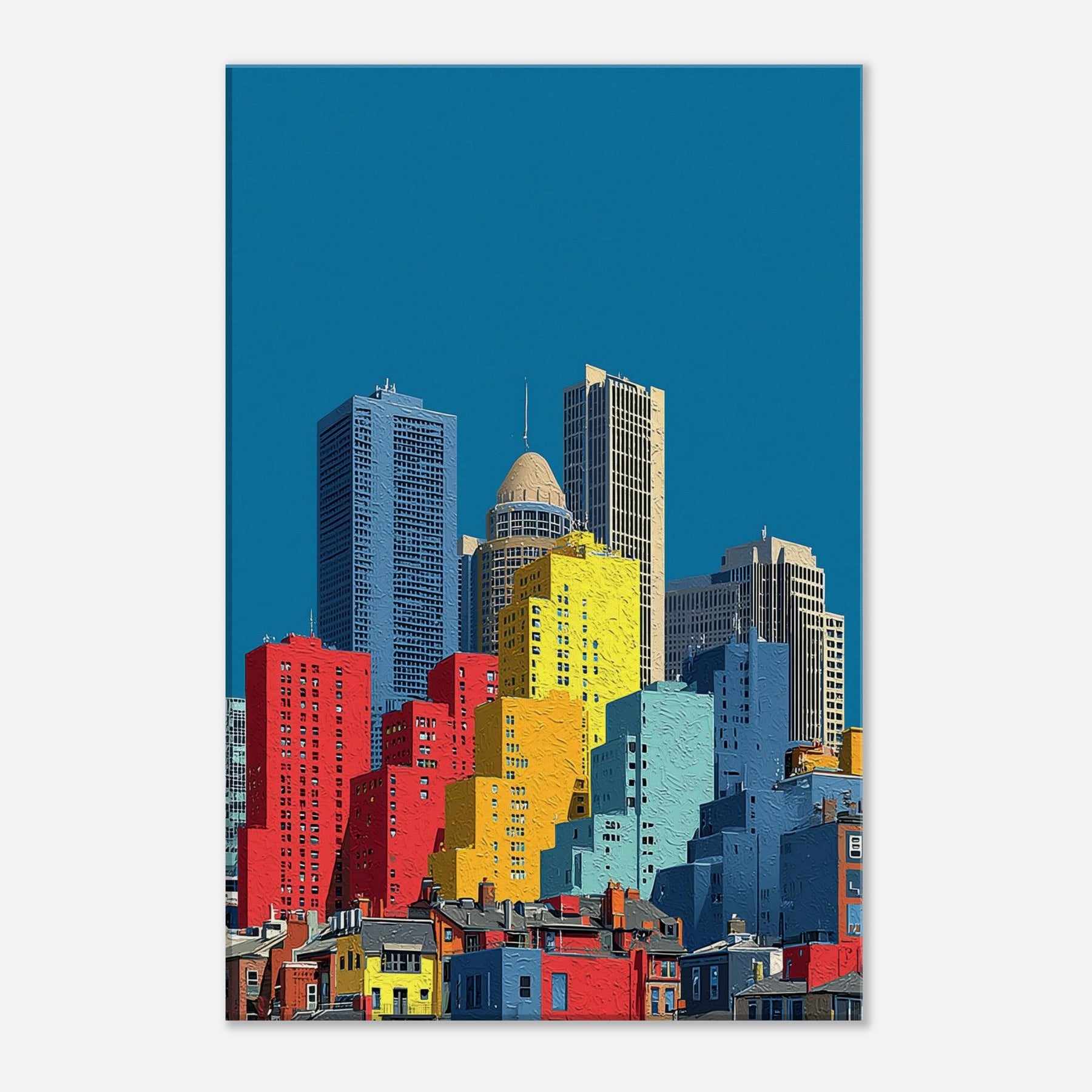 A bold skyline study that turns Boston into a chorus of color. Layered blocks rise like a playful map of memory, where dusk blue skies meet sunlit towers. This print infuses modern living spaces with energy and elegance an urban heartbeat that anchors a cozy corner, sparks conversation, and dresses walls with texture and warmth. Perfect for the living room or study, it invites you to breathe in architecture and dream in color.