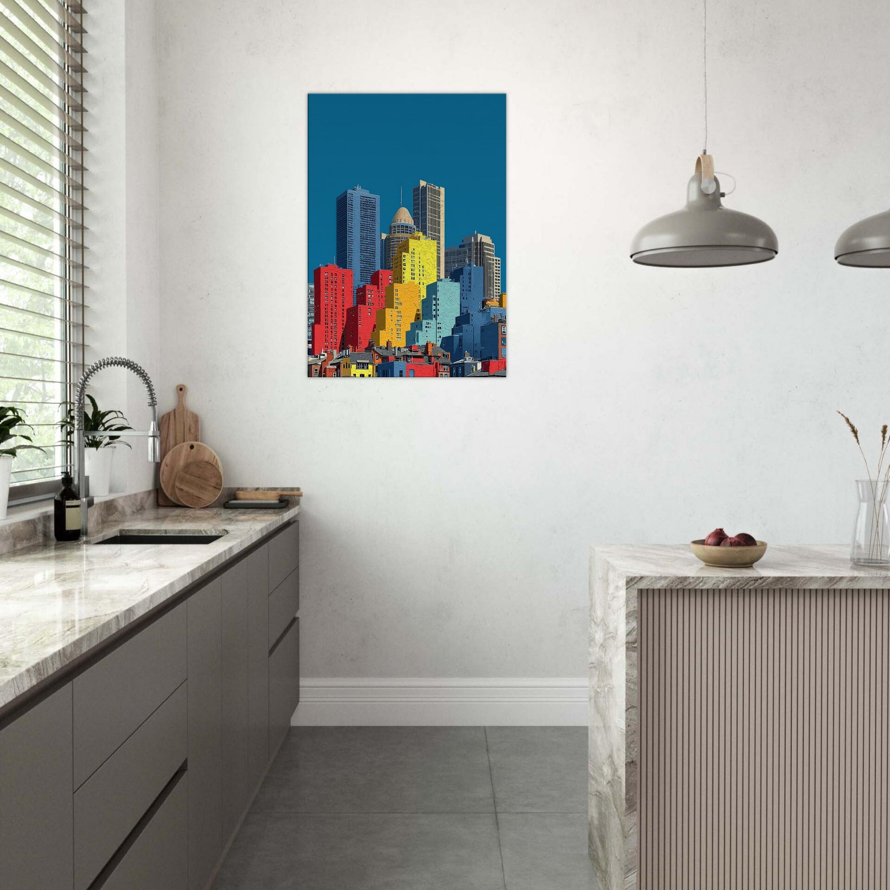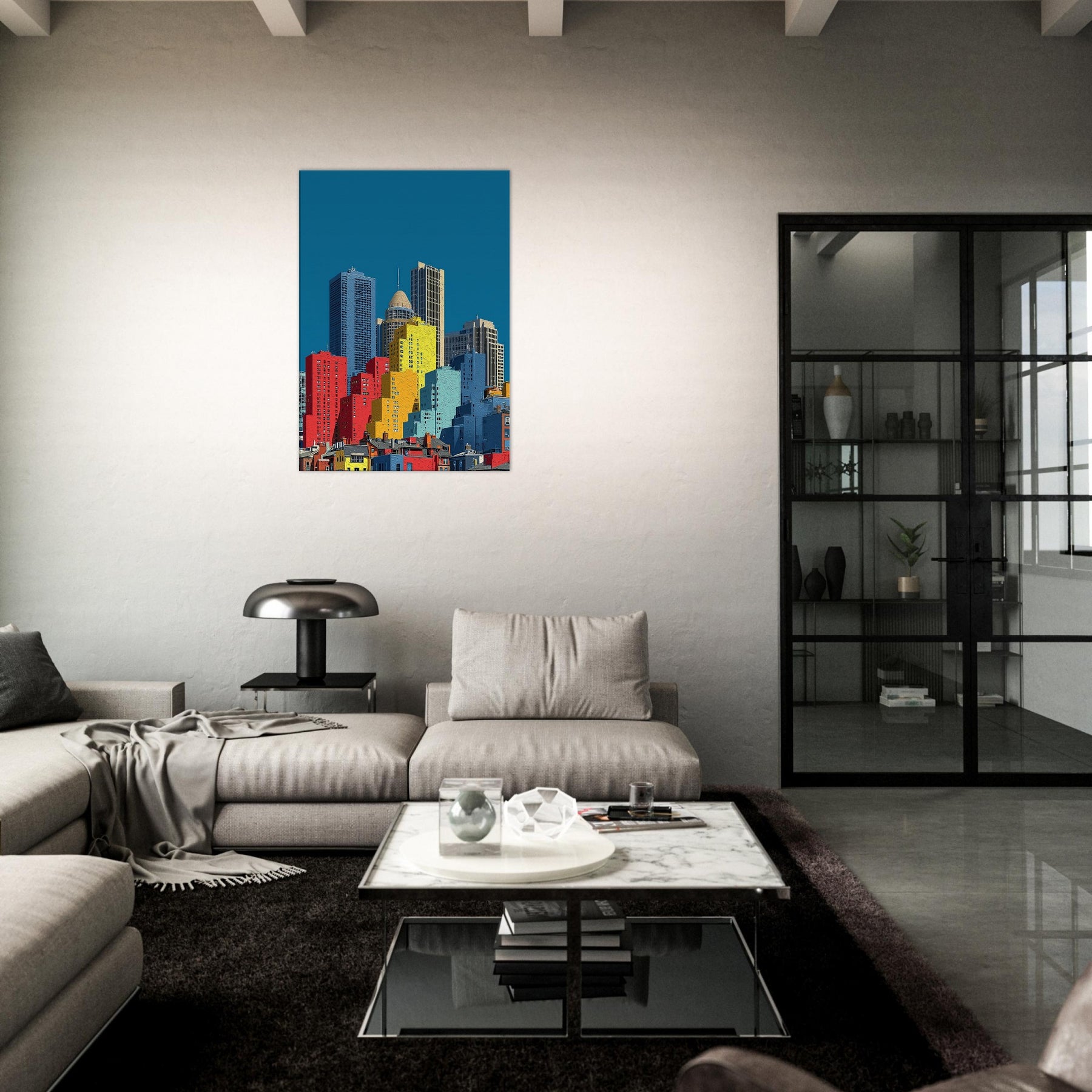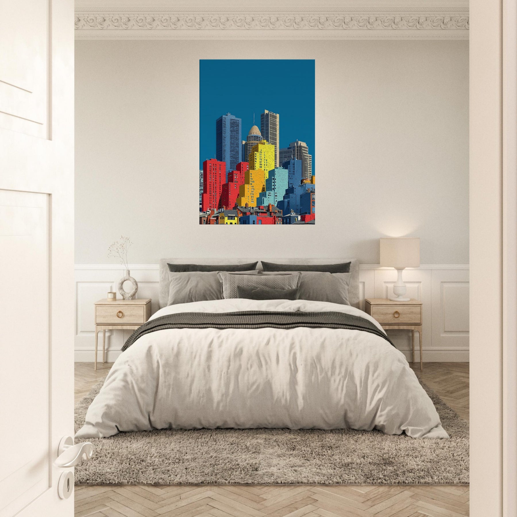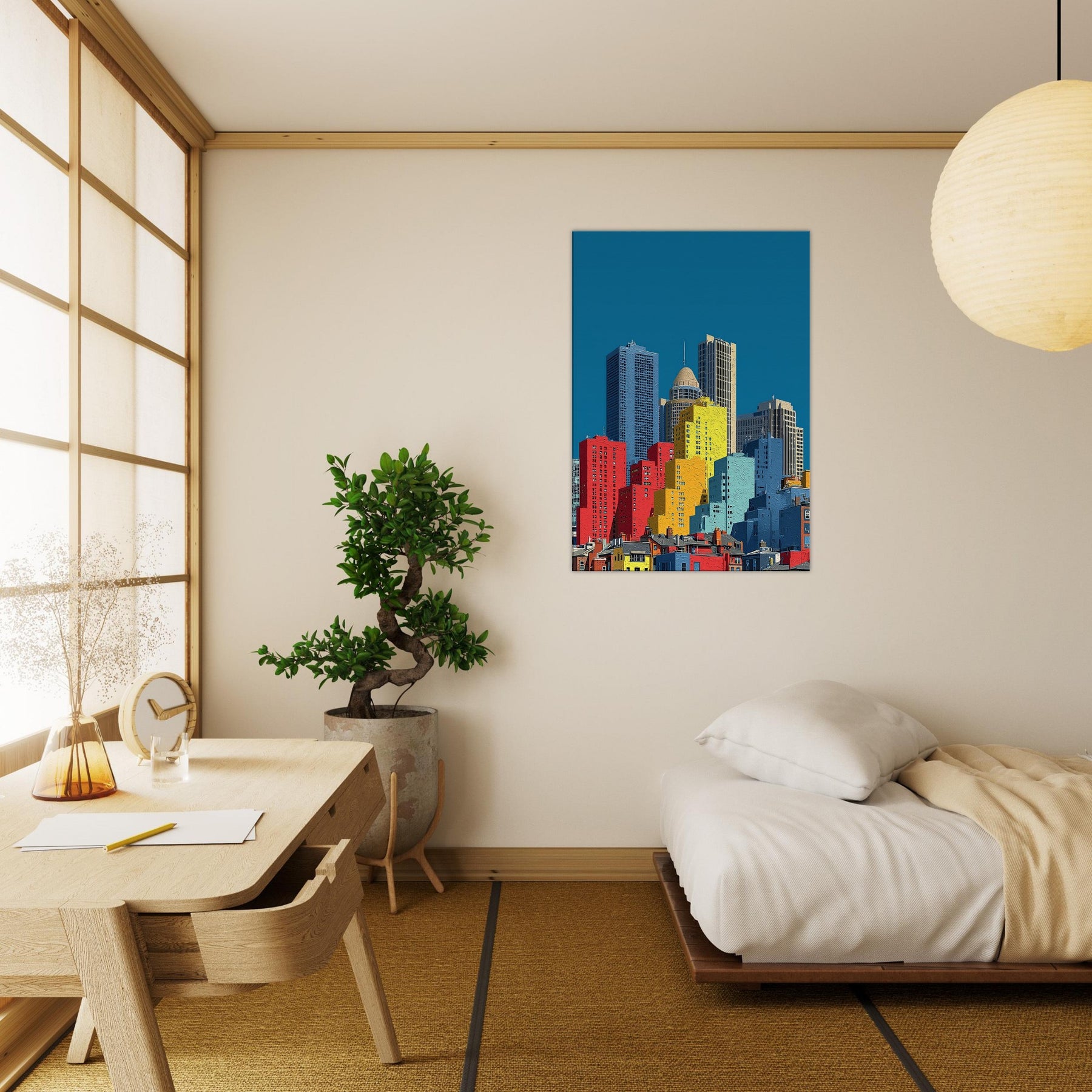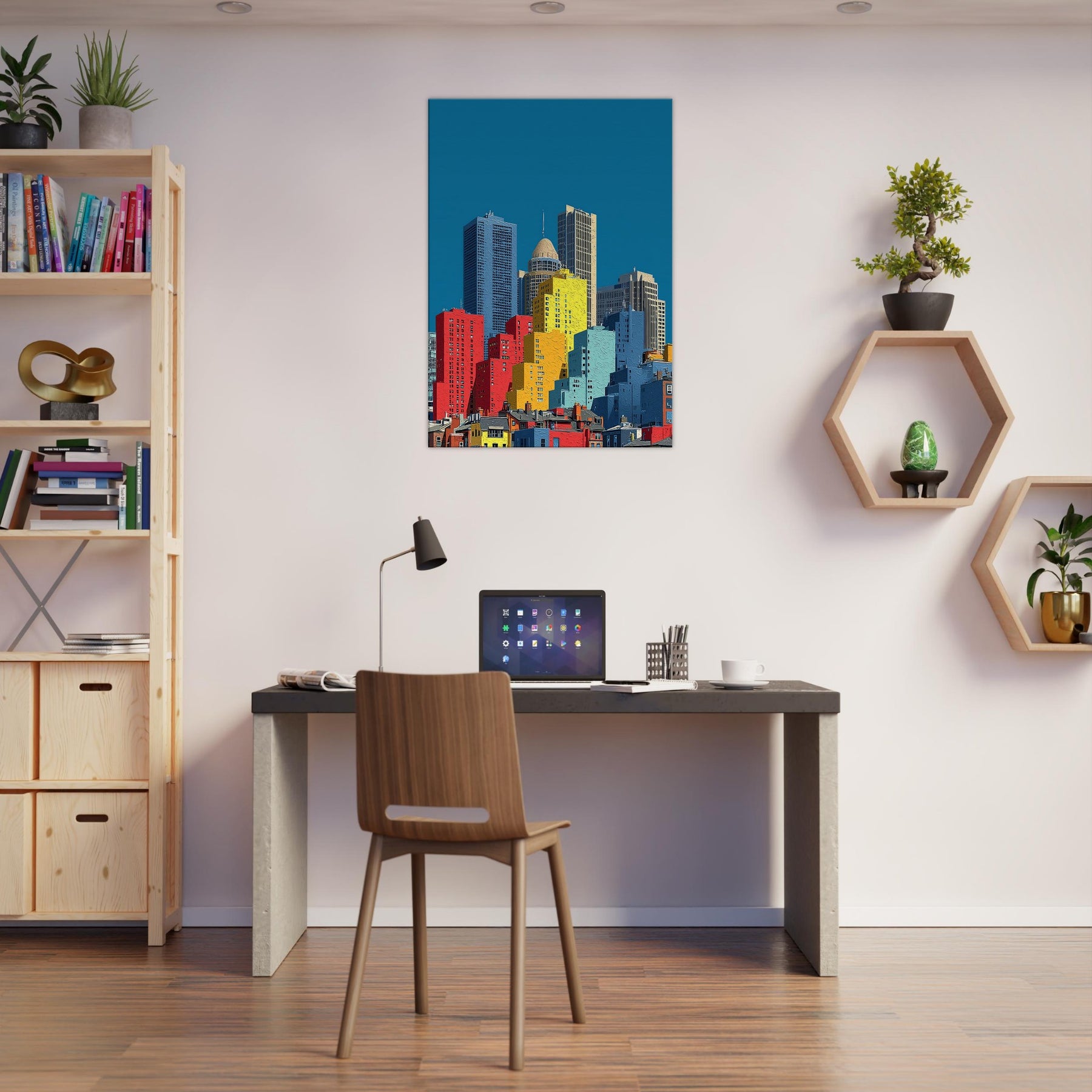 A bold skyline study that turns Boston into a chorus of color. Layered blocks rise like a playful map of memory, where dusk blue skies meet sunlit towers. This print infuses modern living spaces with energy and elegance an urban heartbeat that anchors a cozy corner, sparks conversation, and dresses walls with texture and warmth. Perfect for the living room or study, it invites you to breathe in architecture and dream in color.