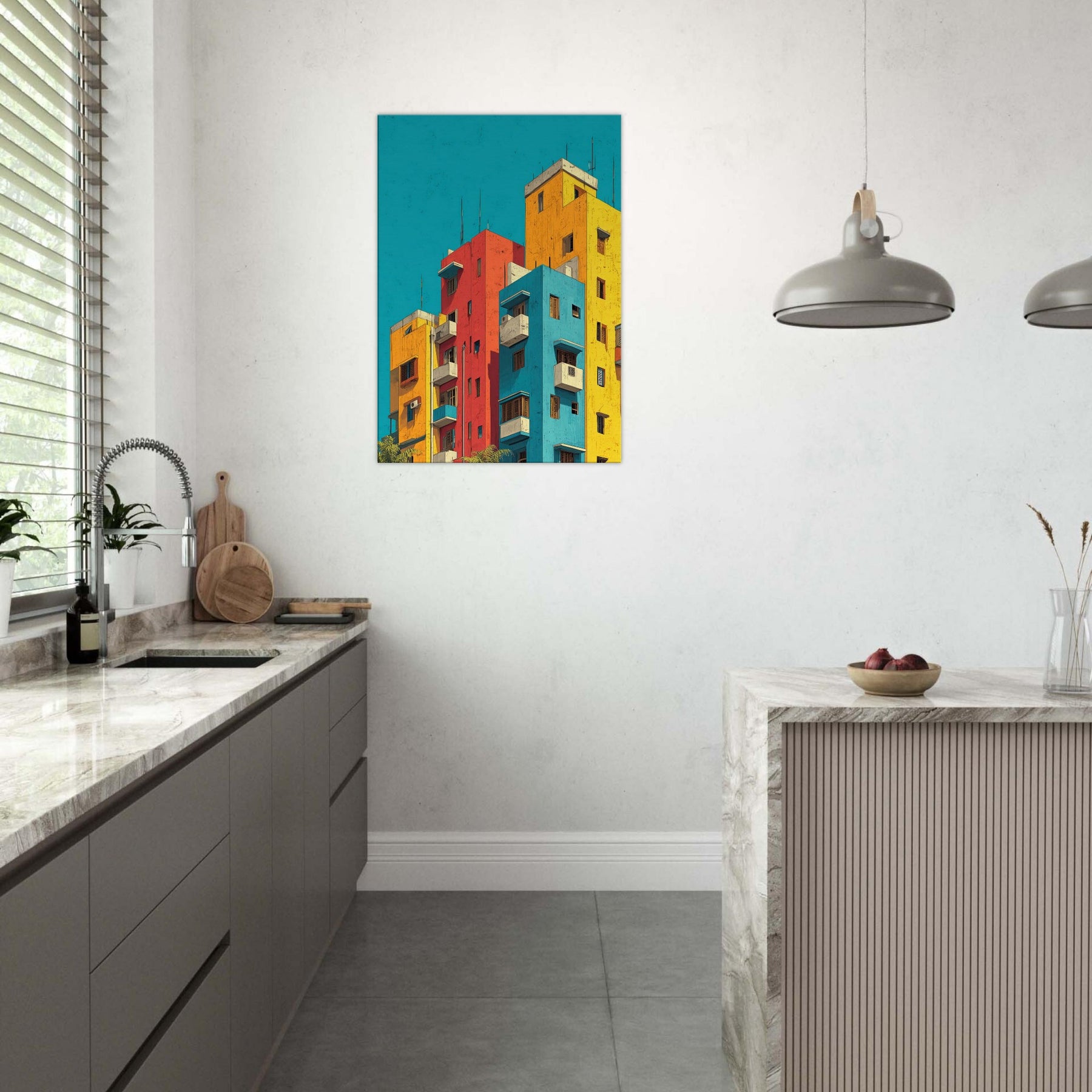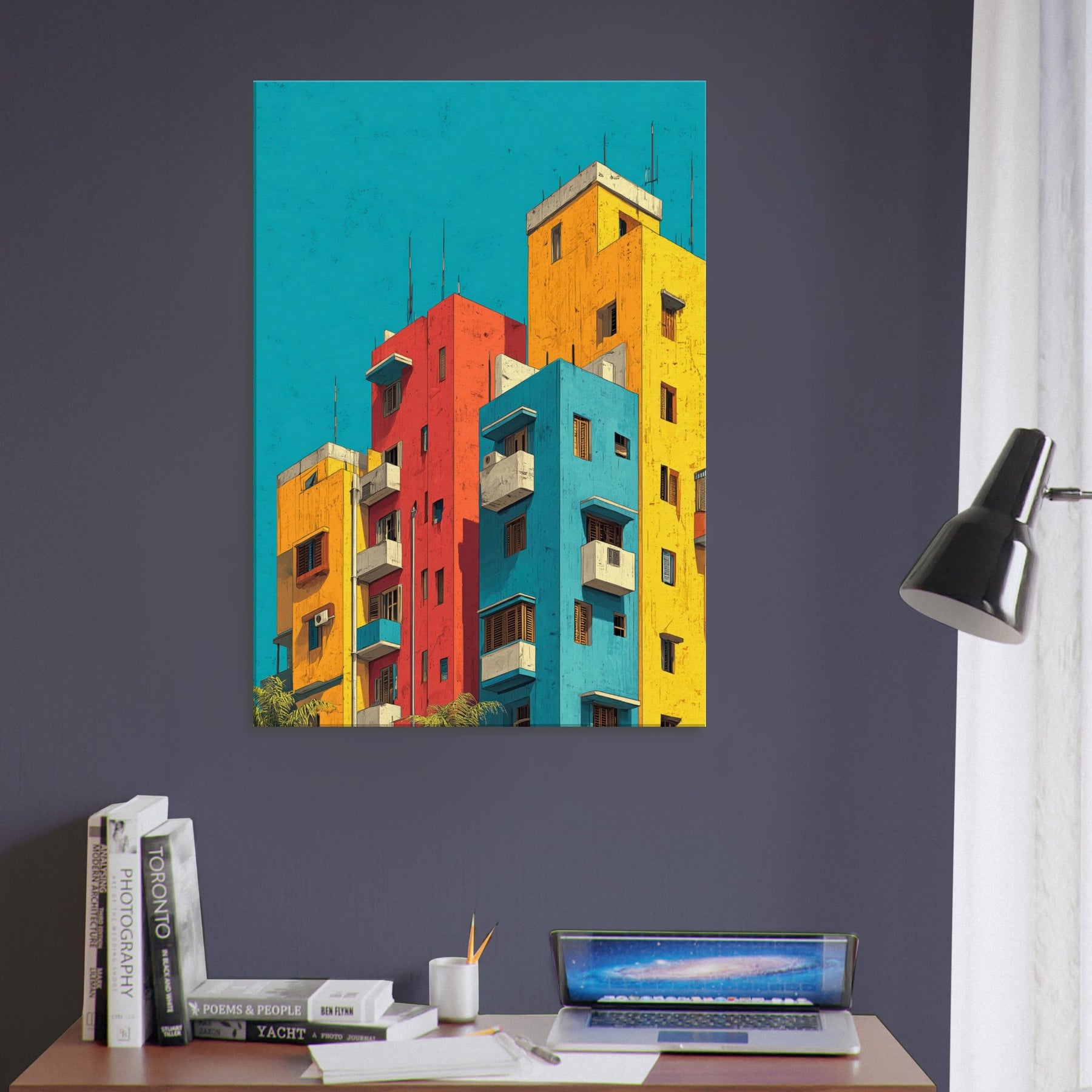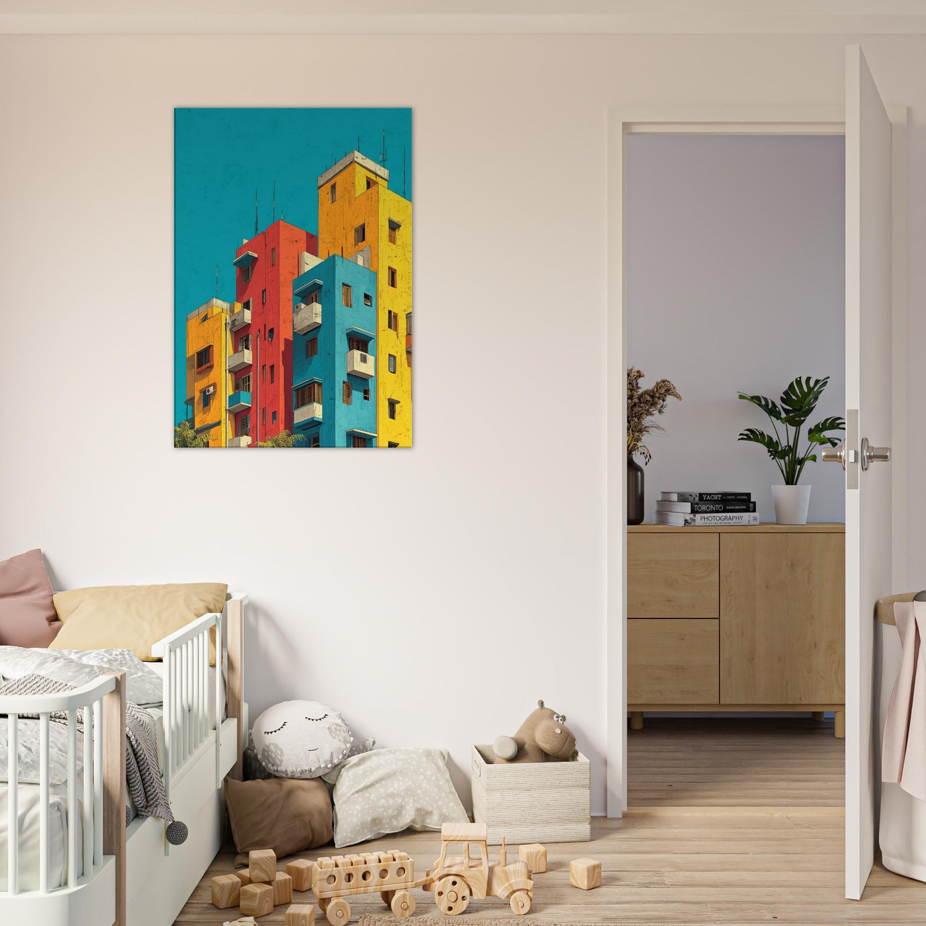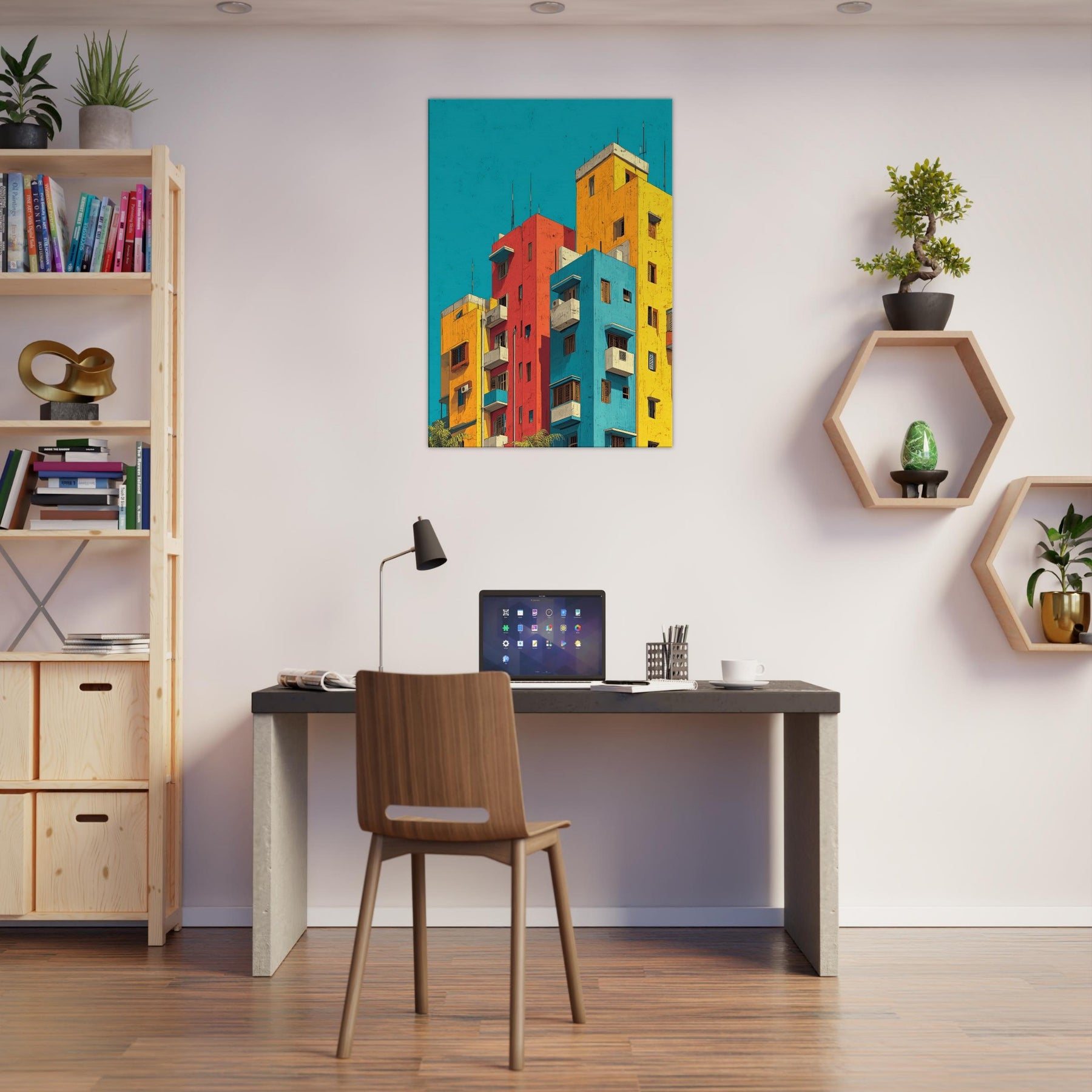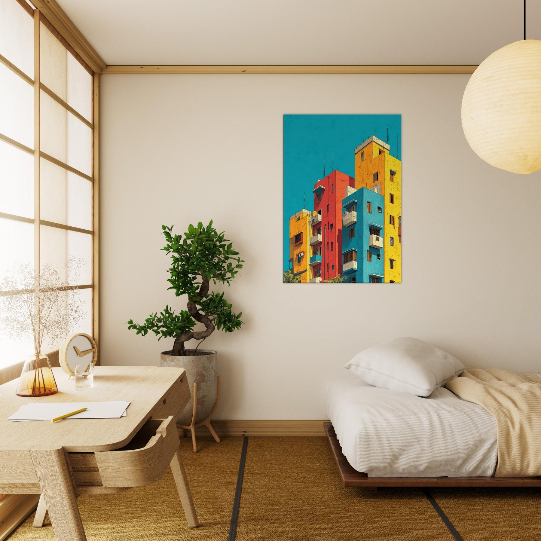 Across the canvas, Cairo unfurls in radiant blocks of sunlit yellow, electric blue, and warm red, a cityscape reimagined as a lyric of form. This piece invites the eye to wander through layered façades, catching a breeze of spice laden streets and evening light. Perfect for a living room or study, it adds kinetic energy and a sense of place without crowding the room. Let Cairo’s pulse become the mood of your home.