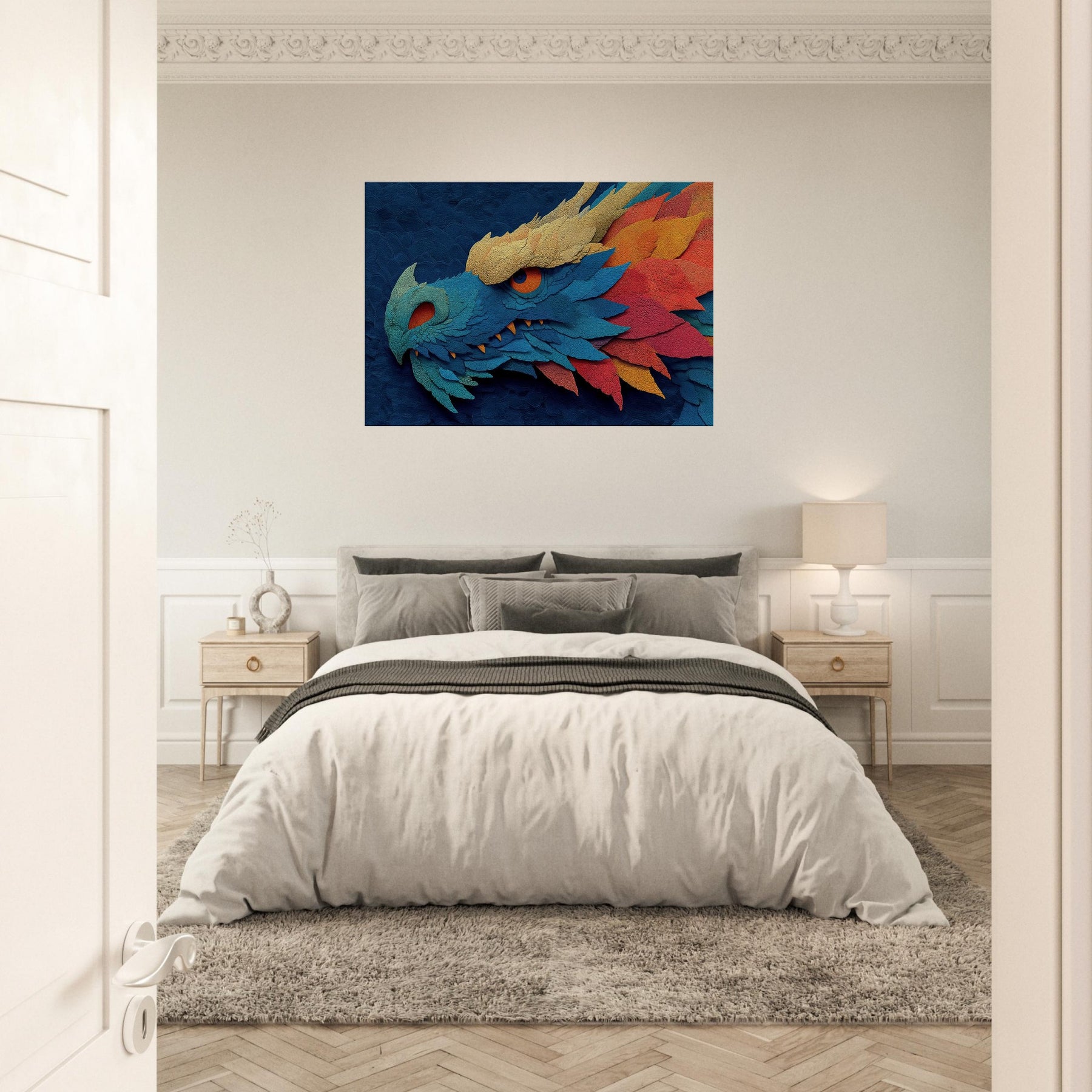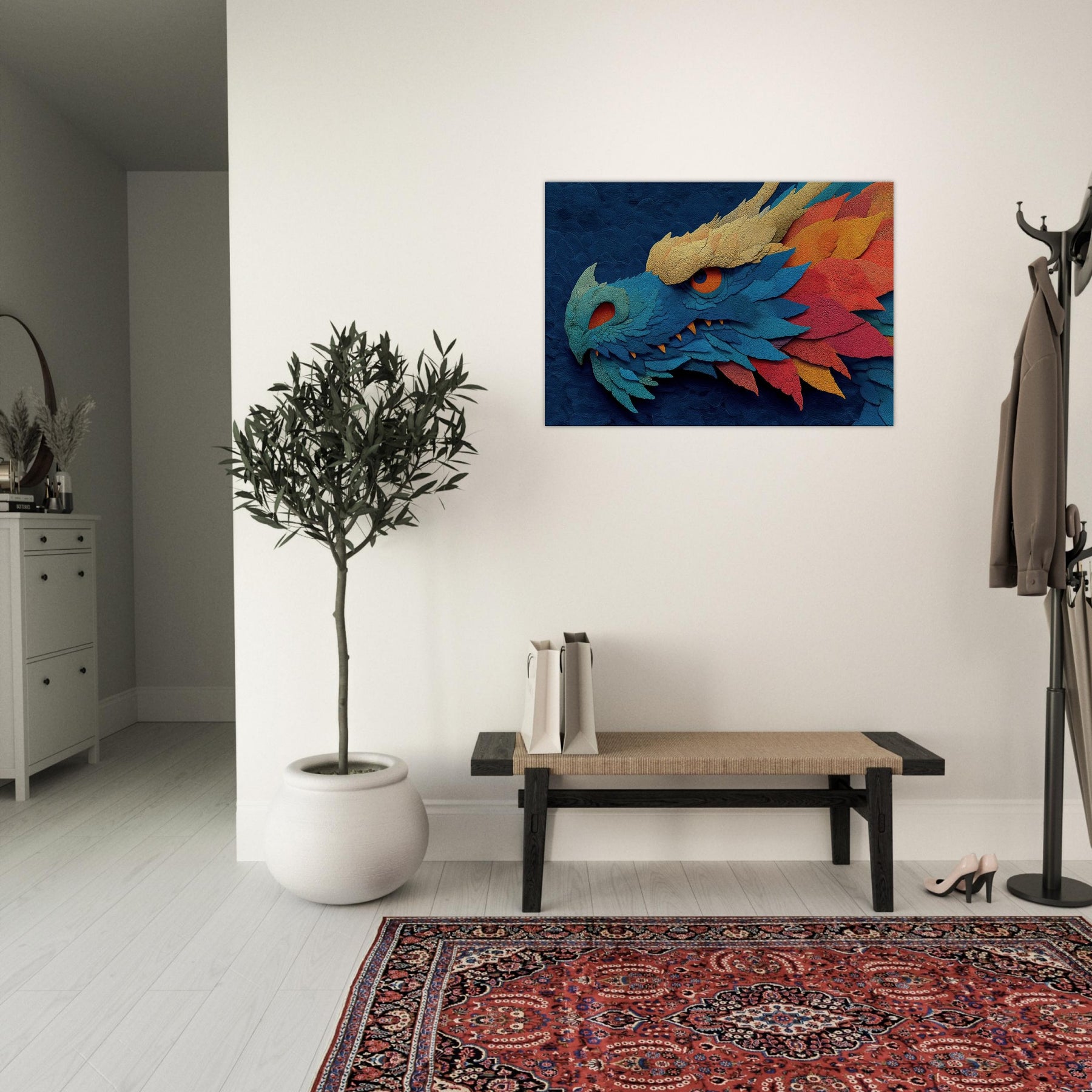 Immerse your space in the legendary aura of the Ancient Chinese Dragon, rendered as a luminous abstract tapestry of scales and fire. This artwork hums with midnight blues, turquoise, and radiant sunset hues that ripple across the wall like a living myth. The layered textures invite a tactile imagination, while the dragon's gaze anchors the room in timeless wonder. Perfect for a serene living room or a dramatic foyer, it transforms atmosphere, turning quiet evenings into epic, dreamlike moments.