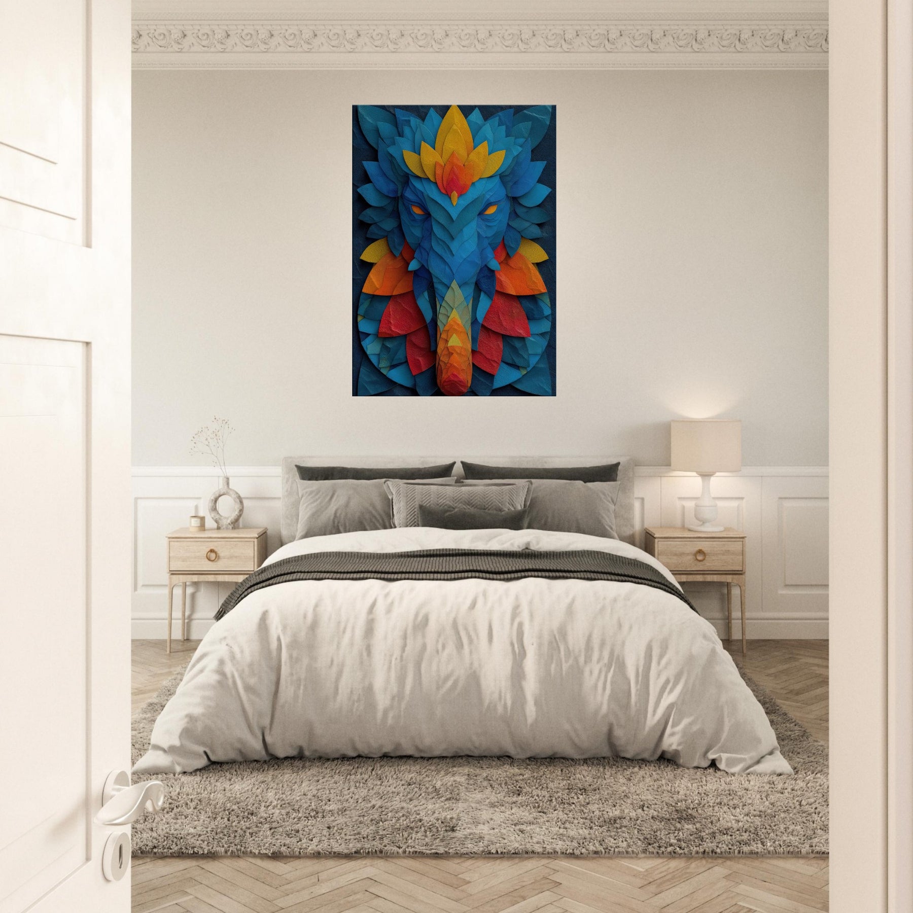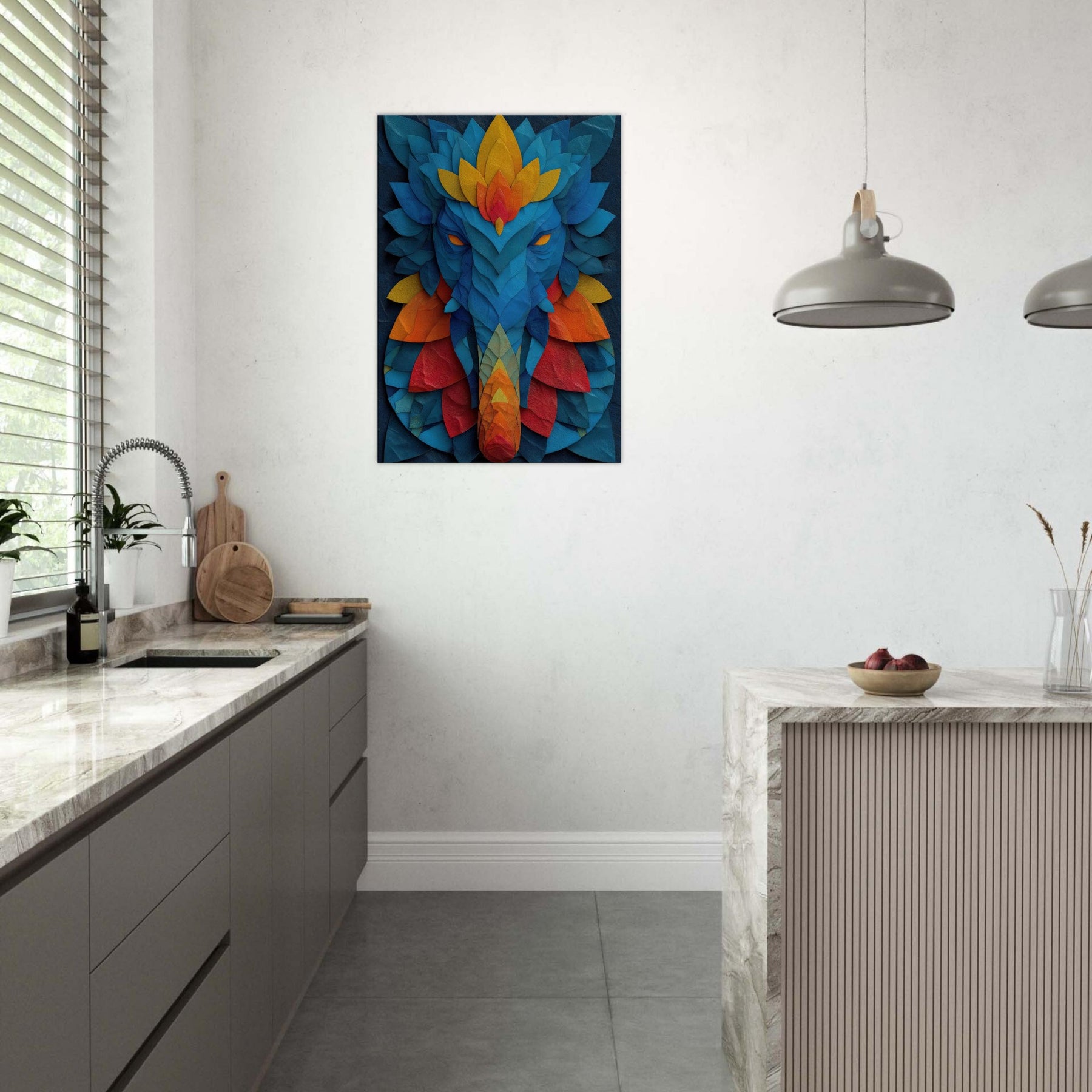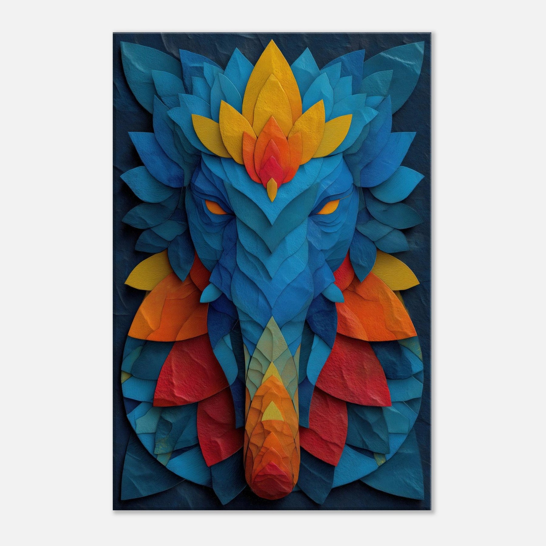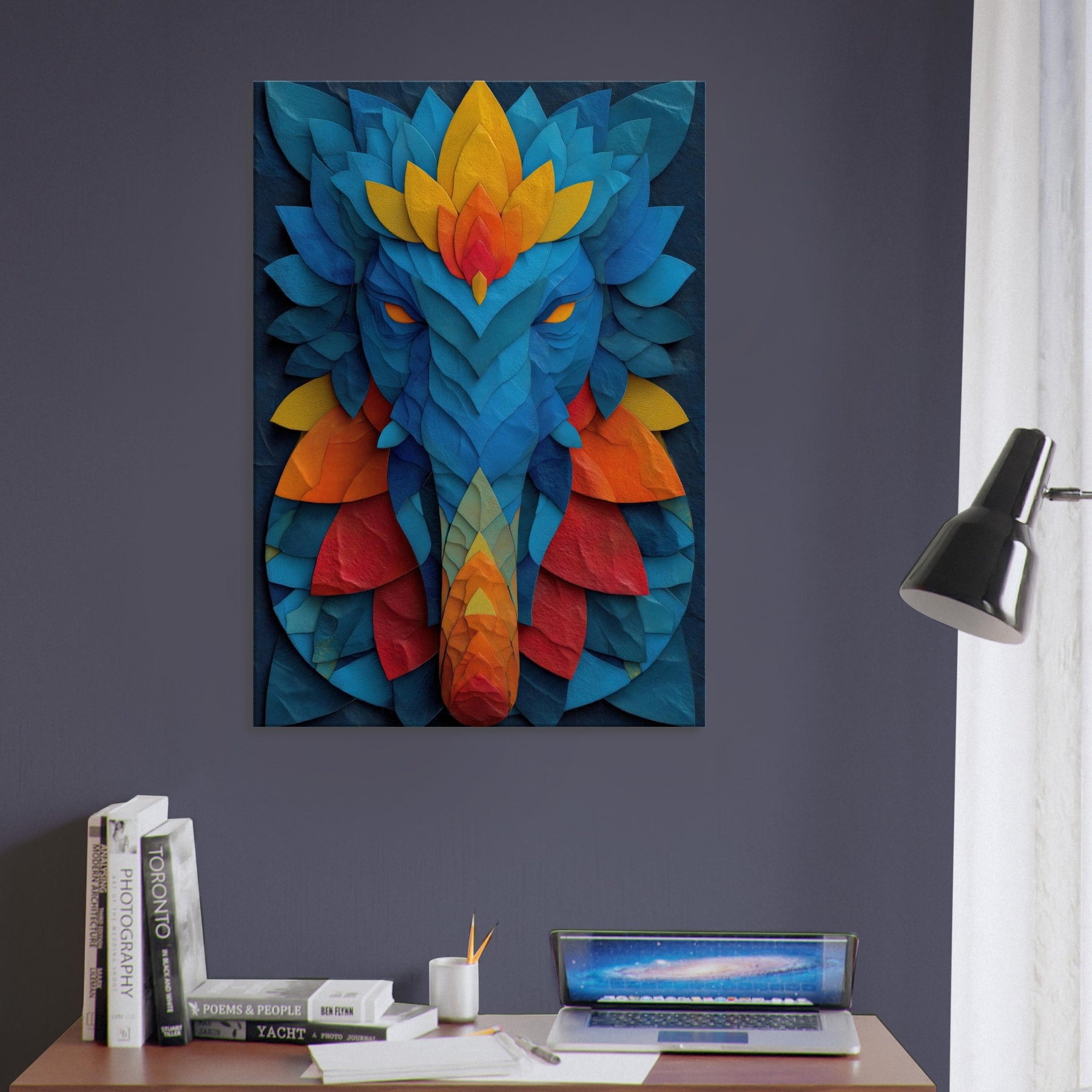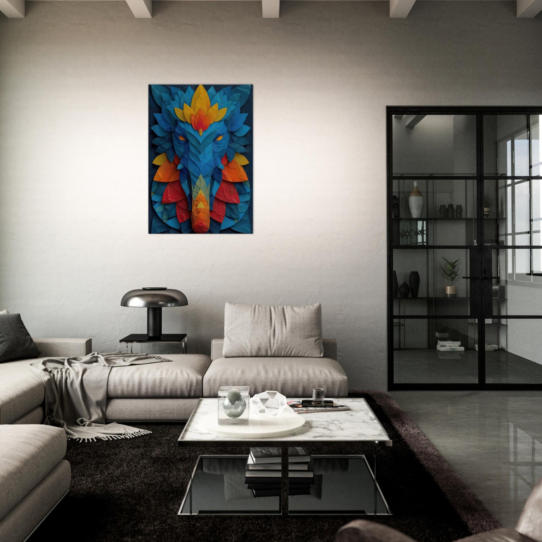 Immerse your space in the radiant presence of Ganesha, reimagined as a luminous, layered composition that radiates in electric blues, sunlit yellows, and coral orange accents. This mystical threads curved planes of color into a serene, almost sculptural form, inviting a tranquil focal point that still hums with energy. Ideal for living rooms or meditation corners, it softens the room with warmth while sharpening your sense of wonder and intention.