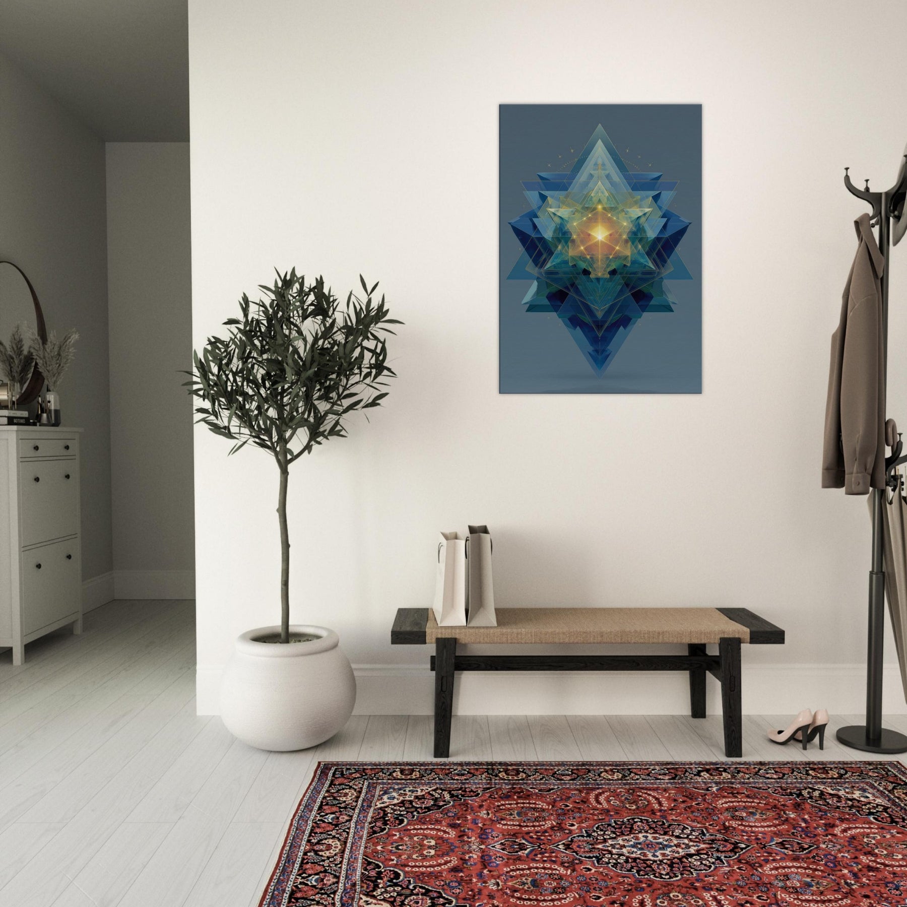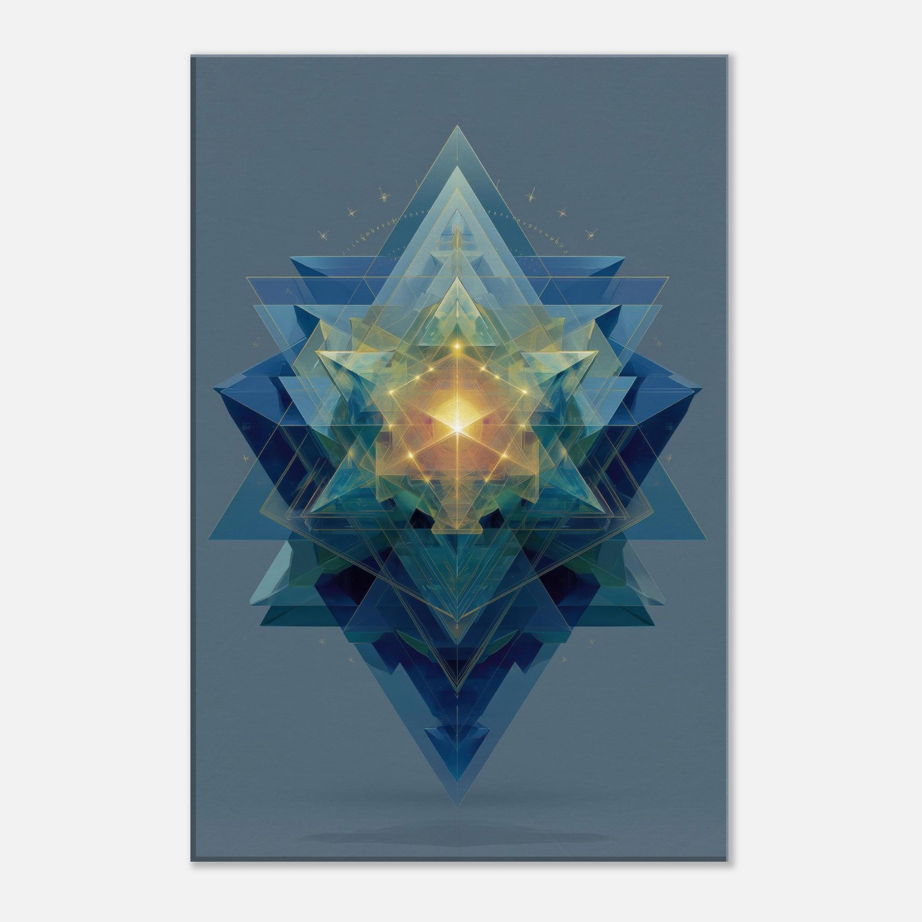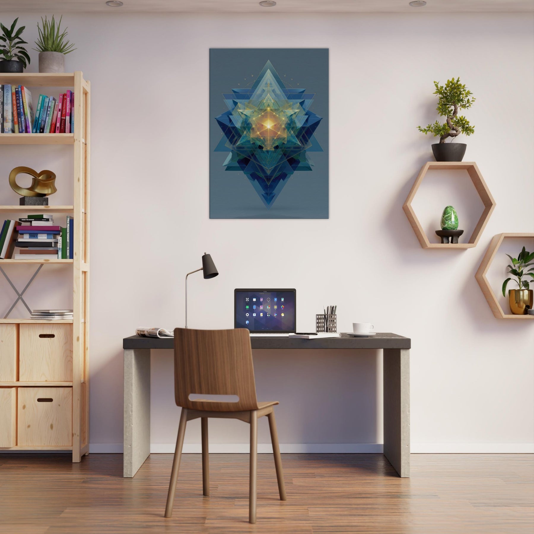 Merkaba unfurls as a luminous mandala of glass and light. This abstract composition channels sacred geometry to drape a room in quiet magnetism, where teal and gold facets shimmer and breathe with every breath of the day. The primary subject, Merkaba (Star Tetrahedron), rises in layered translucence, casting soft, shifting reflections that soften edges and invite contemplation. Place it in a living space to cultivate a serene, expansive ambiance an artful focal point that makes rooms feel brighter, calmer, and mysteriously connected.