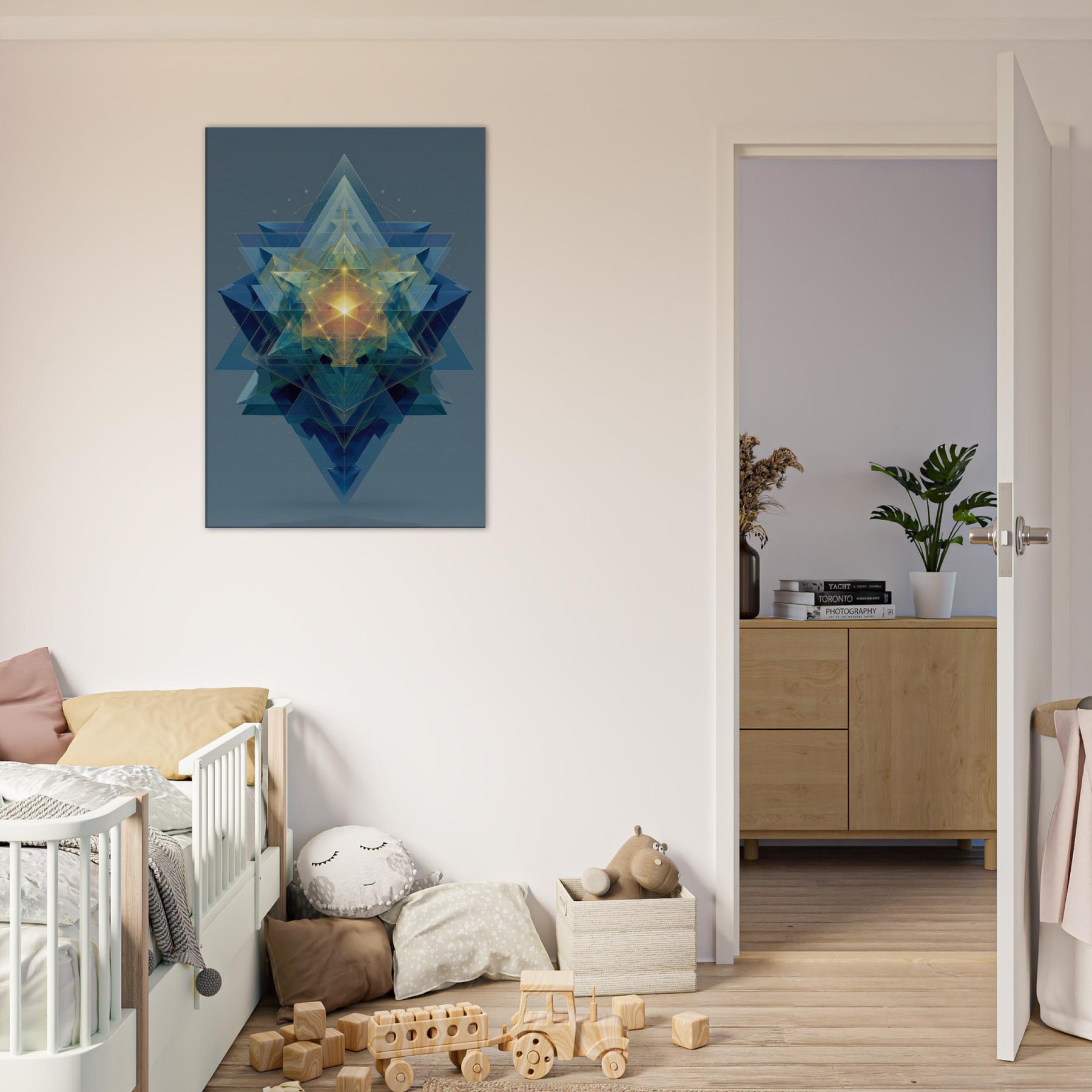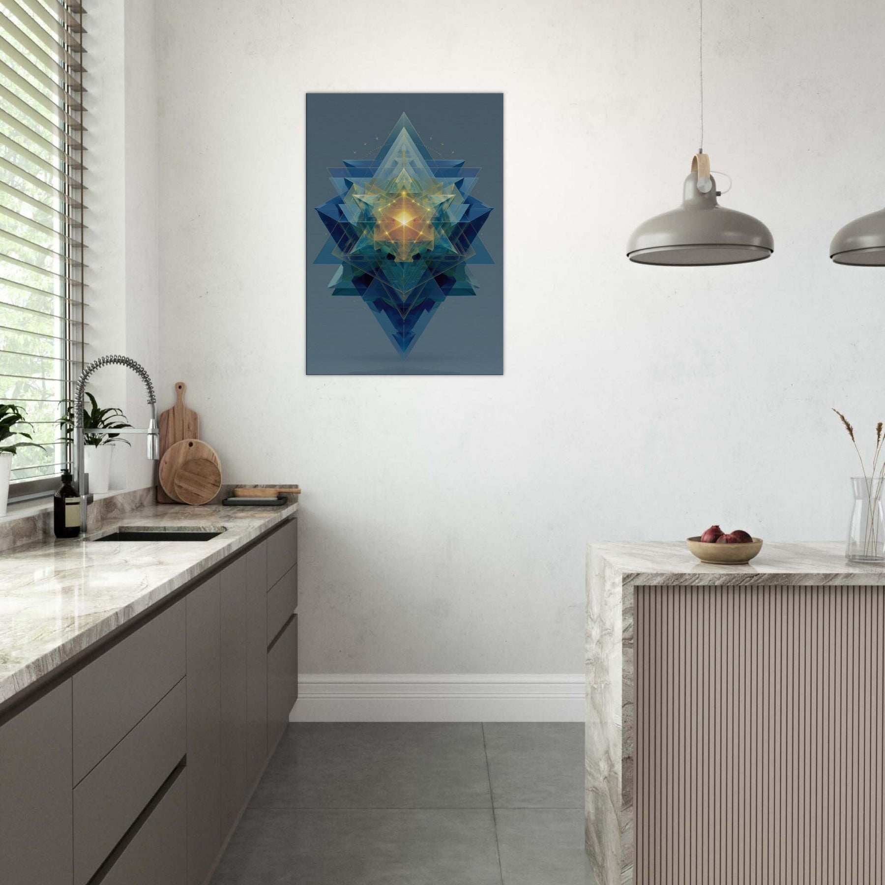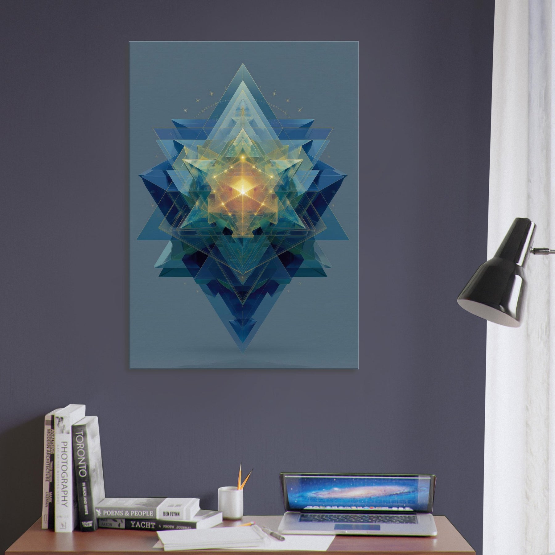 Merkaba unfurls as a luminous mandala of glass and light. This abstract composition channels sacred geometry to drape a room in quiet magnetism, where teal and gold facets shimmer and breathe with every breath of the day. The primary subject, Merkaba (Star Tetrahedron), rises in layered translucence, casting soft, shifting reflections that soften edges and invite contemplation. Place it in a living space to cultivate a serene, expansive ambiance an artful focal point that makes rooms feel brighter, calmer, and mysteriously connected.