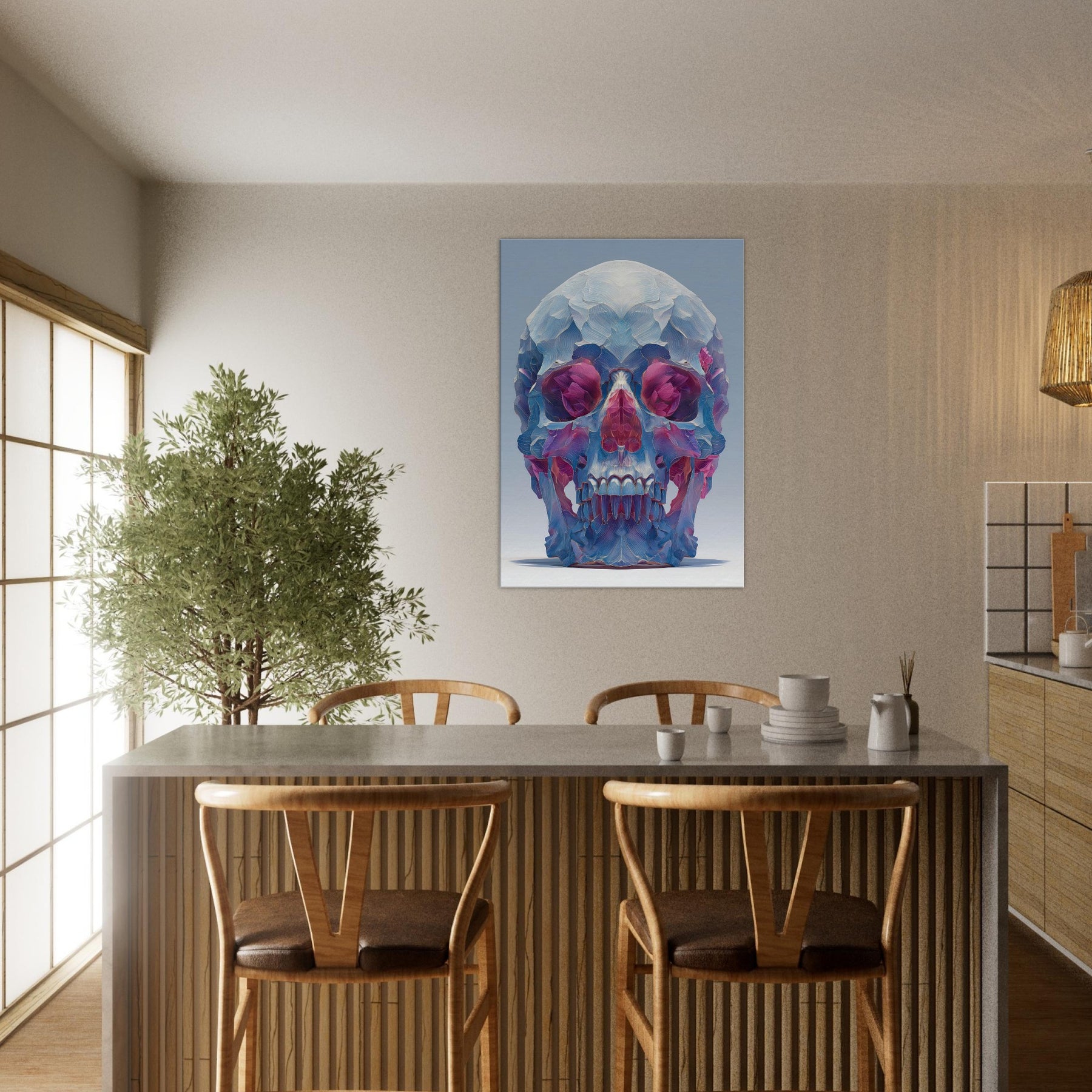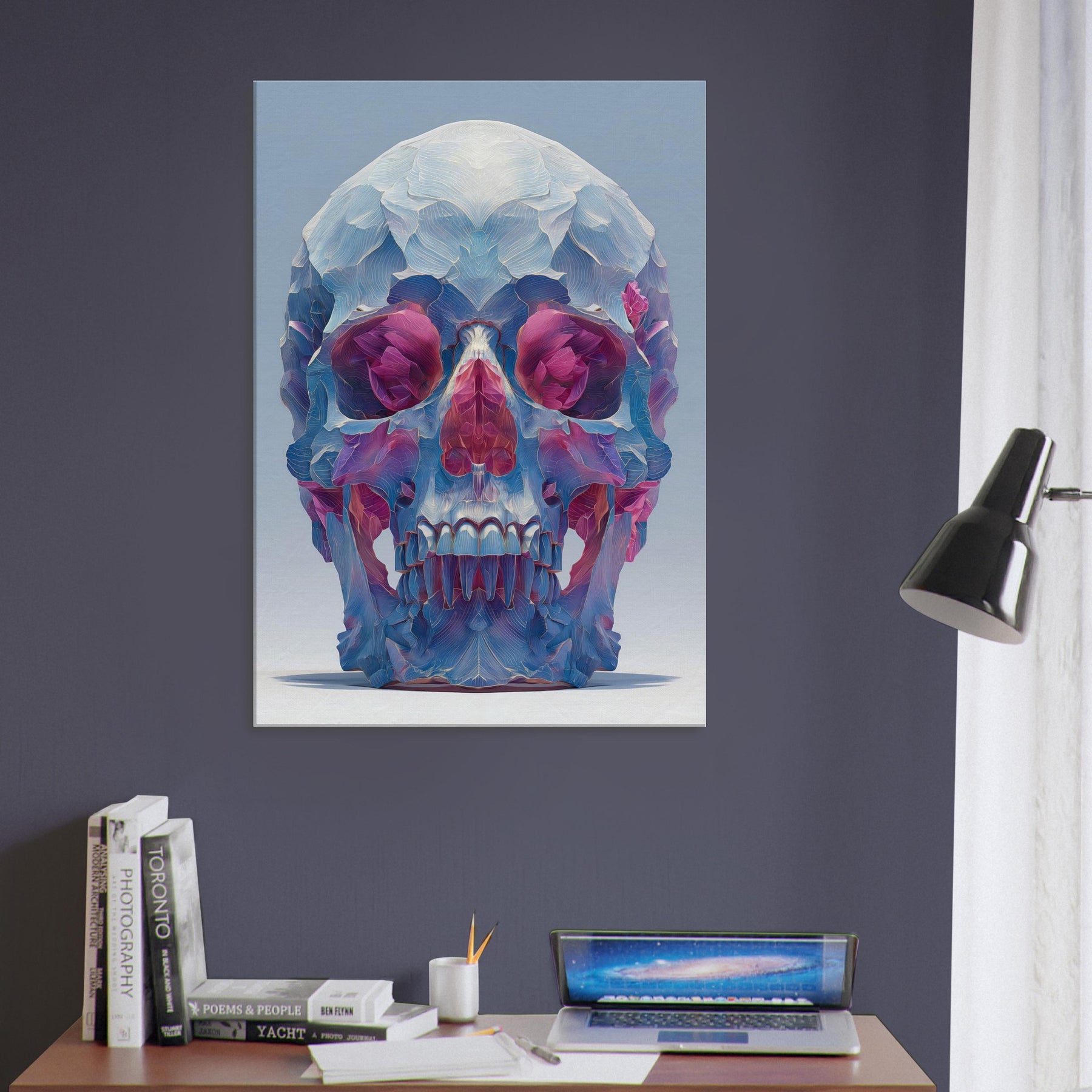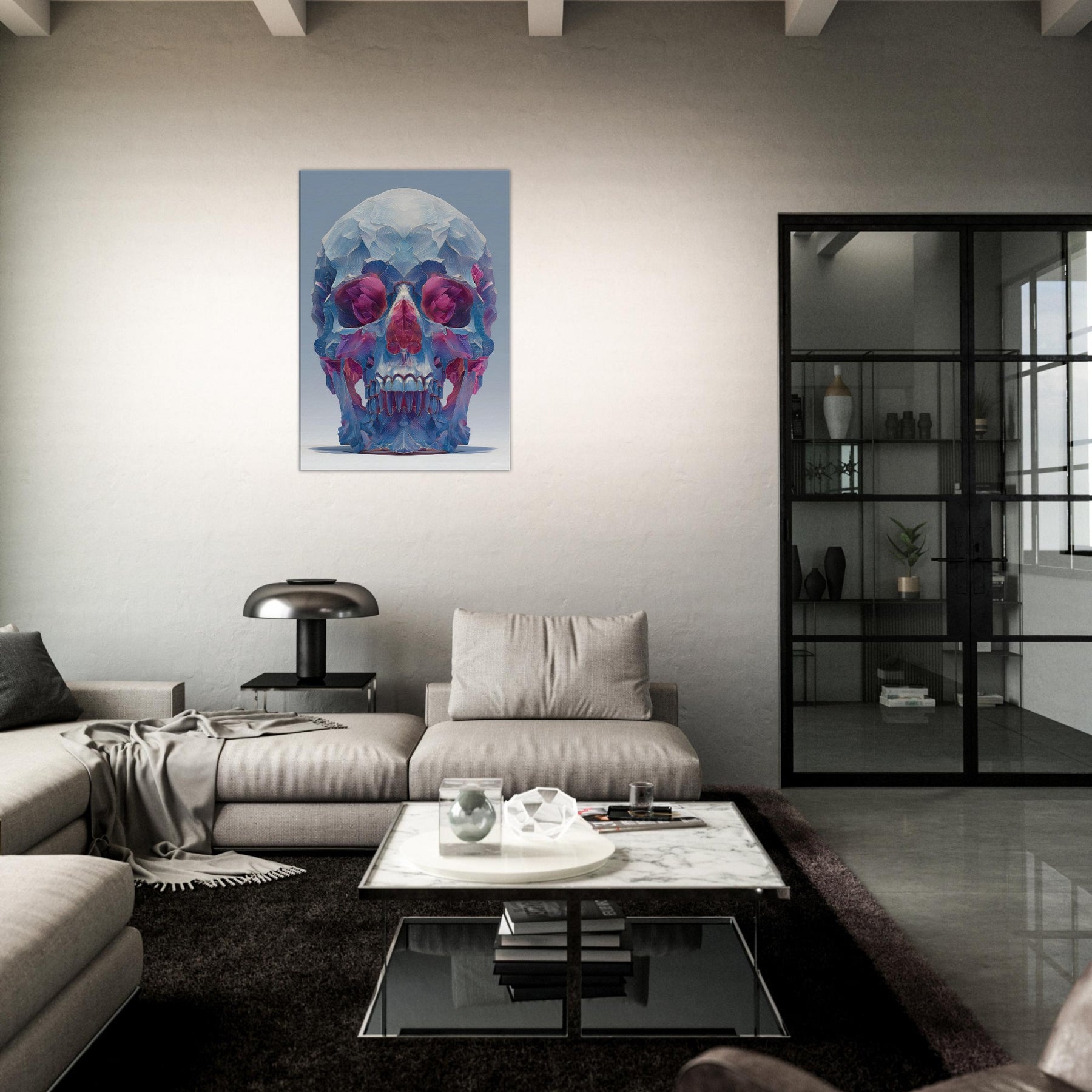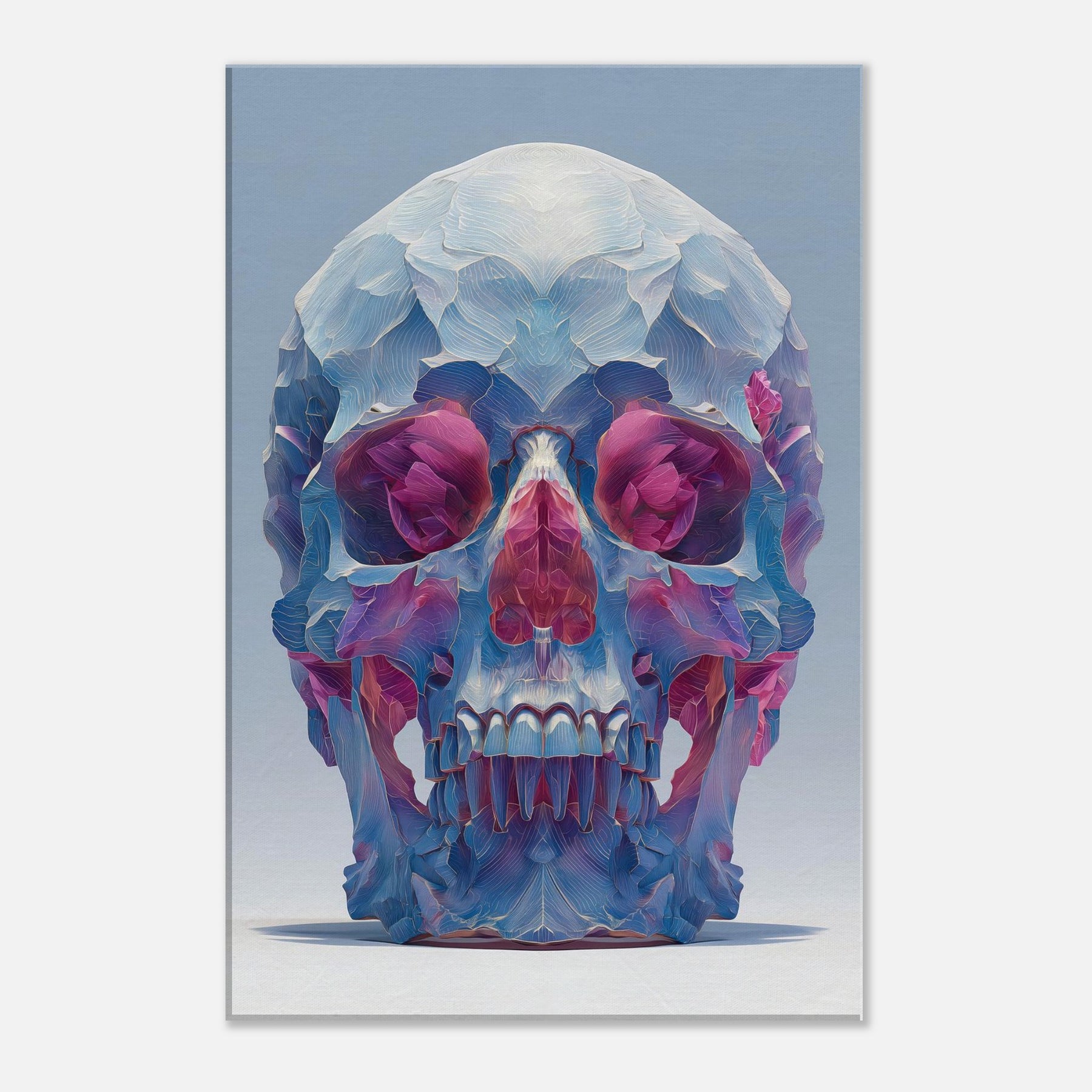 An ethereal sculpture rendered as a two tone whisper of color, this Mystical Skull glows with crystalline facets that catch the light and bend it into a hush of blues, pinks, and violets. The abstract composition folds space around the eyes and teeth, inviting quiet contemplation and a sense of otherworldly presence. In a living room or study, it becomes a focal quietude a pulsing focal point that transforms corners into a gallery of atmosphere and introspective magic.