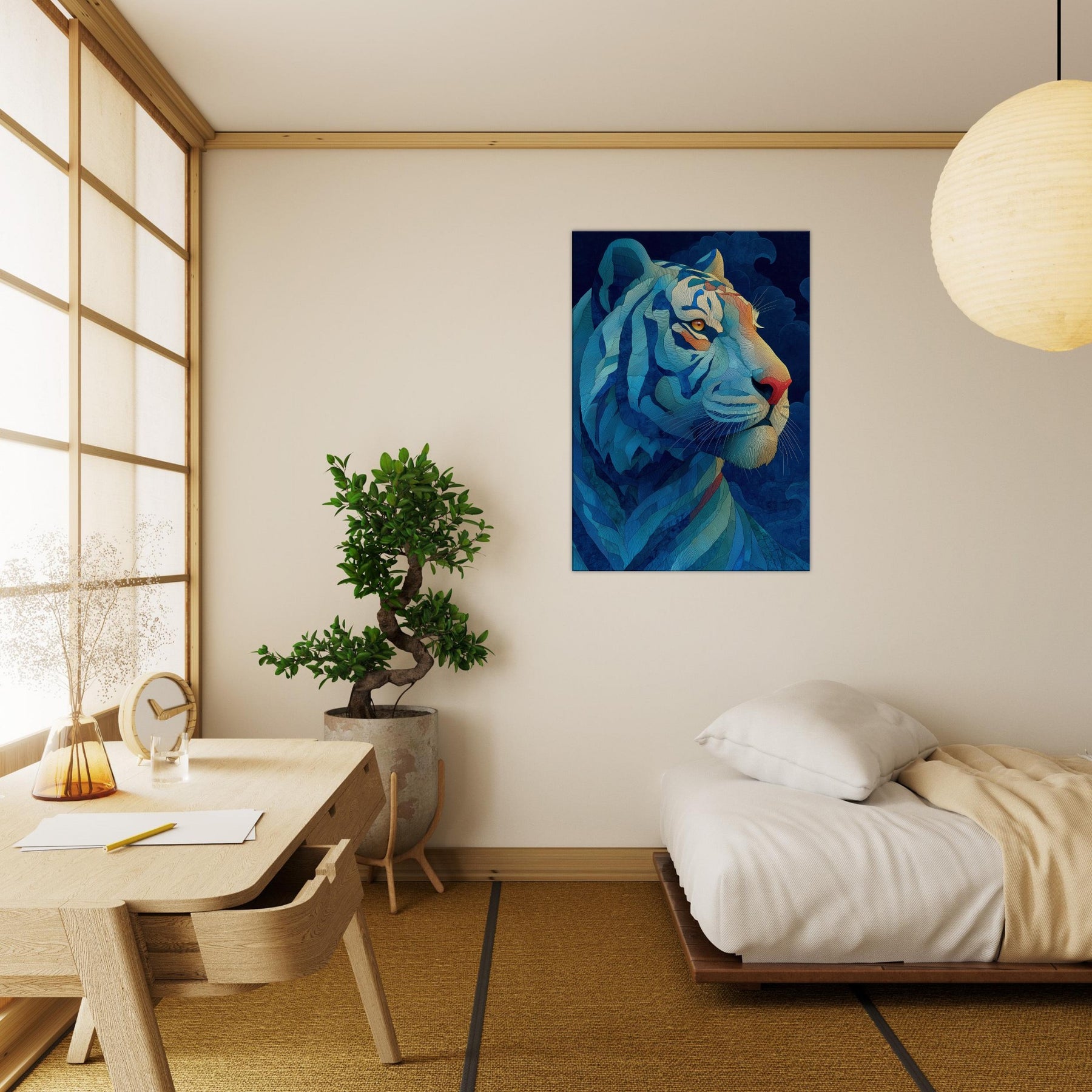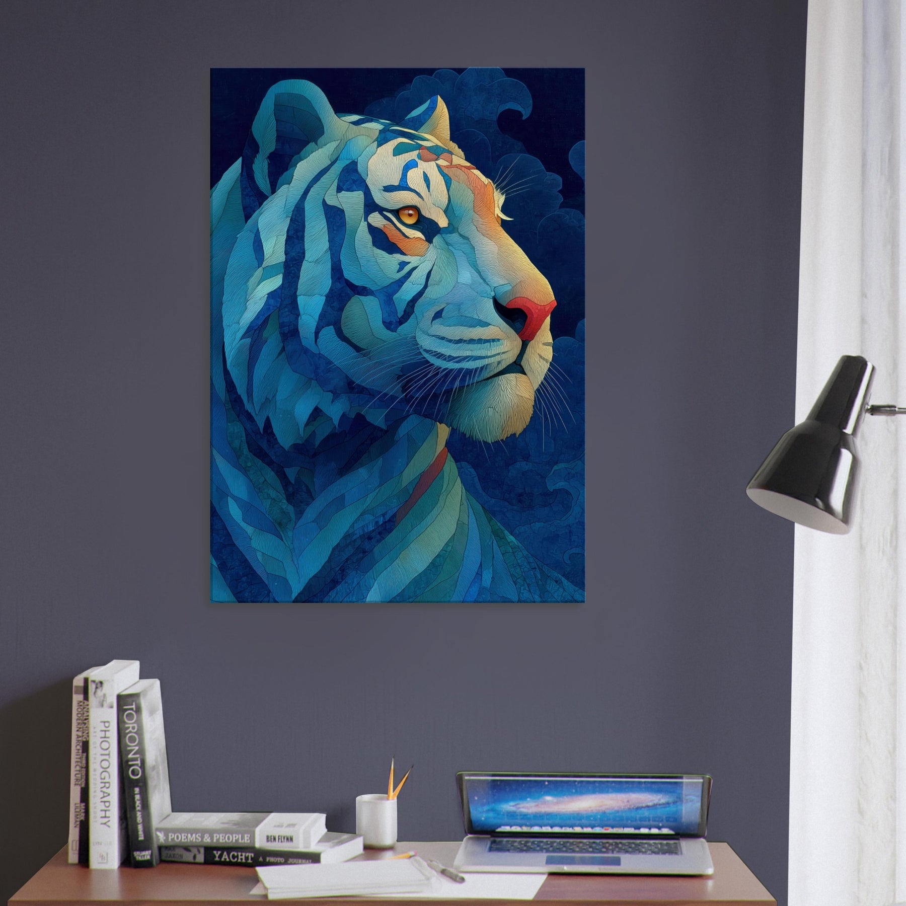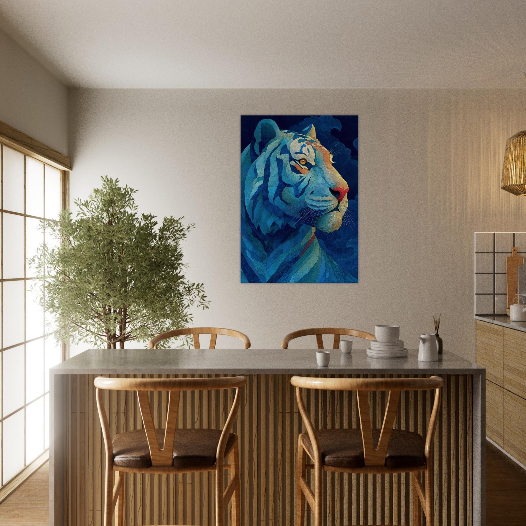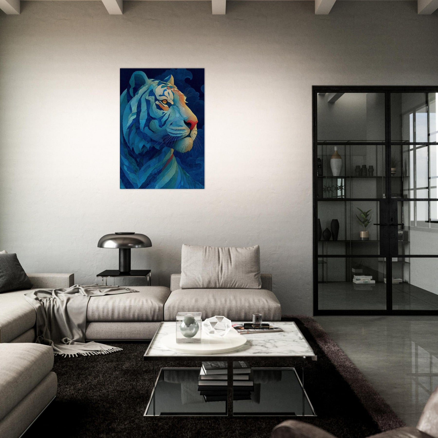 Drawn from the legend of the White Tiger of the West, Celestial Guardian of Chinese Mythology, this abstract composition washes the senses in moonlit blues and copper gold accents. The layered, fluid shapes evoke windswept clouds and ancient constellations, creating a contemplative atmosphere that breathes across a living room or study. Hang it where calm, courage, and wonder are desired, and let the artwork guard the space with quiet, radiant presence.