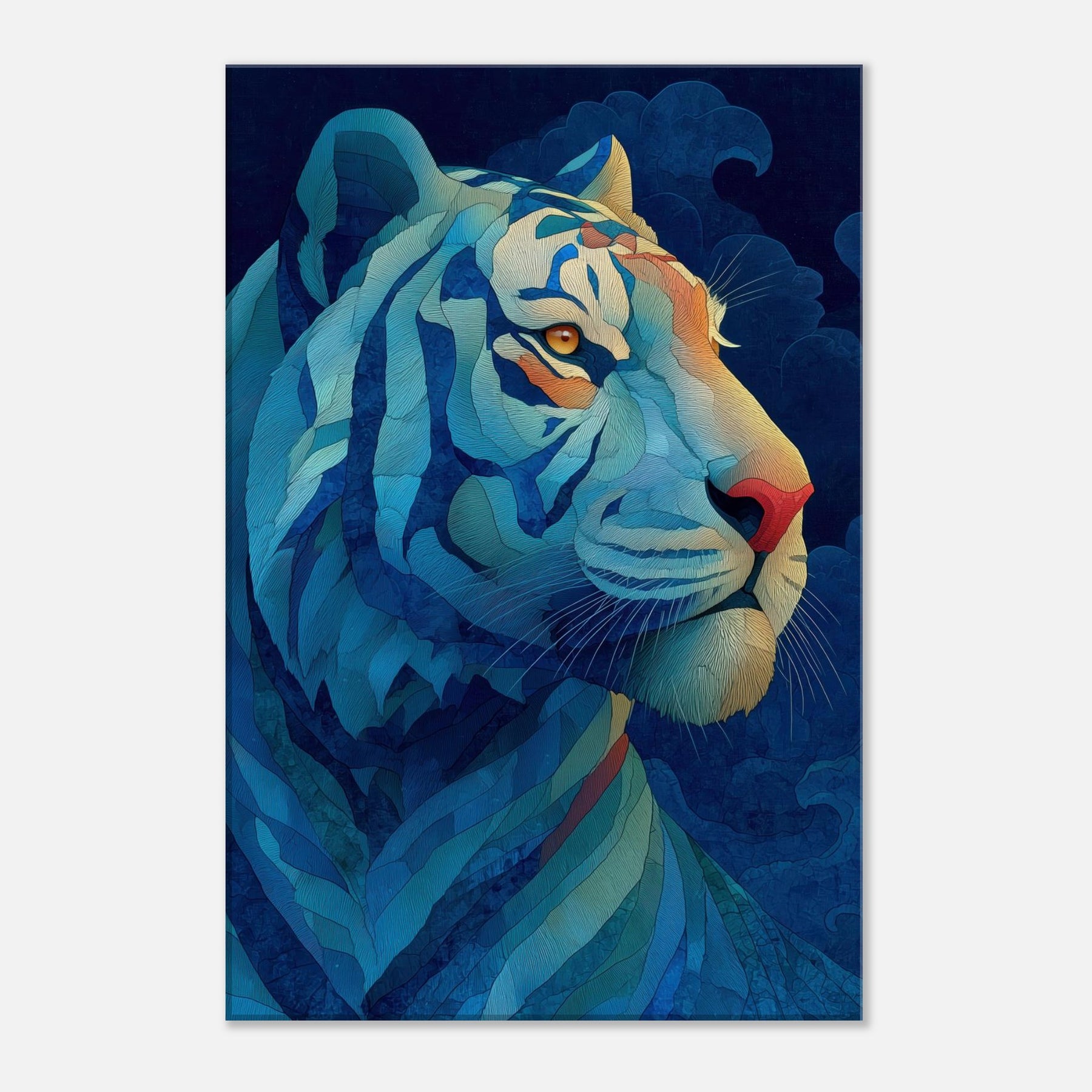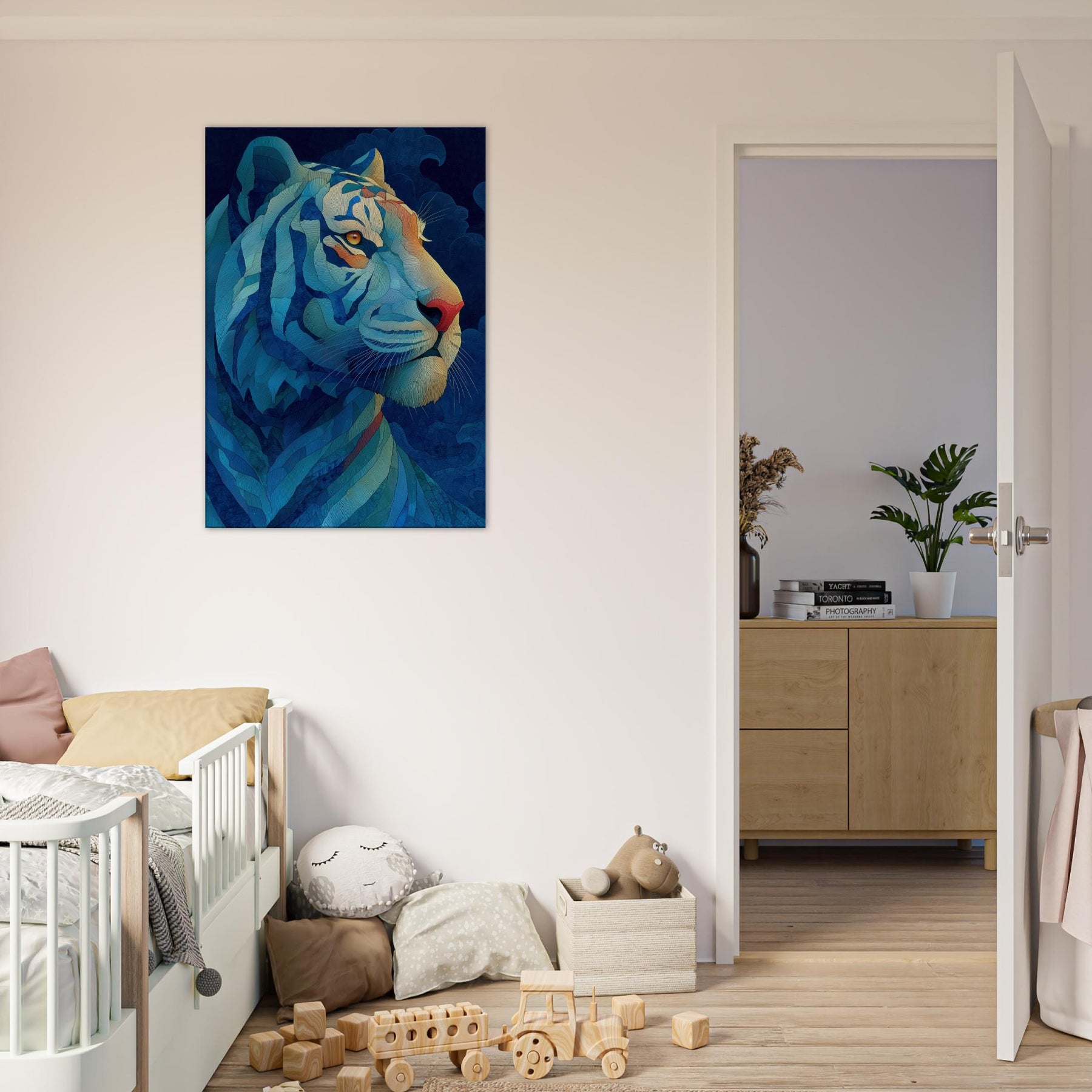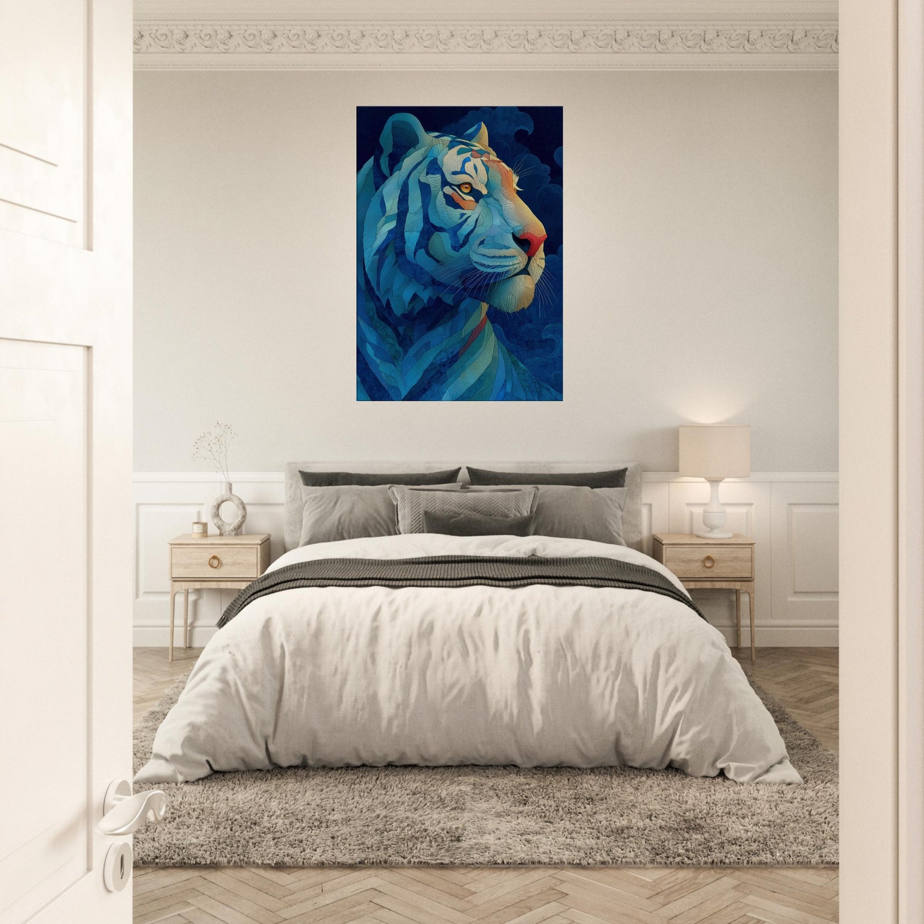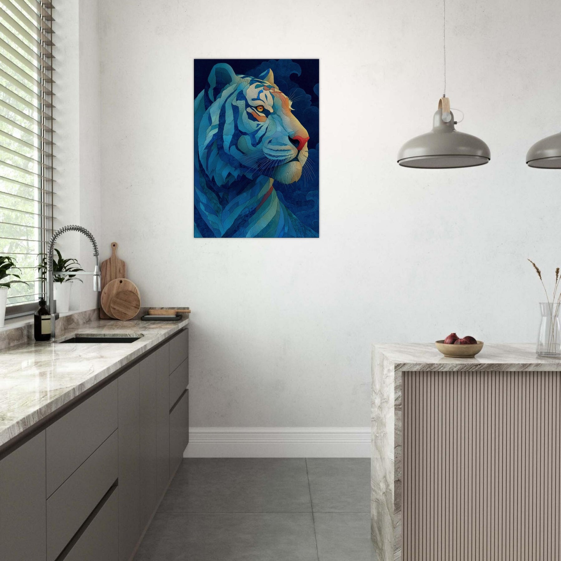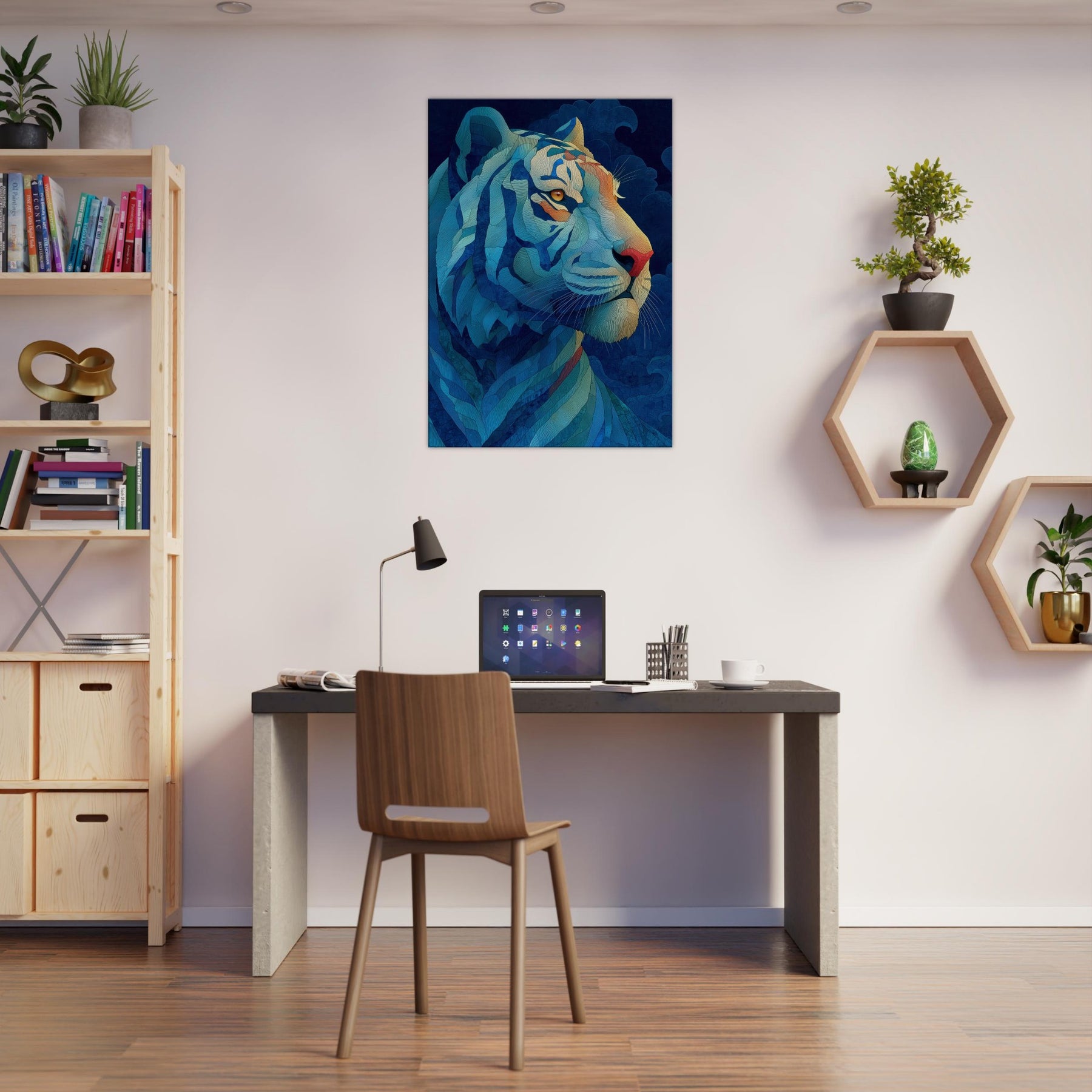 Drawn from the legend of the White Tiger of the West, Celestial Guardian of Chinese Mythology, this abstract composition washes the senses in moonlit blues and copper gold accents. The layered, fluid shapes evoke windswept clouds and ancient constellations, creating a contemplative atmosphere that breathes across a living room or study. Hang it where calm, courage, and wonder are desired, and let the artwork guard the space with quiet, radiant presence.