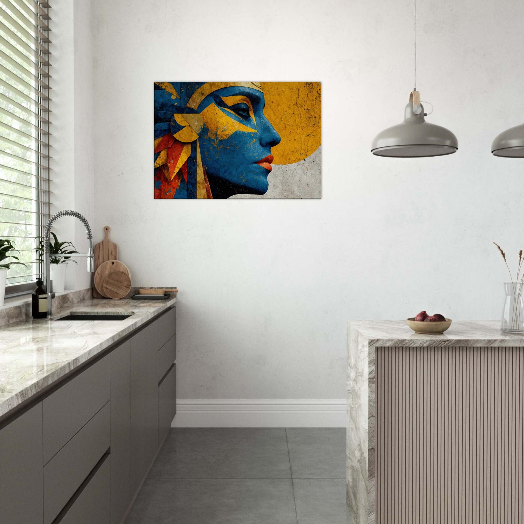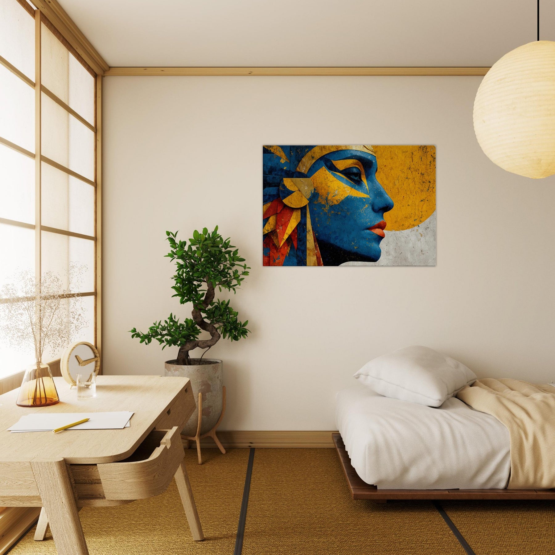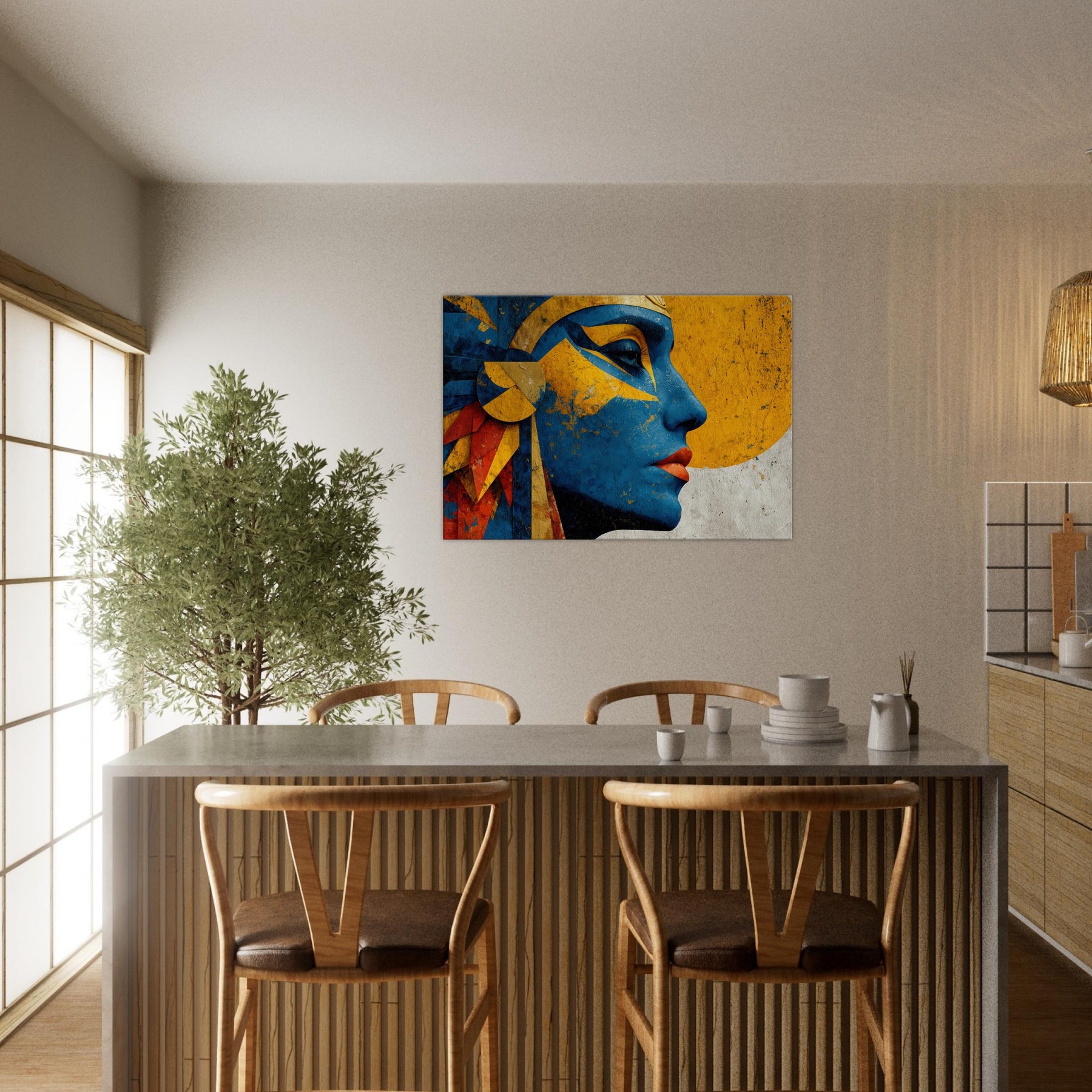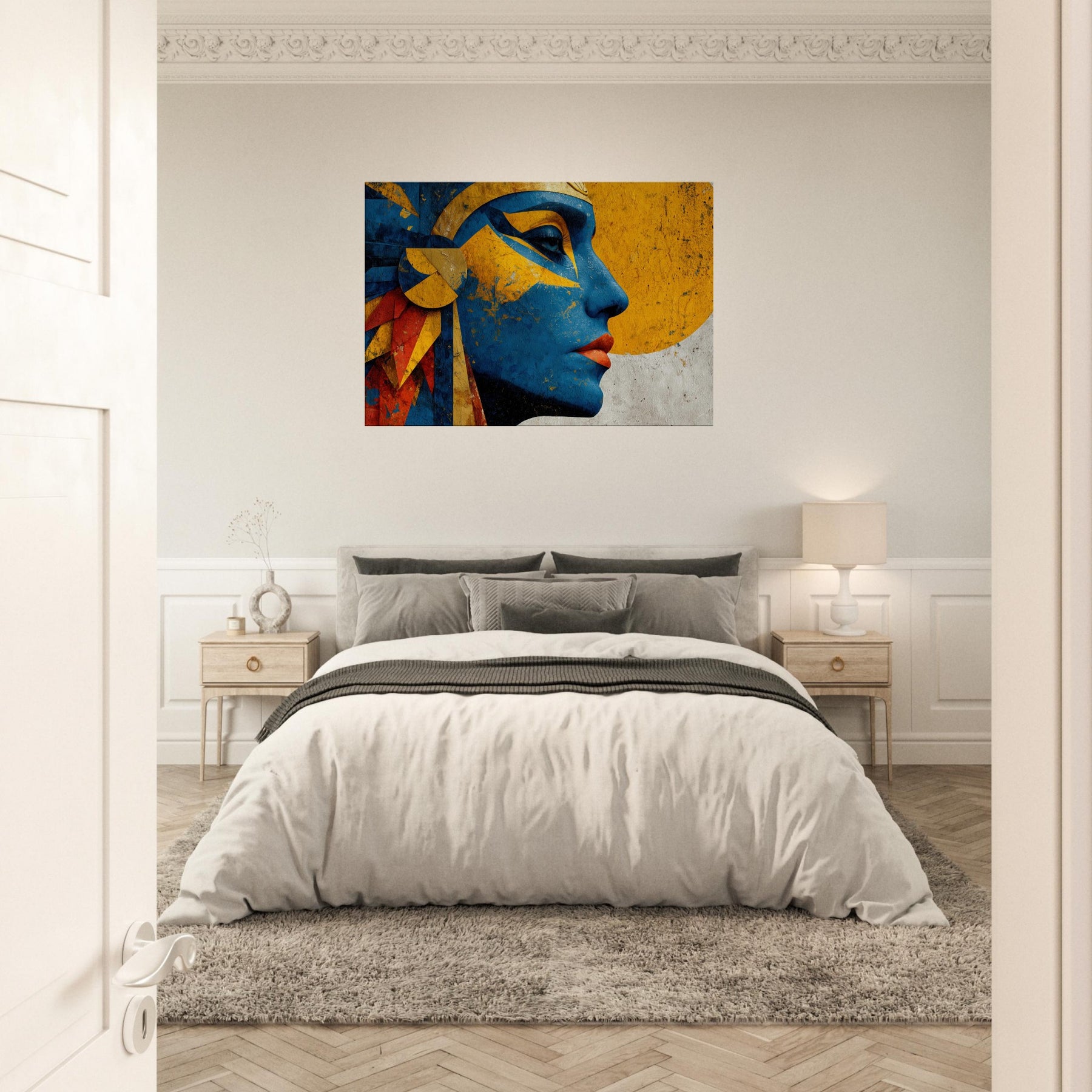 Isis rises in a luminous hush, a goddess of magic and motherhood rendered as a dreamlike profile that travels from shadow to light. The abstraction dissolves form into color deep blues, sunlit golds, and a kiss of coral creating a serene, temple like mood that elevates any living space. This artwork invites quiet reflection, turning walls into a gallery of myth and memory. Place it above a sofa or in a quiet alcove, and let Isis' timeless energy inspire conversation, wonder, and a softer sense of power.