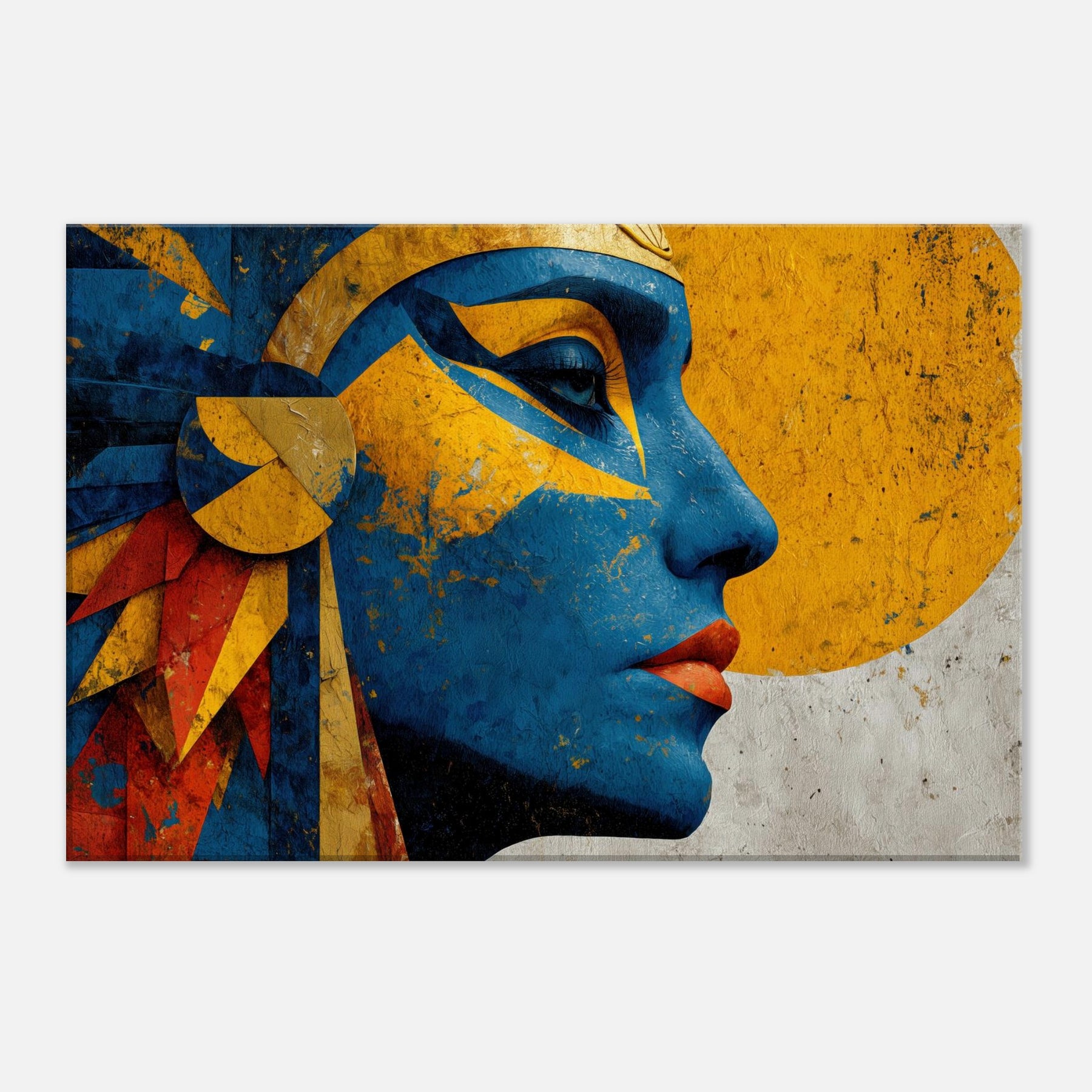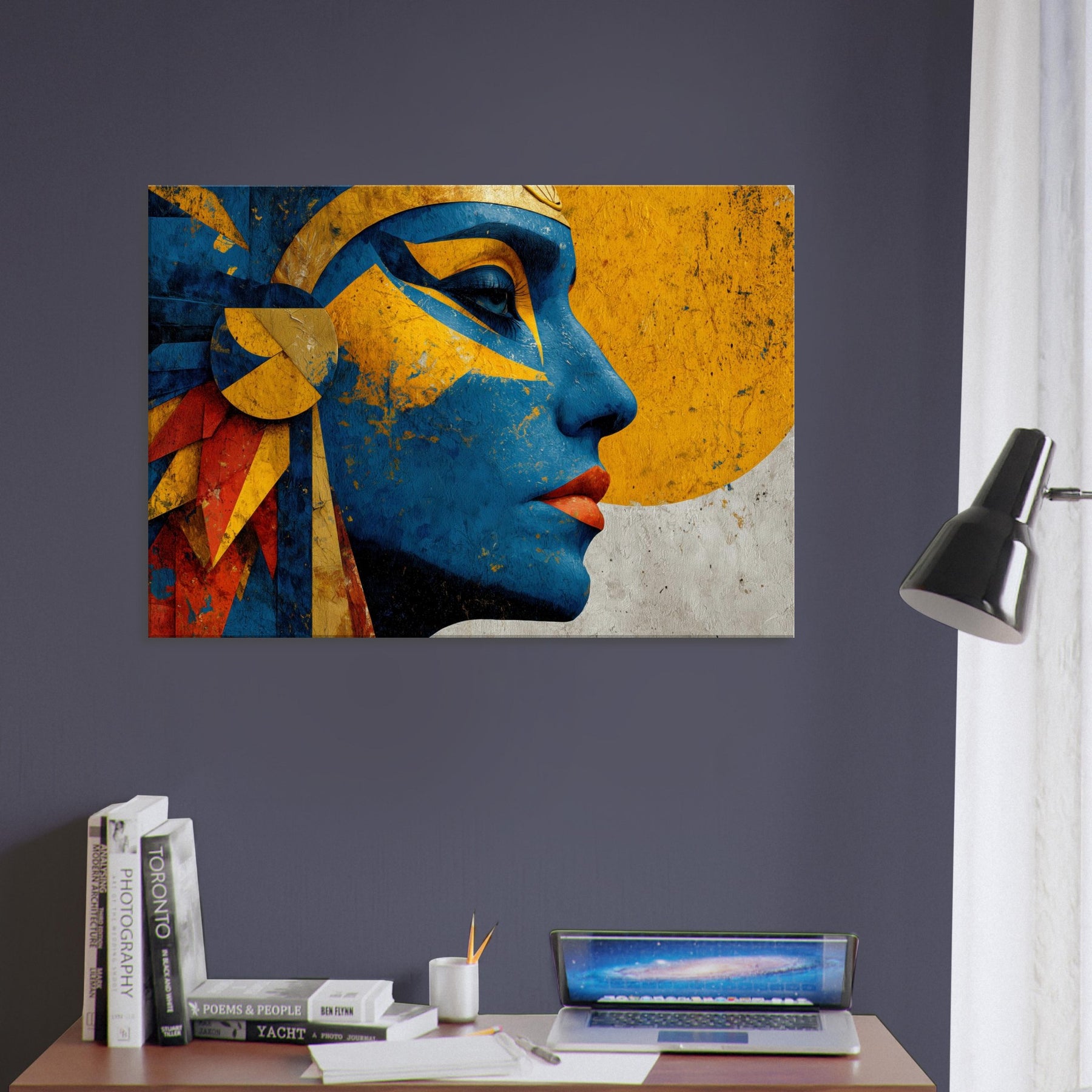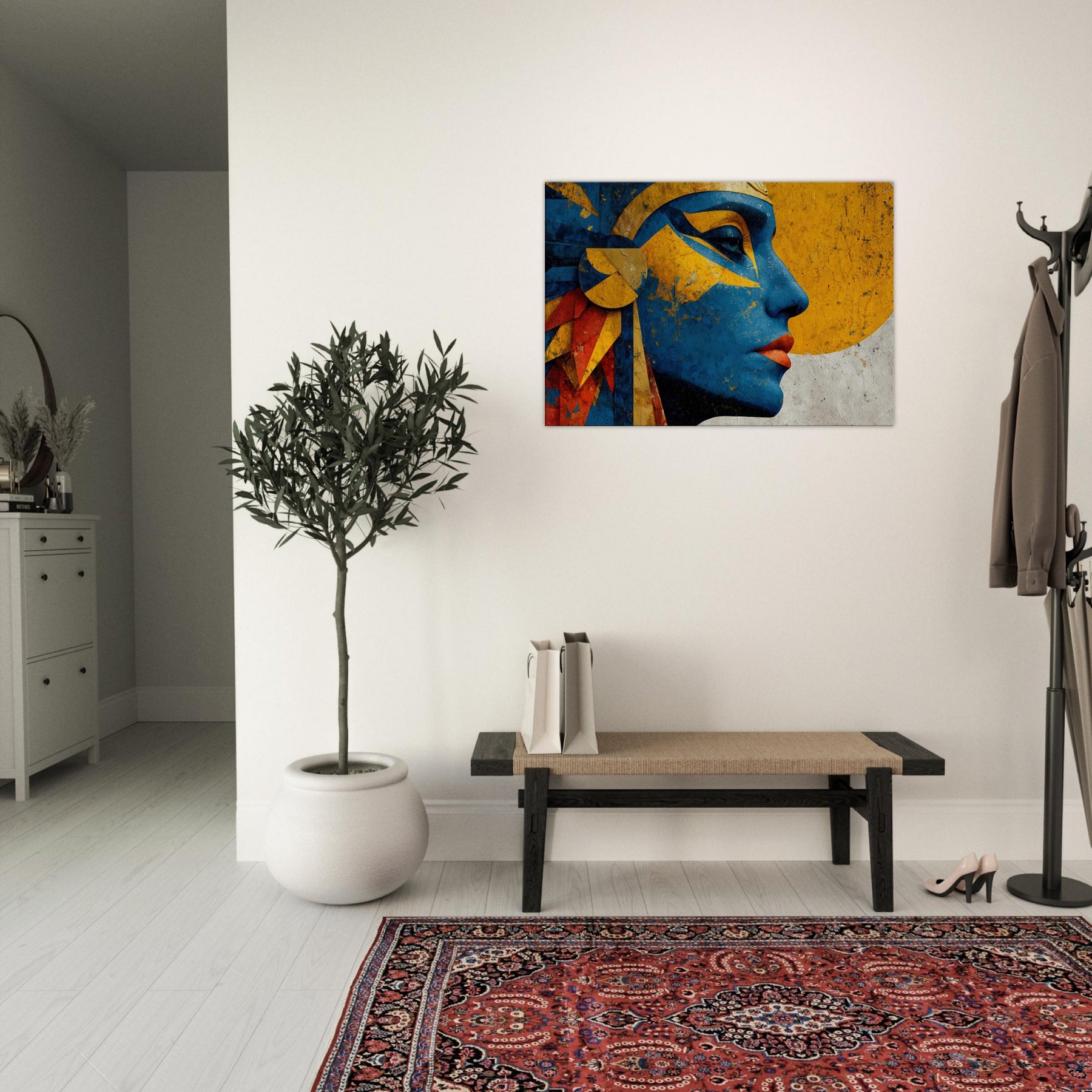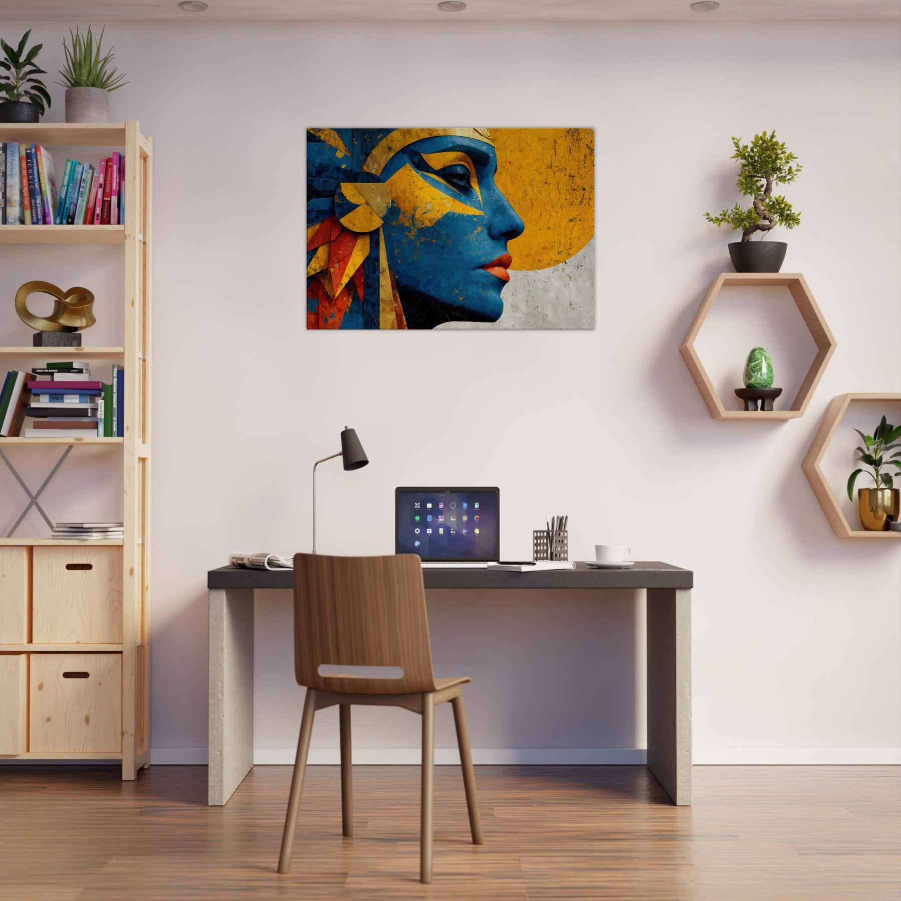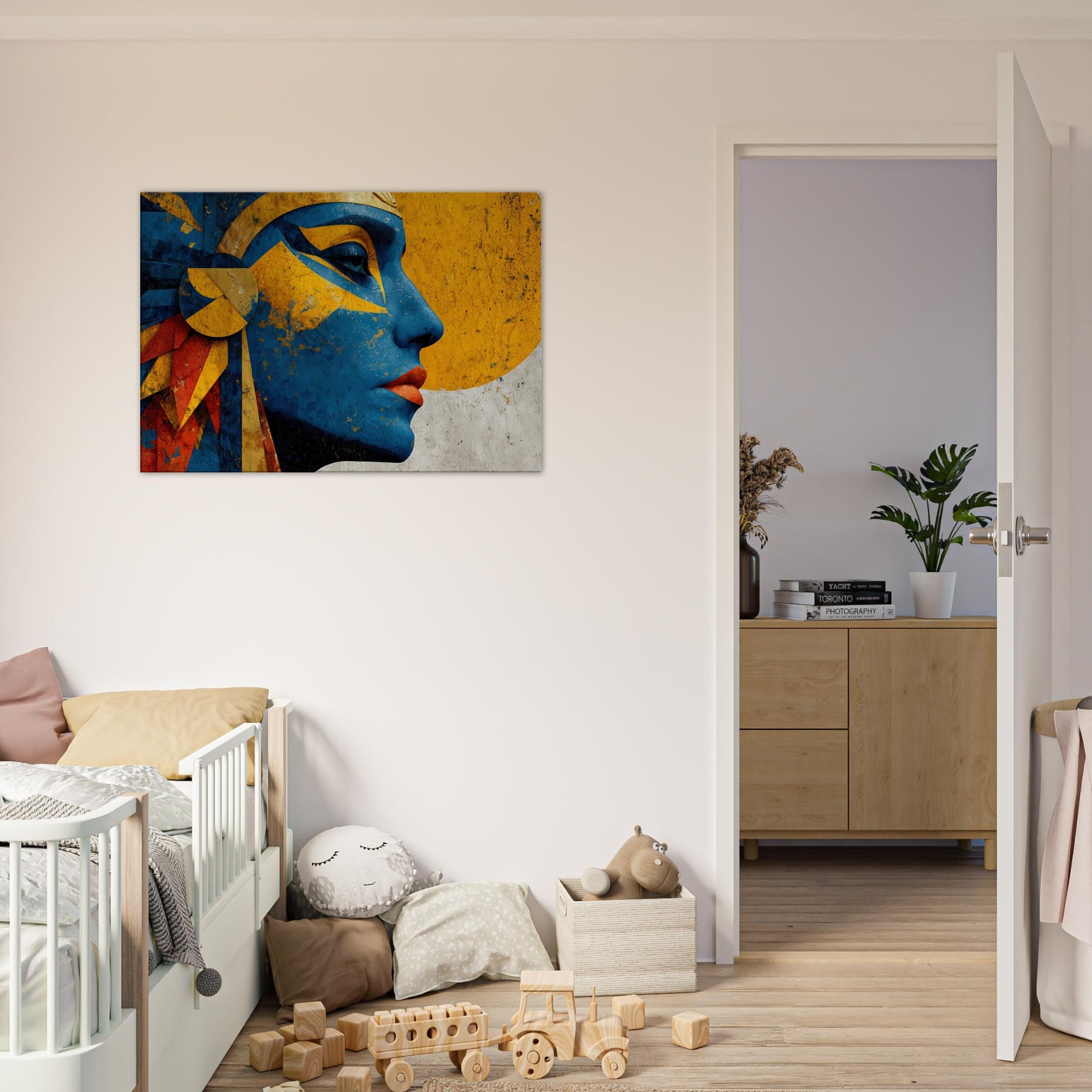Isis rises in a luminous hush, a goddess of magic and motherhood rendered as a dreamlike profile that travels from shadow to light. The abstraction dissolves form into color deep blues, sunlit golds, and a kiss of coral creating a serene, temple like mood that elevates any living space. This artwork invites quiet reflection, turning walls into a gallery of myth and memory. Place it above a sofa or in a quiet alcove, and let Isis' timeless energy inspire conversation, wonder, and a softer sense of power.