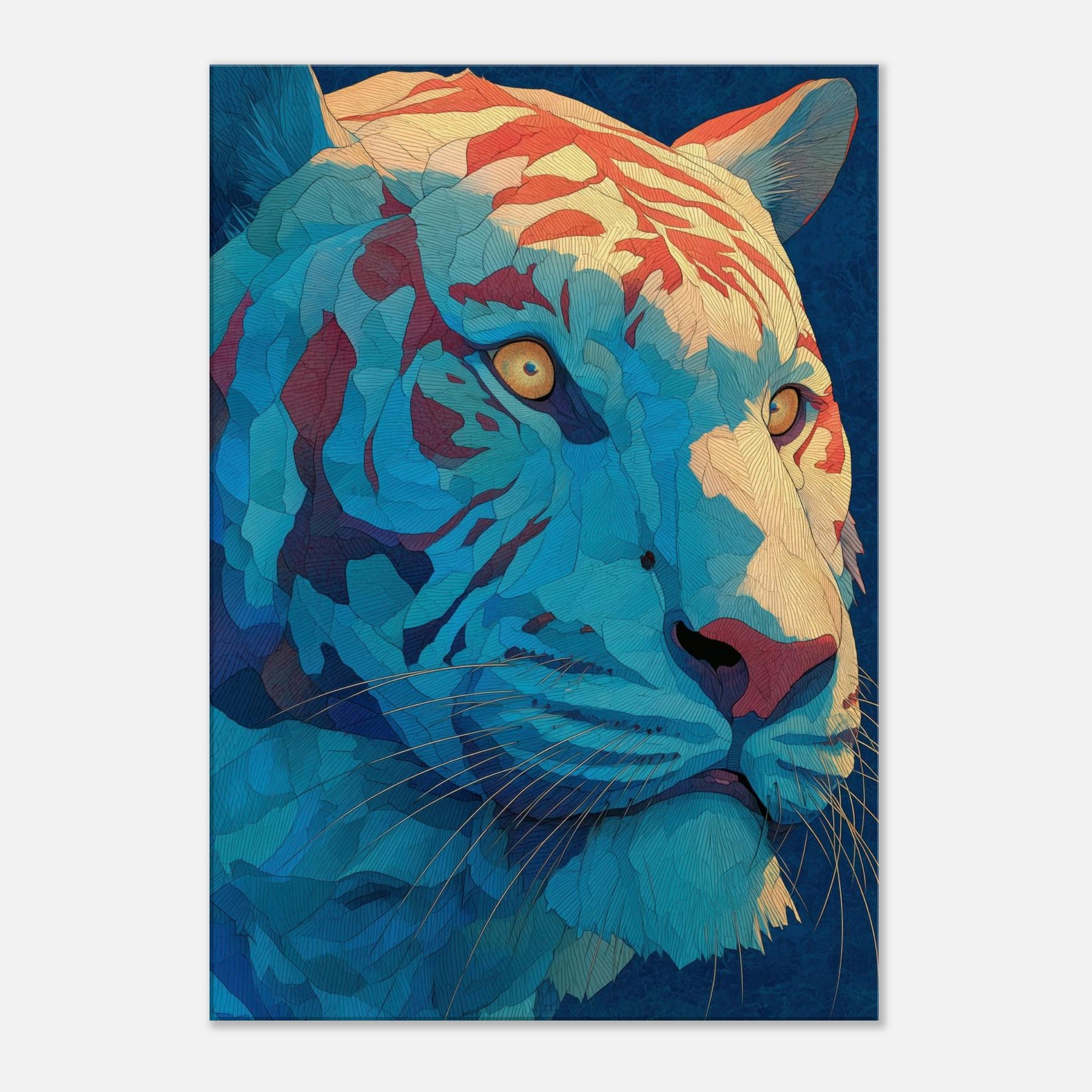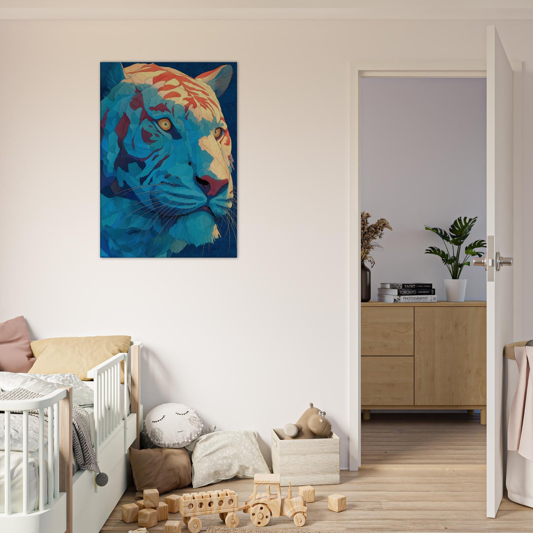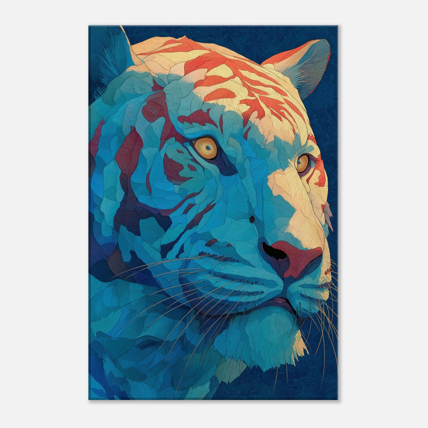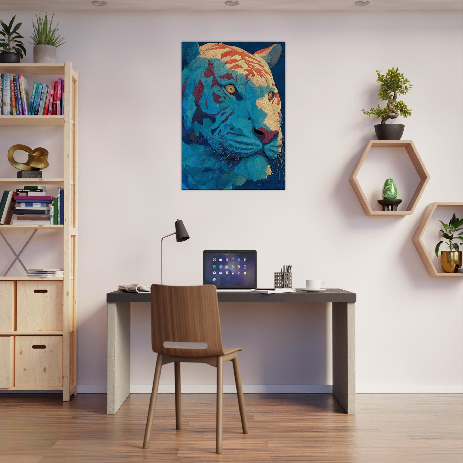 Let the White Tiger of the West guard your space with luminous, moonlit color and angular, dreamlike contours. This abstract portrayal channels mythic power into a living room presence the tiger's amber eyes awaken the quiet corners, while a kaleidoscope of blues and tangerine accents folds light across the wall. The air seems to shimmer as if a celestial guardian has paused to watch over dusk filled evenings, inviting contemplation, conversation, and a moment of serene awe.