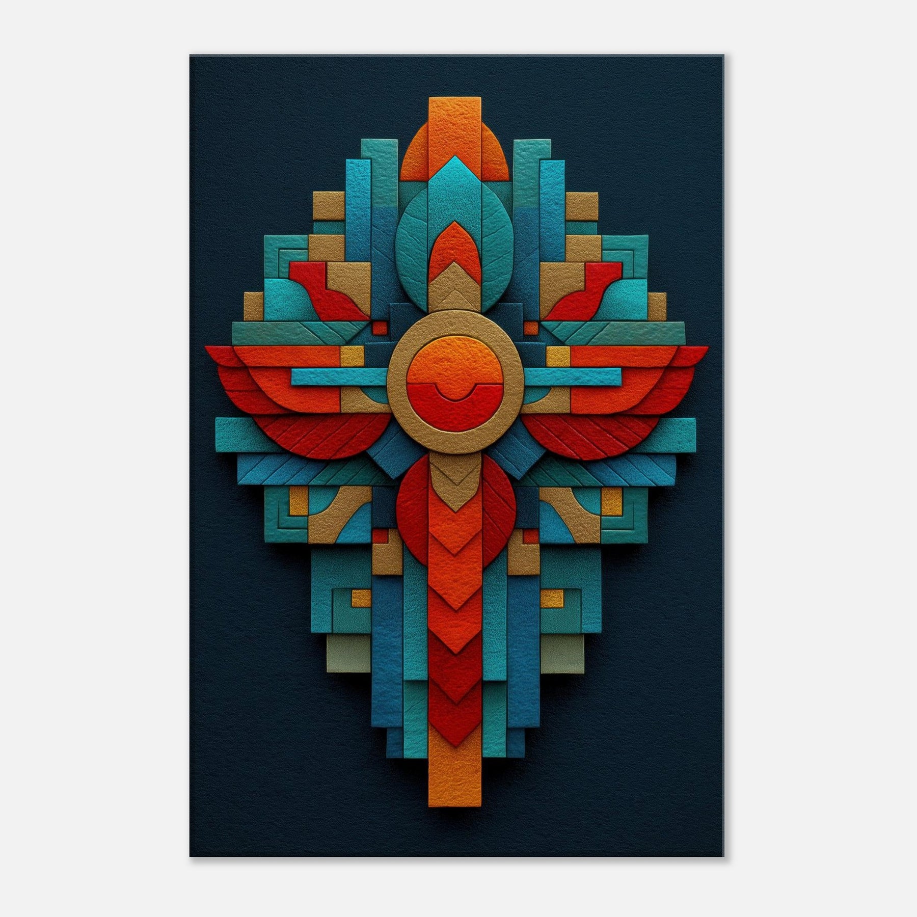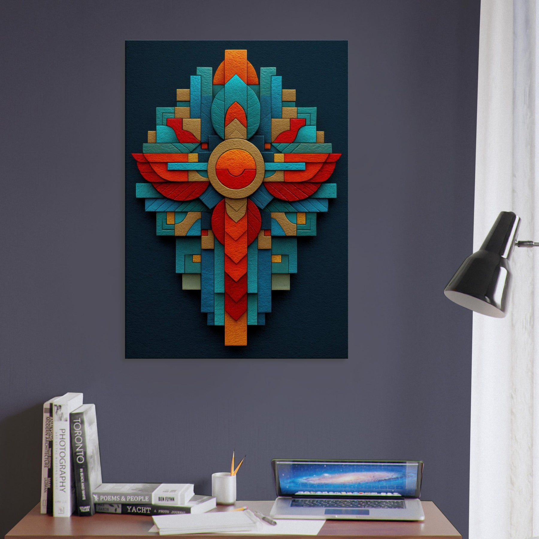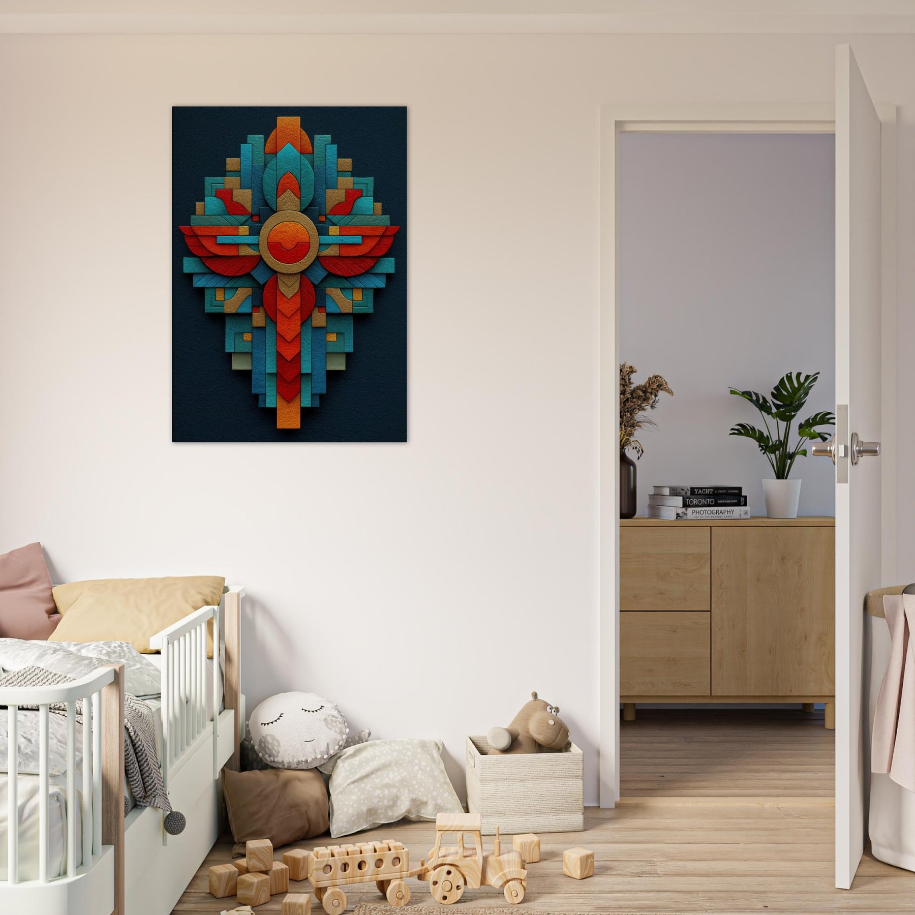 Chakras radiate across a layered, quilted field of color in this abstract composition. The Chakras shimmer in teal, coral, and gold, guiding the eye toward a centered glow that feels like a heartbeat in a quiet room. The piece conjures a meditative hush soft edges, crisp angles, and velvety shadows that deepen a corner or above a sofa. Hang it to invite a sense of balance, warmth, and movement, turning everyday living spaces into a sanctuary of energy and calm.