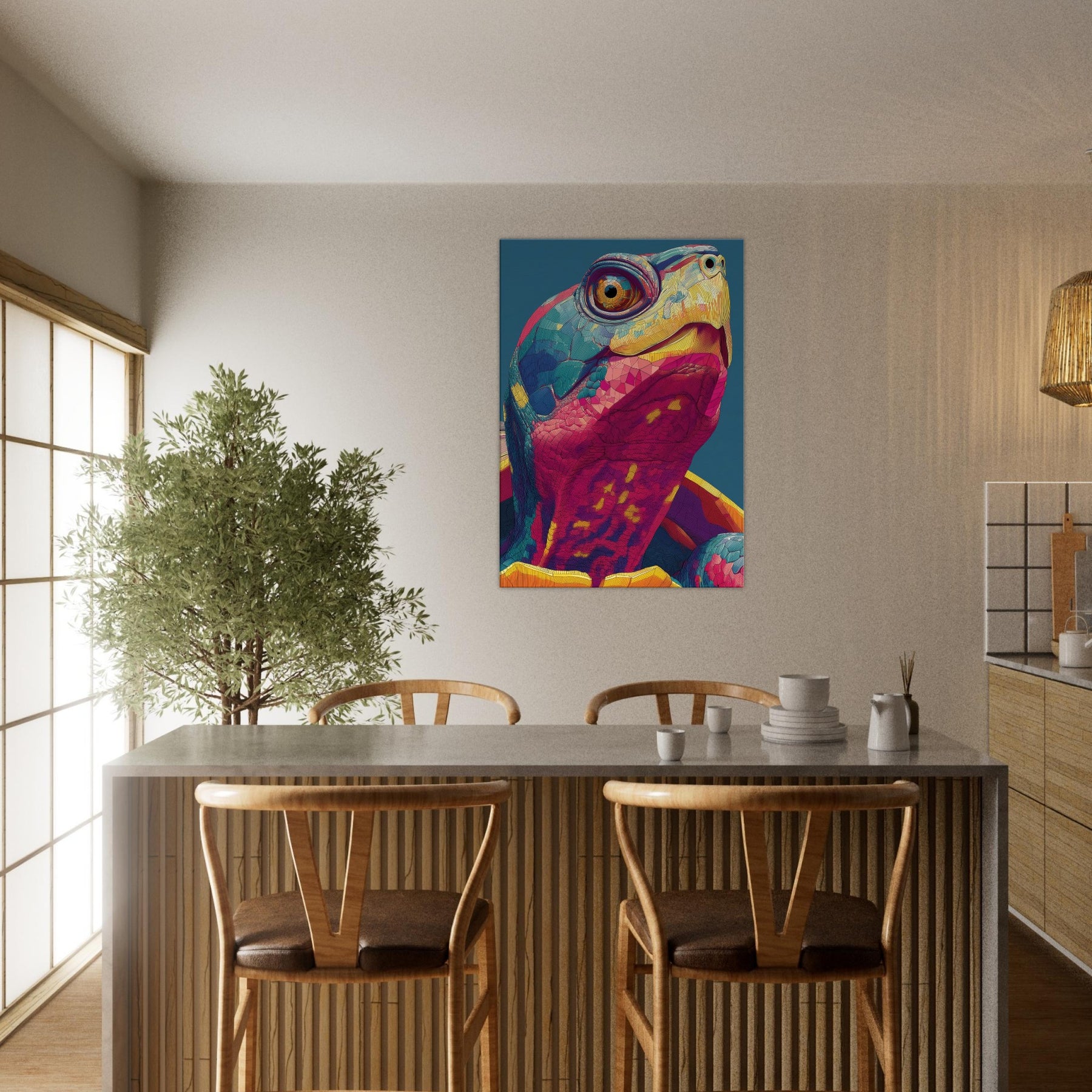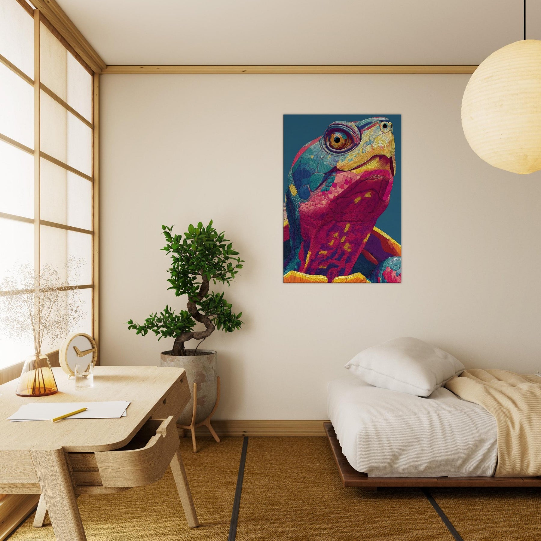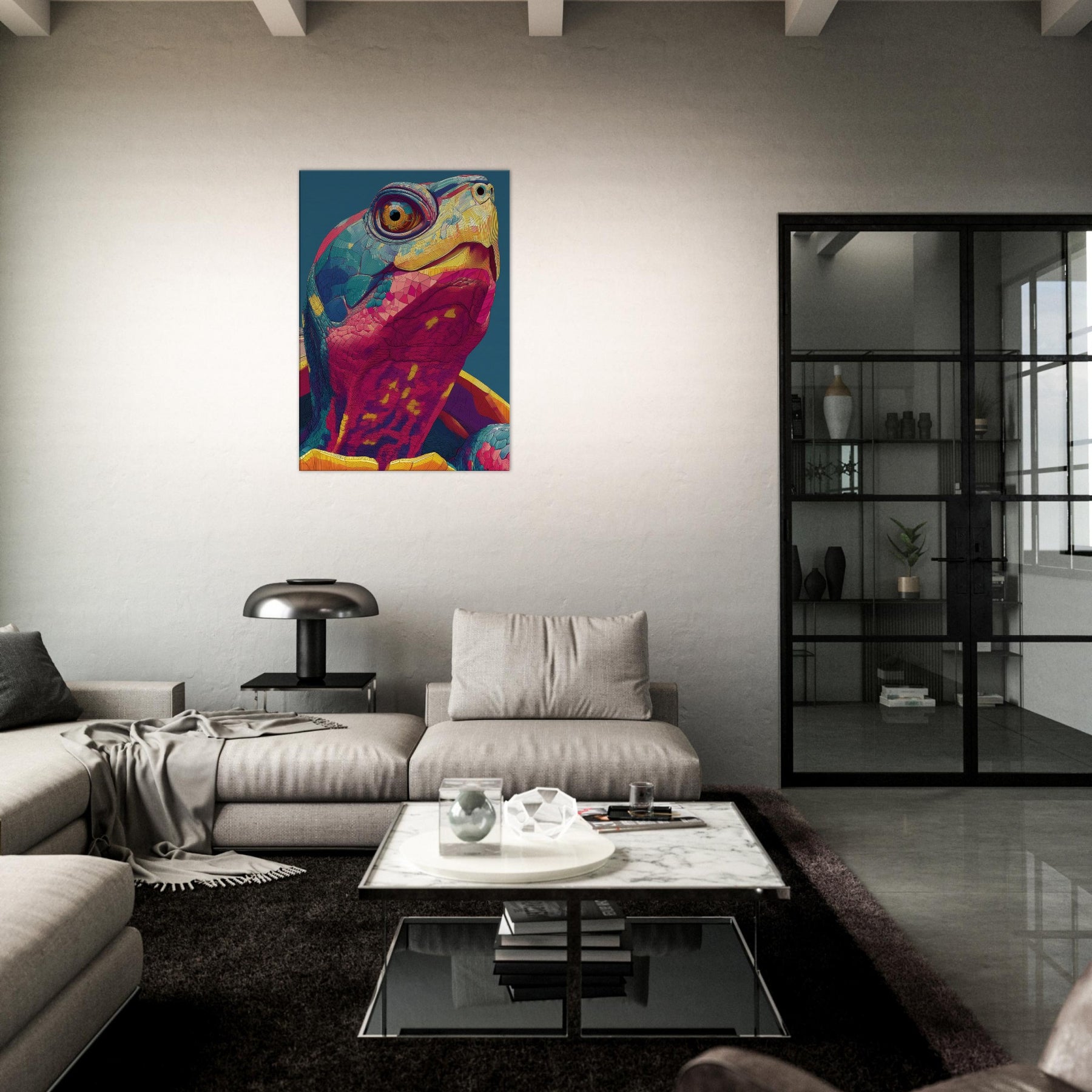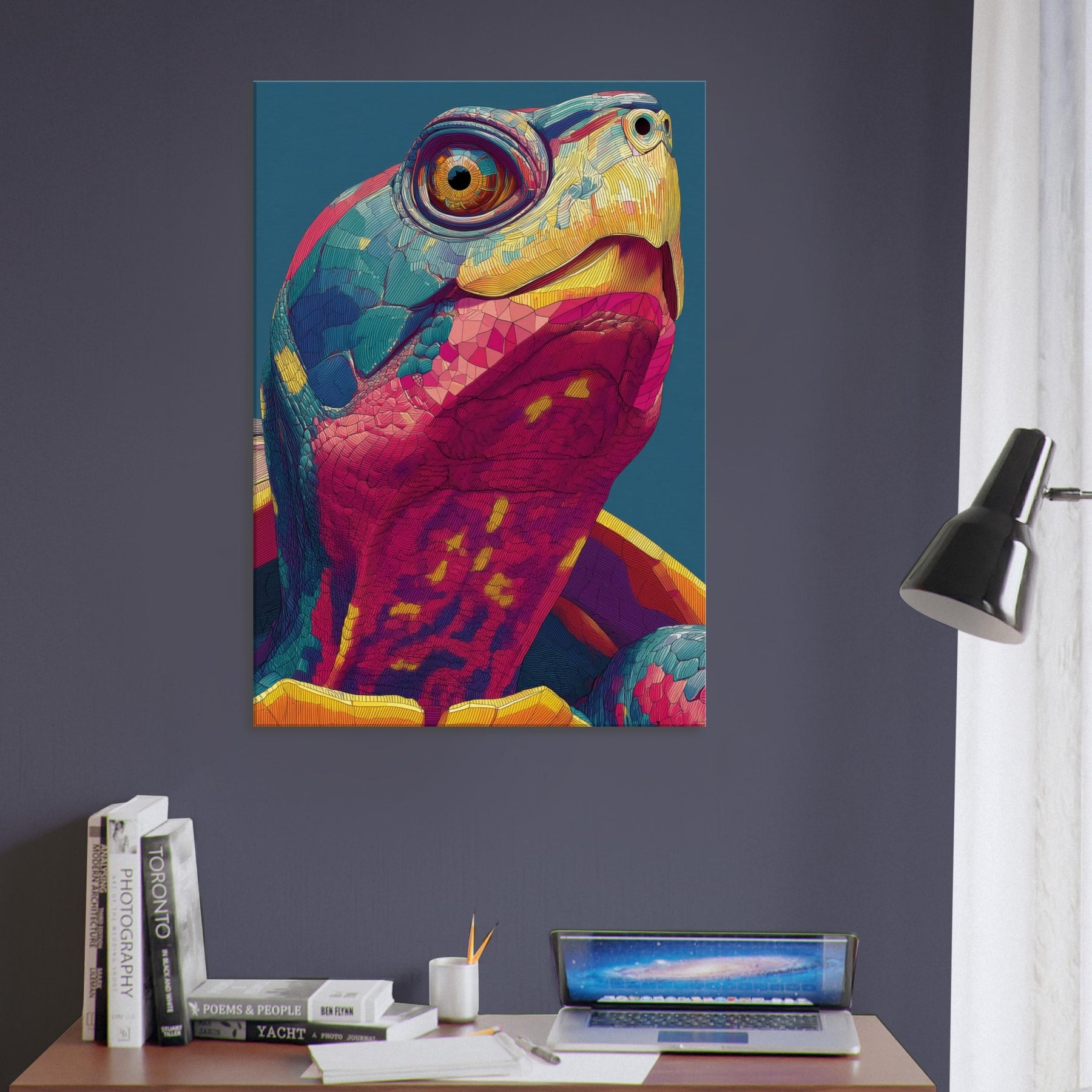 Immerse your space in a luminous chorus of color with this abstract Turtle . The composition fuses jagged mosaic textures with sweeping gradients, lending the creature a sense of quiet motion and imaginative depth. This Turtle emerges with jewel toned skin and sunlit highlights that glow against a cool teal background, turning any wall into a focal point. It invites contemplation, while its vibrant energy harmonizes with both minimalist and eclectic interiors.
