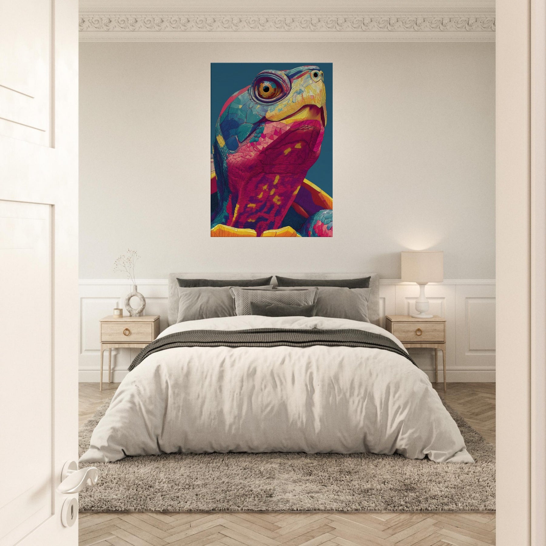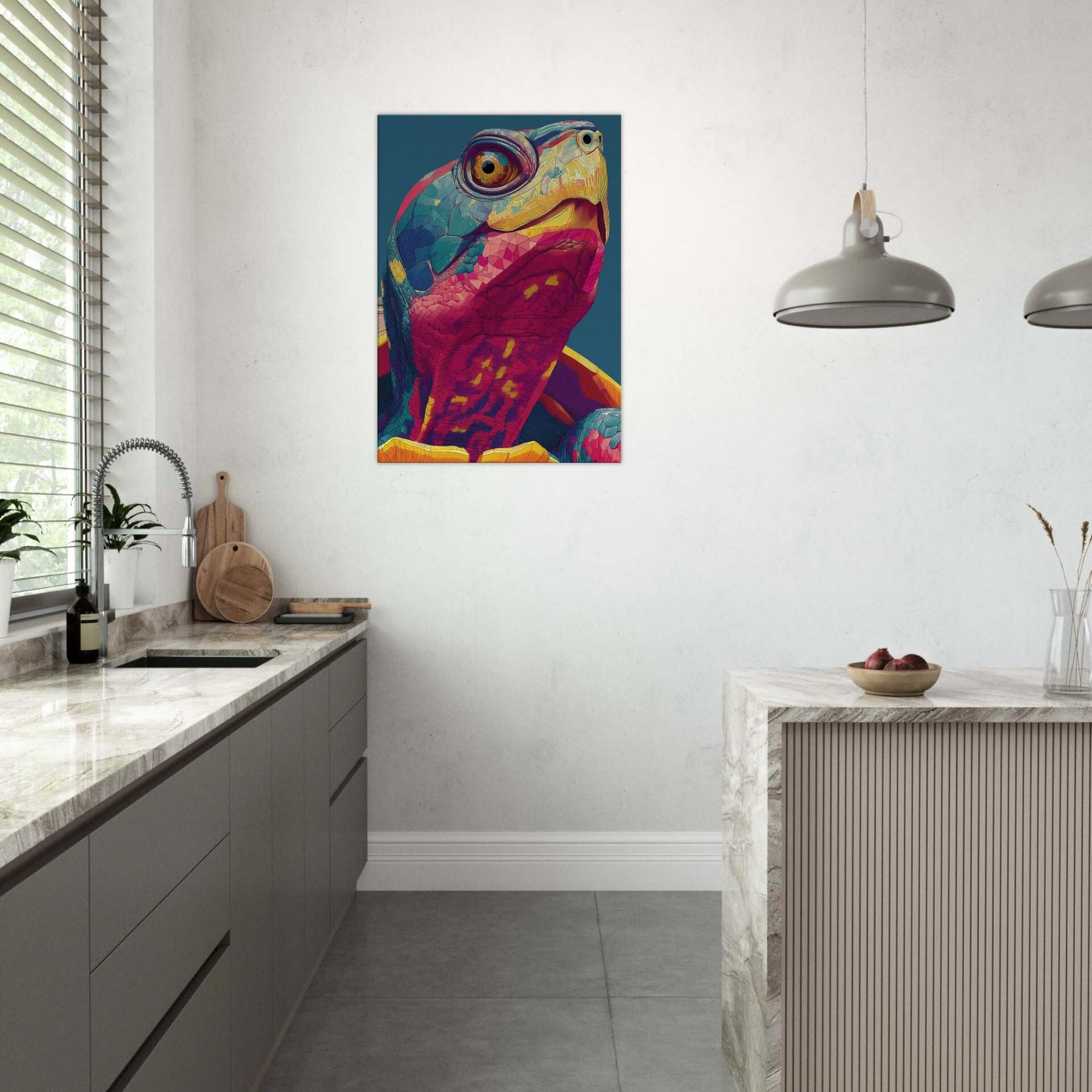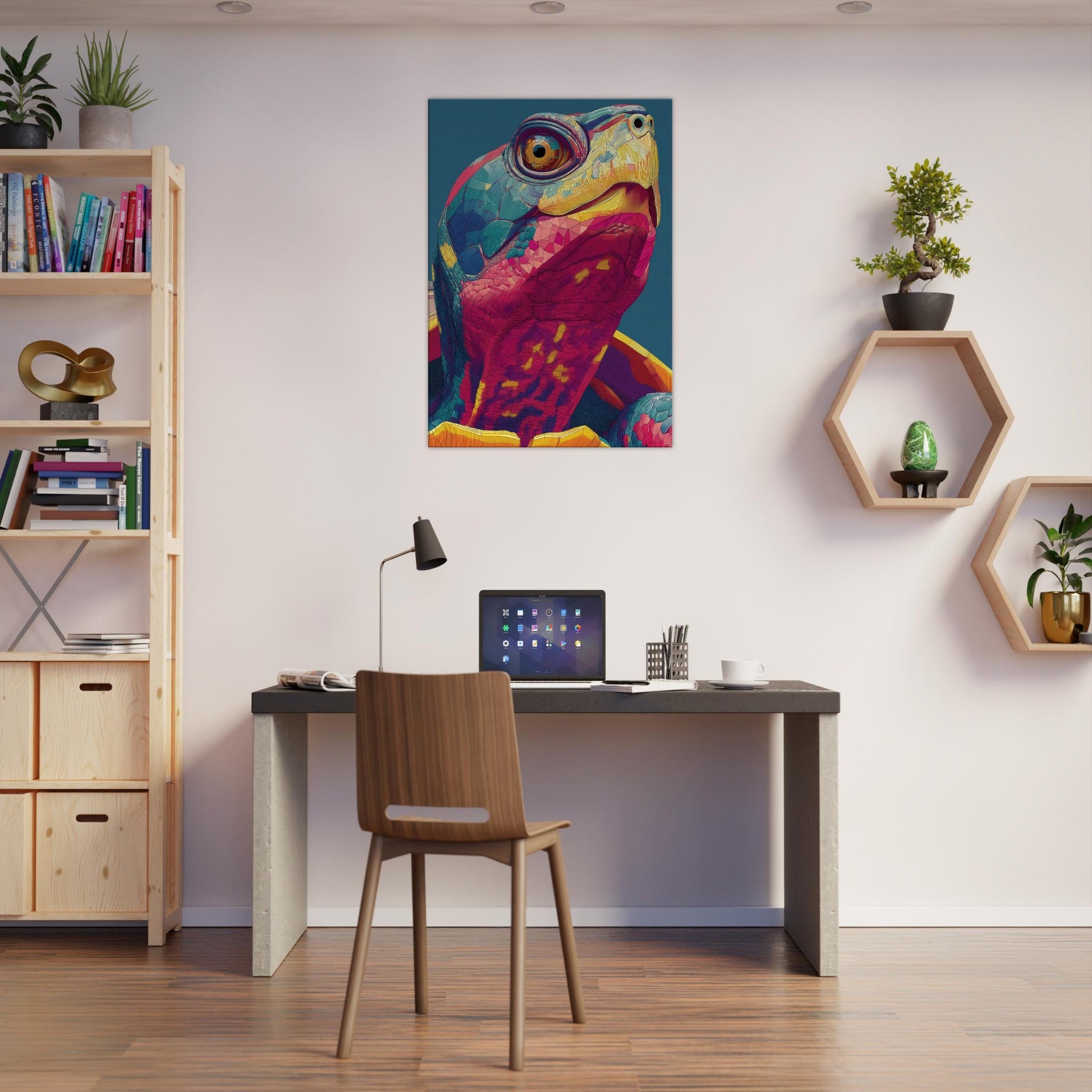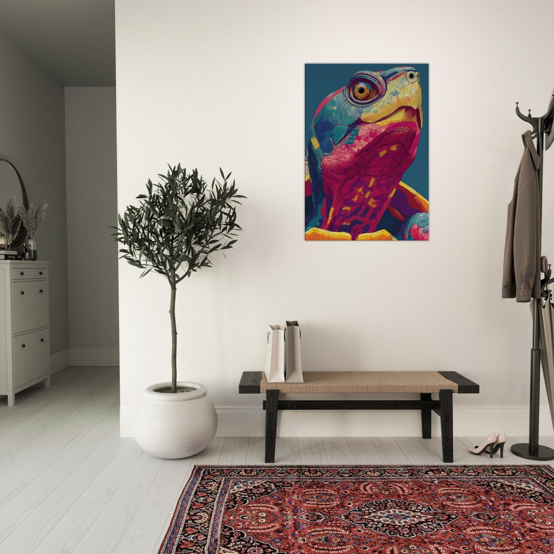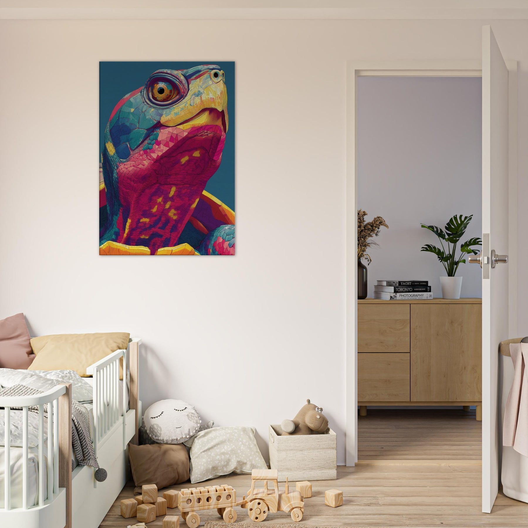 Immerse your space in a luminous chorus of color with this abstract Turtle . The composition fuses jagged mosaic textures with sweeping gradients, lending the creature a sense of quiet motion and imaginative depth. This Turtle emerges with jewel toned skin and sunlit highlights that glow against a cool teal background, turning any wall into a focal point. It invites contemplation, while its vibrant energy harmonizes with both minimalist and eclectic interiors.