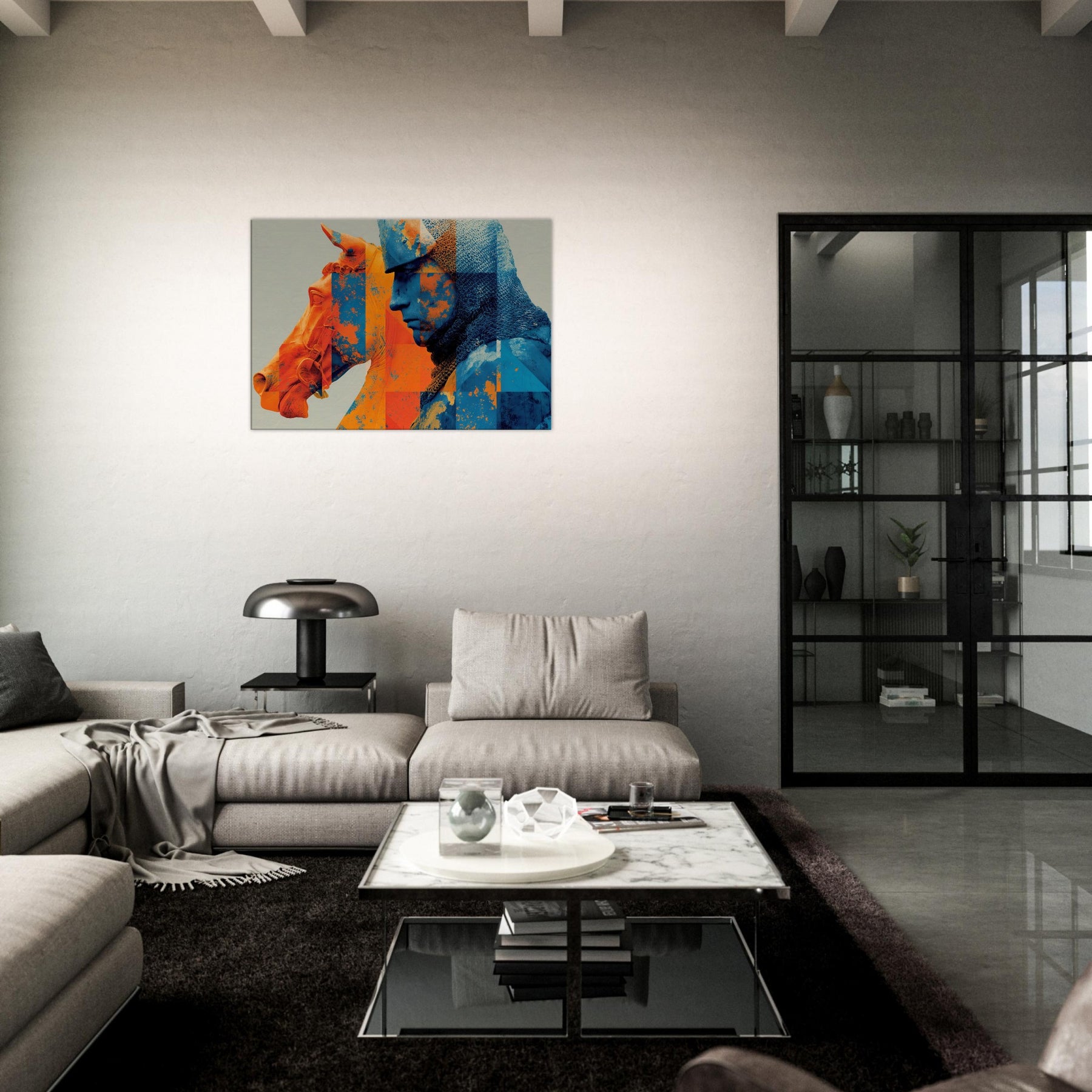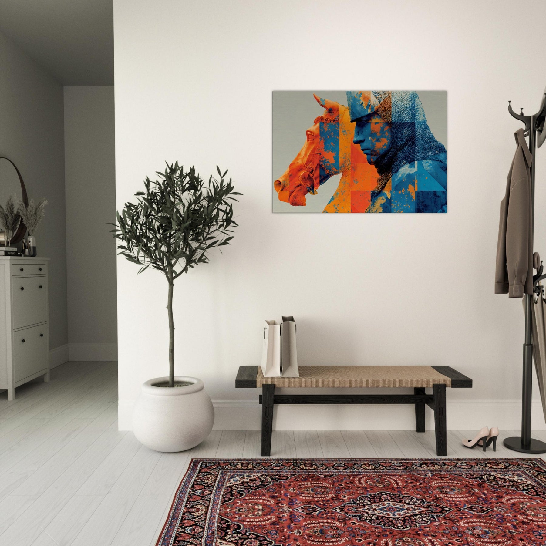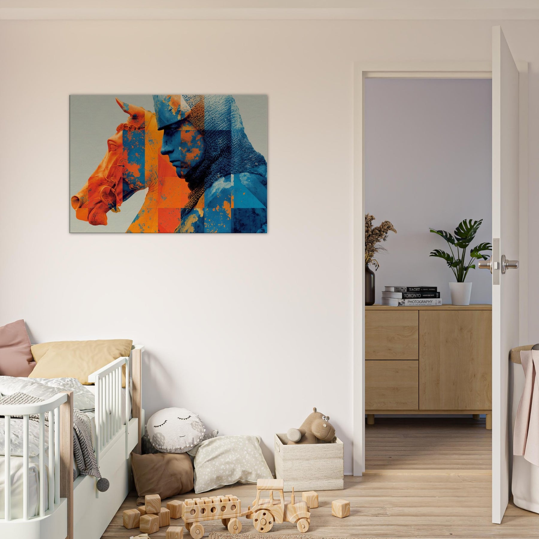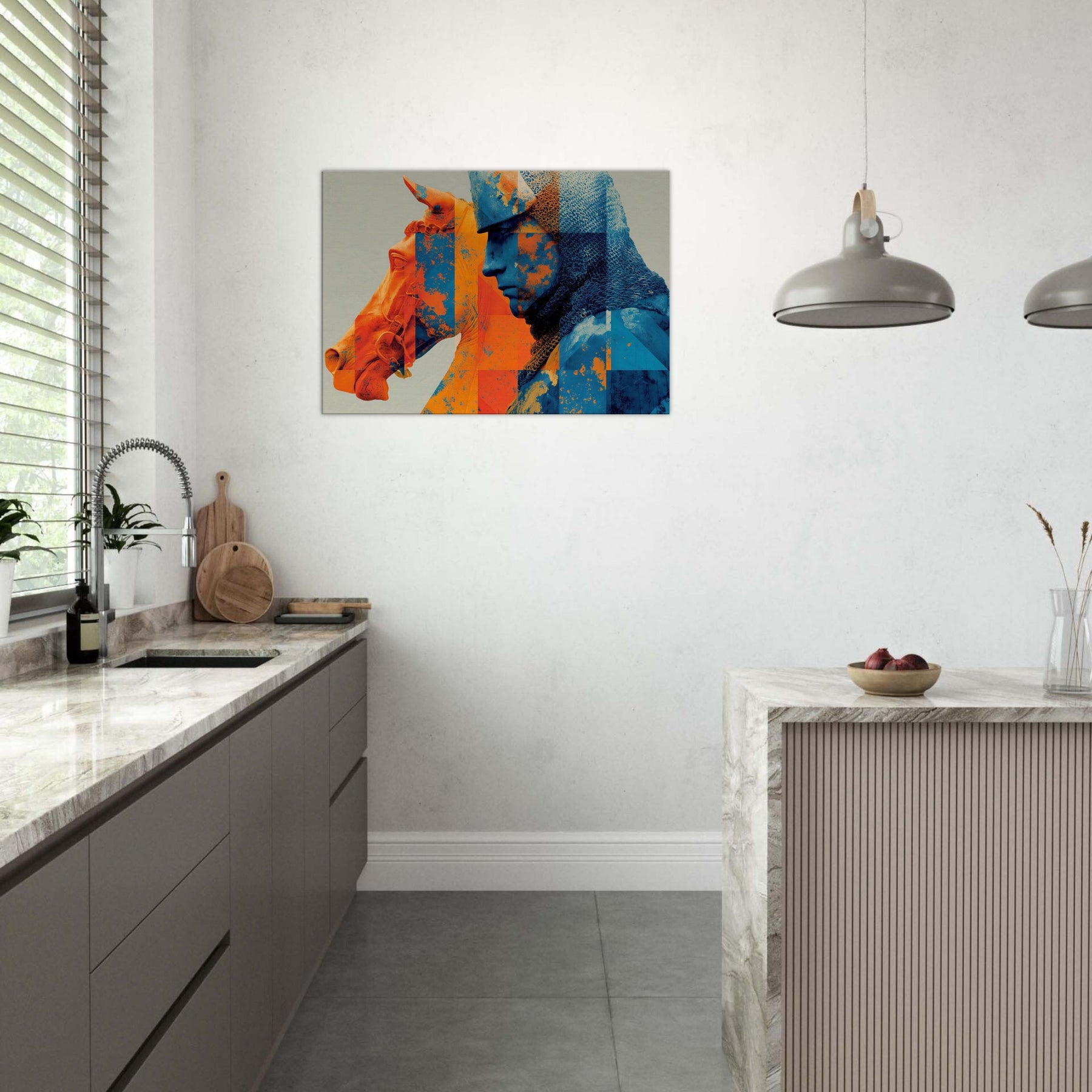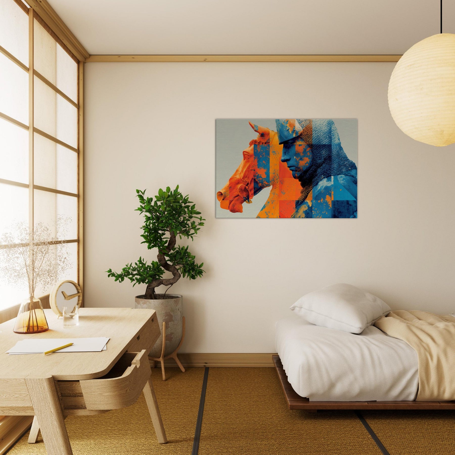 A precise silhouette of a Chess Knight dissolves into a chorus of color, where orange and cobalt collide in a dreamlike grid. This abstract meditation feels both ancient and electric, inviting focus, contemplation, and bold conversation in any living room. The tactile impression of carved stone is echoed in layered textures, while the shifting geometry suggests motion and strategy. Hang it where light travels across walls to reveal new facets, turning halls into galleries and everyday spaces into quiet, cinematic moments.