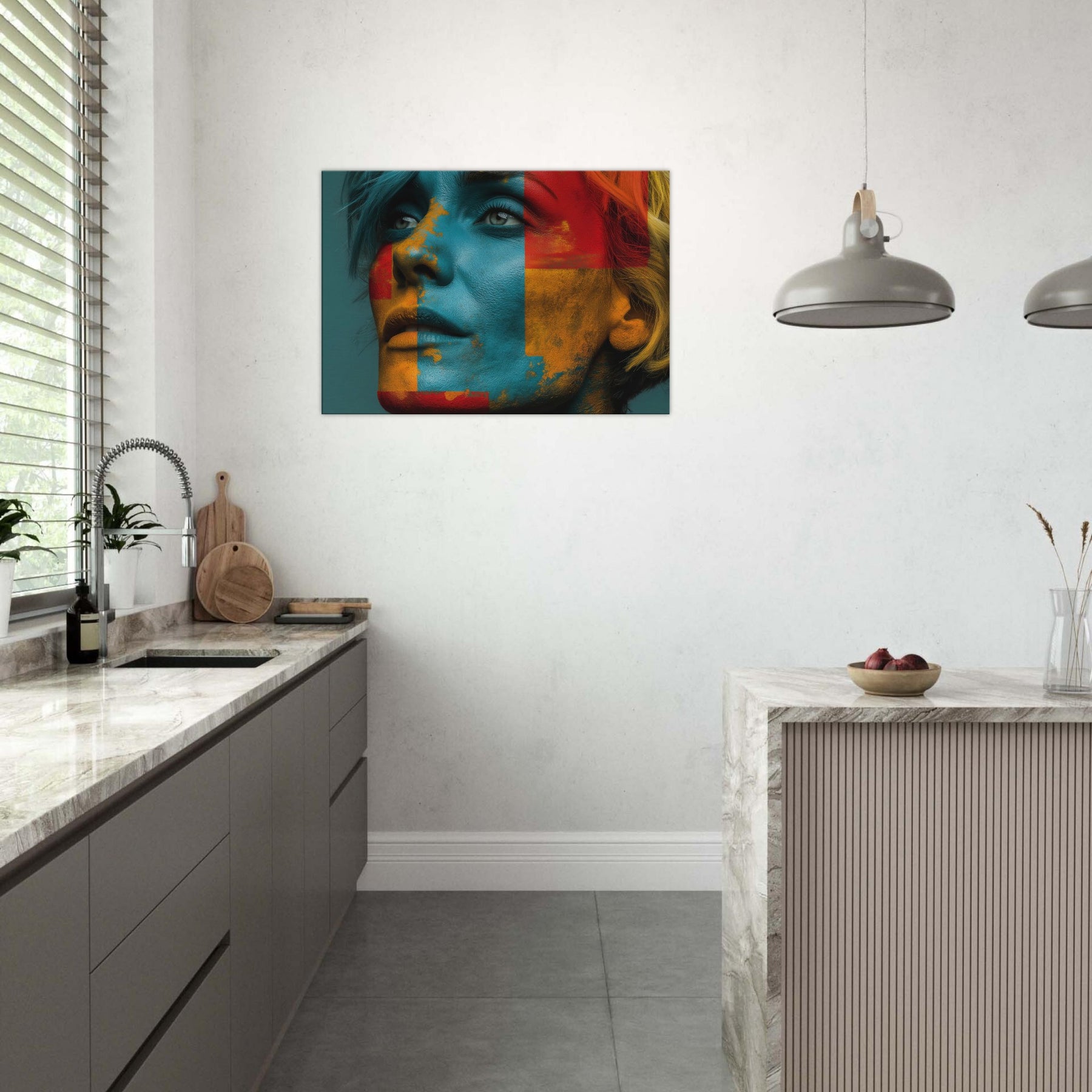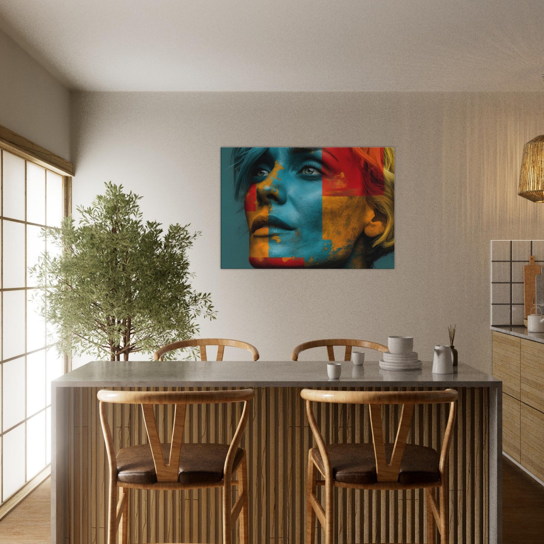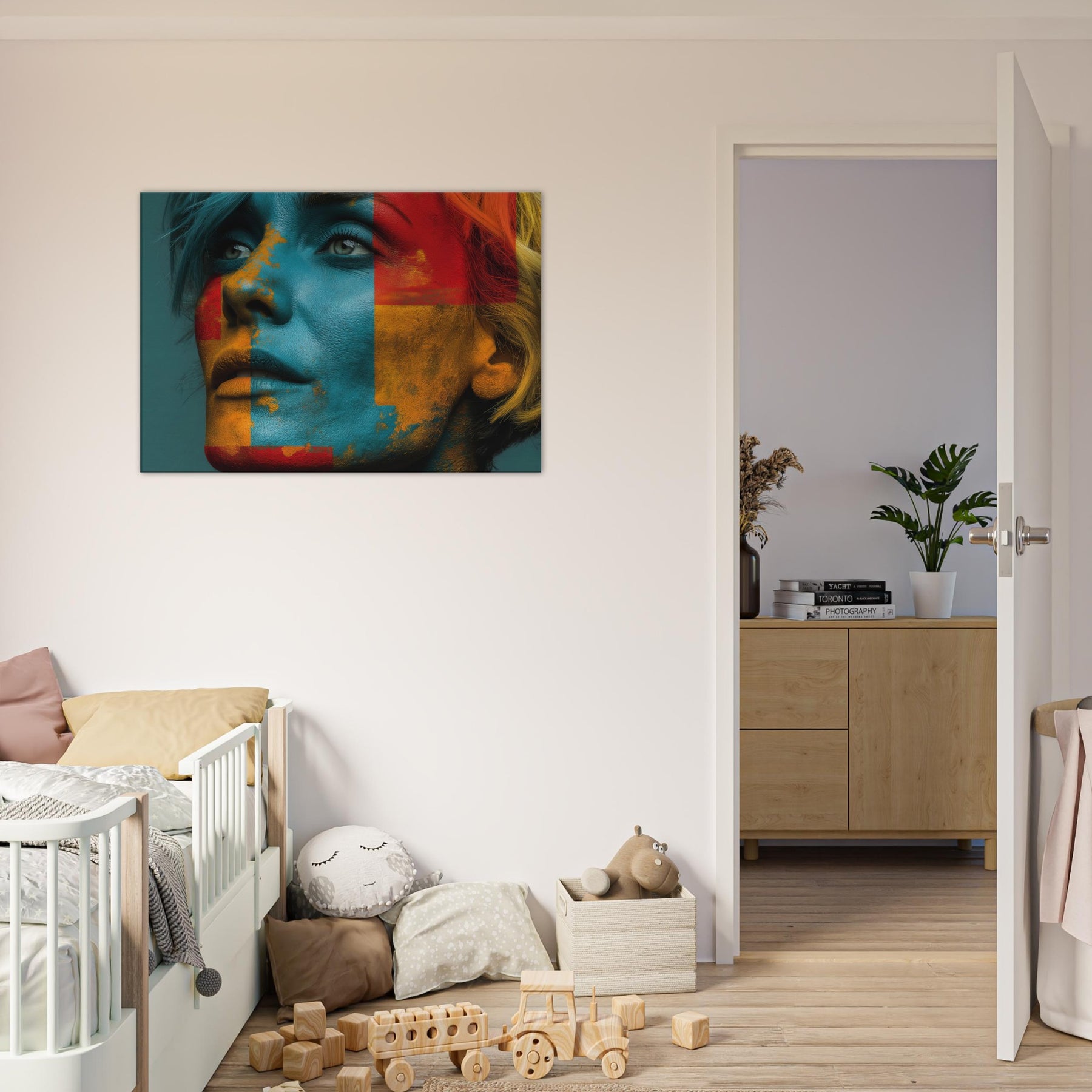 European Woman unfolds as a dreamlike collision of color and contour, a luminous study in presence. This abstract composition wraps the face in bold blocks of blue, orange, and red, each hue tracing emotion across skin and lips. The atmosphere is intimate yet contemporary, a quiet drama that shifts with light and perception, inviting the room to breathe. Position it as the focal point of a pale living space, where the European Woman anchors mood and conversation, a refined, tactile warmth that lingers after dusk.
