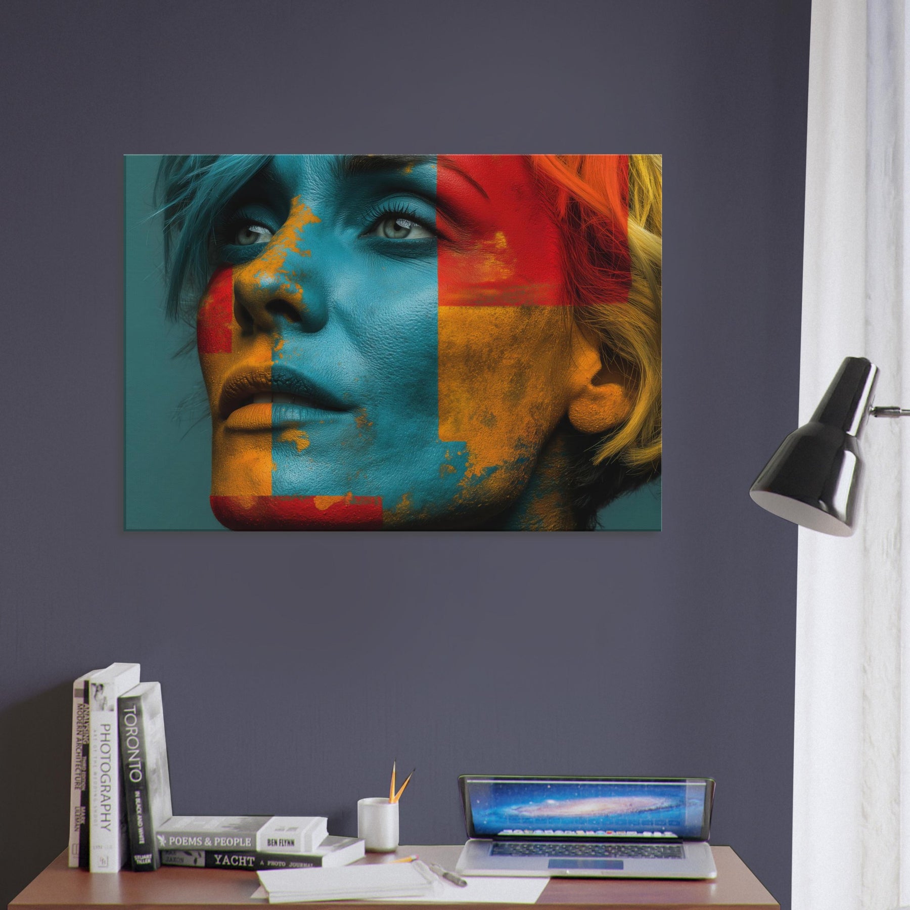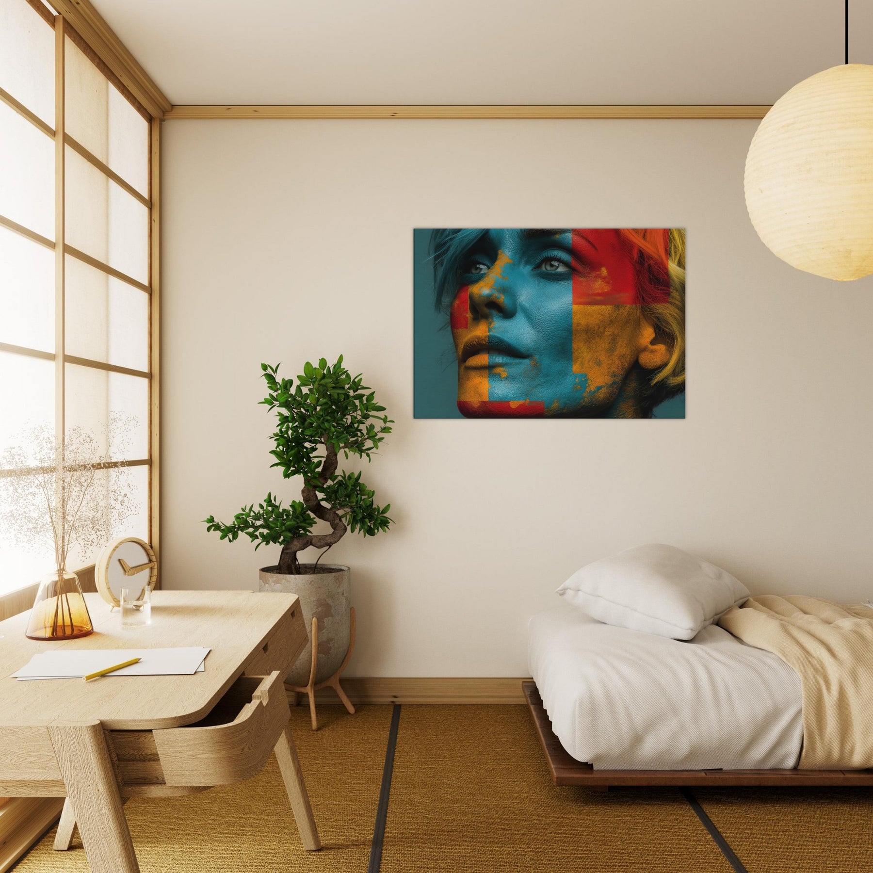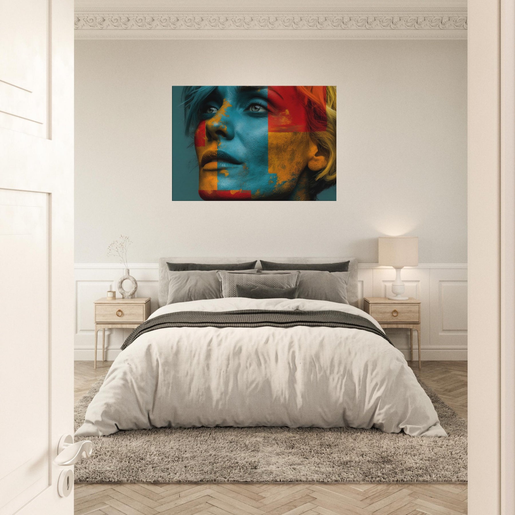 European Woman unfolds as a dreamlike collision of color and contour, a luminous study in presence. This abstract composition wraps the face in bold blocks of blue, orange, and red, each hue tracing emotion across skin and lips. The atmosphere is intimate yet contemporary, a quiet drama that shifts with light and perception, inviting the room to breathe. Position it as the focal point of a pale living space, where the European Woman anchors mood and conversation, a refined, tactile warmth that lingers after dusk.