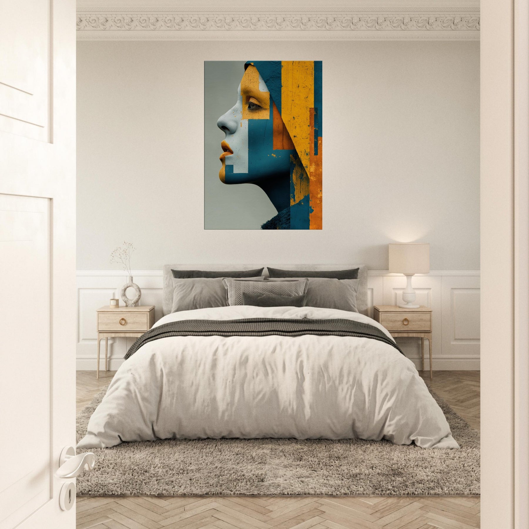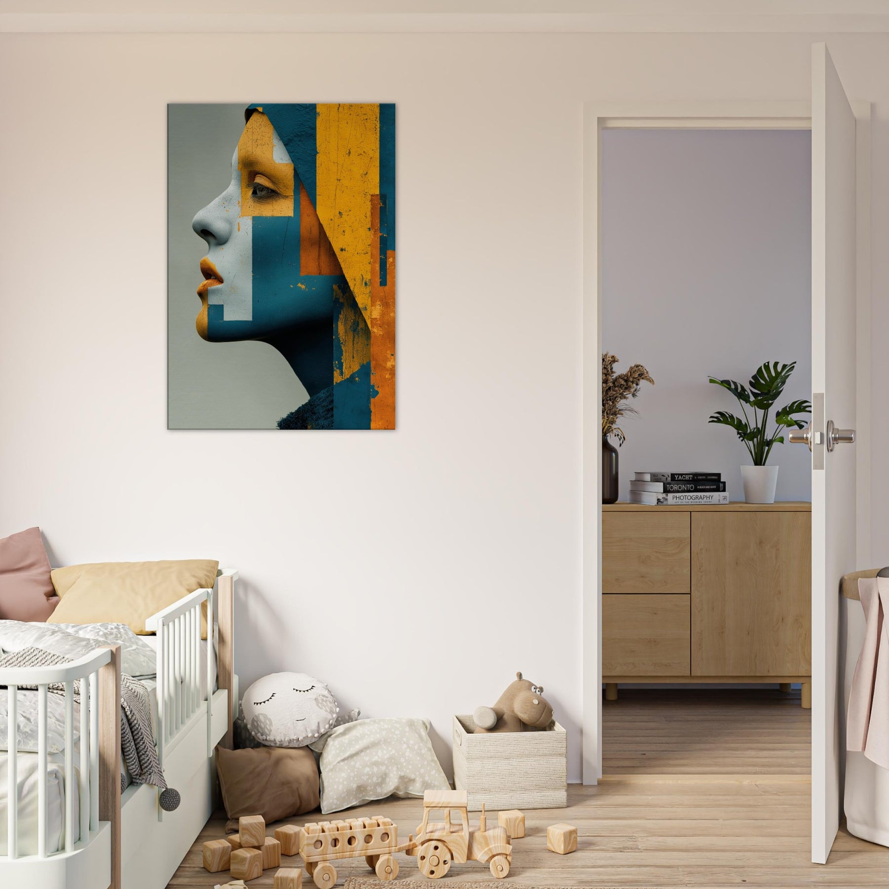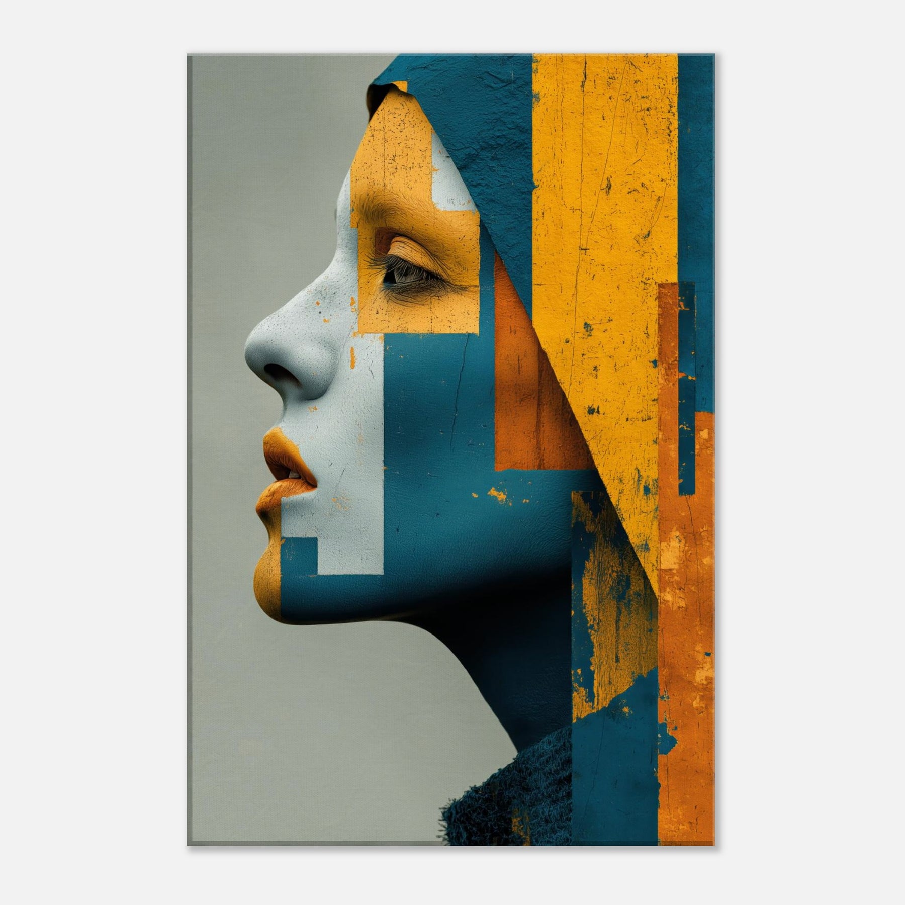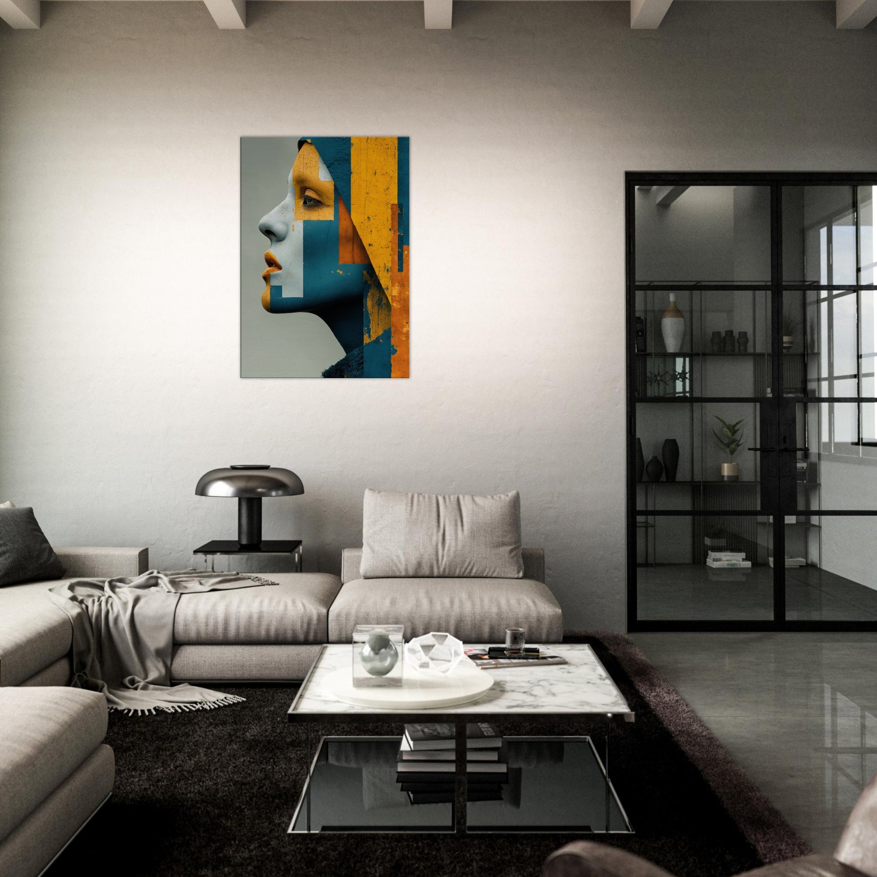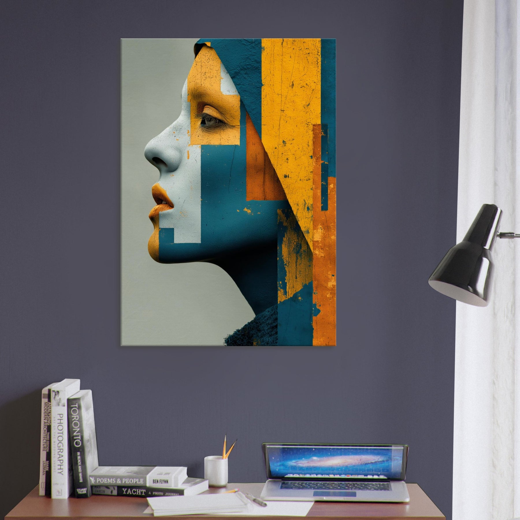 Centered on the European Woman (Primary Subject), this piece invites a quiet, meditative presence into the room. Layers of turquoise and tangerine drift across the face, shaping light and shadow into a modern lullaby. The tactile textures recall weathered plaster, while soft edges cradle the eye in calm momentum. Hang it in a living space or bedroom to elevate mood, spark conversation, and soften sharp corners with a warm, contemplative glow.