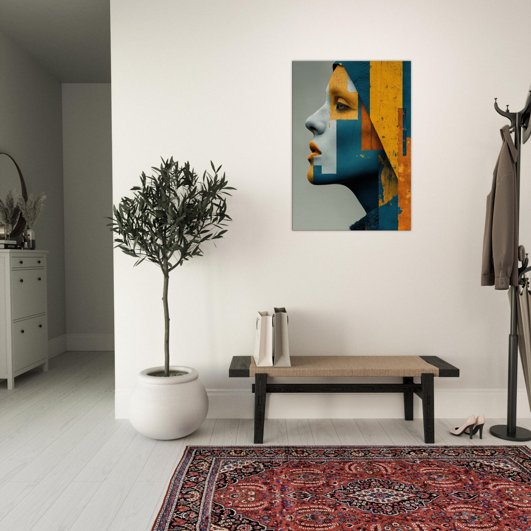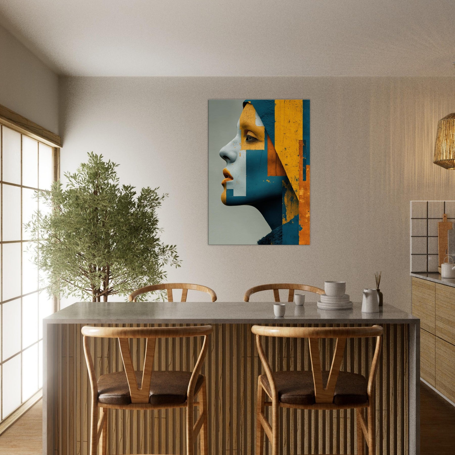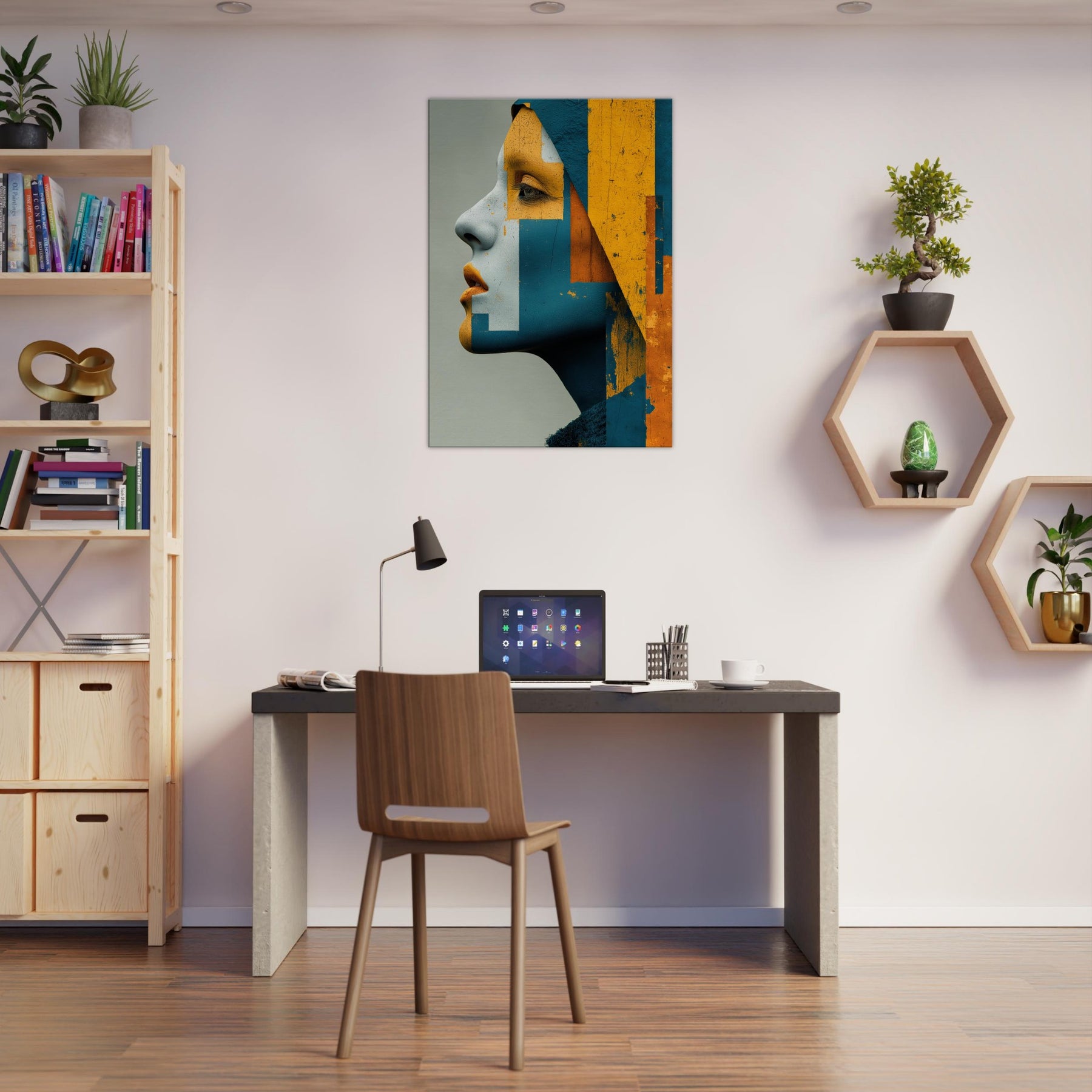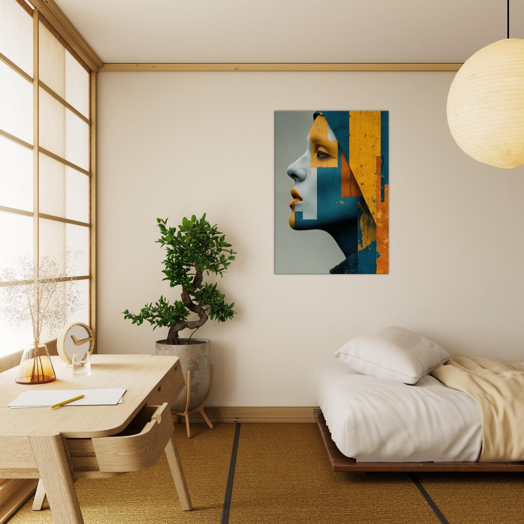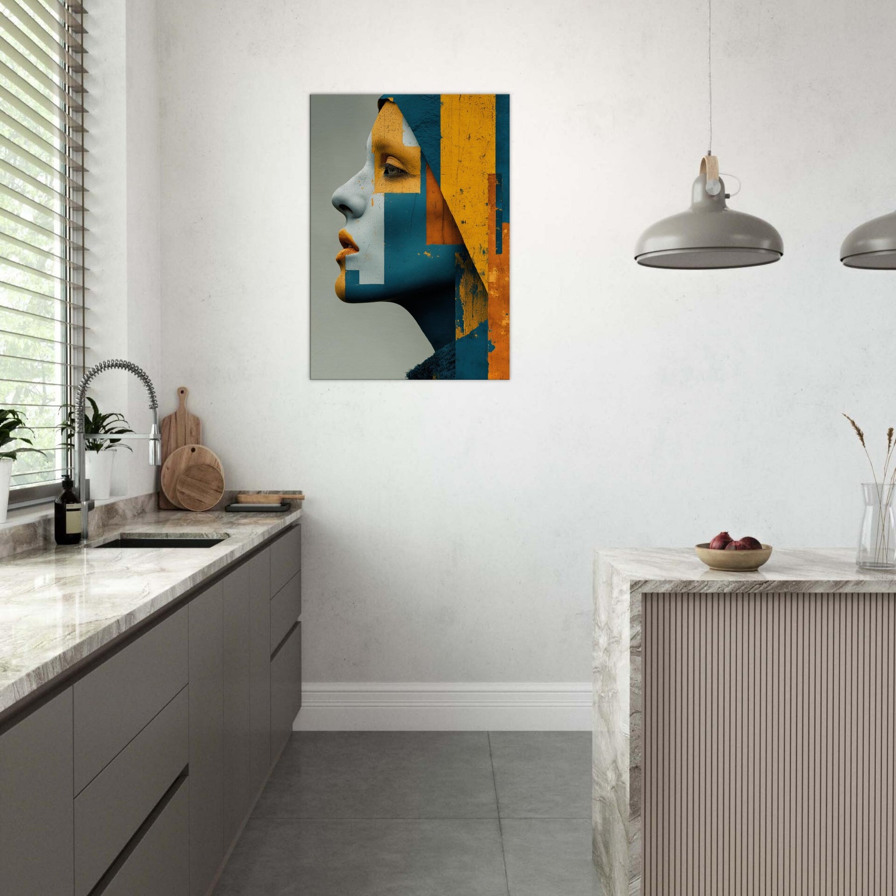 Centered on the European Woman (Primary Subject), this piece invites a quiet, meditative presence into the room. Layers of turquoise and tangerine drift across the face, shaping light and shadow into a modern lullaby. The tactile textures recall weathered plaster, while soft edges cradle the eye in calm momentum. Hang it in a living space or bedroom to elevate mood, spark conversation, and soften sharp corners with a warm, contemplative glow.