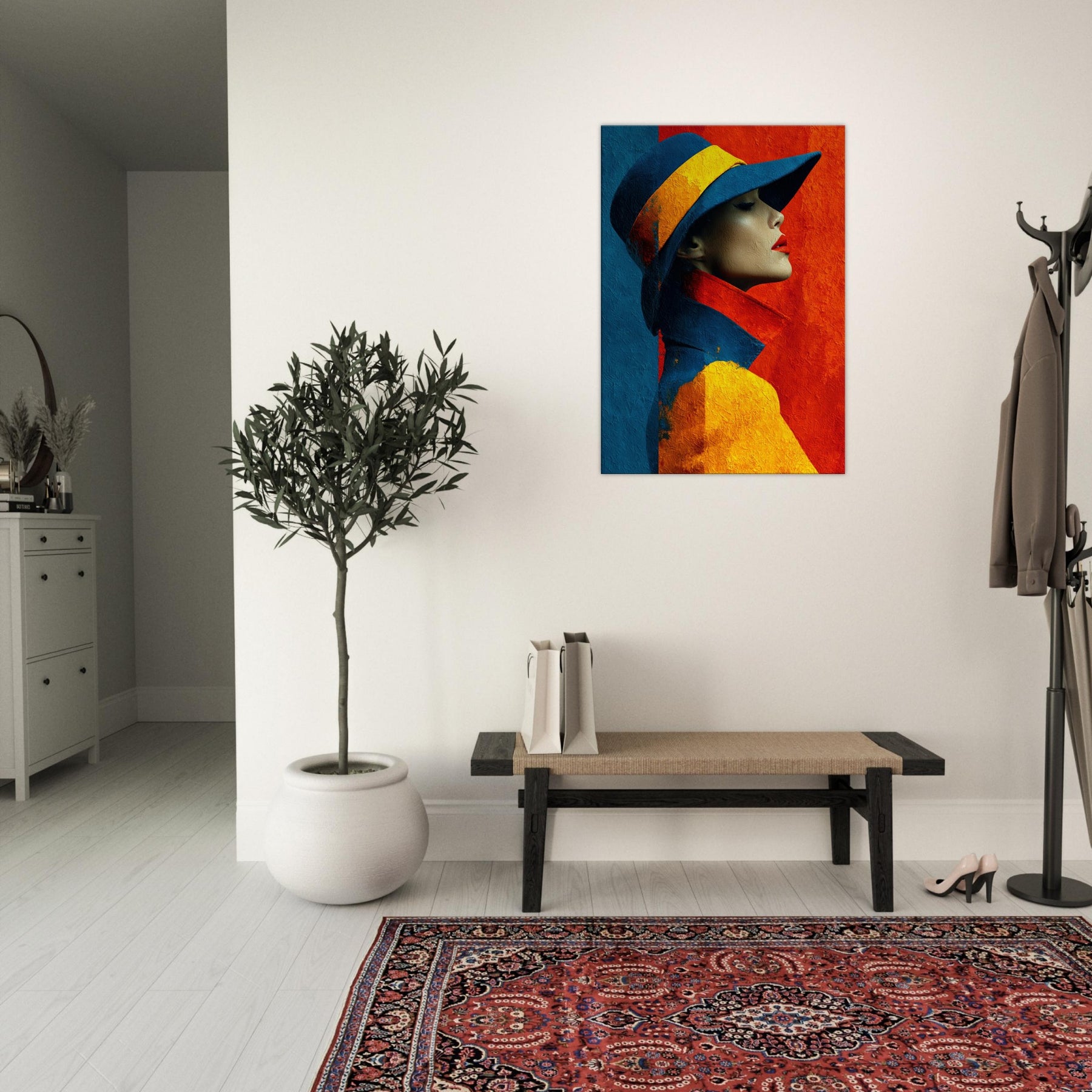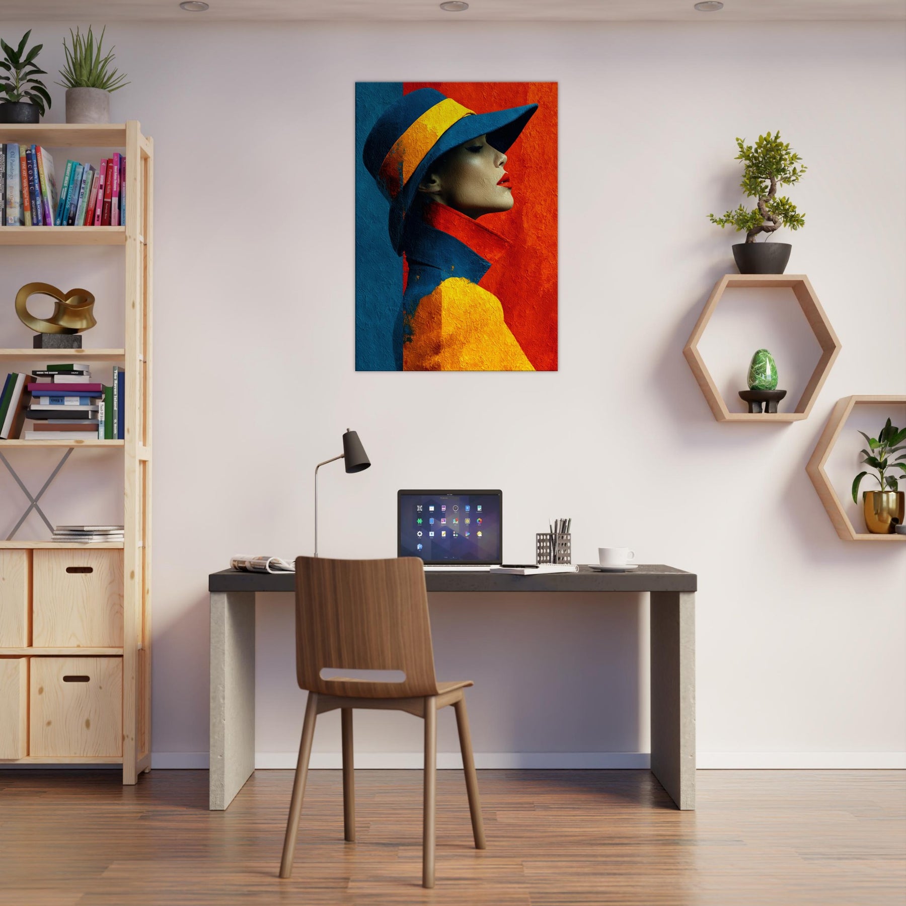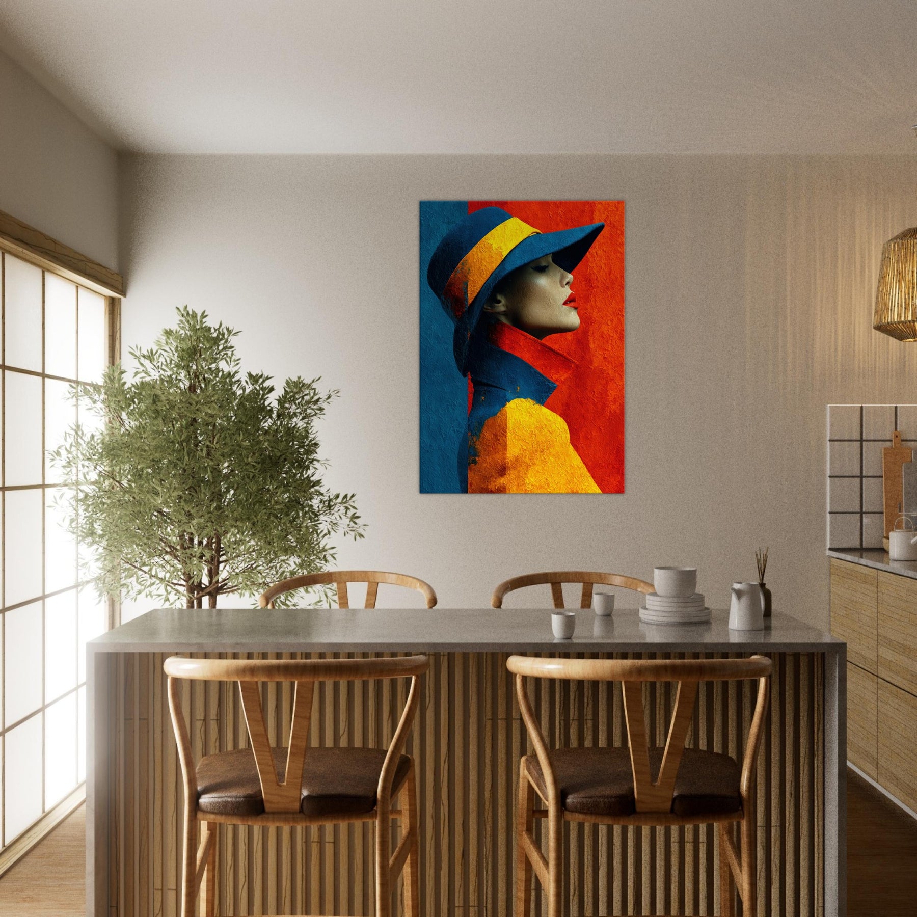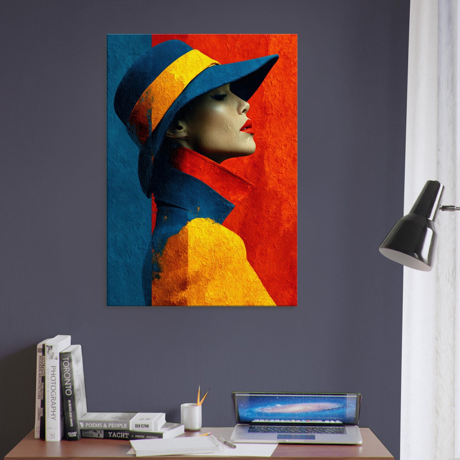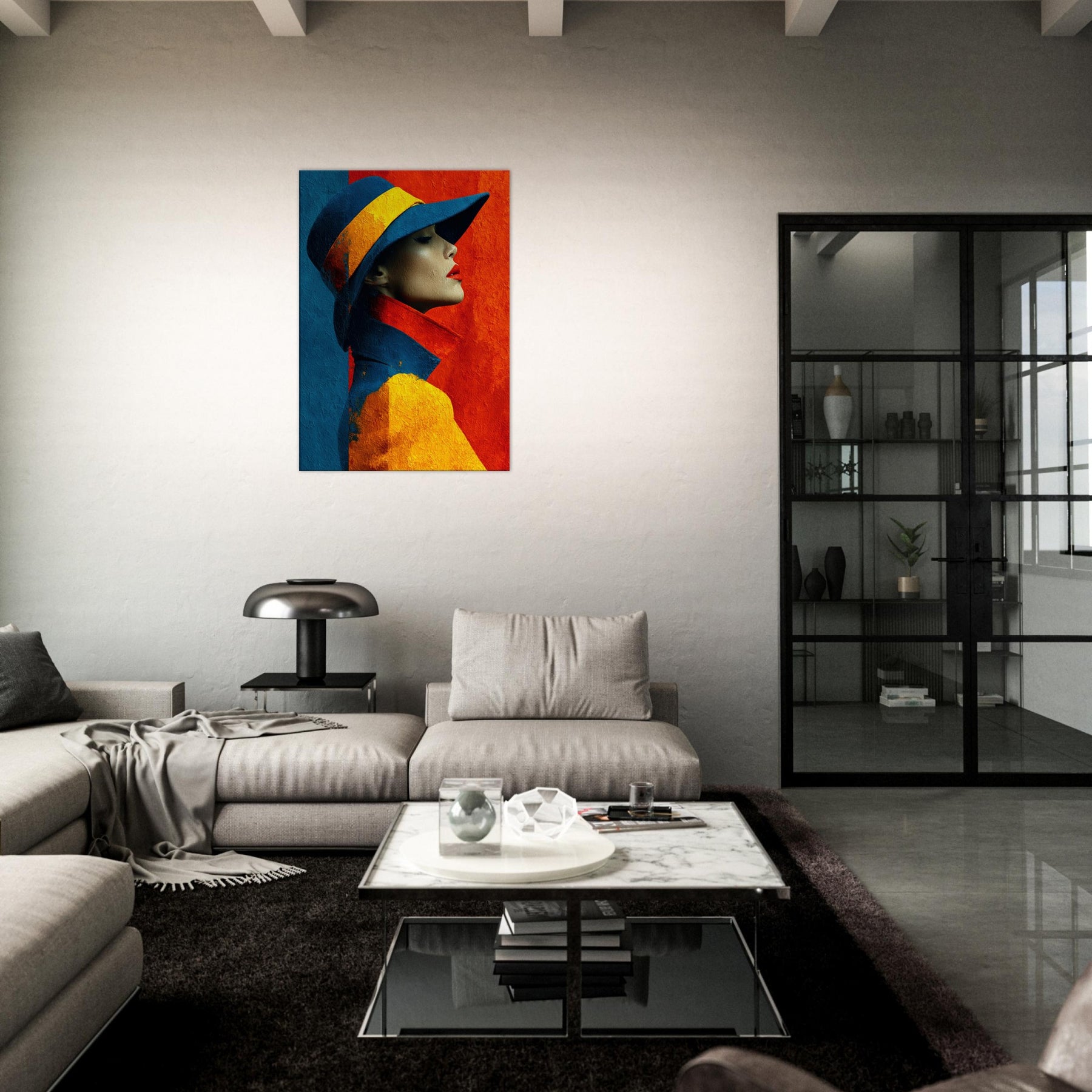 Immerse yourself in the Woman with Hat as she tilts toward a sunlit edge of color. This abstract dissolves form into sapphire blues, electric yellows, and passionate corals, capturing a mood rather than a moment. The layered texture invites touch and reflection, making a living room glow with sophistication and daring. Place it where you want conversation to spill, where a quiet corner becomes a gallery of feeling. A fearless statement piece that enhances any space with velvet shadows and luminous light.