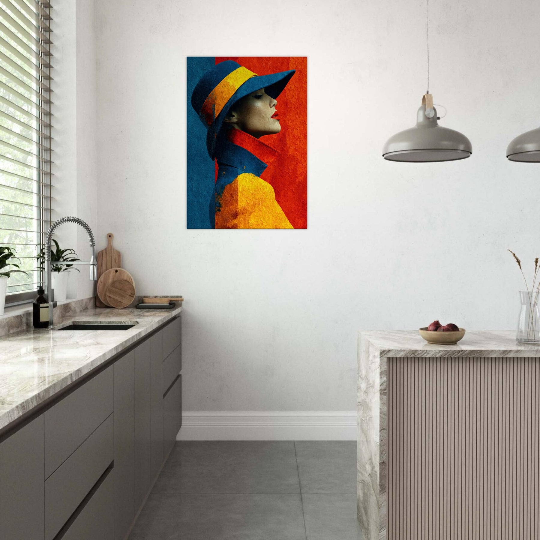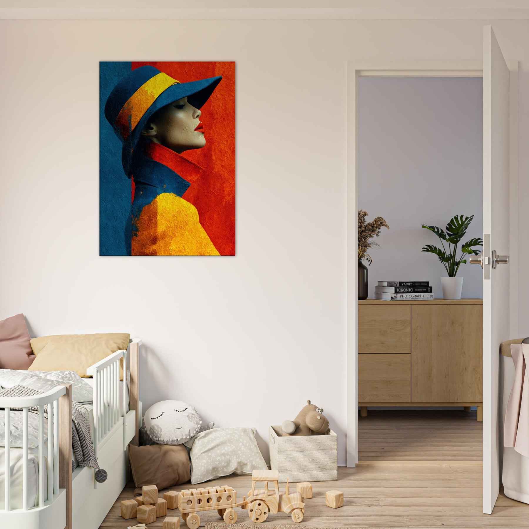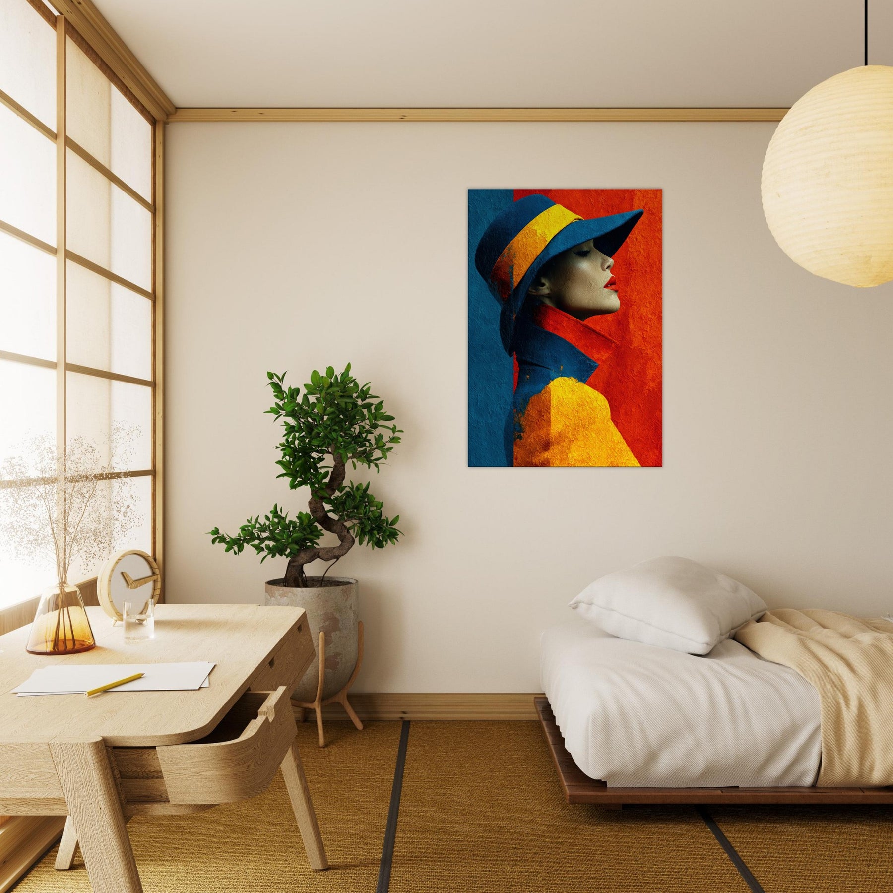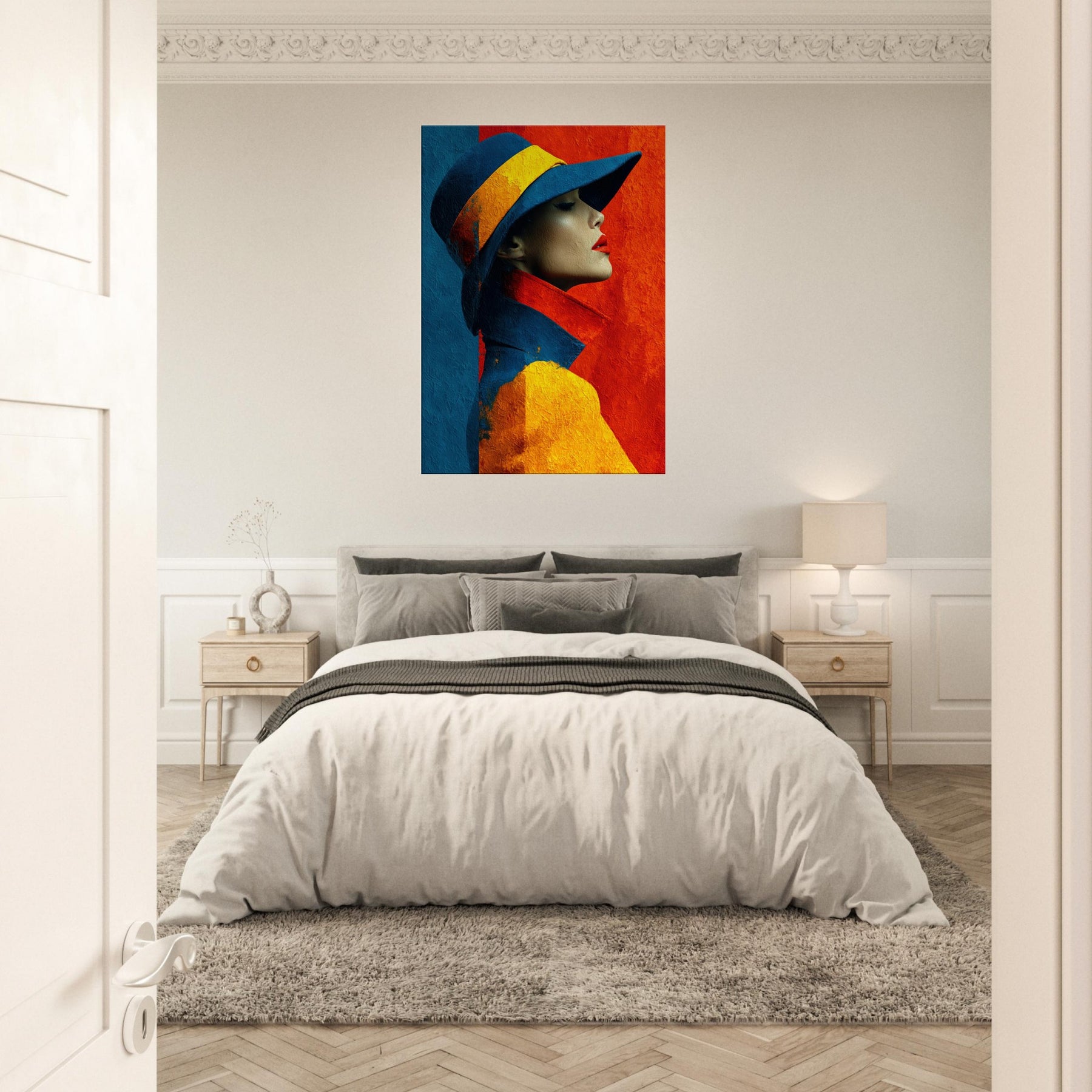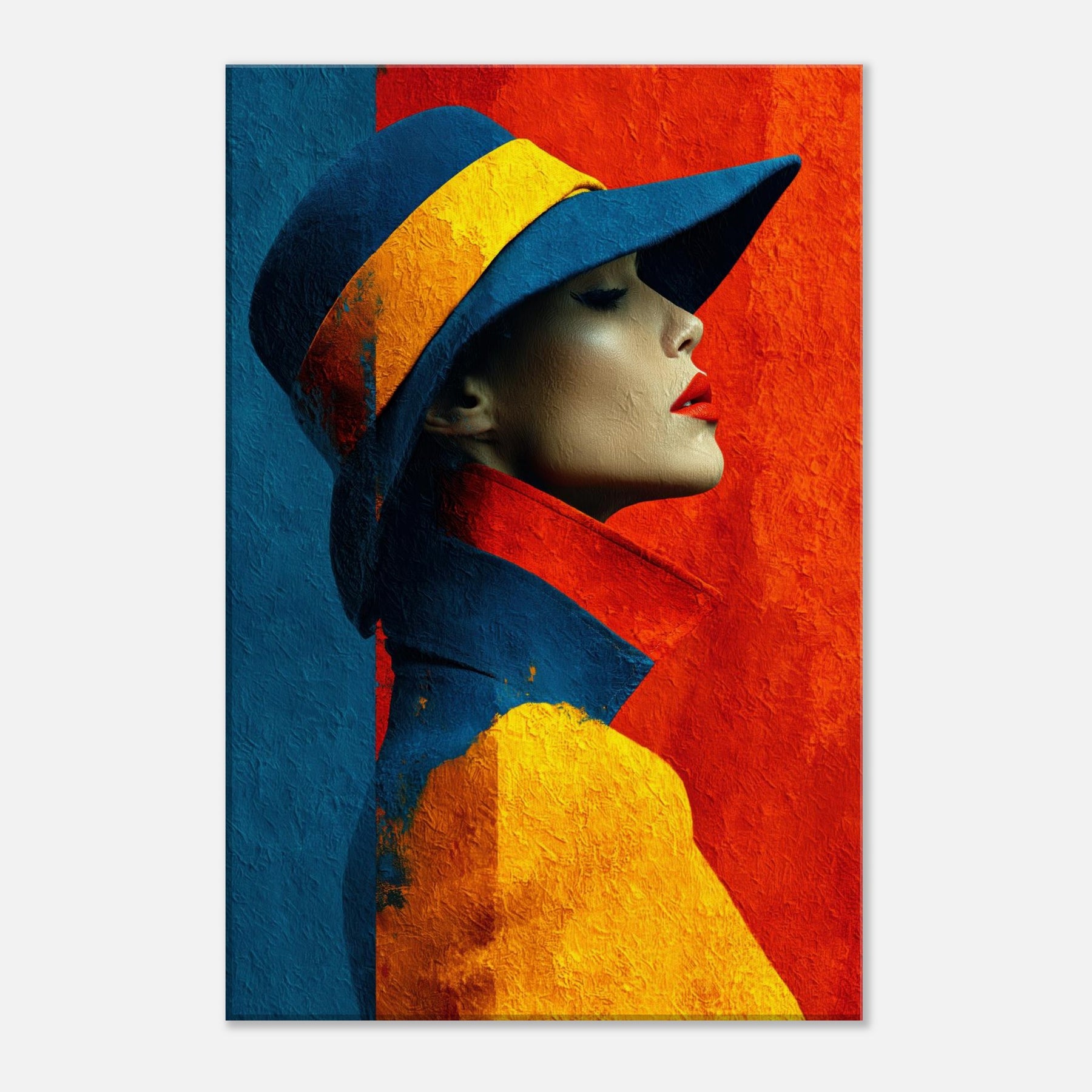 Immerse yourself in the Woman with Hat as she tilts toward a sunlit edge of color. This abstract dissolves form into sapphire blues, electric yellows, and passionate corals, capturing a mood rather than a moment. The layered texture invites touch and reflection, making a living room glow with sophistication and daring. Place it where you want conversation to spill, where a quiet corner becomes a gallery of feeling. A fearless statement piece that enhances any space with velvet shadows and luminous light.
