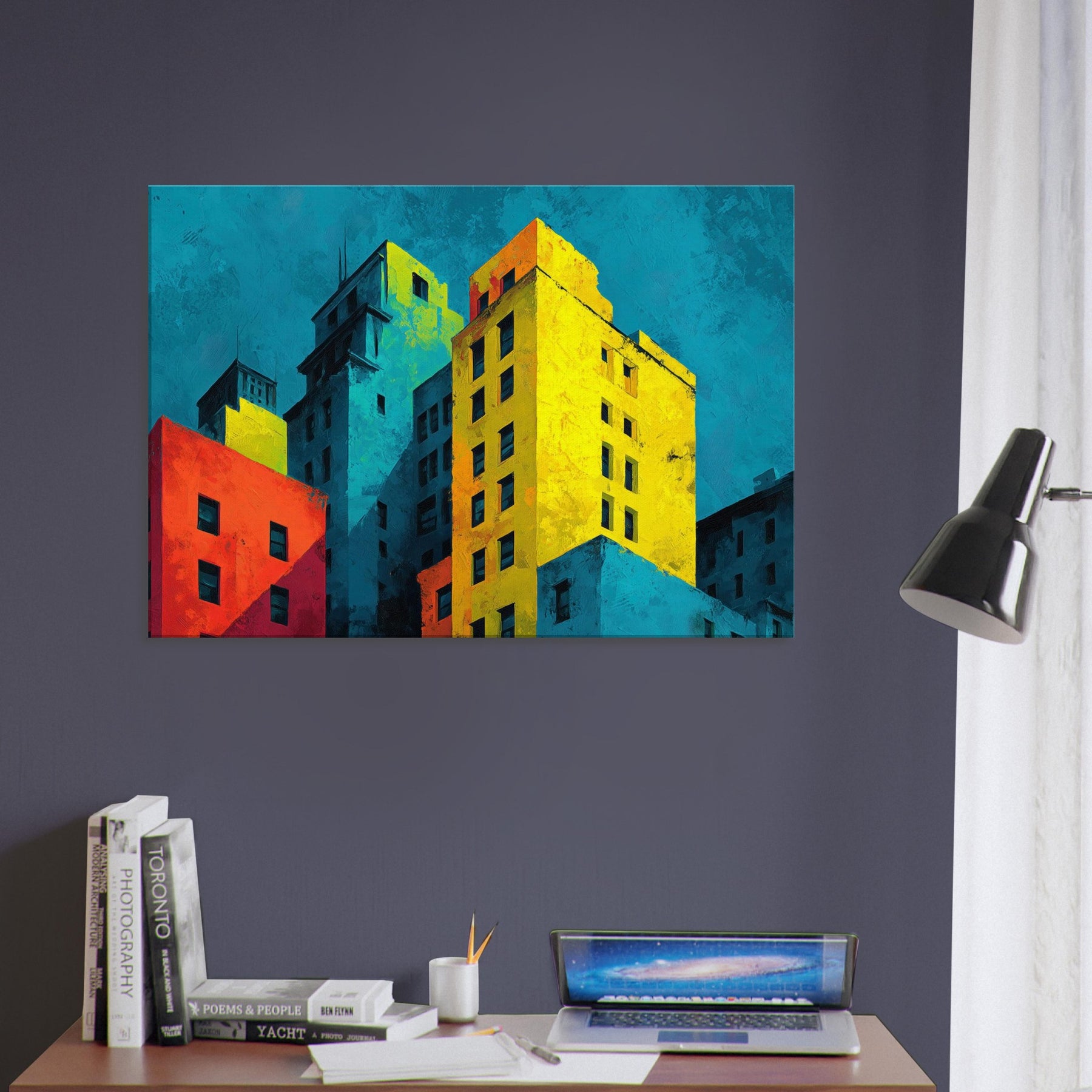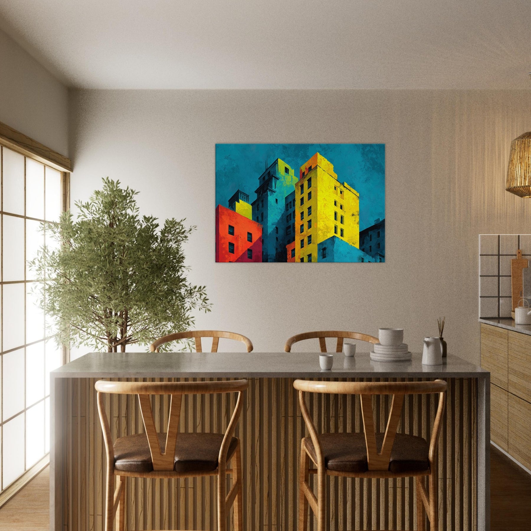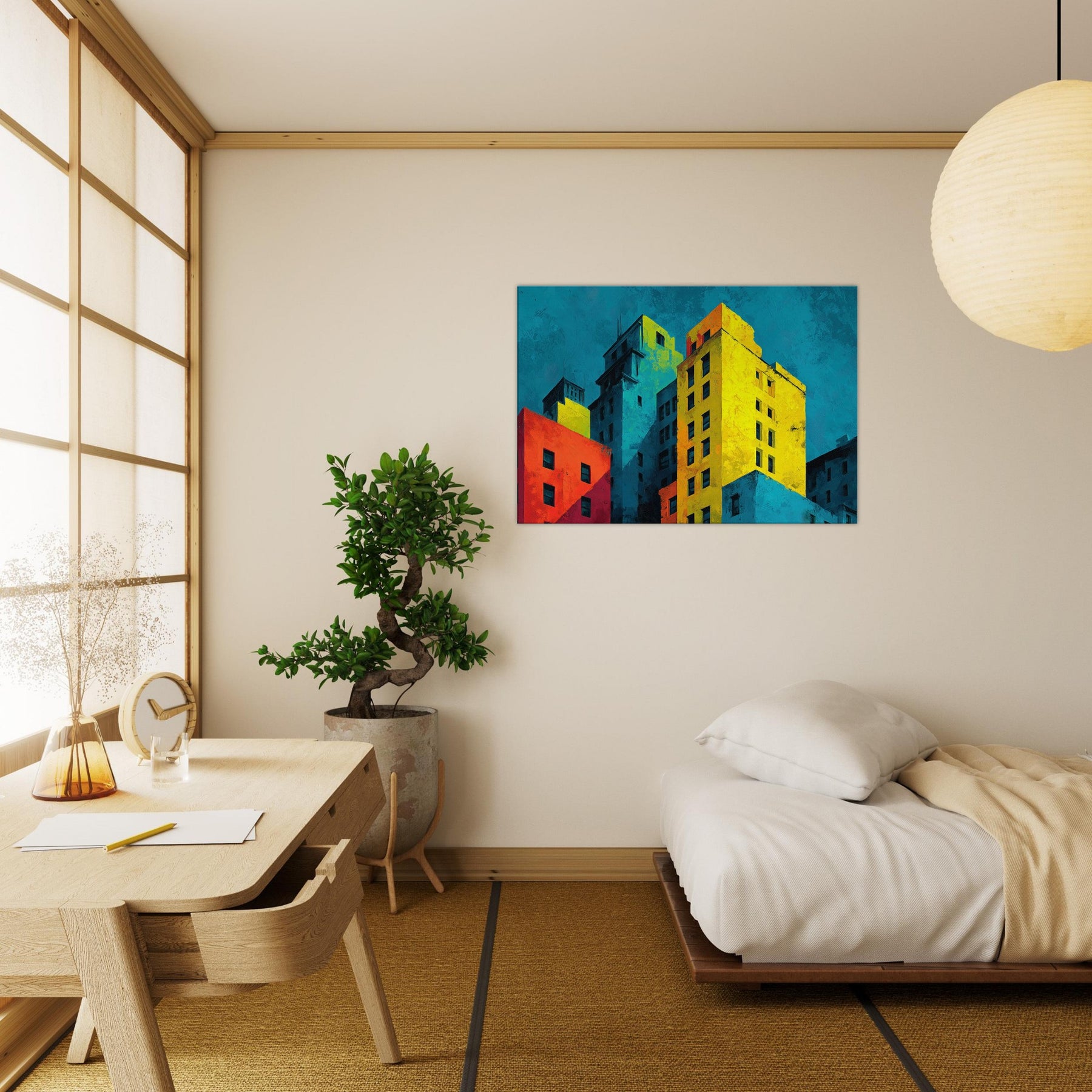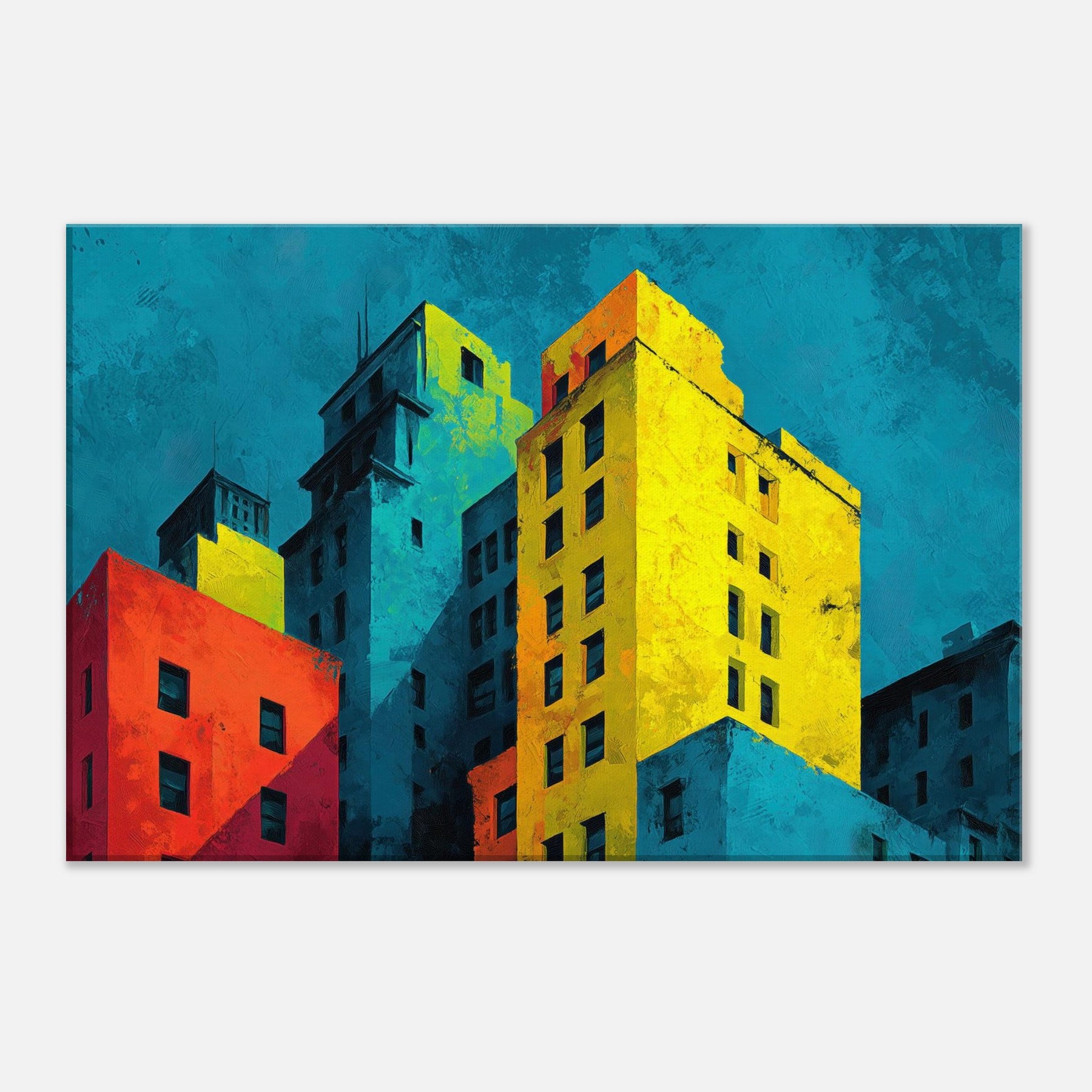 Immerse your space in a city's heartbeat. This abstract composition translates San Francisco's hills and harbor into bold color blocks and soft shadows, where cyan skies meet sunlit yellows and crimson facades. The piece breathes with energy, yet invites contemplation; an evening breeze rustles through translucent layers, while the layered textures invite touch and curiosity. Hang it to anchor a living room or study; it reframes ordinary walls into a vibrant, cinematic atmosphere that amplifies light, conversation, and urban imagination.