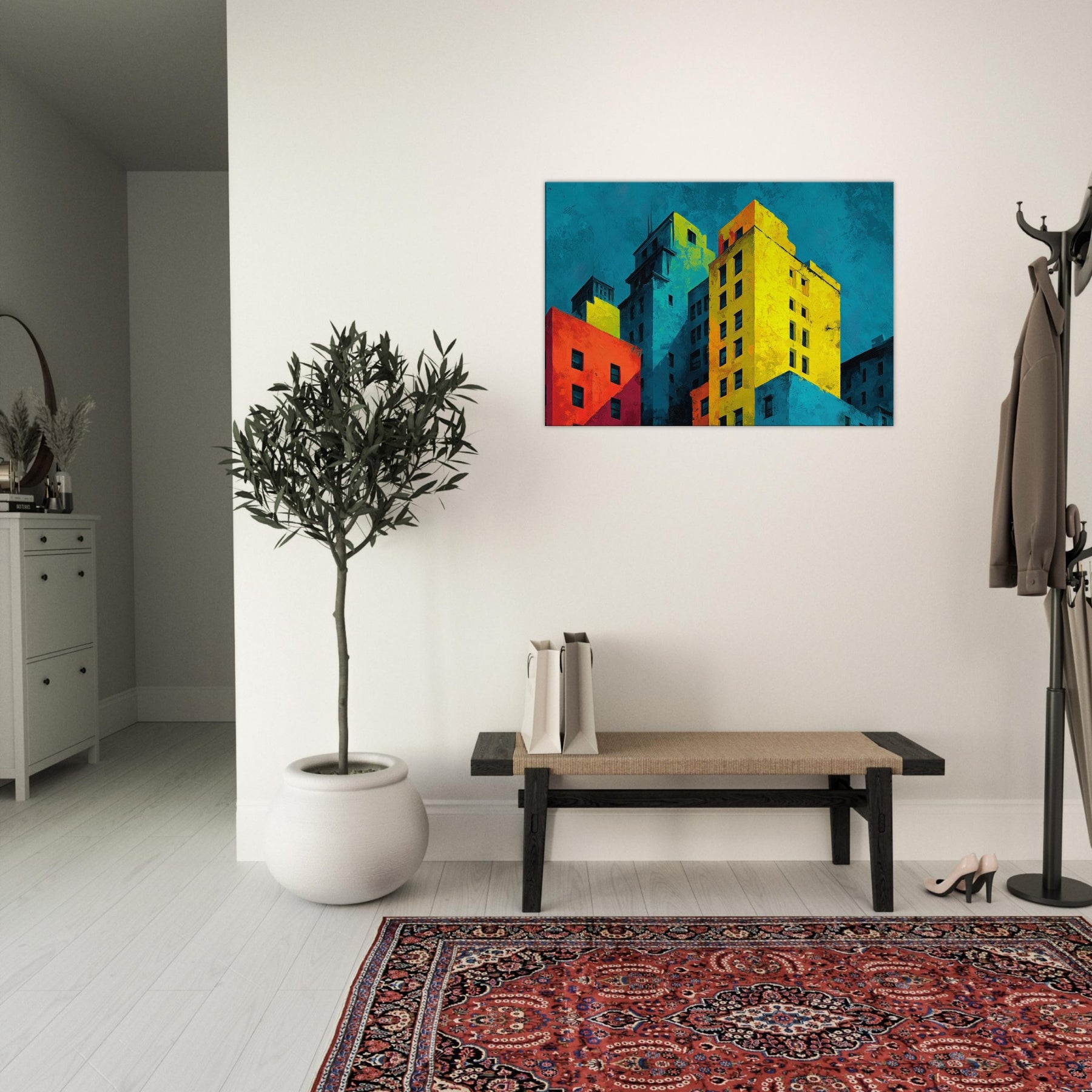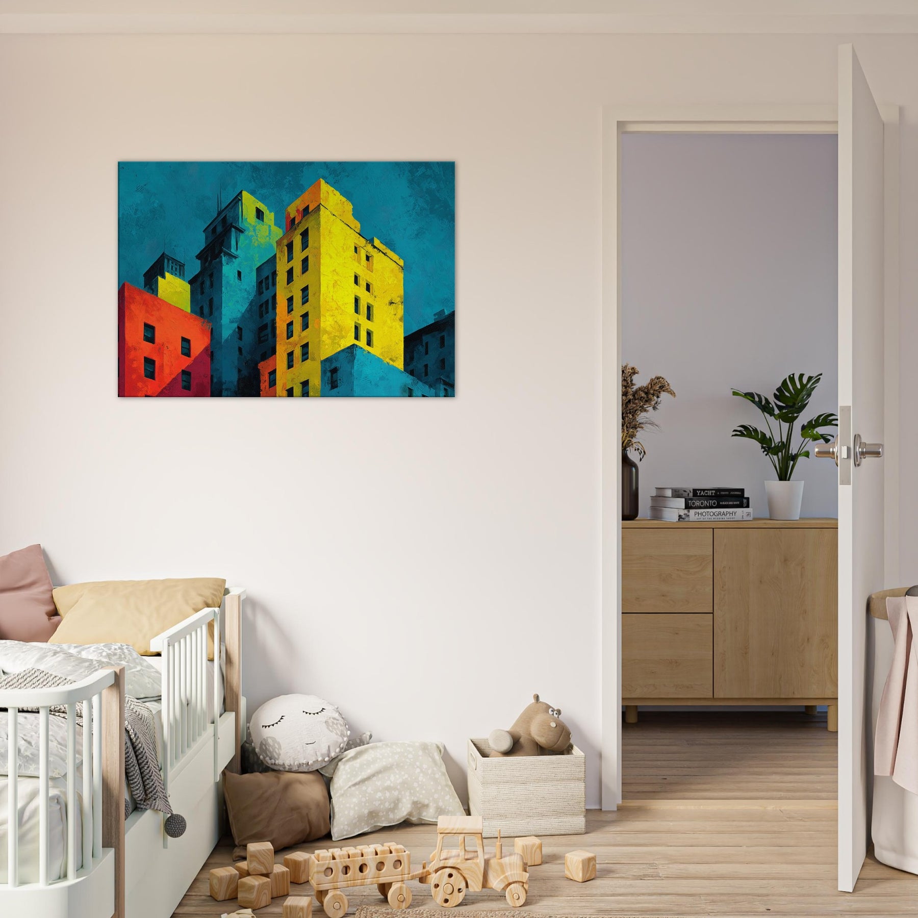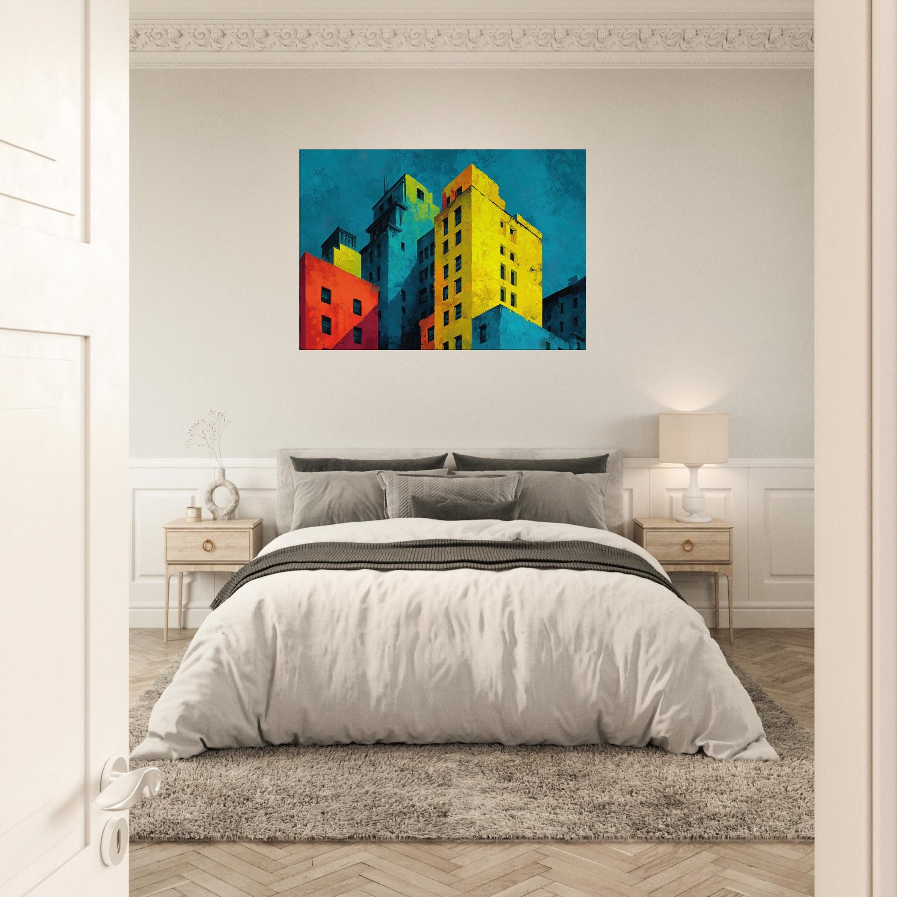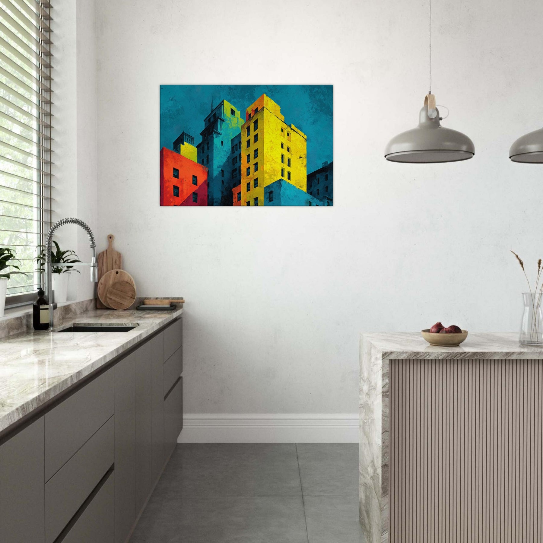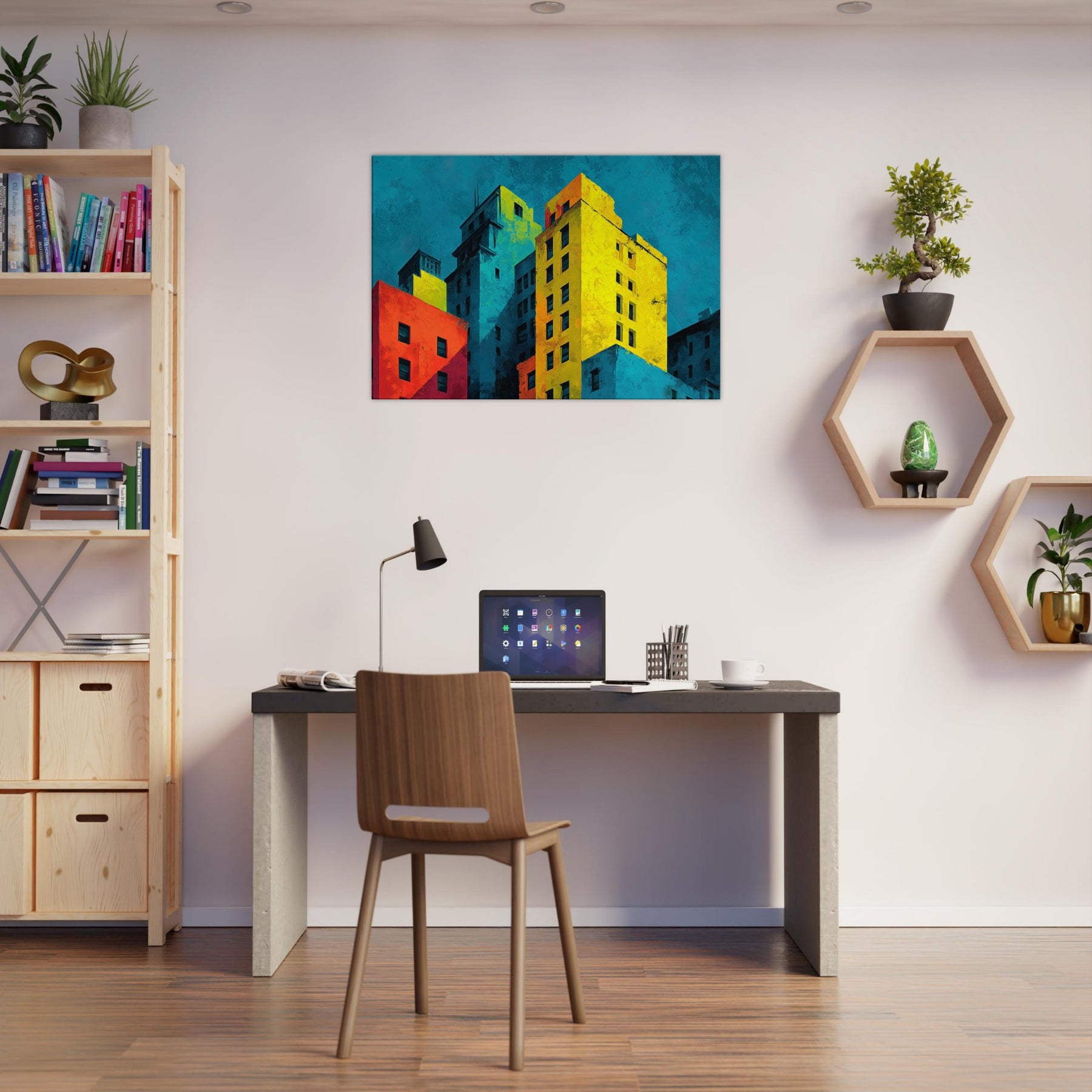 Immerse your space in a city's heartbeat. This abstract composition translates San Francisco's hills and harbor into bold color blocks and soft shadows, where cyan skies meet sunlit yellows and crimson facades. The piece breathes with energy, yet invites contemplation; an evening breeze rustles through translucent layers, while the layered textures invite touch and curiosity. Hang it to anchor a living room or study; it reframes ordinary walls into a vibrant, cinematic atmosphere that amplifies light, conversation, and urban imagination.