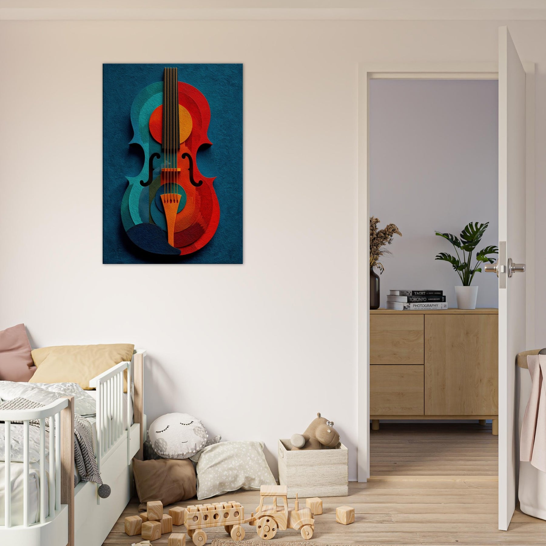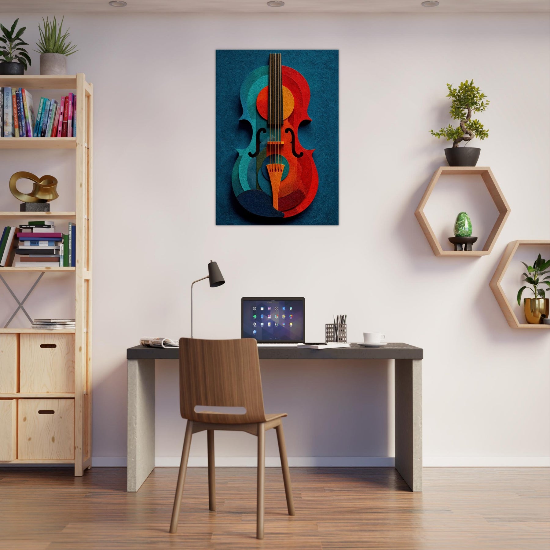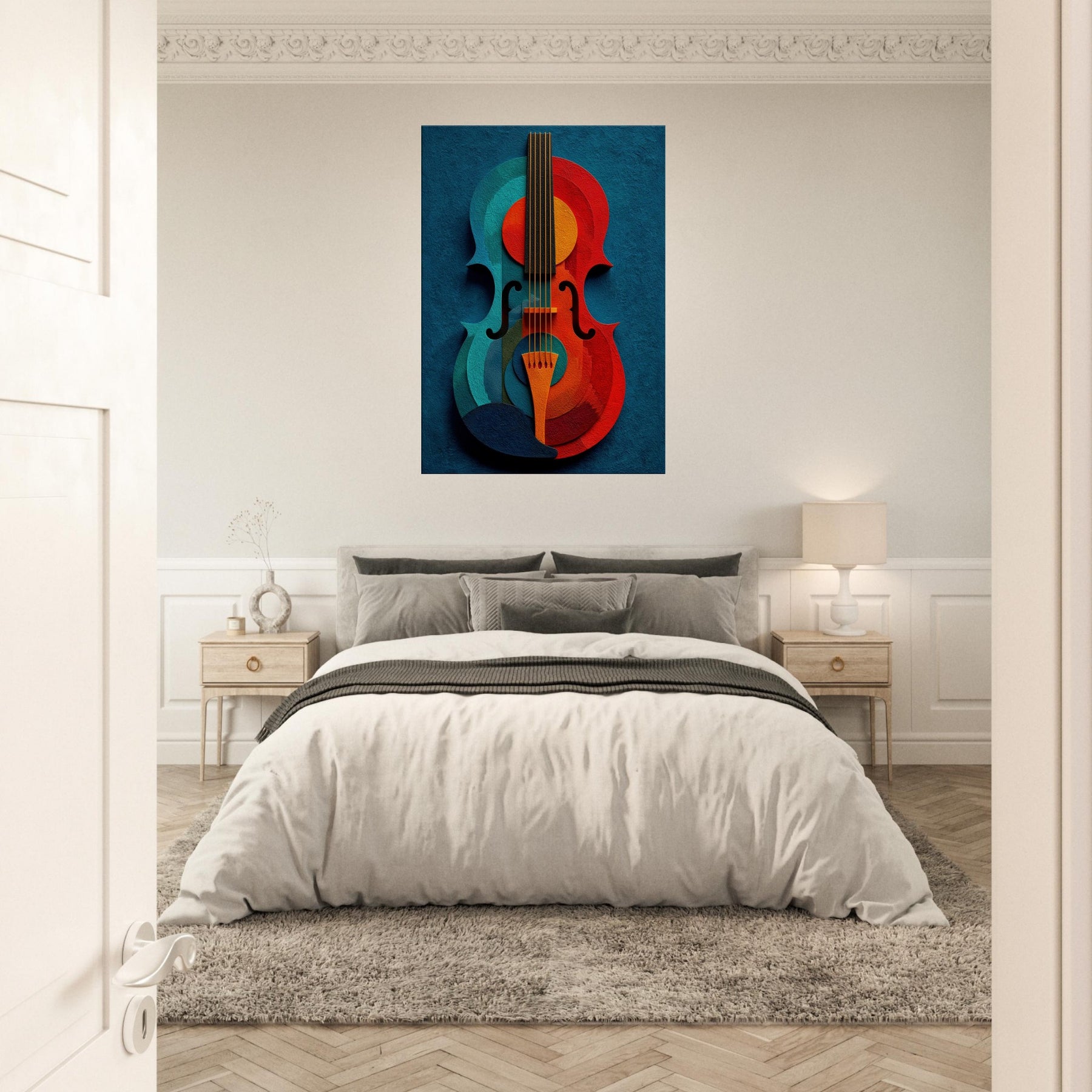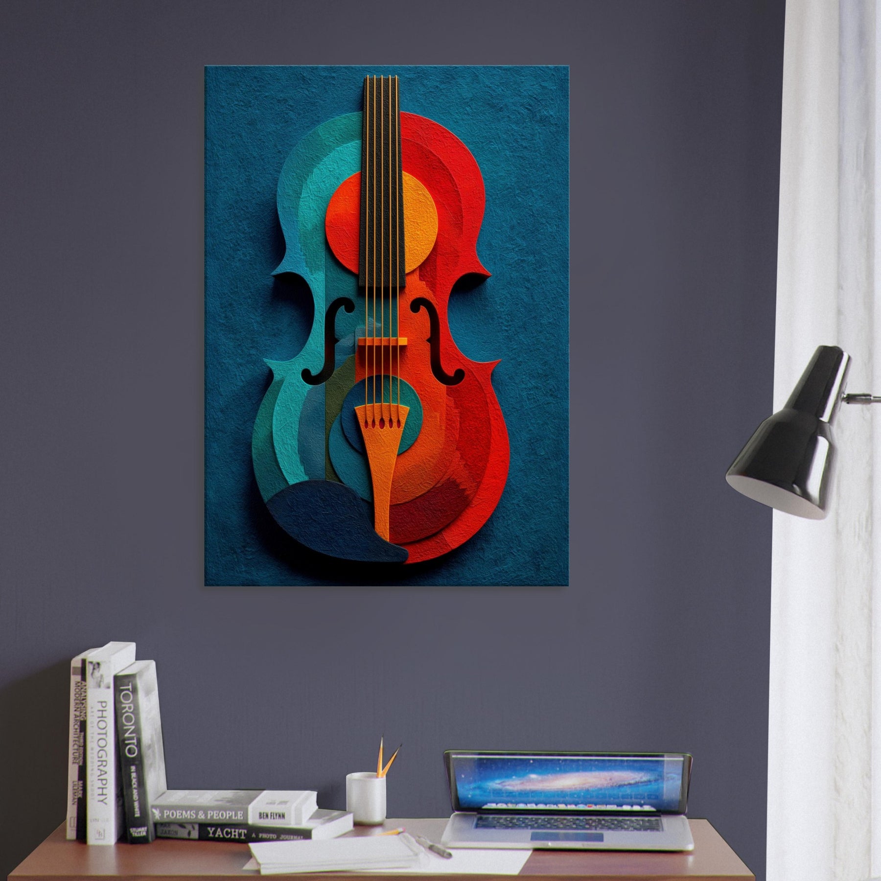 Violin forms flow across the wall in a chorus of color and quiet rhythm. This abstract composition captures the instrument's silhouette in luminous layers teal, orange, and crimson so sound seems to materialize as light. The textured surface adds warmth and depth, inviting touch and contemplation. In a living room or hallway, it subtly shifts the mood, turning everyday moments into a concert of atmosphere. A refined focal point that elevates space with grace, balance, and emotive resonance.
