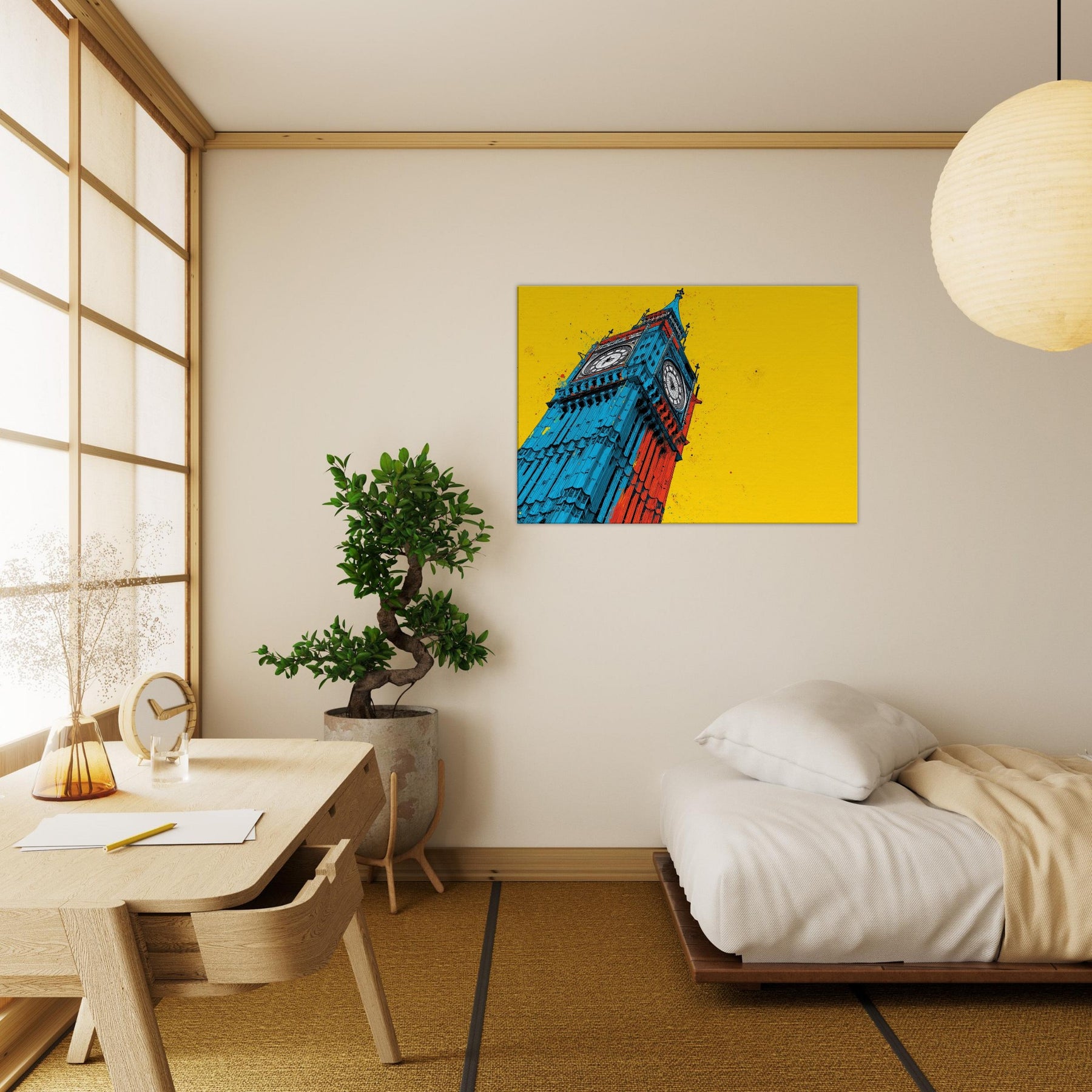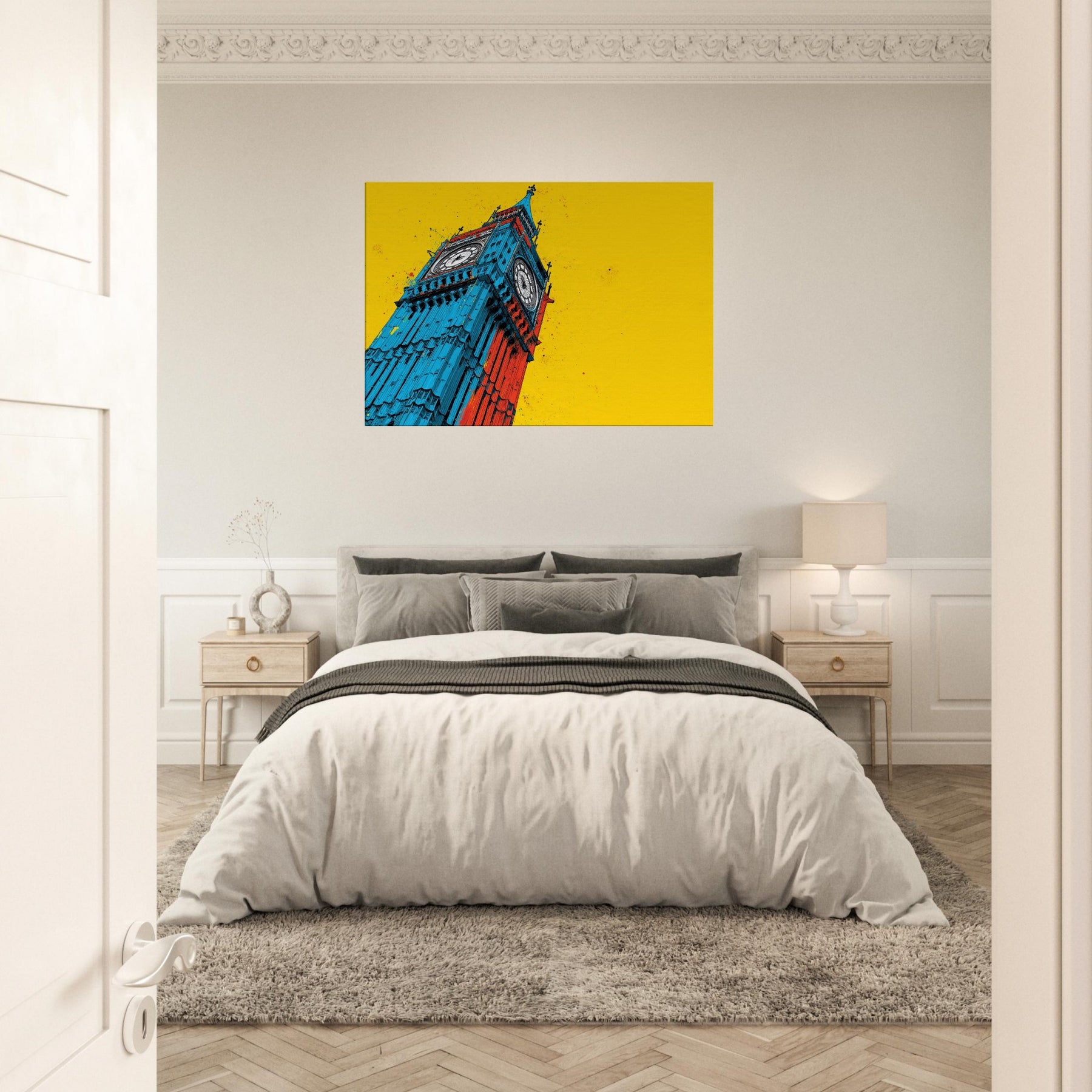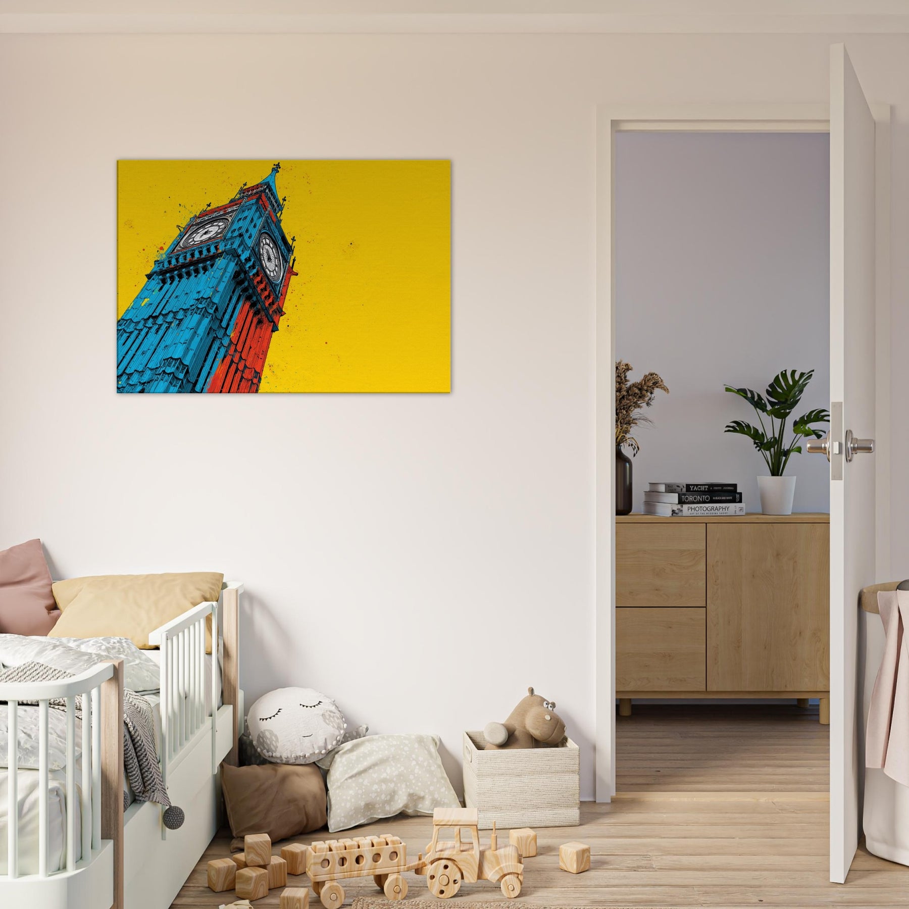 Big Ben rises as a jubilant silhouette, reimagined in sweeping blues and corals that ripple across the canvas like city lights at dusk. This abstract interpretation lets the room breathe with rhythmic towers and colored punctuation, turning the familiar clock into urban poetry. Hang it in a living room or hallway to cast a confident glow, spark conversations, and awaken a timeless momentum within everyday moments.