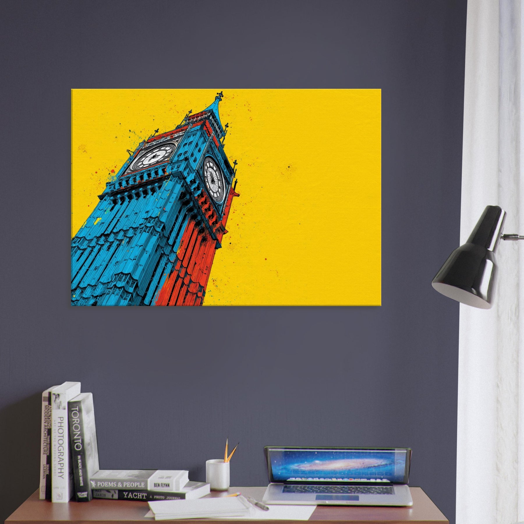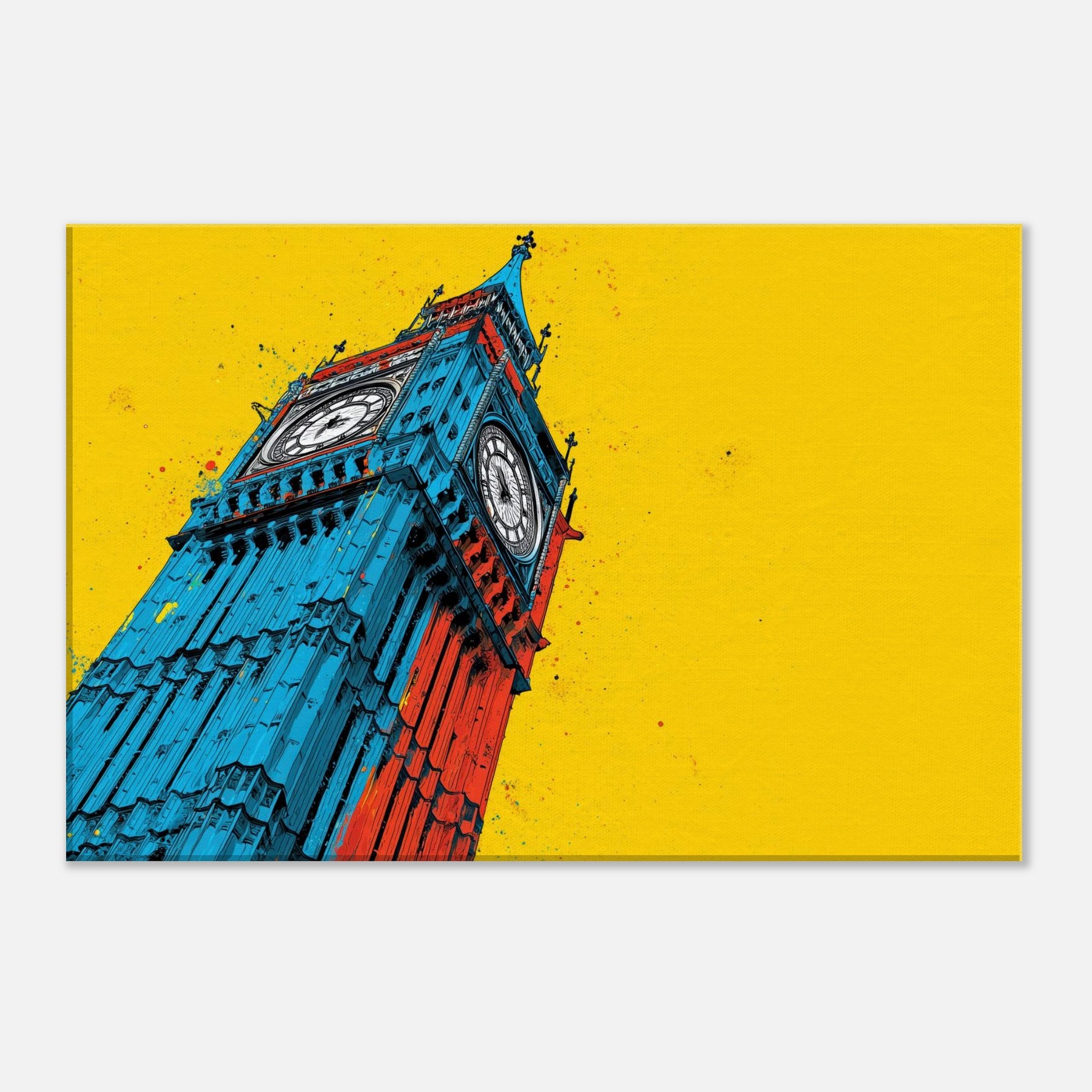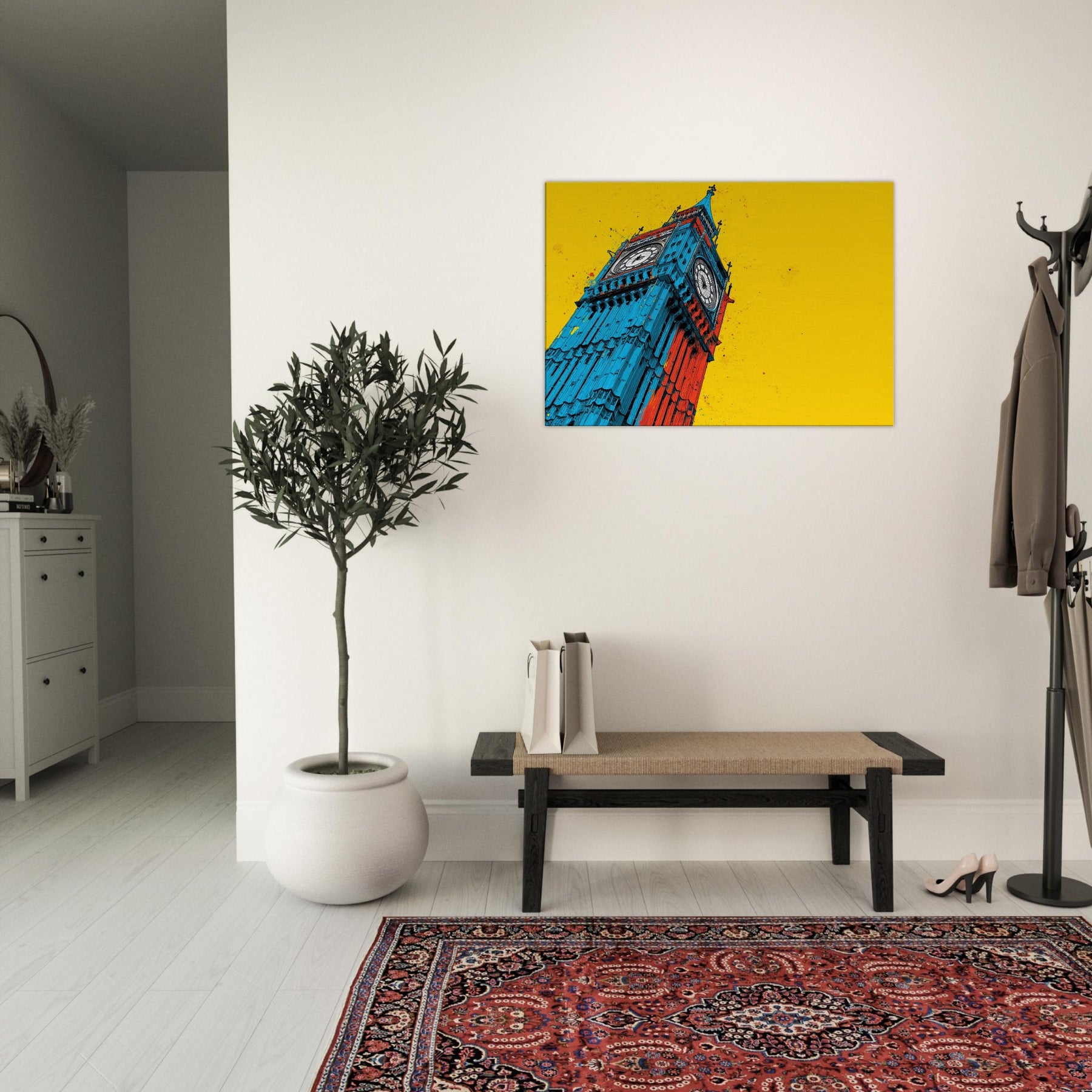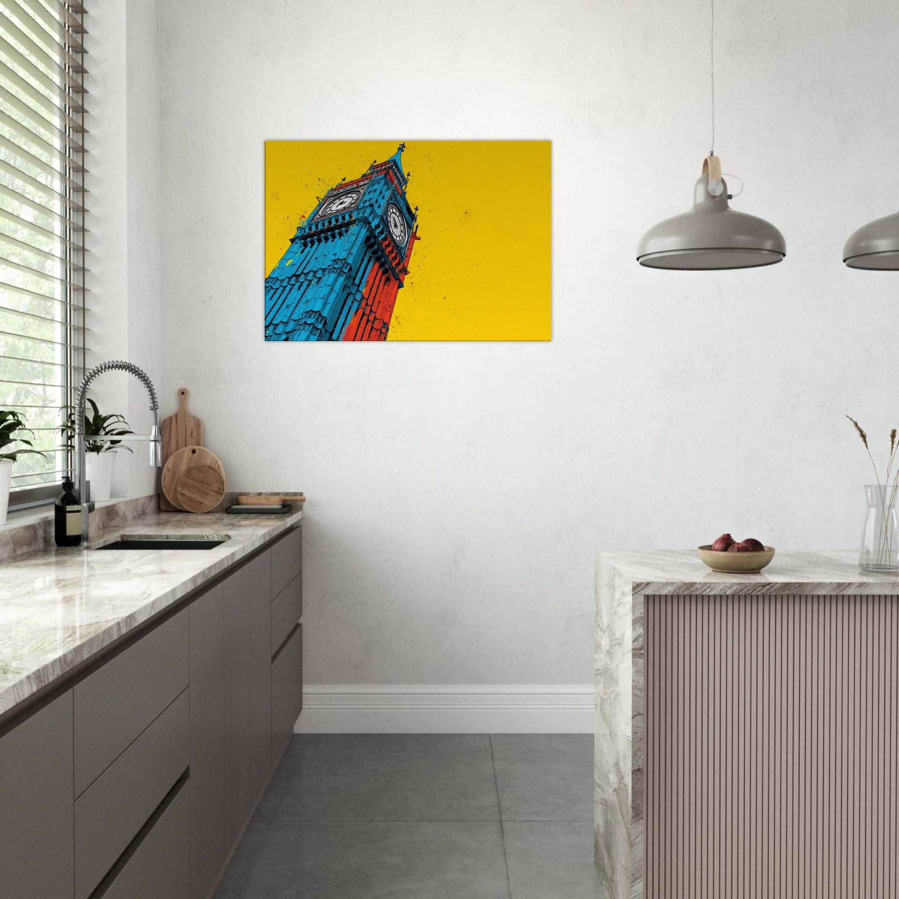 Big Ben rises as a jubilant silhouette, reimagined in sweeping blues and corals that ripple across the canvas like city lights at dusk. This abstract interpretation lets the room breathe with rhythmic towers and colored punctuation, turning the familiar clock into urban poetry. Hang it in a living room or hallway to cast a confident glow, spark conversations, and awaken a timeless momentum within everyday moments.
