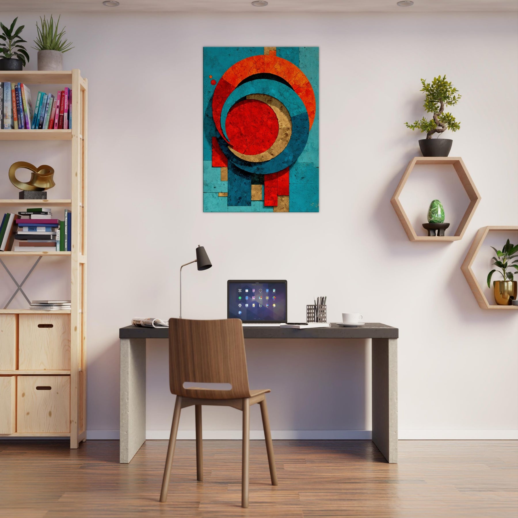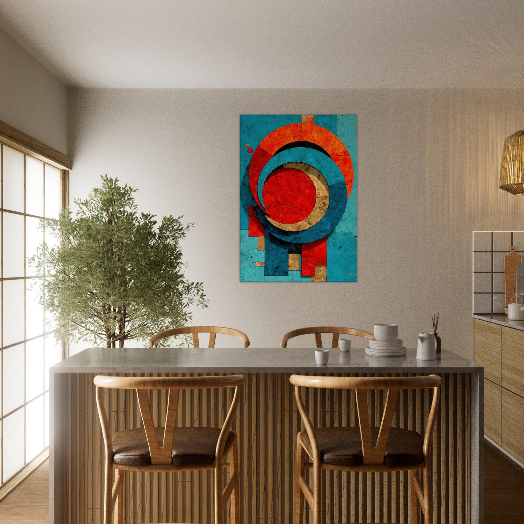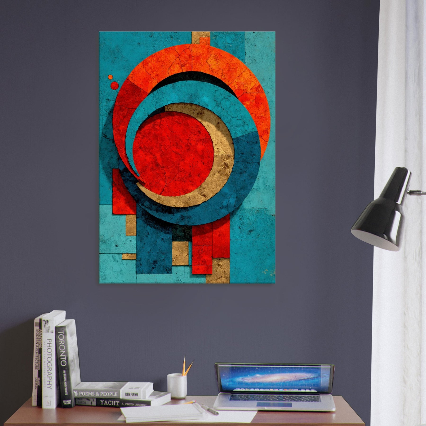 Let this Ensō unfold as a meditative portal in your space. The circle, rendered in vibrant coral, teal, and gold, invites a breath between chaos and calm. Textured layers reveal subtle cracks and timestamps of light, like a private chant captured on a wall. In a living room or studio, the piece refracts mood grounding the bustle of daily life while lifting it with luminous color and ancient wisdom. This Ensō becomes a quiet companion, encouraging presence, balance, and contemplative conversation. The central subject is Ensō (Zen Circle).