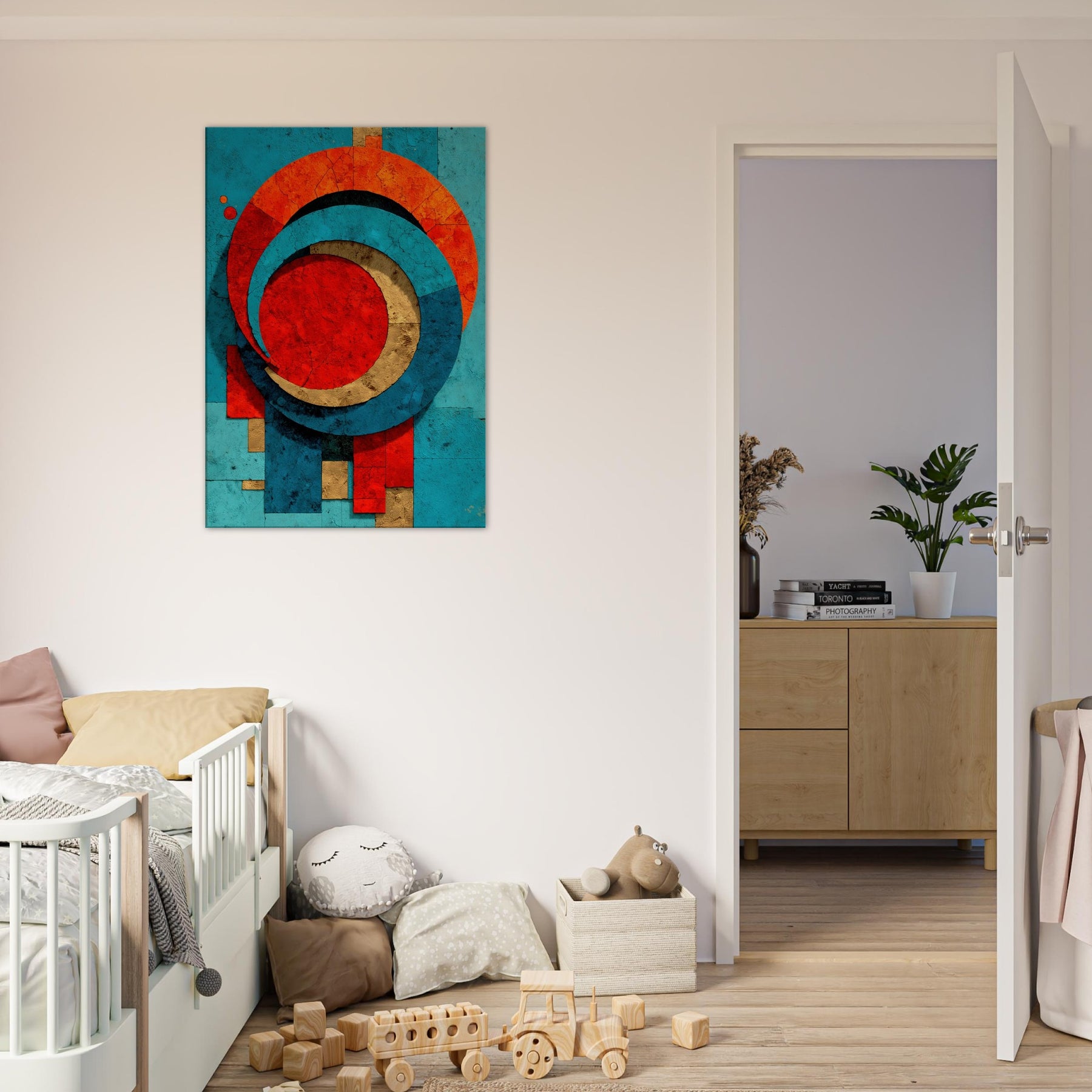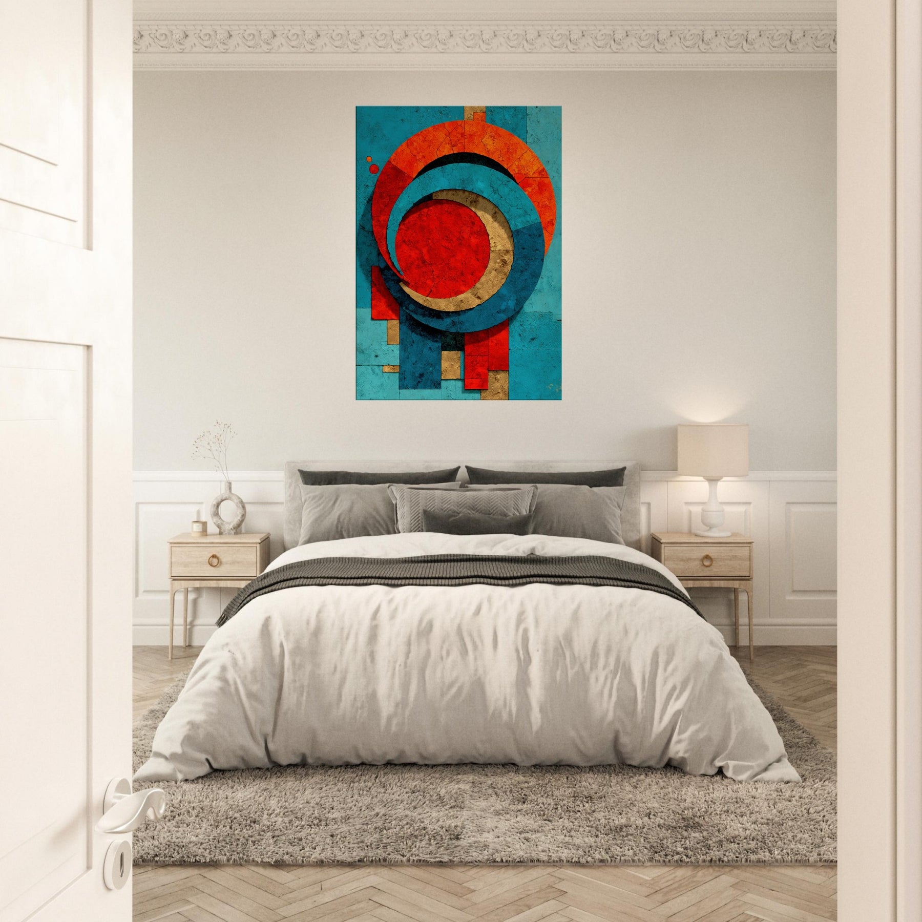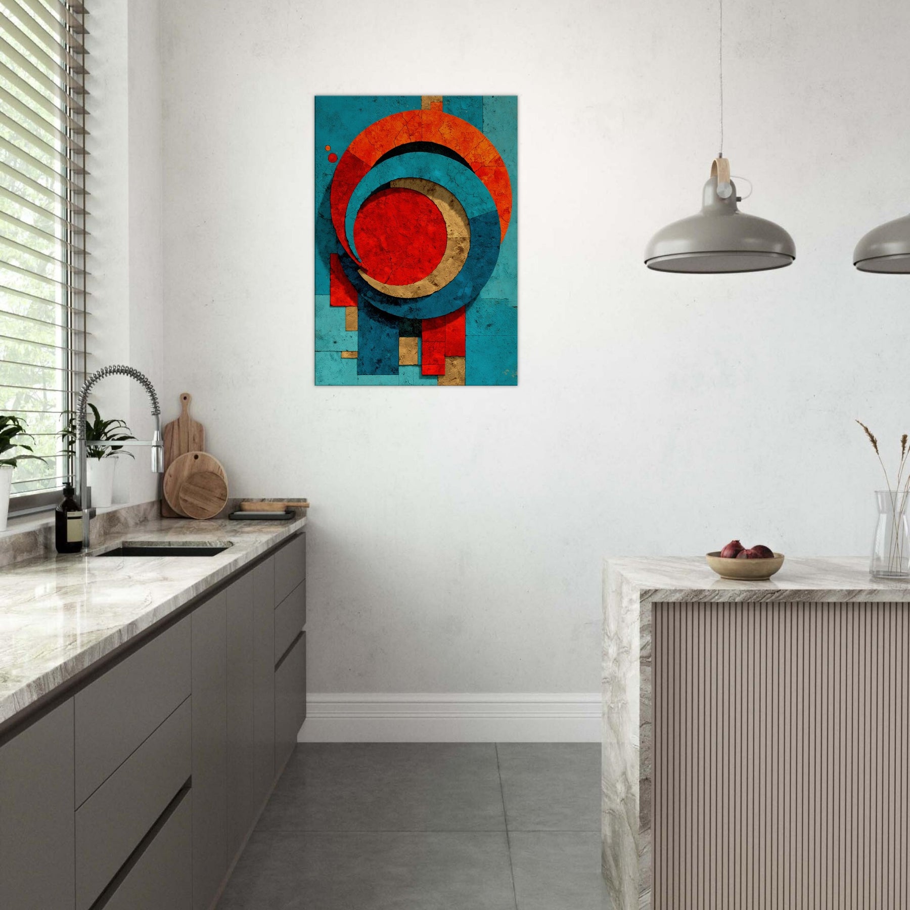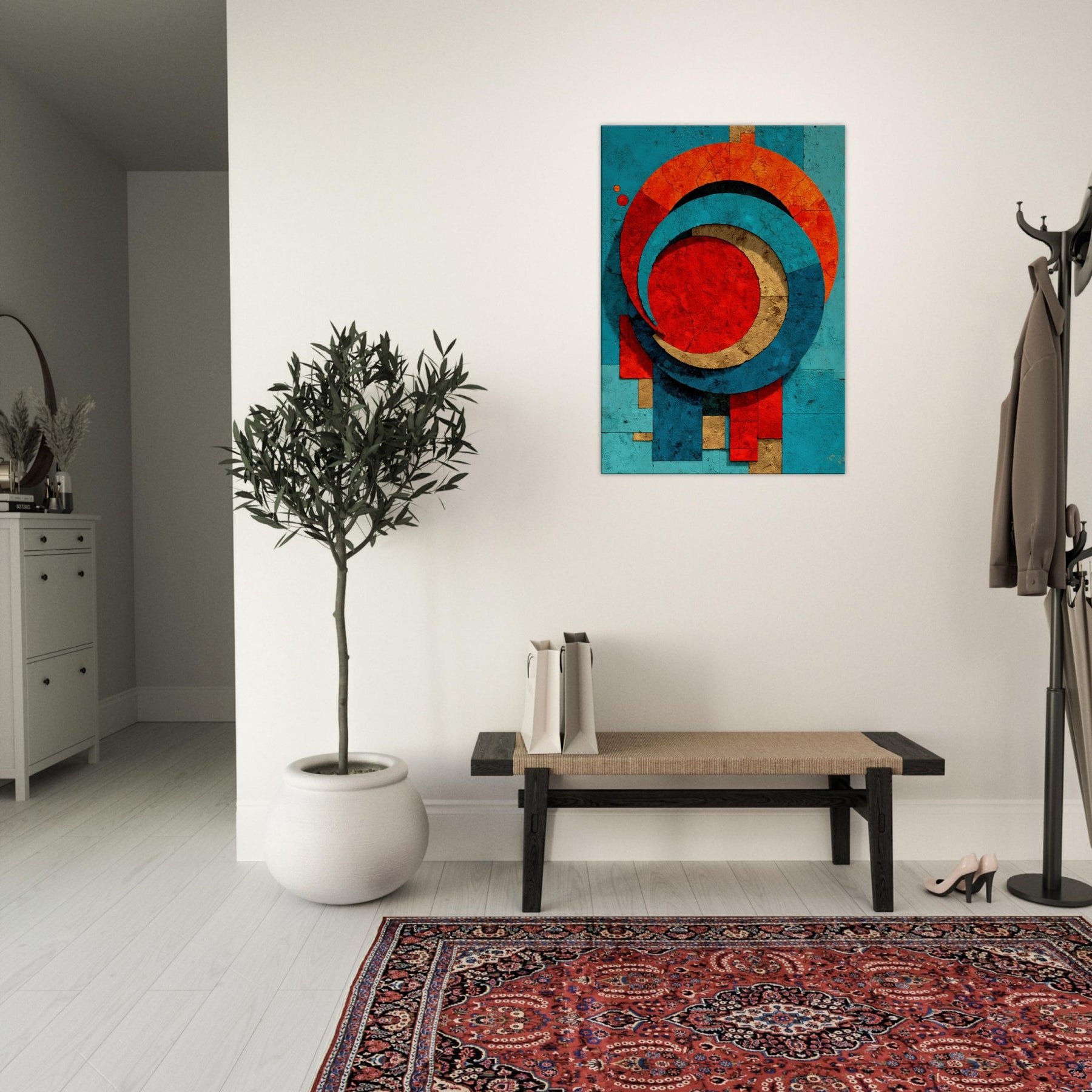 Let this Ensō unfold as a meditative portal in your space. The circle, rendered in vibrant coral, teal, and gold, invites a breath between chaos and calm. Textured layers reveal subtle cracks and timestamps of light, like a private chant captured on a wall. In a living room or studio, the piece refracts mood grounding the bustle of daily life while lifting it with luminous color and ancient wisdom. This Ensō becomes a quiet companion, encouraging presence, balance, and contemplative conversation. The central subject is Ensō (Zen Circle).