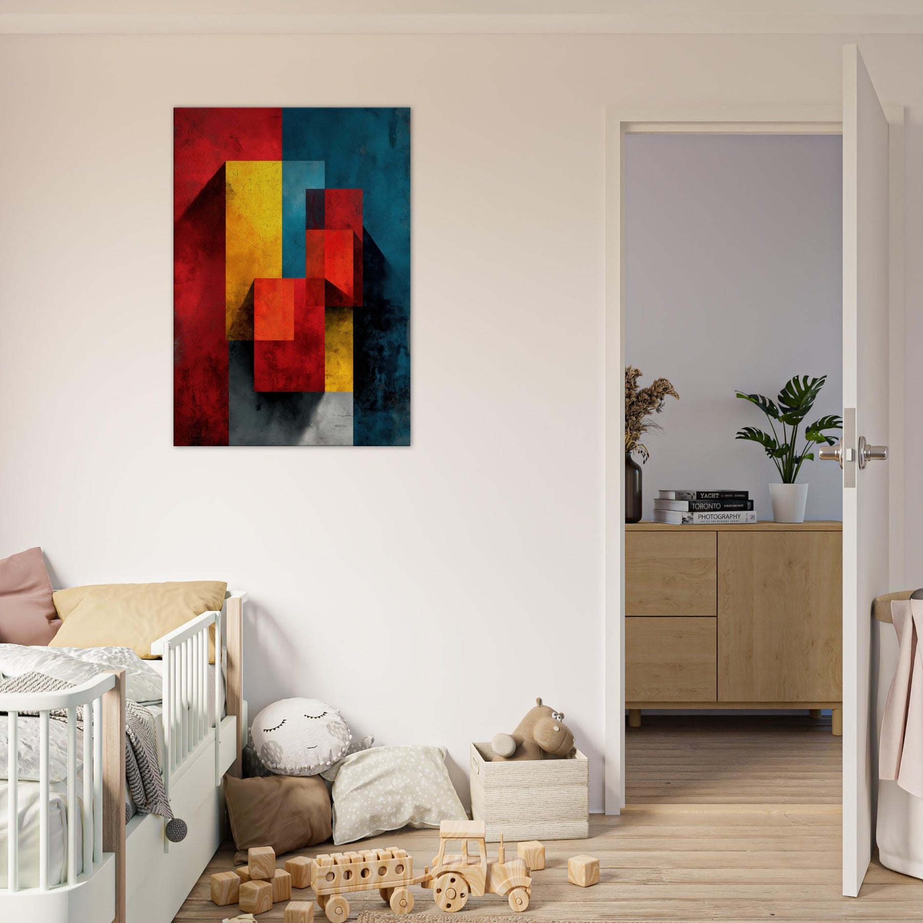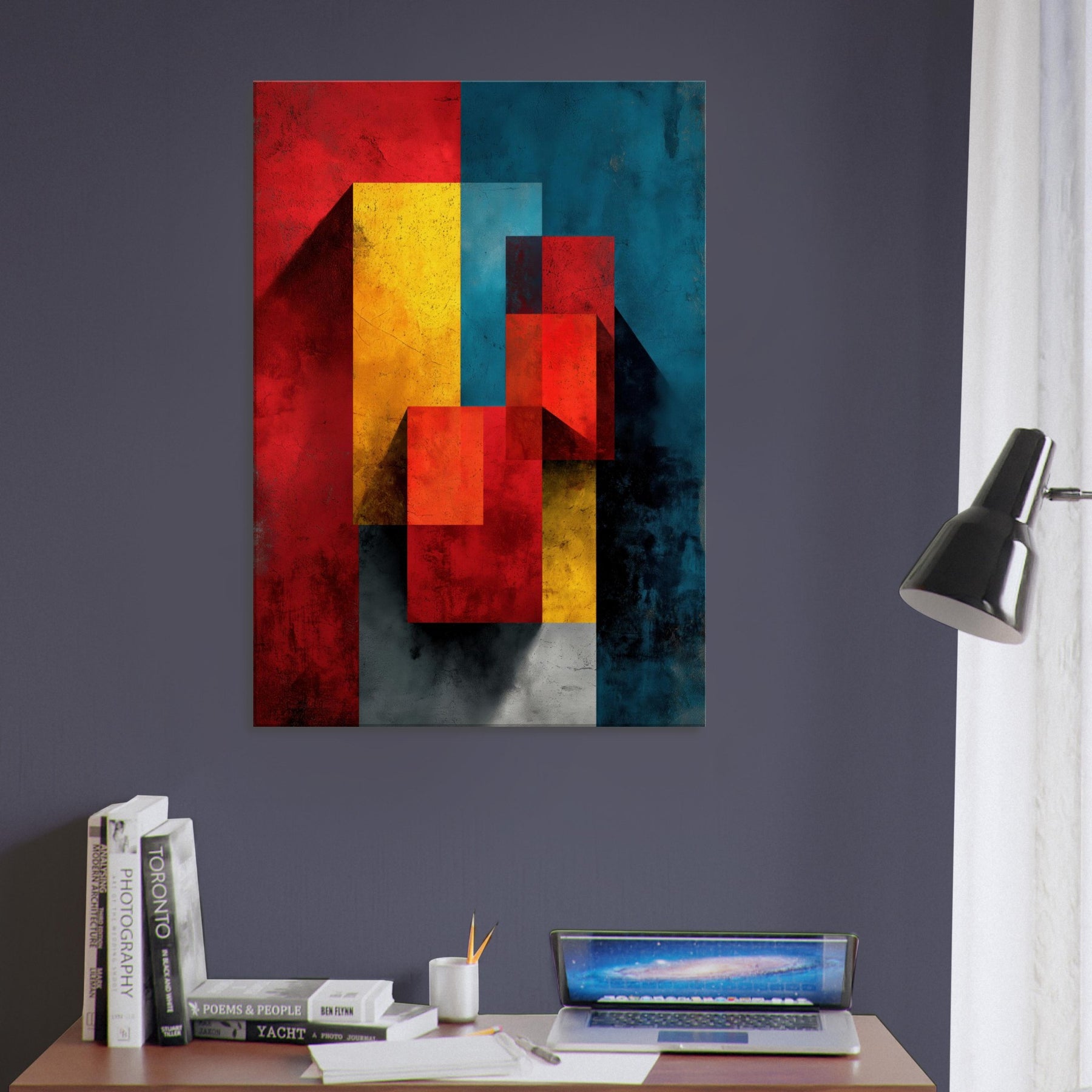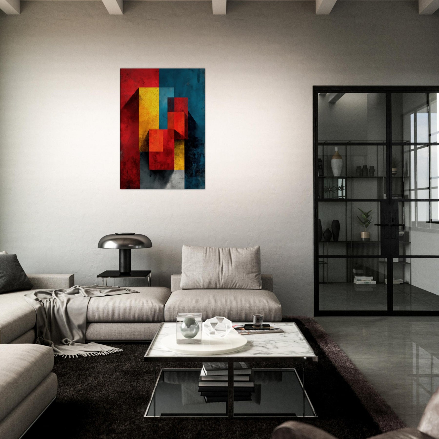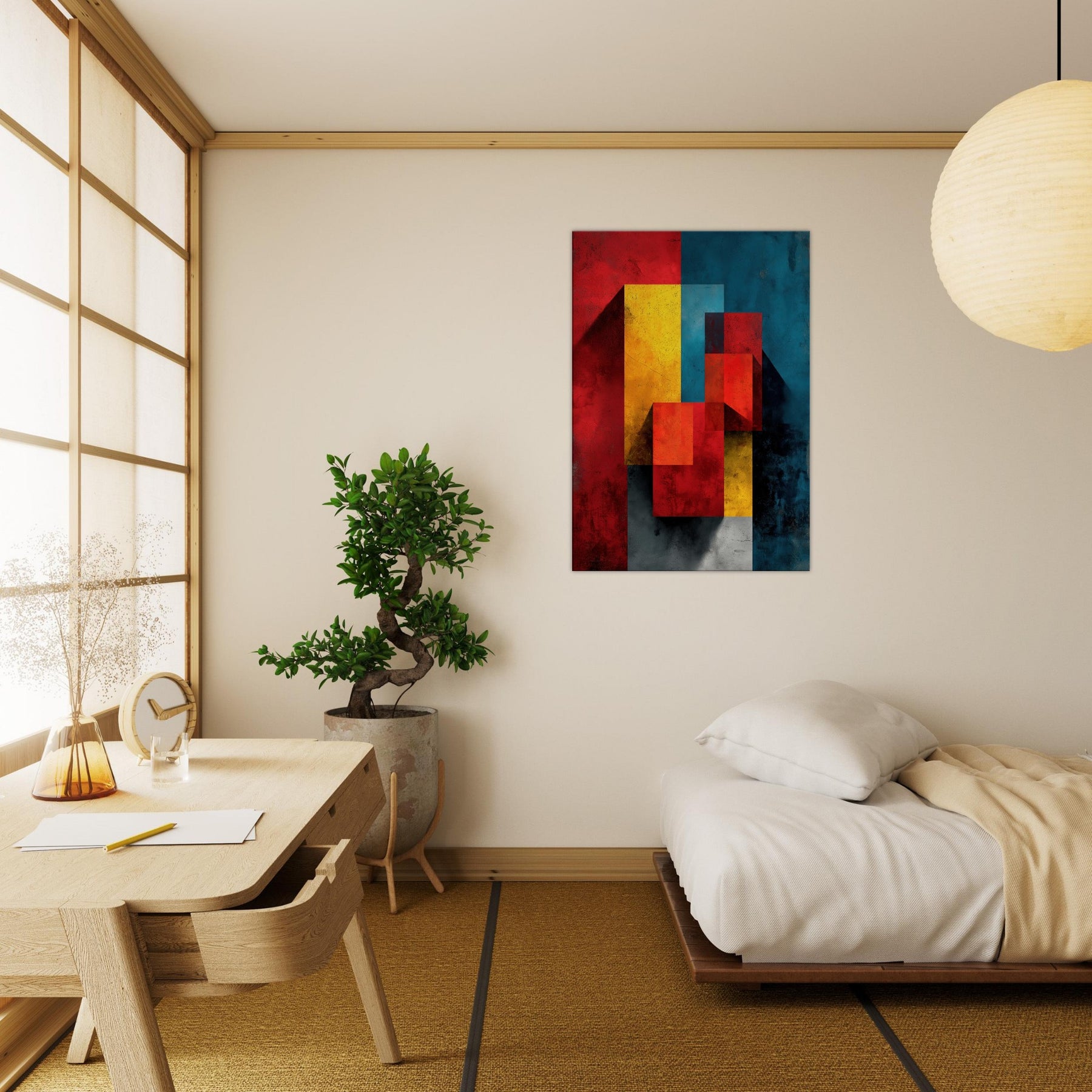 Minimal City Map unfolds as a constellation of color blocks and gentle shadows, inviting the eye to trace imagined streets without words. This abstract composition breathes urban poetry into a room, where crimson, gold, and blue collide with soft textures to create depth and calm. Hang it in a living area or study to spark quiet conversations, while the spatial rhythm echoes architecture at rest. The piece nourishes atmosphere, turning walls into a skyline of memory and possibility.