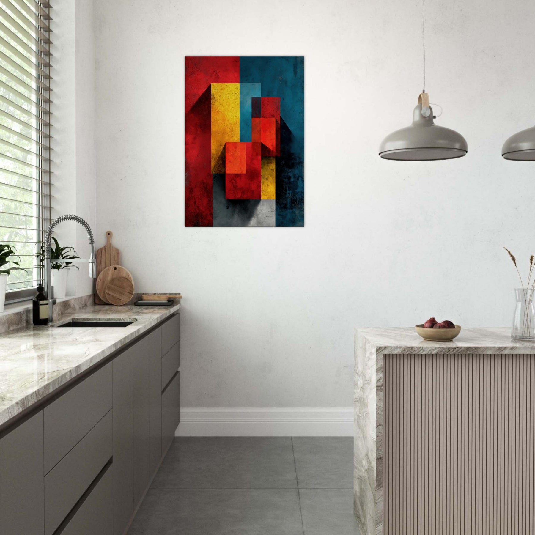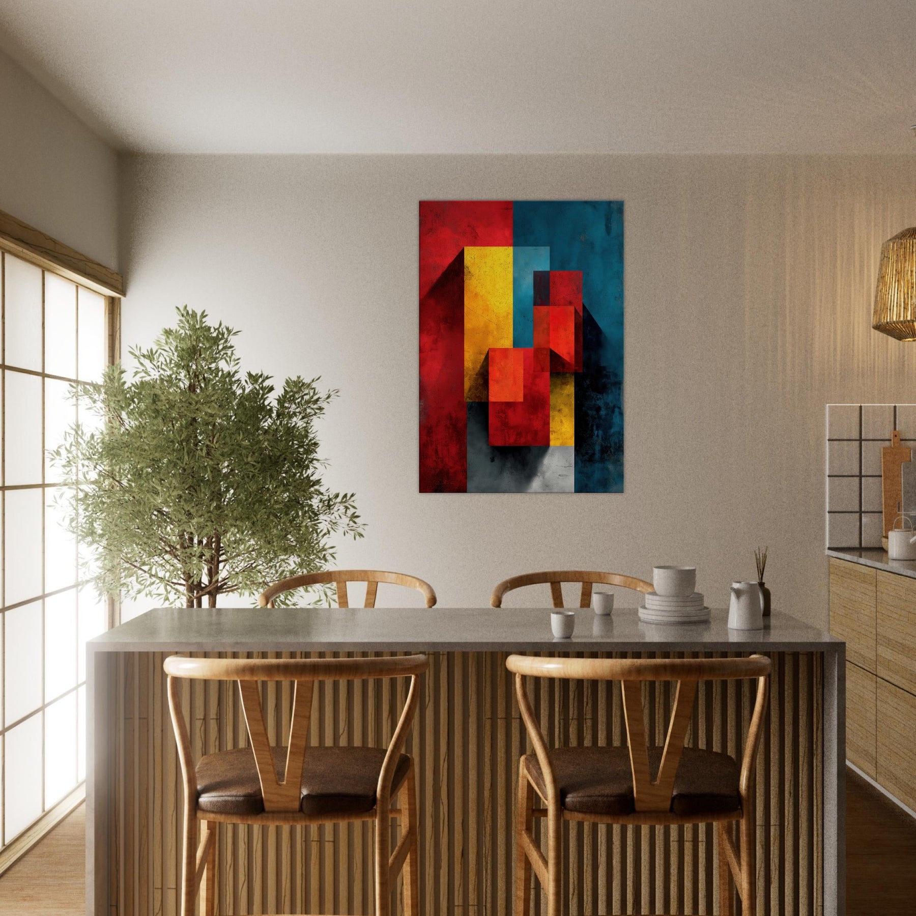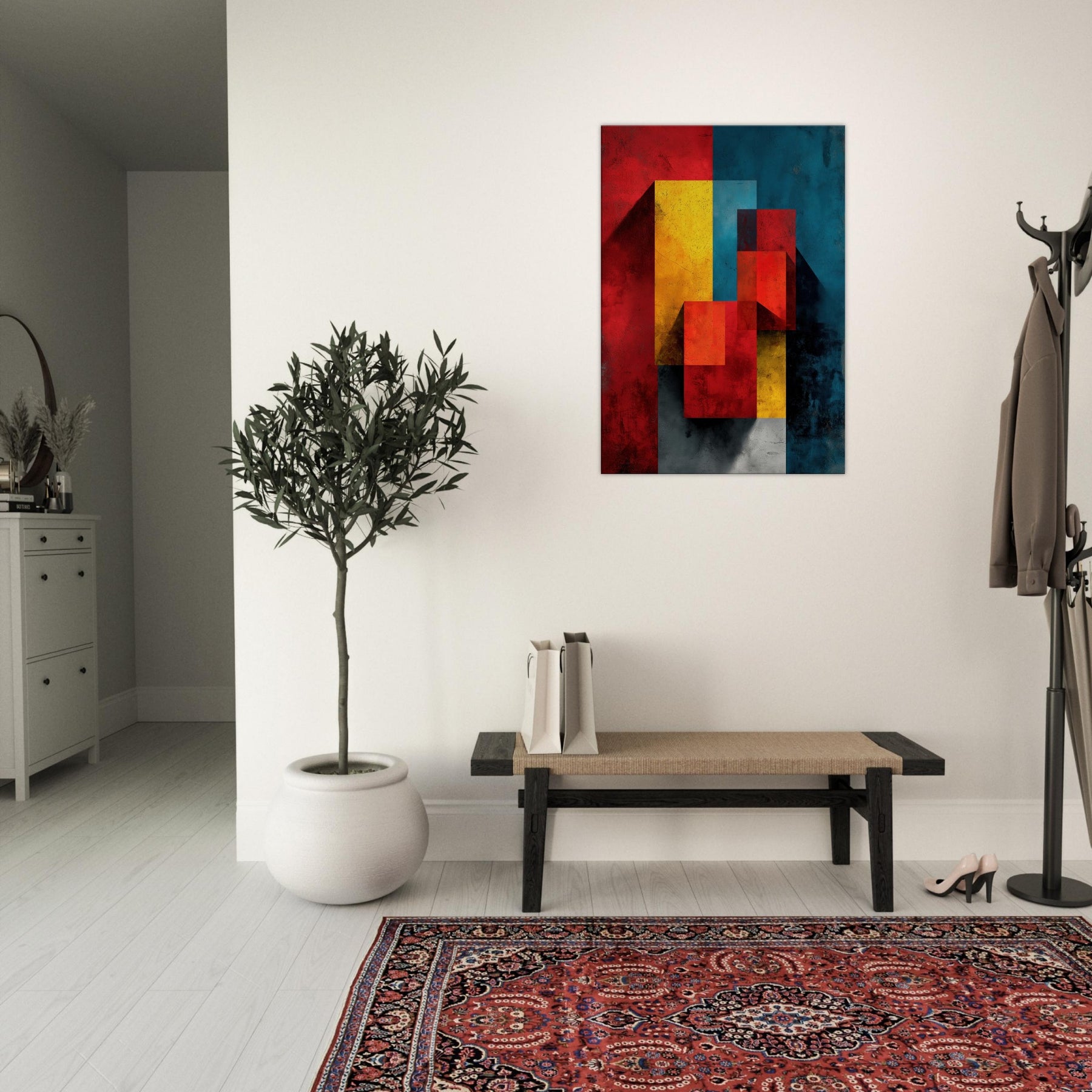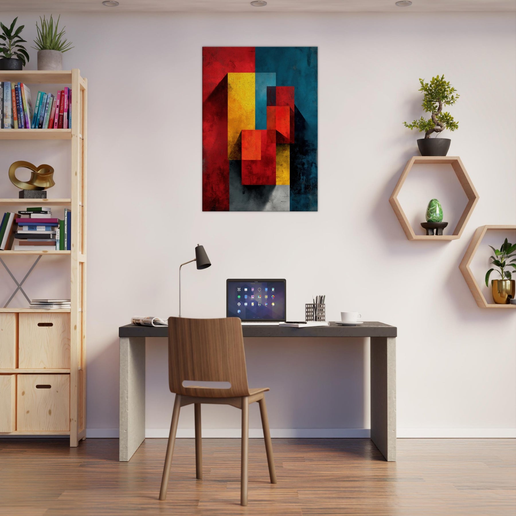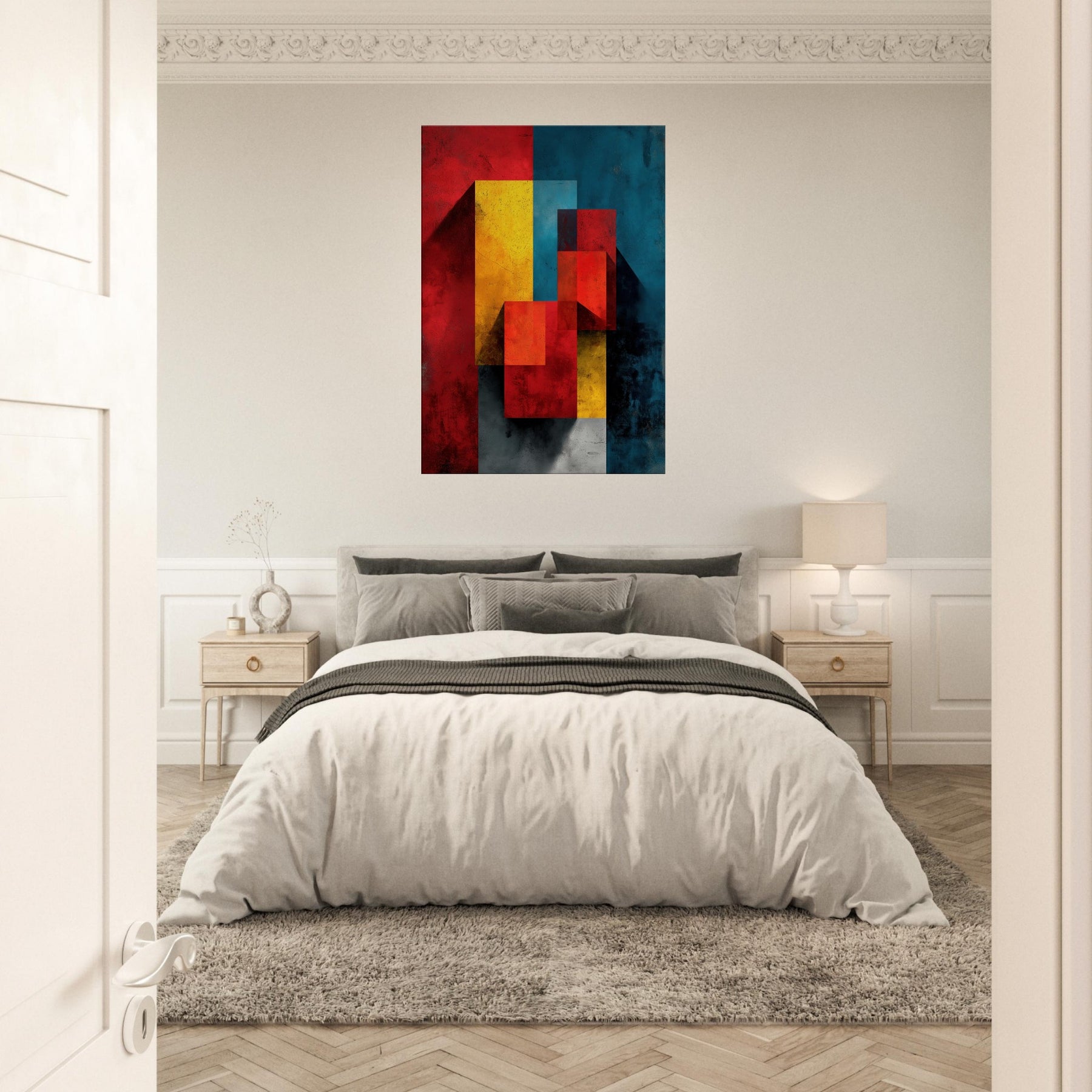 Minimal City Map unfolds as a constellation of color blocks and gentle shadows, inviting the eye to trace imagined streets without words. This abstract composition breathes urban poetry into a room, where crimson, gold, and blue collide with soft textures to create depth and calm. Hang it in a living area or study to spark quiet conversations, while the spatial rhythm echoes architecture at rest. The piece nourishes atmosphere, turning walls into a skyline of memory and possibility.
