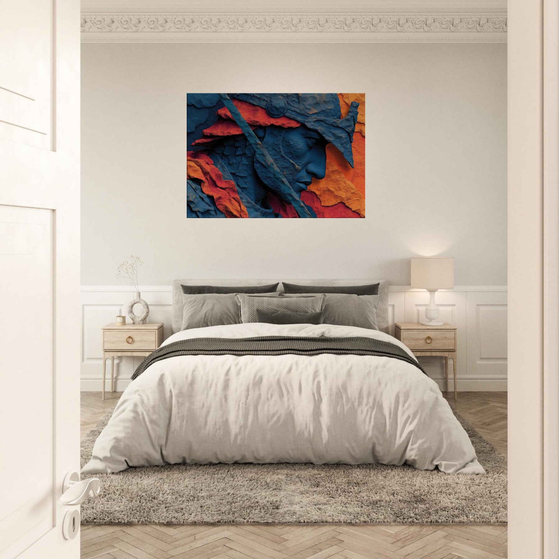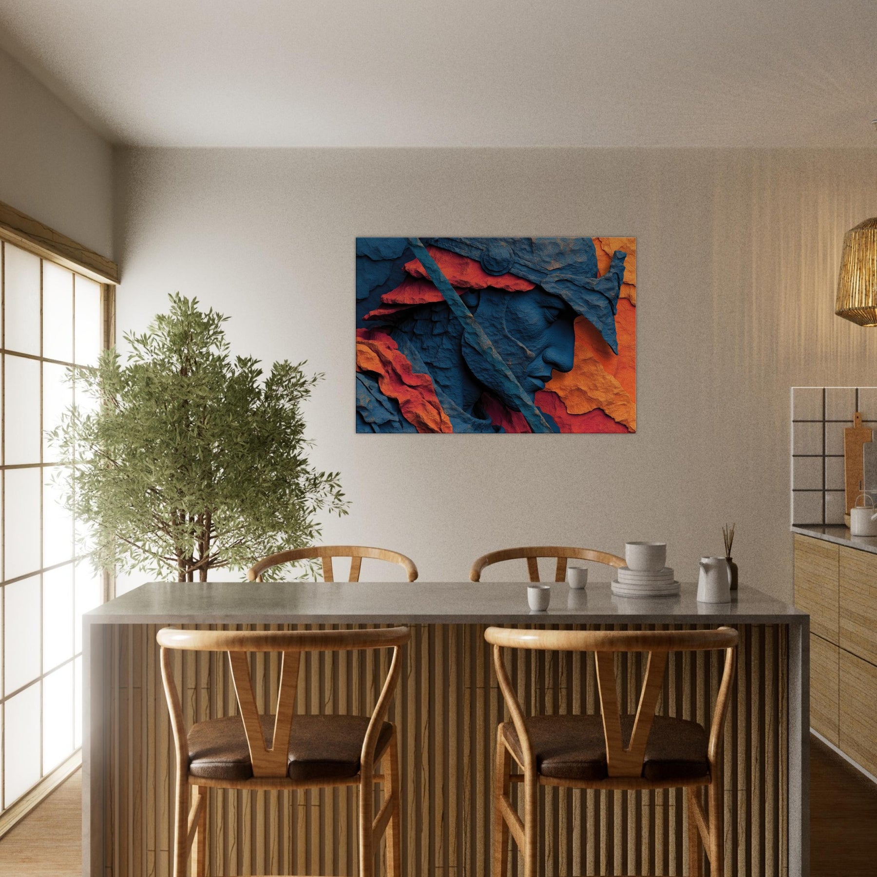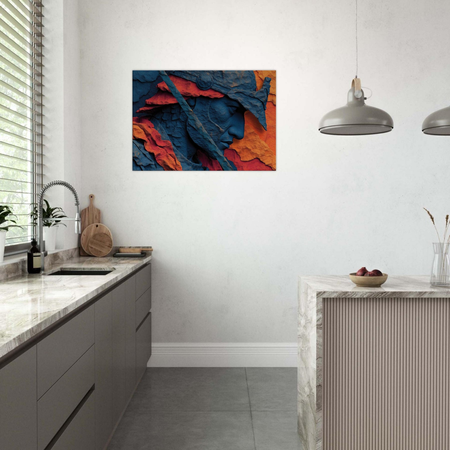 Immerse your space in a luminous collision of myth and stone. The Proud Centaur Warrior rises from sculpted planes of color, its profile traced in cool blues against a heat brushed backdrop of orange and red. The piece hums with silent motion an abstract celebration of courage, endurance, and reverie as if the room itself were a dawn lit throne. Hang it where light can melt into the creases of its form, letting texture and hue invite conversation and calm into daily life.
