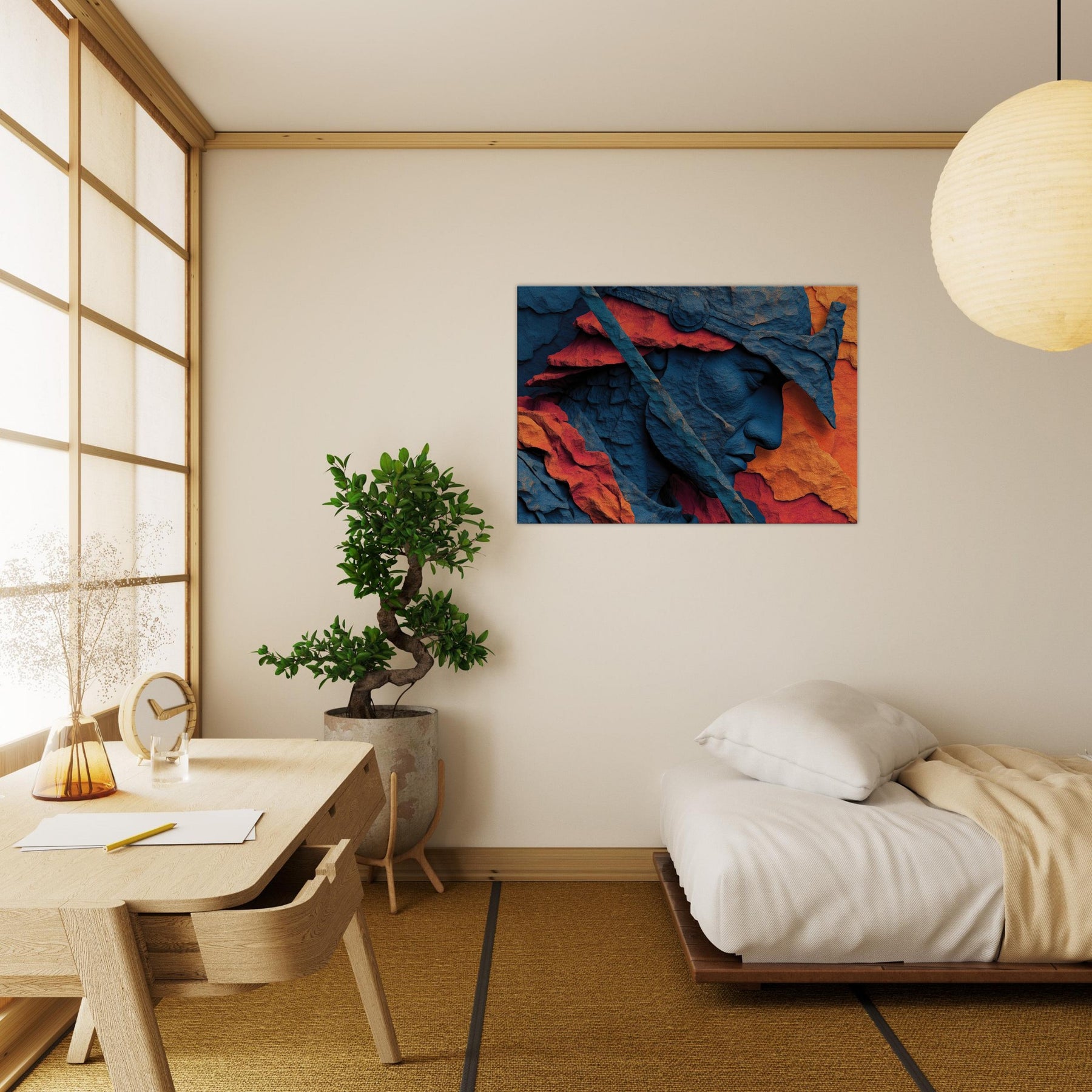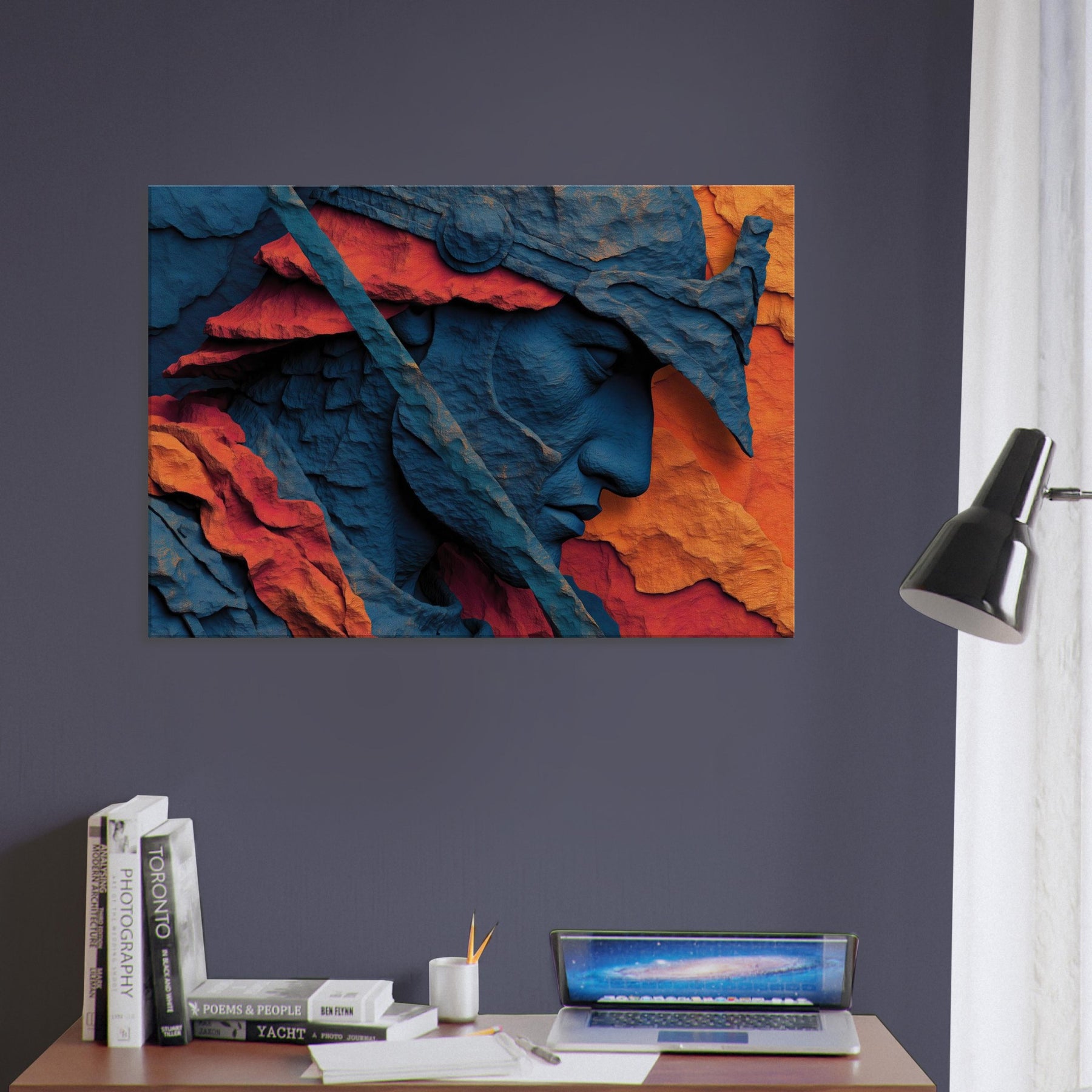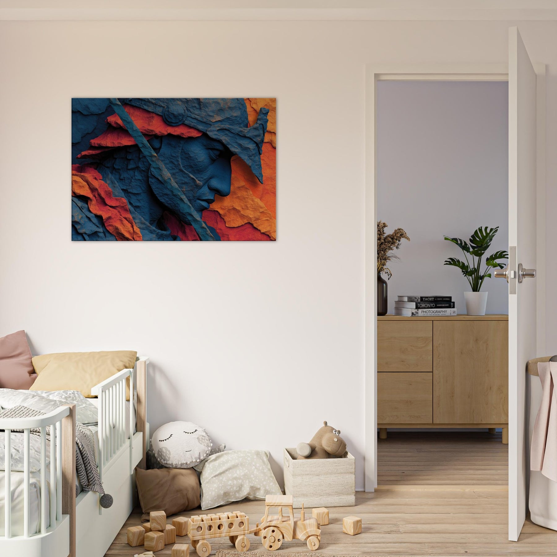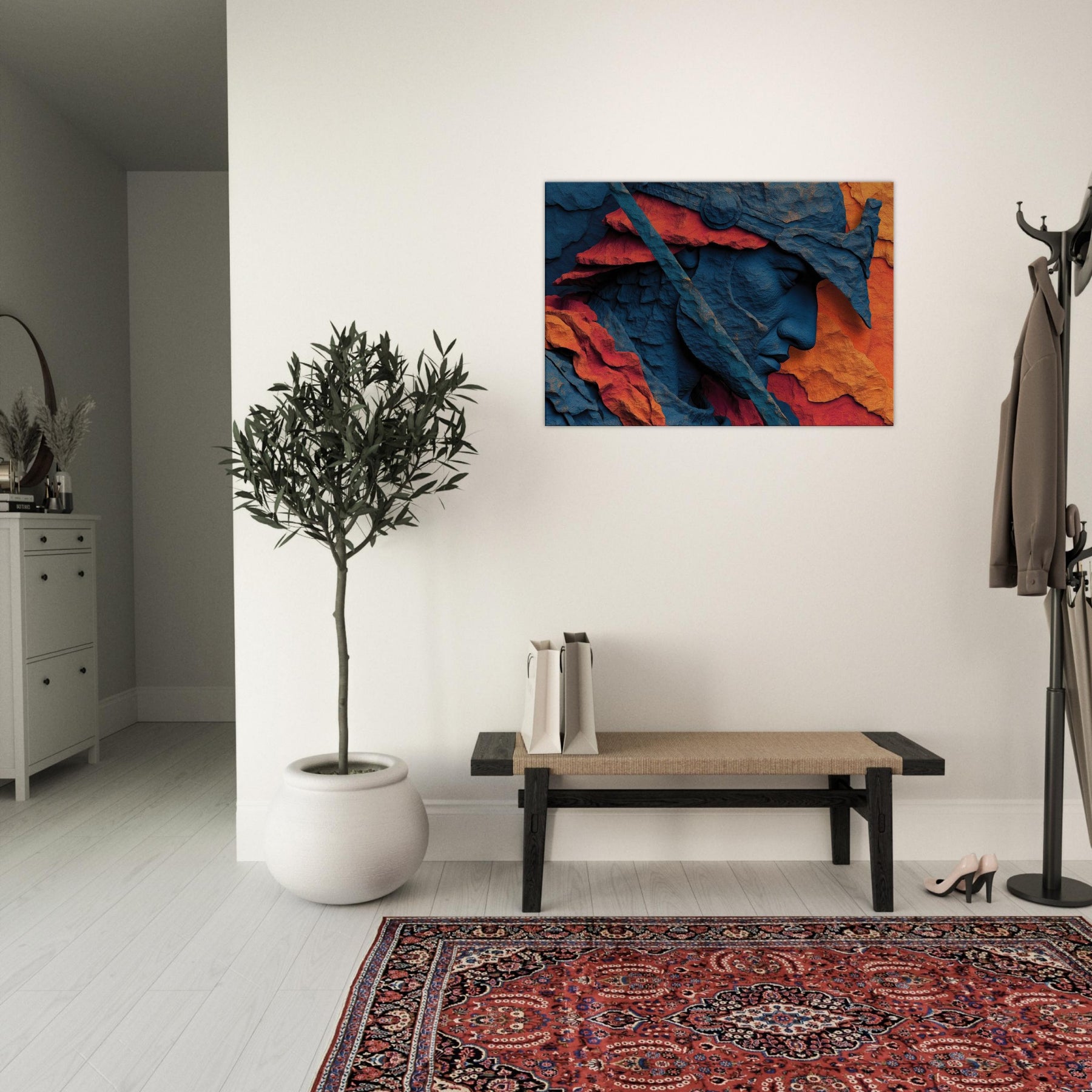 Immerse your space in a luminous collision of myth and stone. The Proud Centaur Warrior rises from sculpted planes of color, its profile traced in cool blues against a heat brushed backdrop of orange and red. The piece hums with silent motion an abstract celebration of courage, endurance, and reverie as if the room itself were a dawn lit throne. Hang it where light can melt into the creases of its form, letting texture and hue invite conversation and calm into daily life.