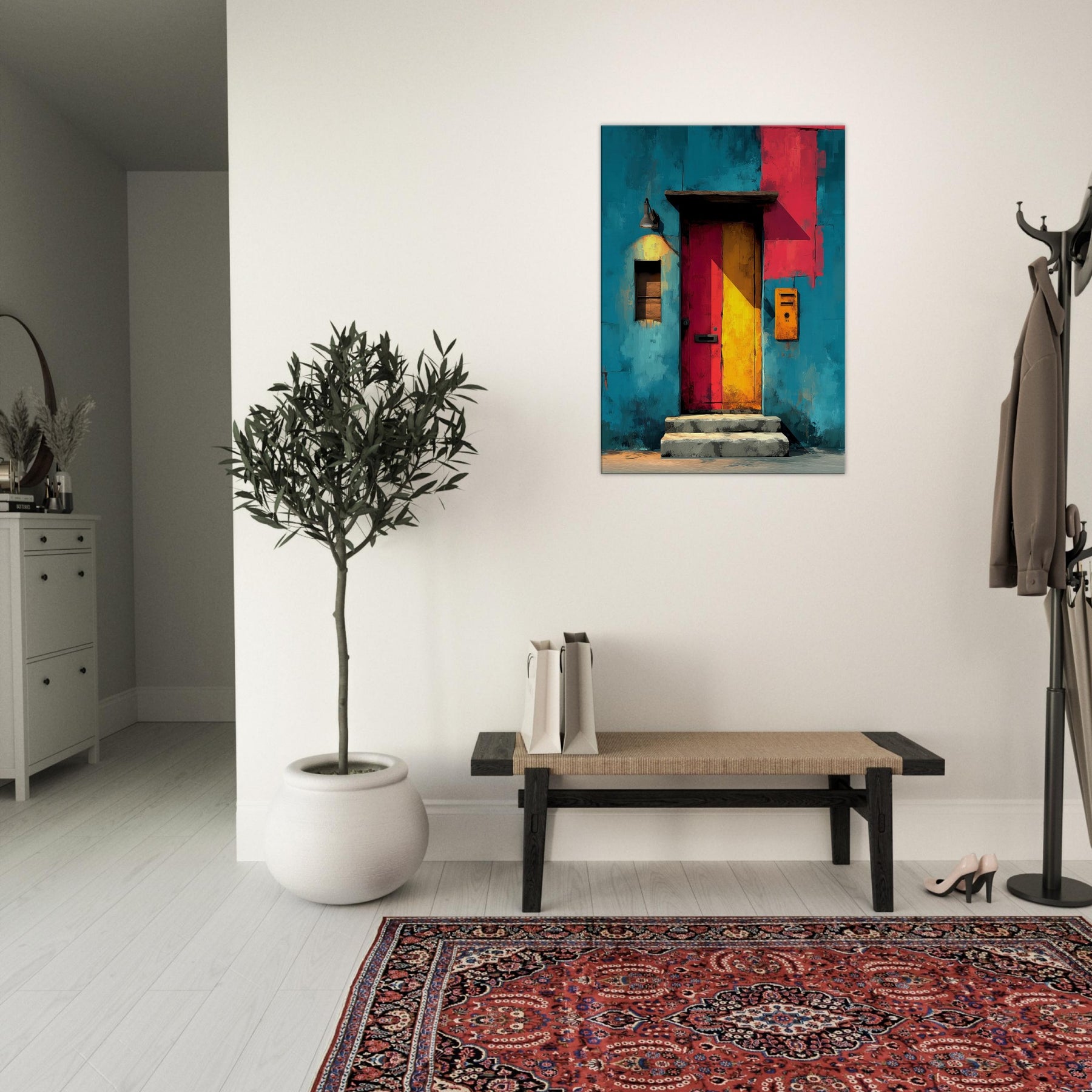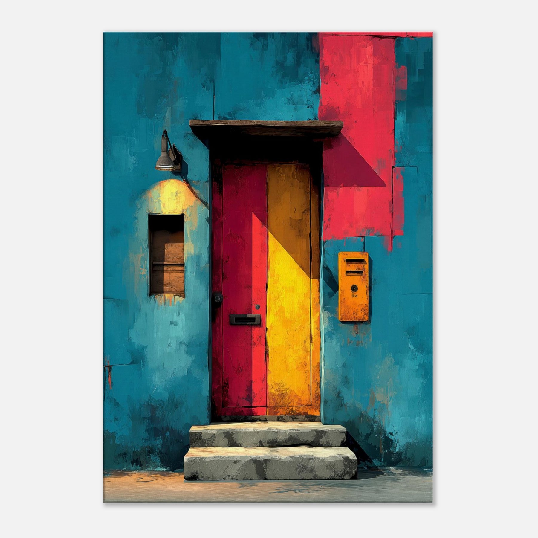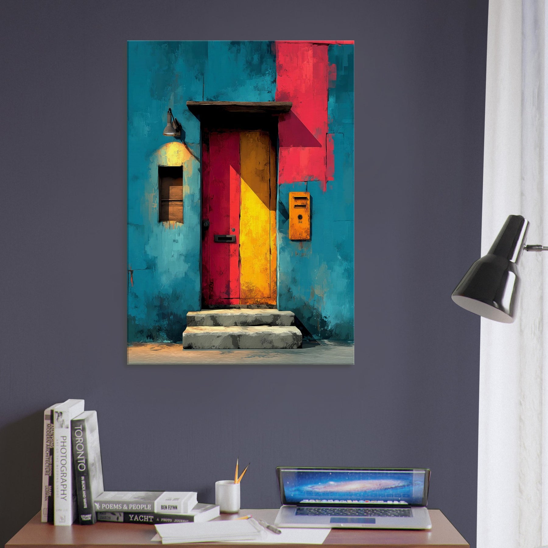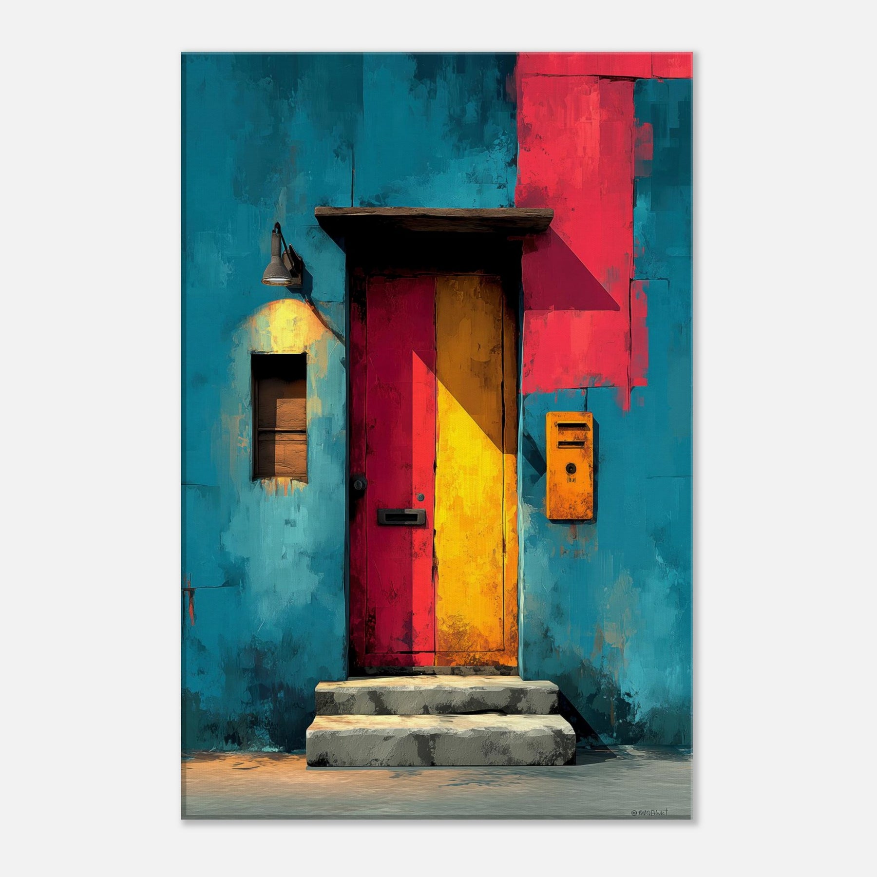 Step into the sun waked allure of an Old City Doorway, where turquoise walls cradle a door of bold red and sunlit yellow. This abstract influenced scene breathes warmth and texture into any room, as shadow and light dance across weathered plaster. The blend of color and form evokes memory and invitation, turning a living space into a quiet city square calming yet energized, refined yet adventurous. A statement piece that enhances conversation and everyday living.