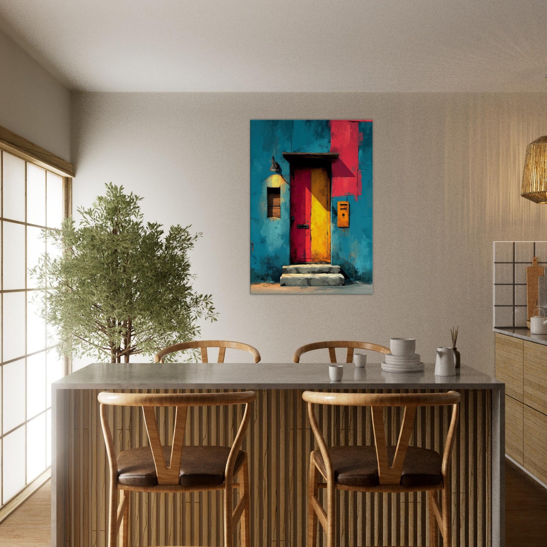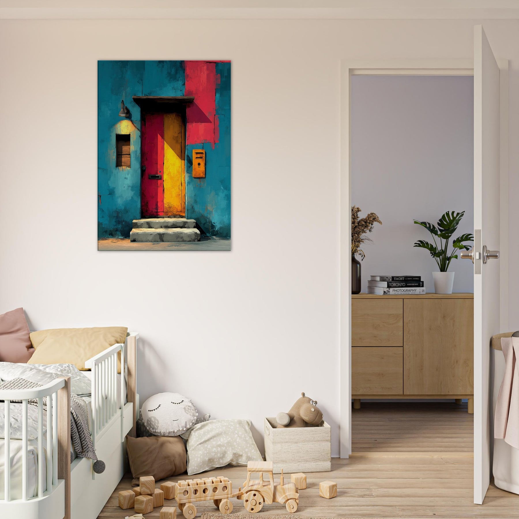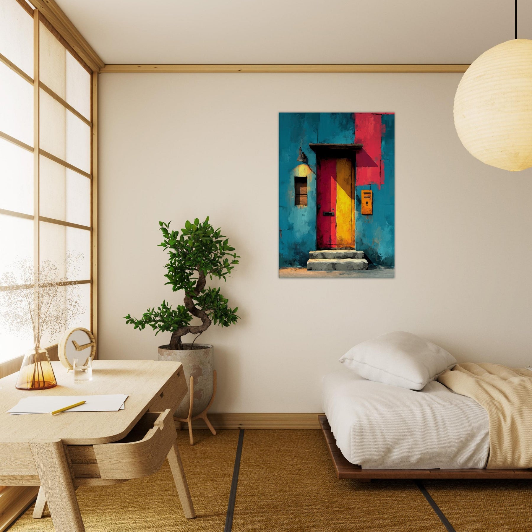 Step into the sun waked allure of an Old City Doorway, where turquoise walls cradle a door of bold red and sunlit yellow. This abstract influenced scene breathes warmth and texture into any room, as shadow and light dance across weathered plaster. The blend of color and form evokes memory and invitation, turning a living space into a quiet city square calming yet energized, refined yet adventurous. A statement piece that enhances conversation and everyday living.