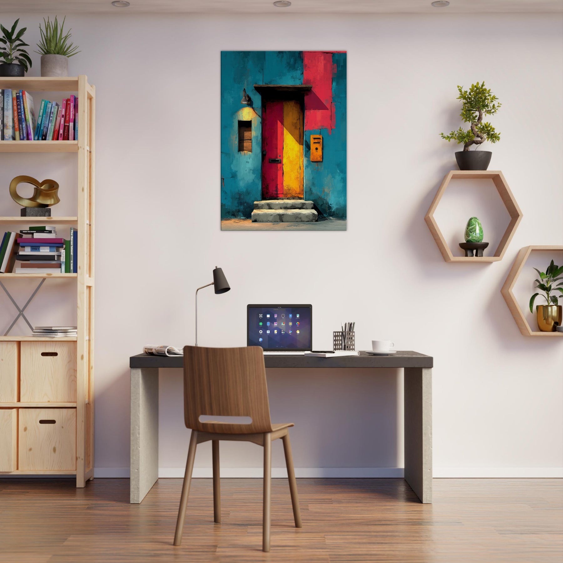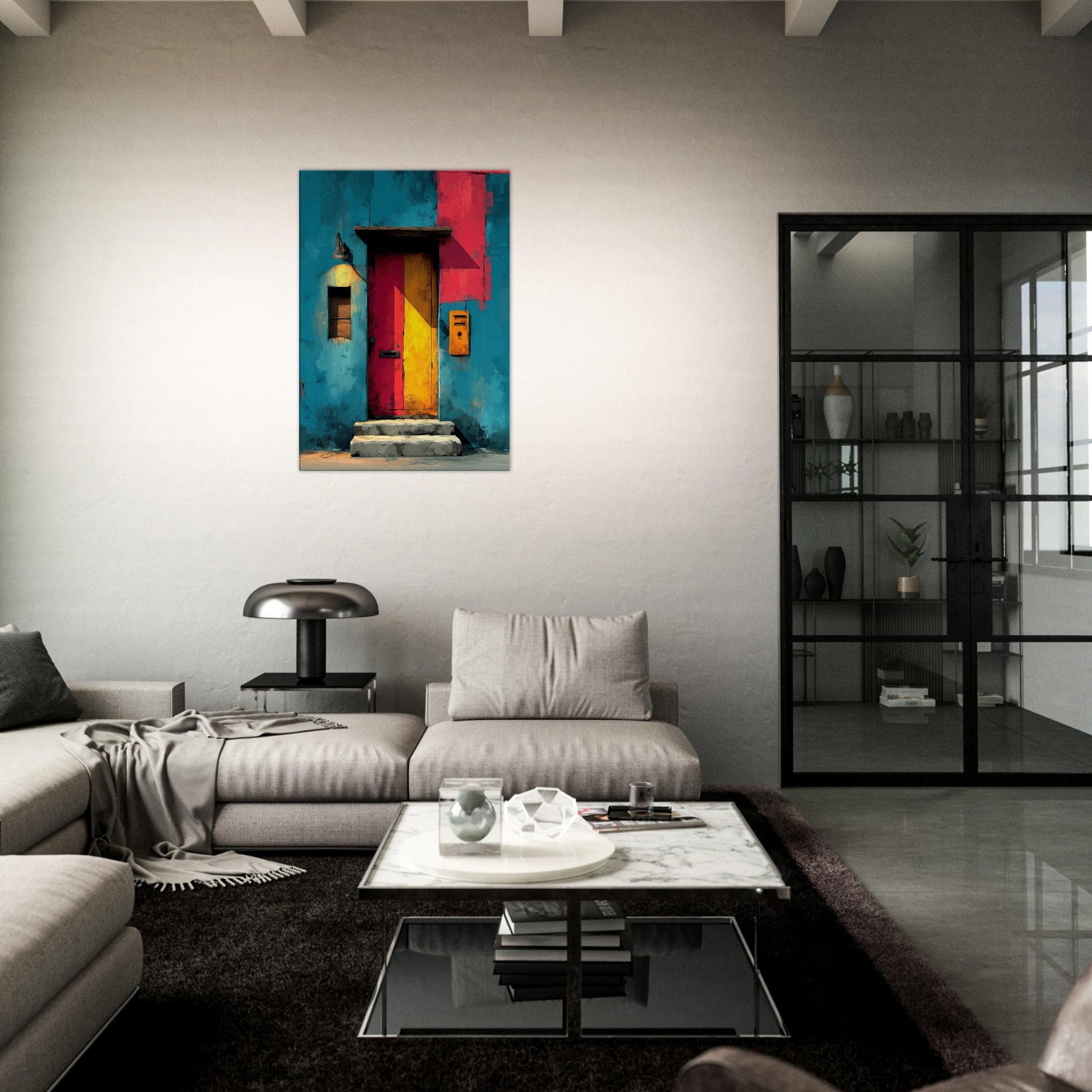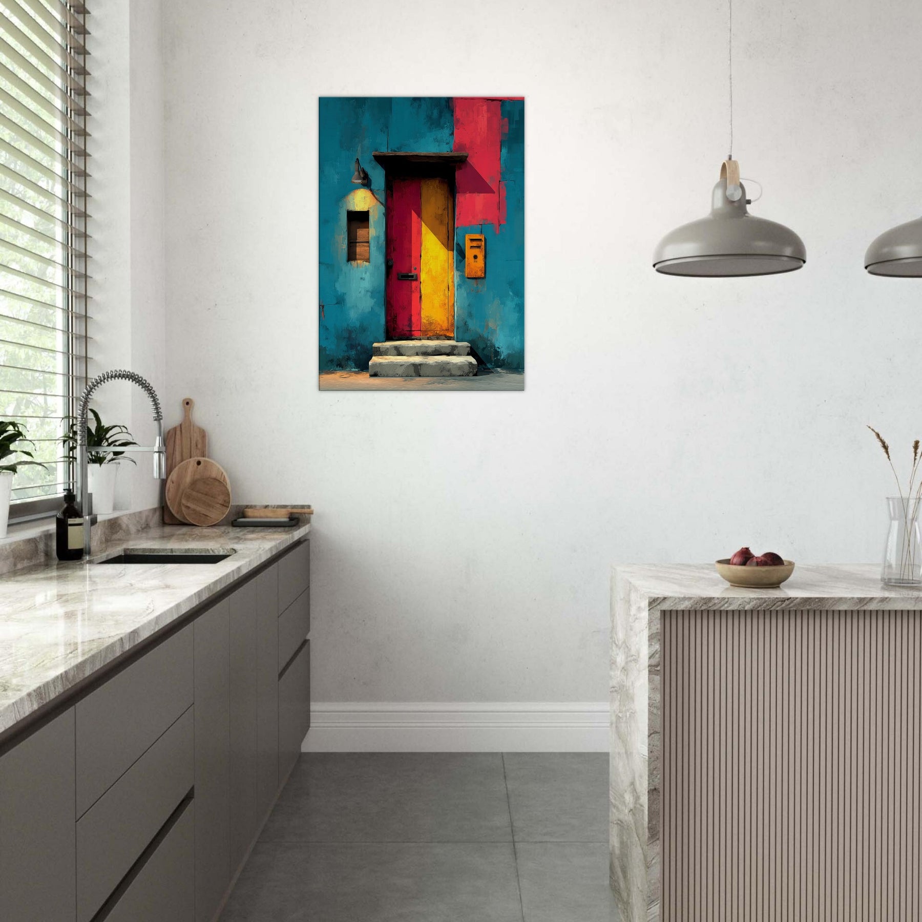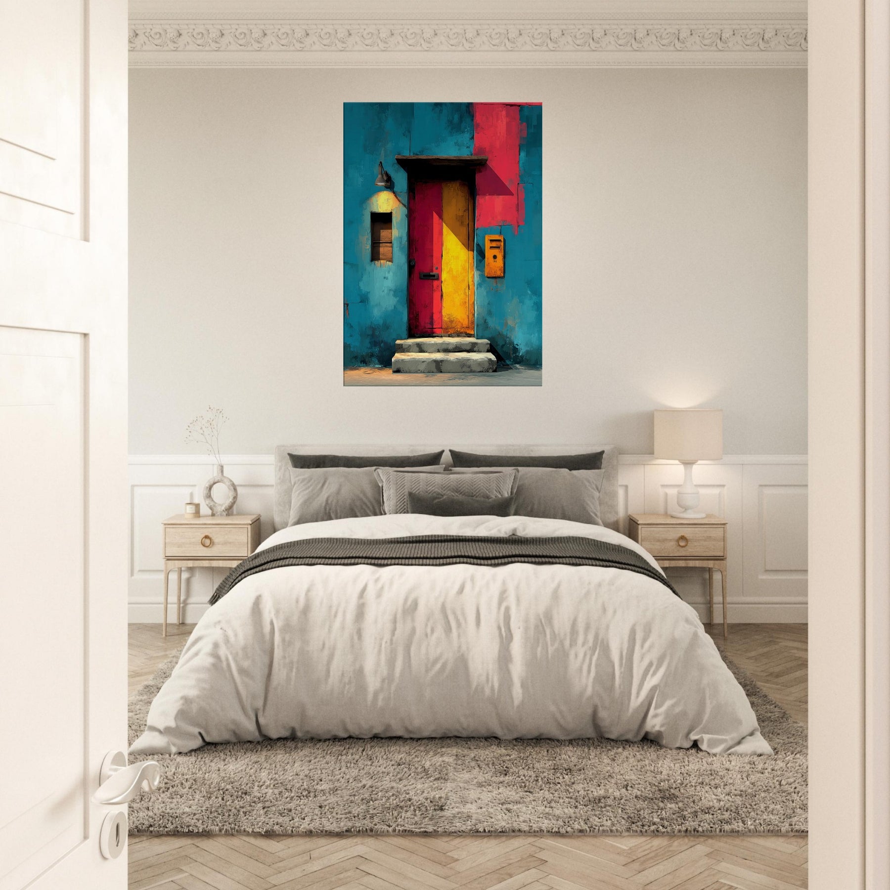Step into the sun waked allure of an Old City Doorway, where turquoise walls cradle a door of bold red and sunlit yellow. This abstract influenced scene breathes warmth and texture into any room, as shadow and light dance across weathered plaster. The blend of color and form evokes memory and invitation, turning a living space into a quiet city square calming yet energized, refined yet adventurous. A statement piece that enhances conversation and everyday living.