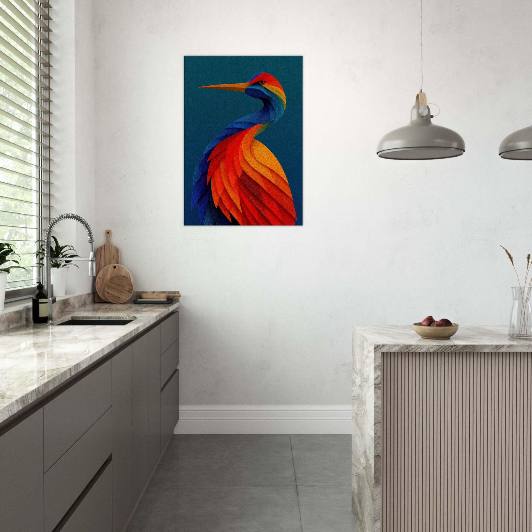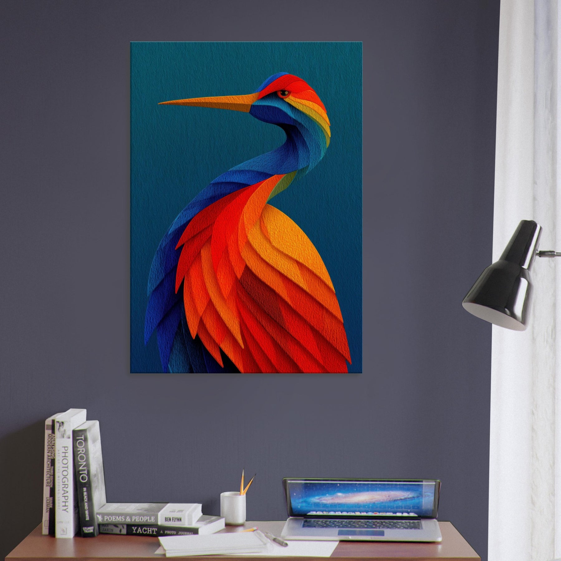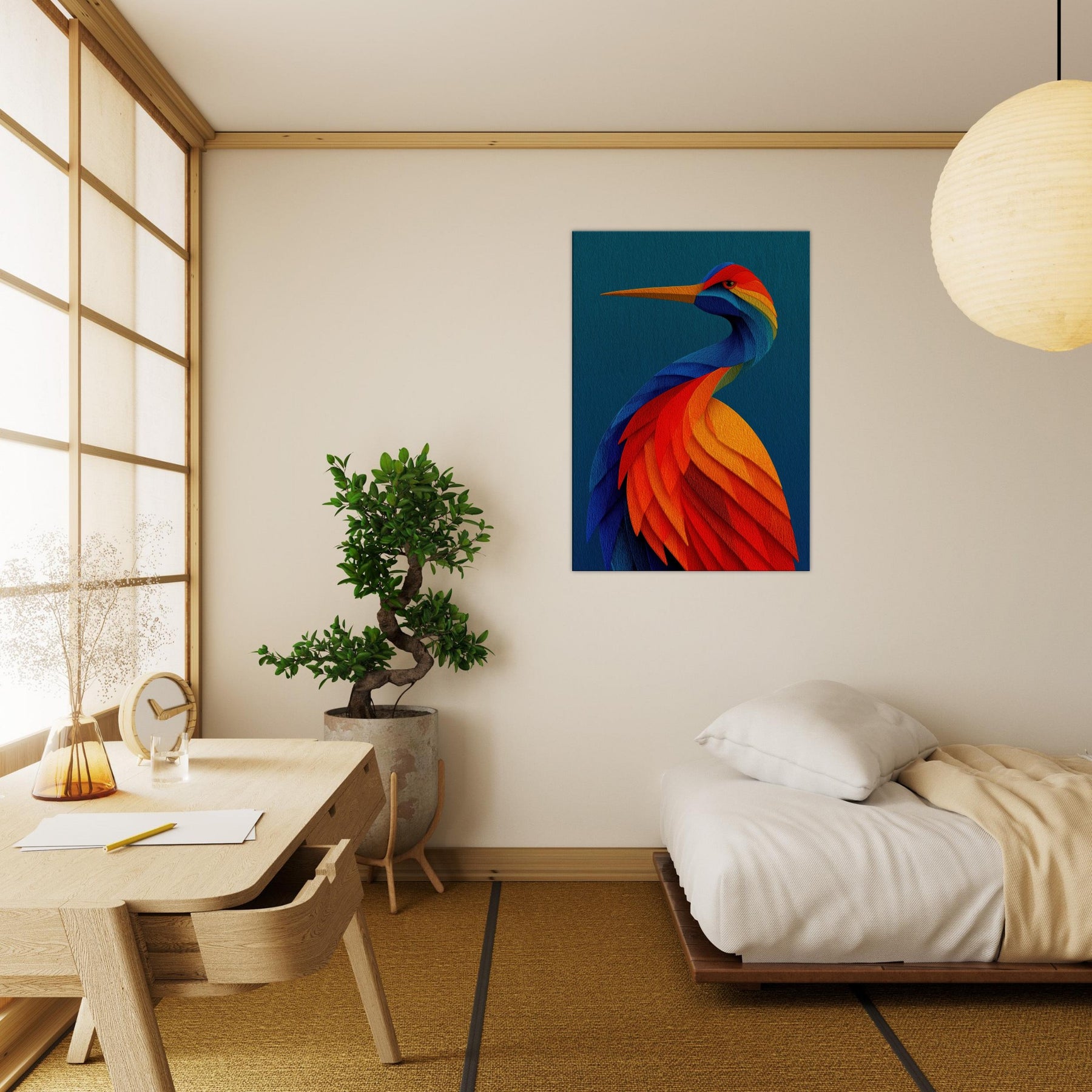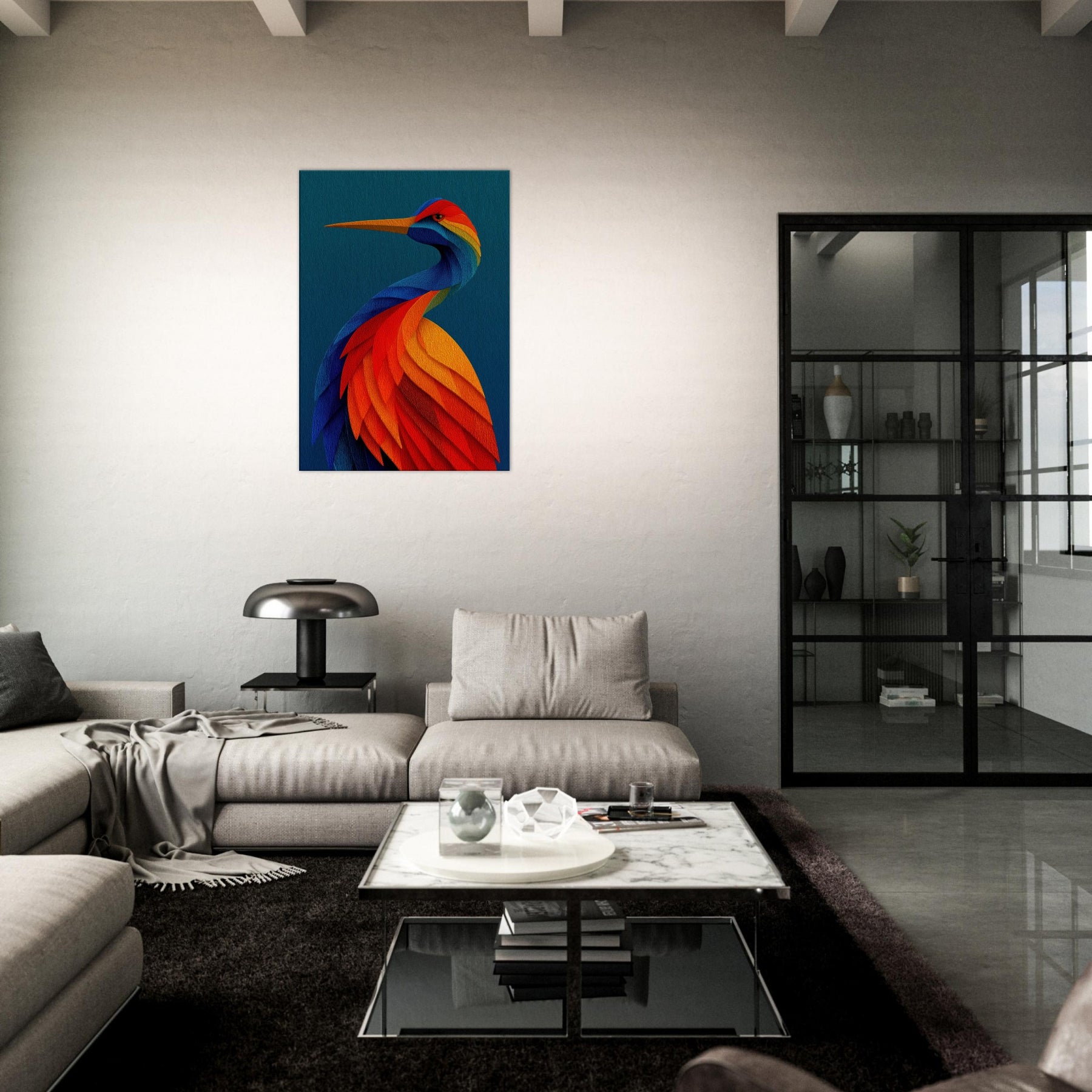 Wrapped in a spectrum of folded light, this Origami Crane seems to rise from a quiet teal horizon. Its segmented plumage shifts from electric oranges to sapphire blues, inviting the eye to travel along a sculpted curve that feels both architectural and intimate. The piece hums with calm energy, turning walls into a stage for contemplation and warmth. In living spaces, it acts as a focal breath bright, precise, and endlessly graceful.
