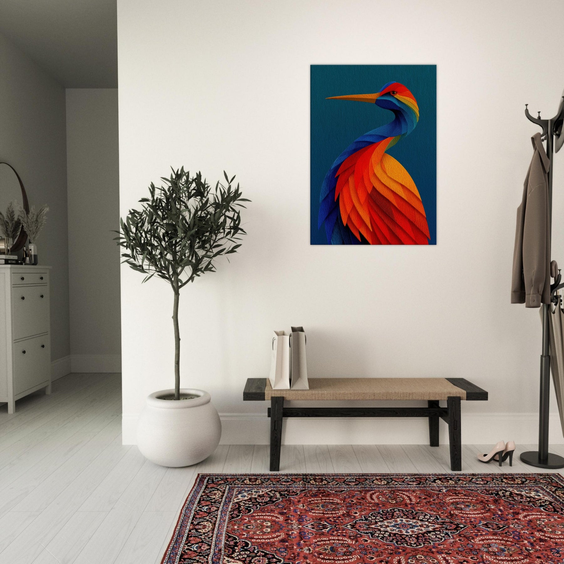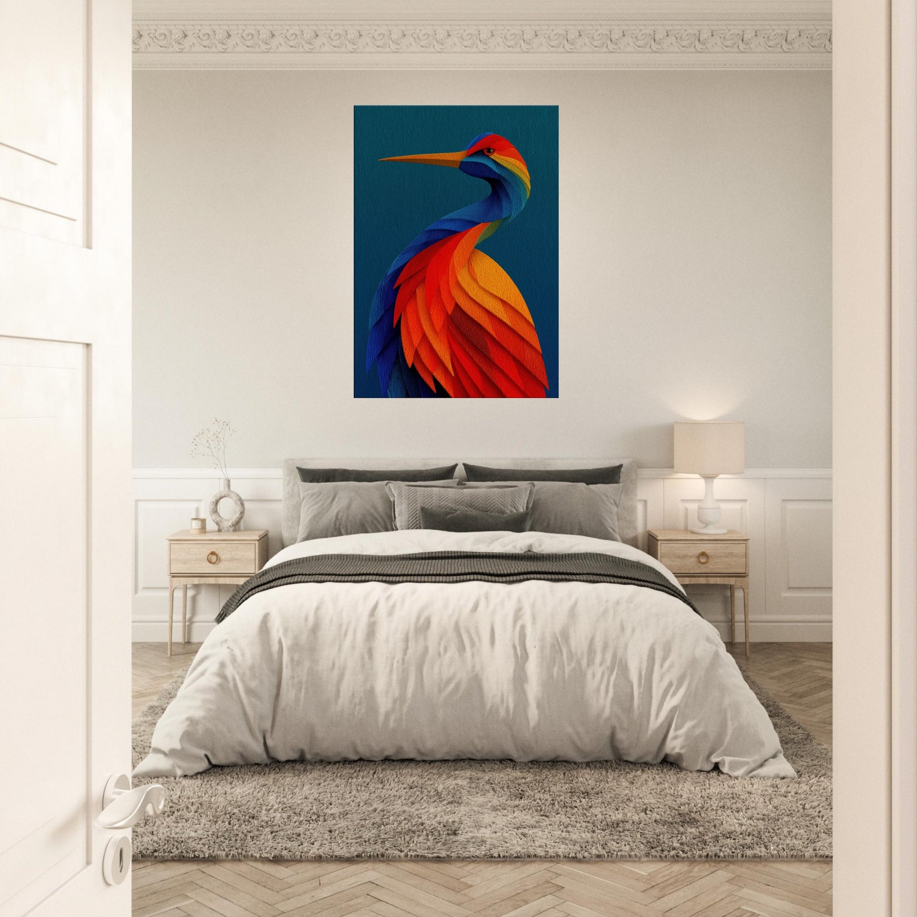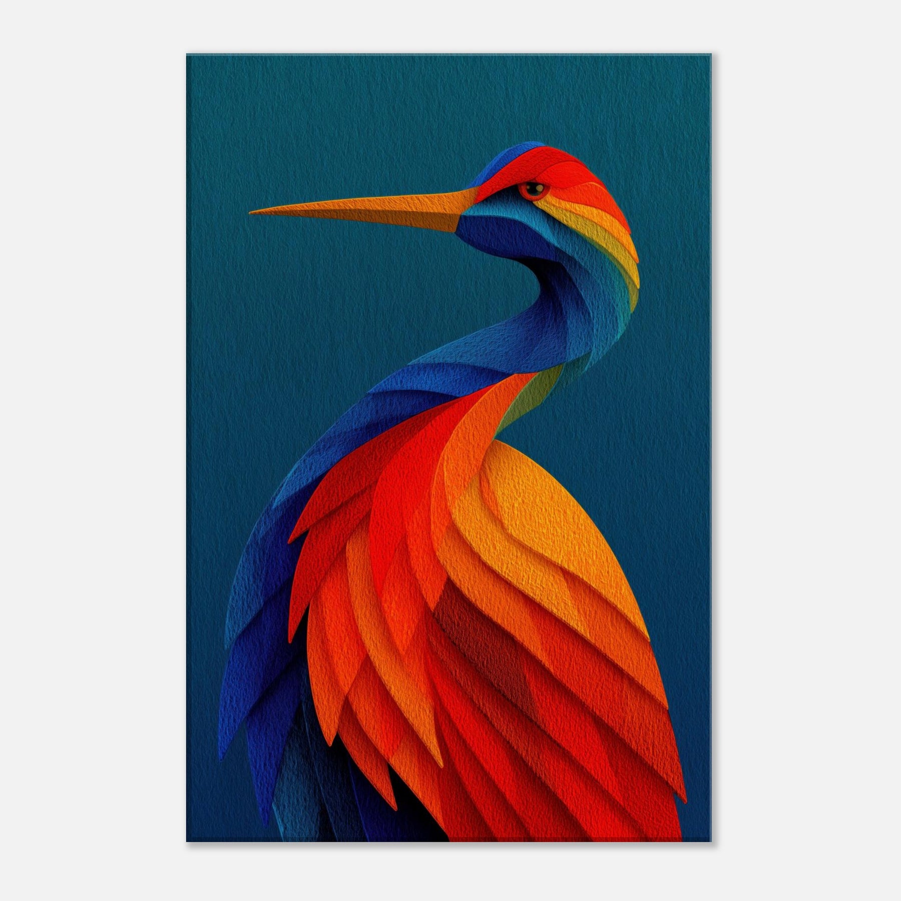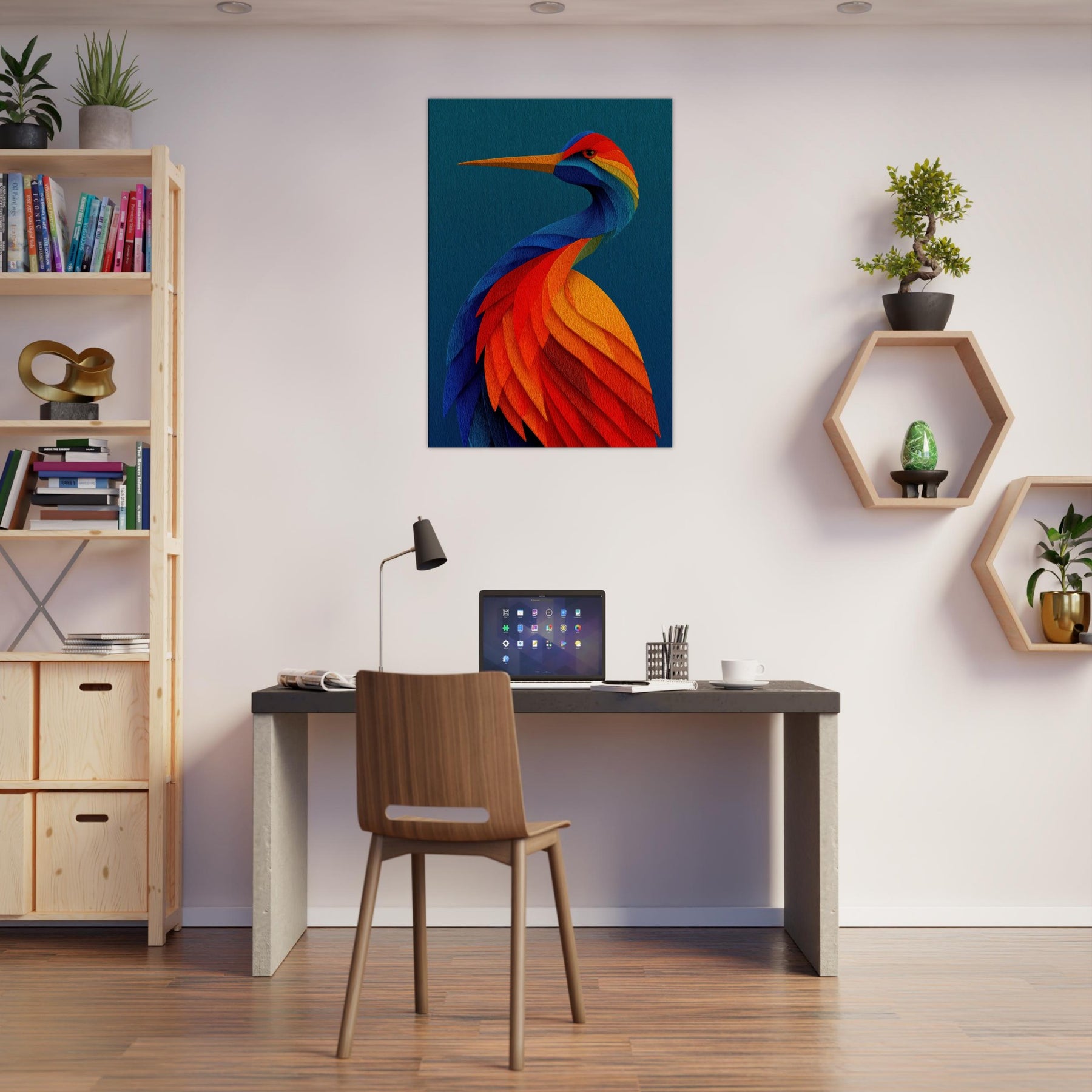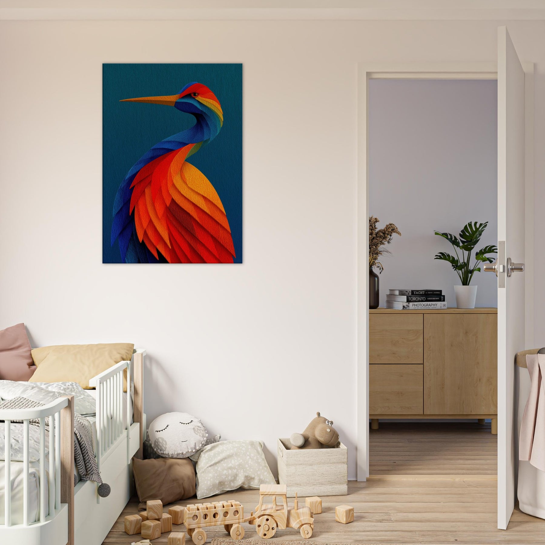 Wrapped in a spectrum of folded light, this Origami Crane seems to rise from a quiet teal horizon. Its segmented plumage shifts from electric oranges to sapphire blues, inviting the eye to travel along a sculpted curve that feels both architectural and intimate. The piece hums with calm energy, turning walls into a stage for contemplation and warmth. In living spaces, it acts as a focal breath bright, precise, and endlessly graceful.