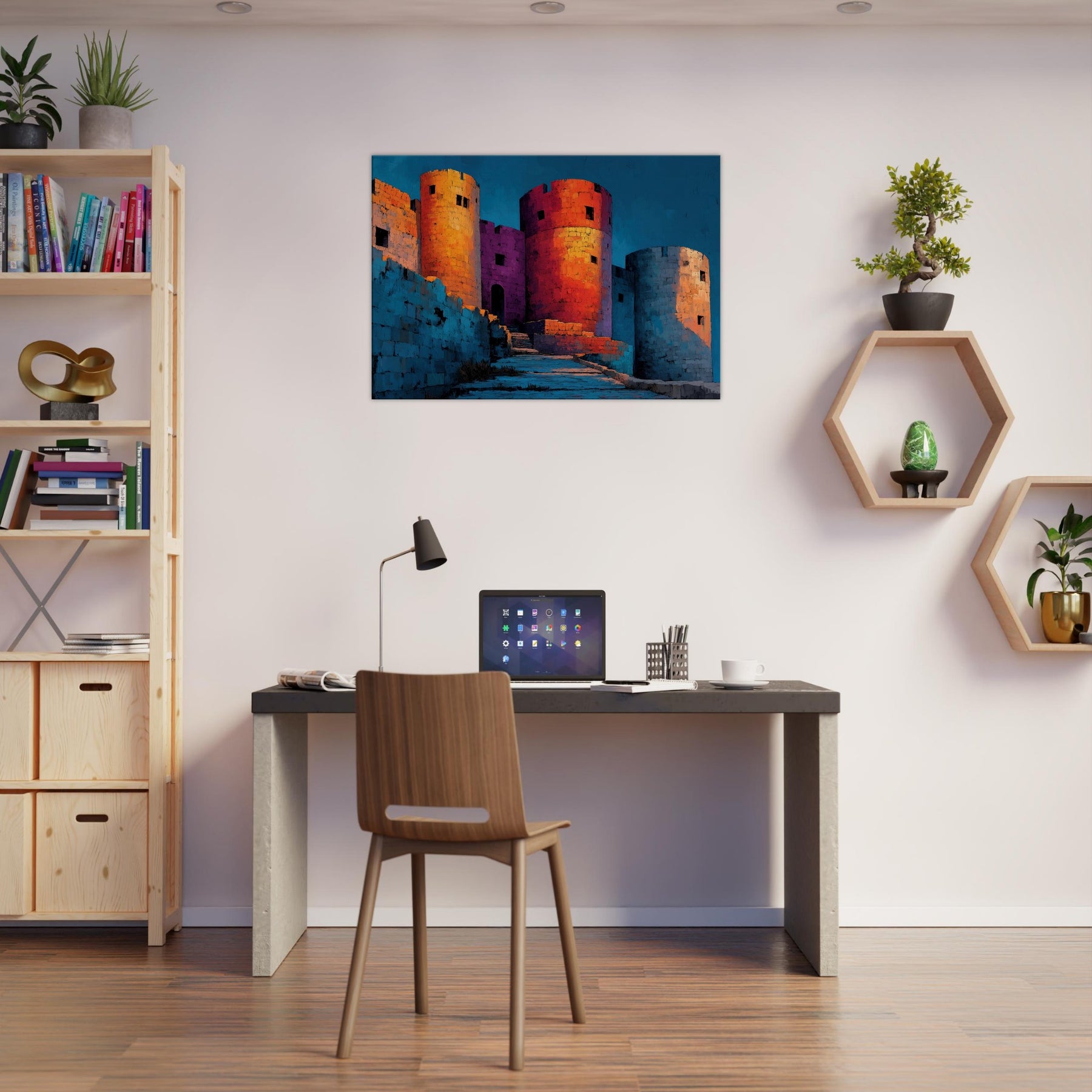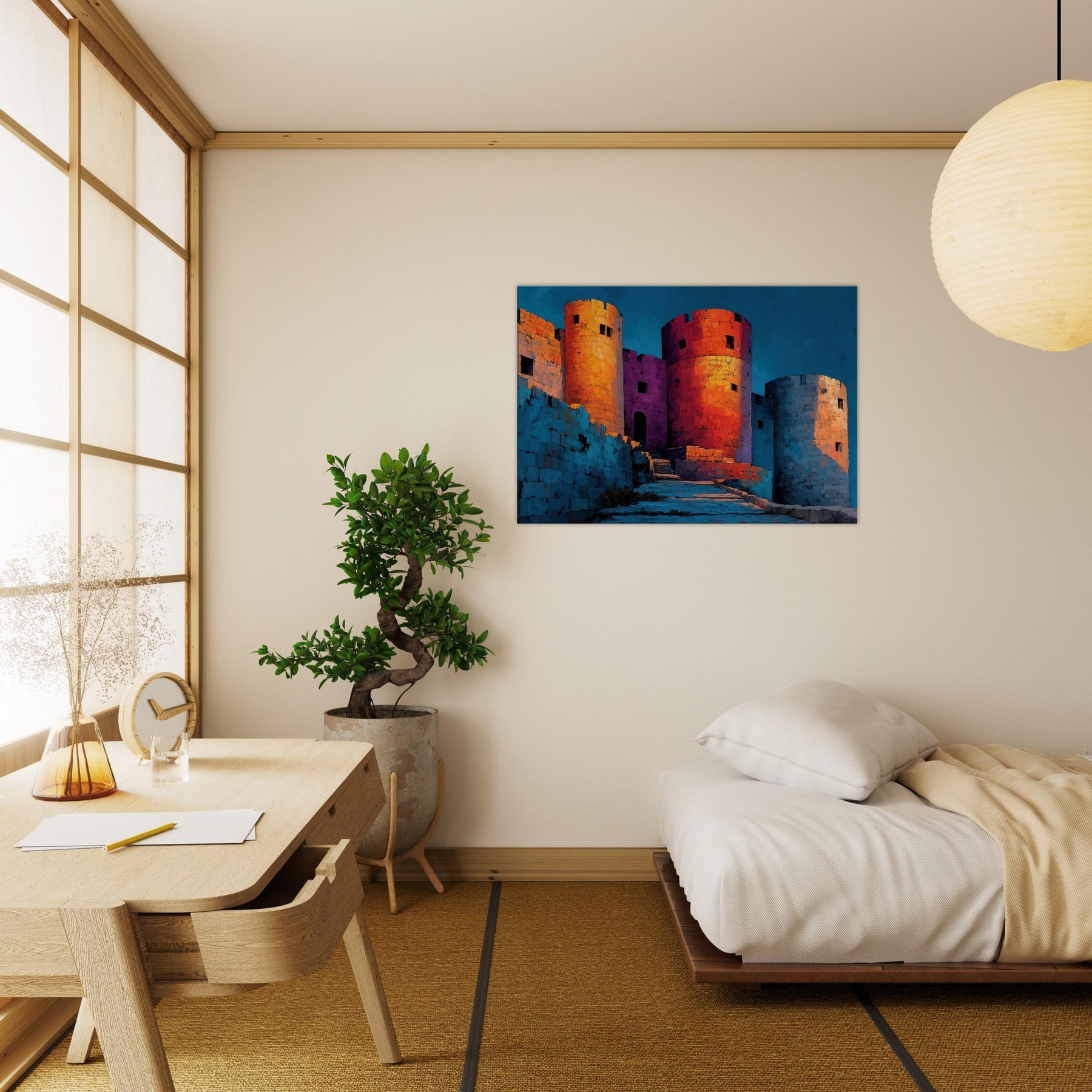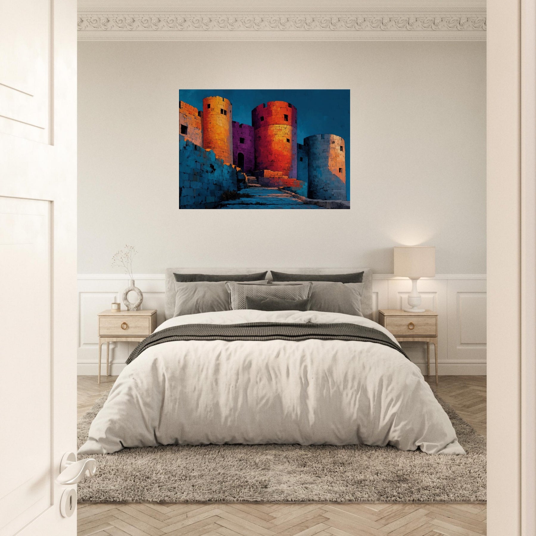 Medieval Castle emerges in a blaze of color, turning a plain wall into a horizon of light and aspiration. This abstract interpretation breathes with the warmth of sunrise hues and the cool mystery of dusk blues, inviting quiet contemplation and energized conversation. The piece evokes ancient stone, sea salt air, and the distant echo of banners, elevating hallways, living rooms, and bedrooms with a timeless, cinematic mood.