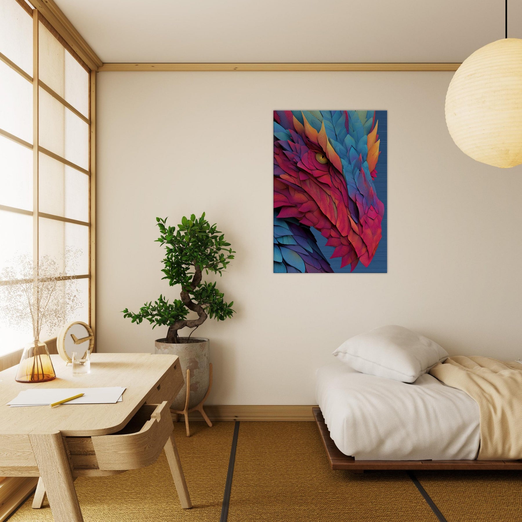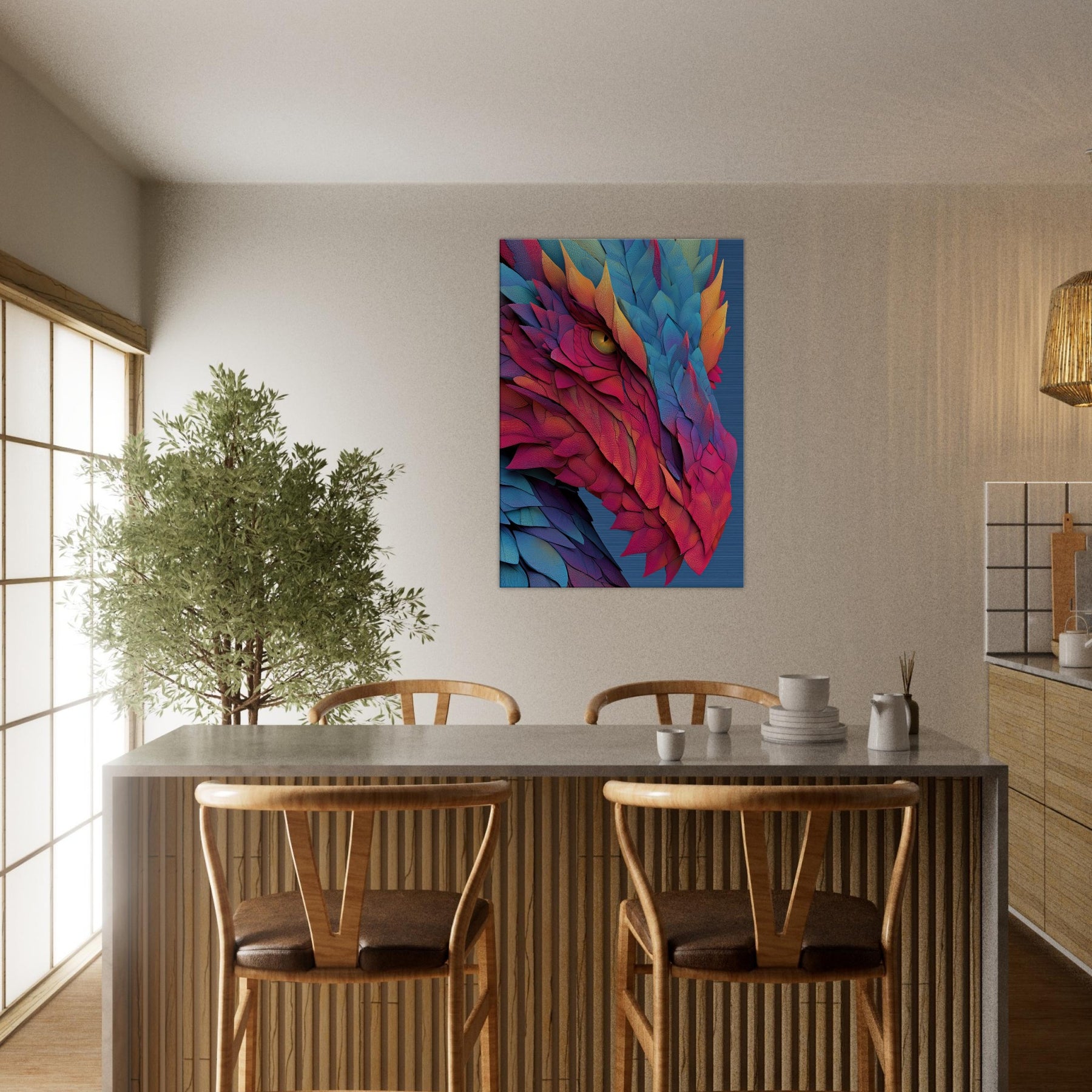 Let the Dragon emerge from your wall with a tidal blaze of color. This abstract study of scales and momentum wraps your space in a warm, electric glow each layered tile catching light and guiding the eye along curves of power and grace. The atmosphere shifts from quiet evening to visionary dawn, inviting quiet reflection or lively conversation. Ideal for a living room or entryway, it becomes a dramatic focal point that warms the room without shouting, revealing a fantasy world just beyond reach.