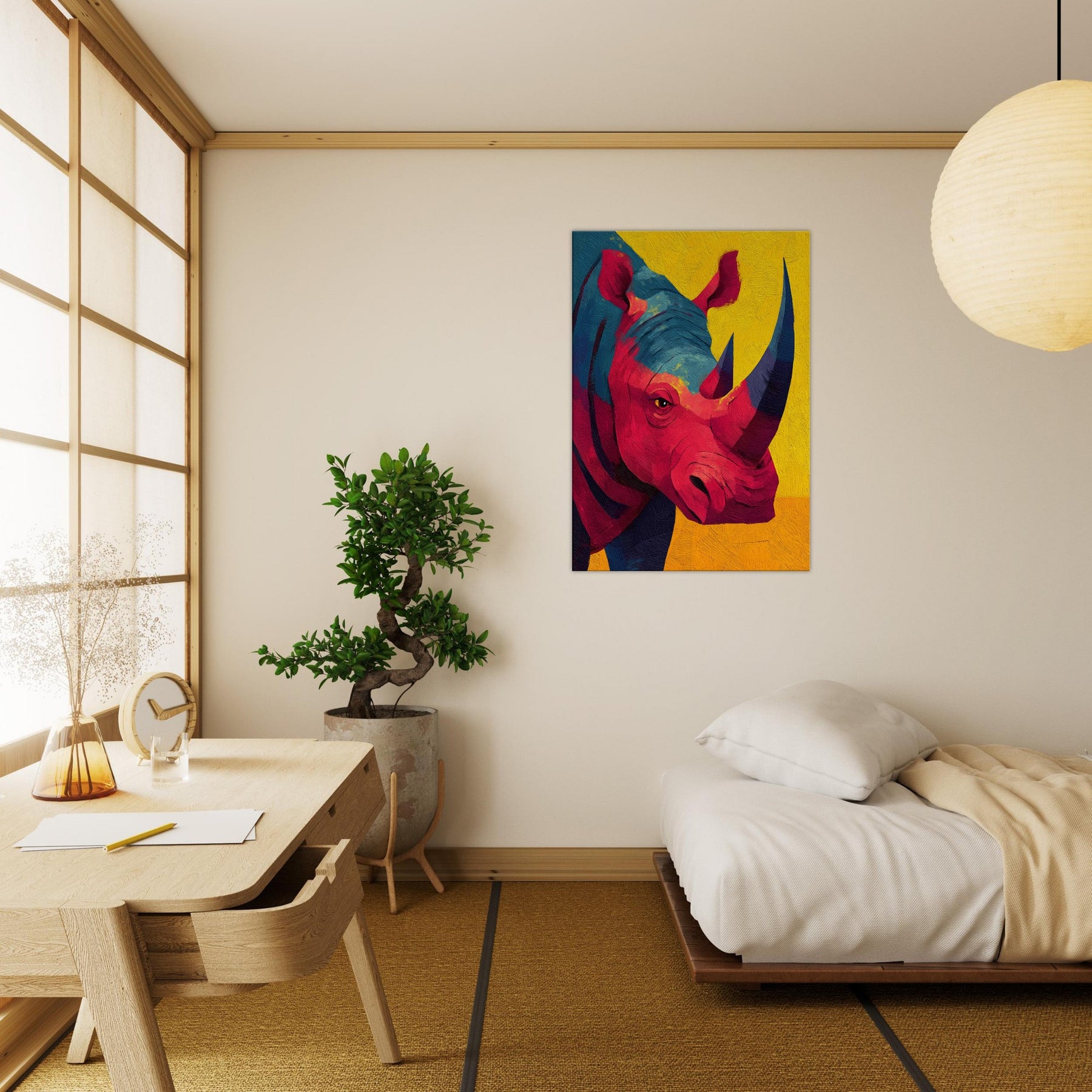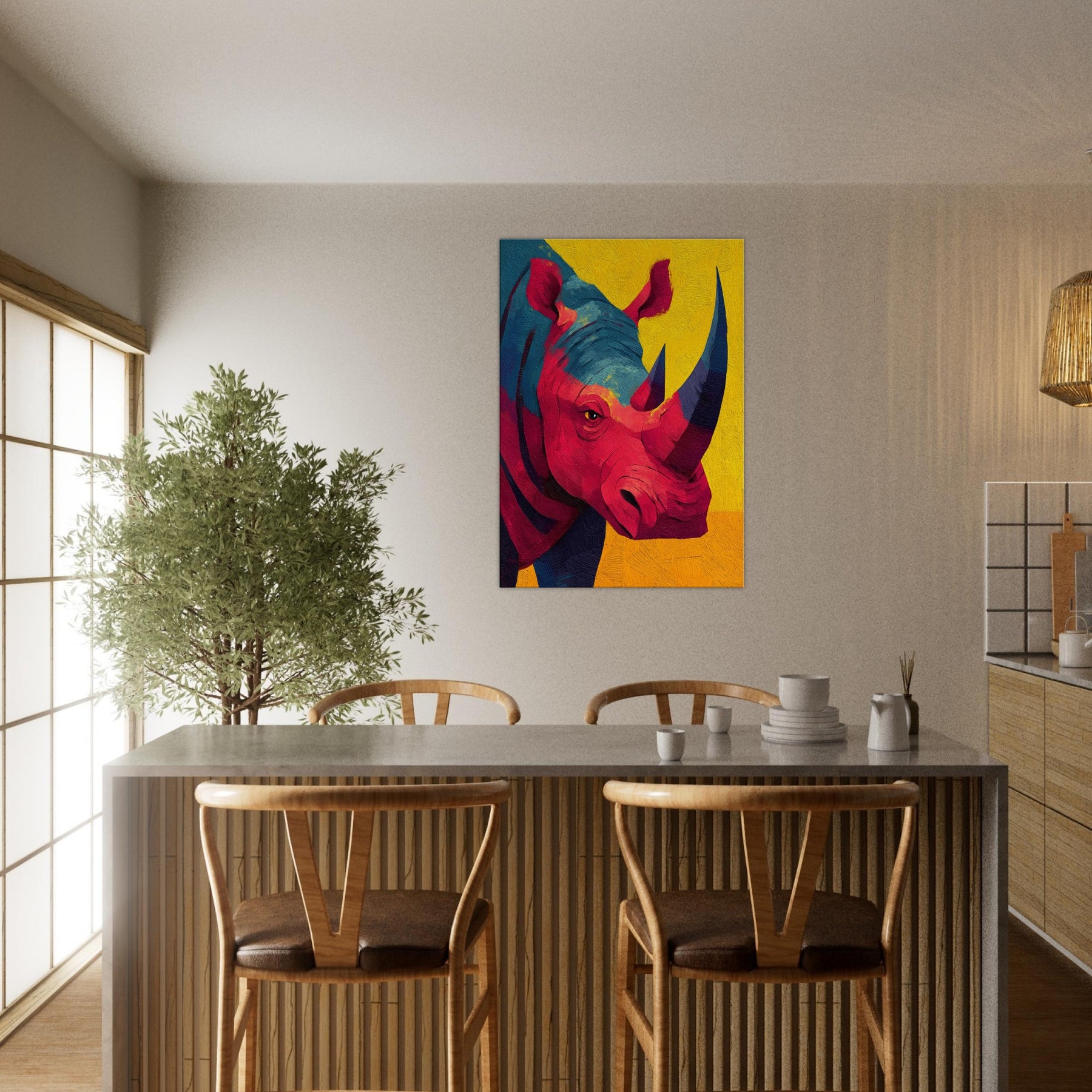 Rhinoceros bursts across the canvas in a fearless symphony of color and contour. This abstract composition dissolves form into luminous blocks magenta, teal, cobalt against a sunlit yellow field, inviting the eye to roam its sculptural curves. The piece hums with quiet power, turning a living room into a gallery of possibility, where texture seems to pulse under fingertips and light travels across the surface. A bold, timeless presence that grounds and inspires, day after day.
